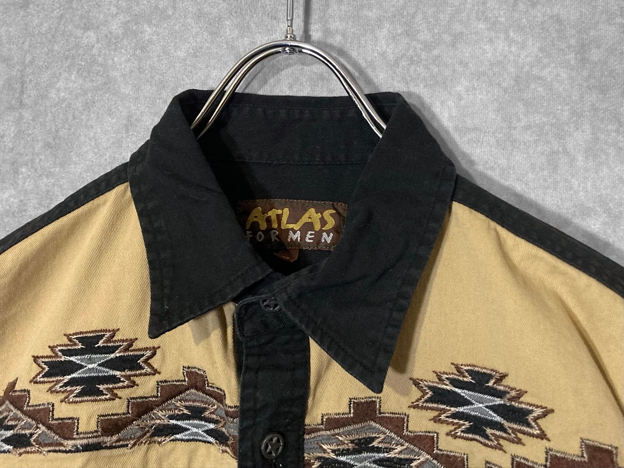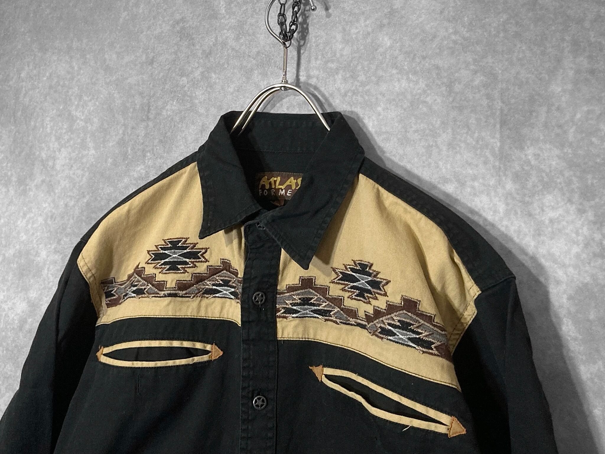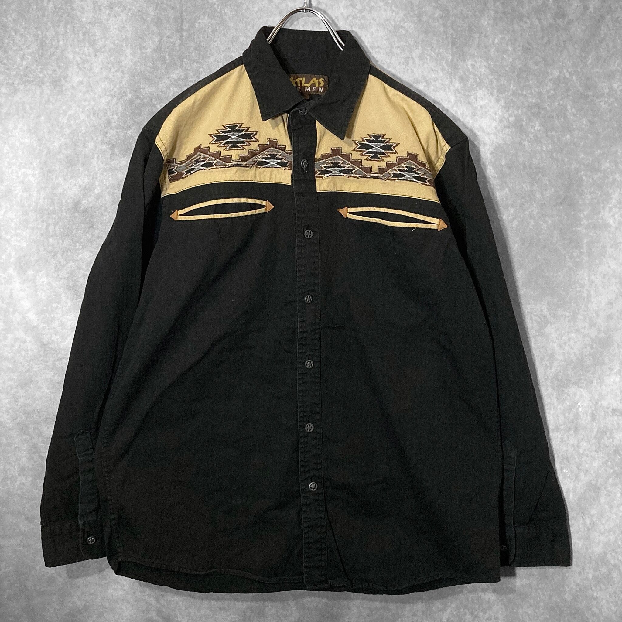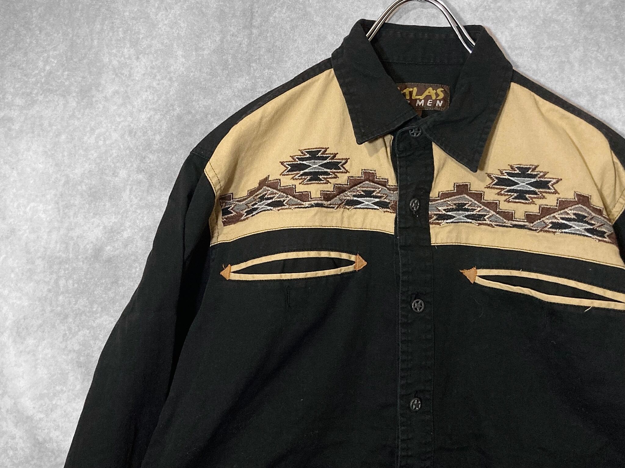 XL embroidery Ortega pattern × Black and Beige color combination design L/S shirt