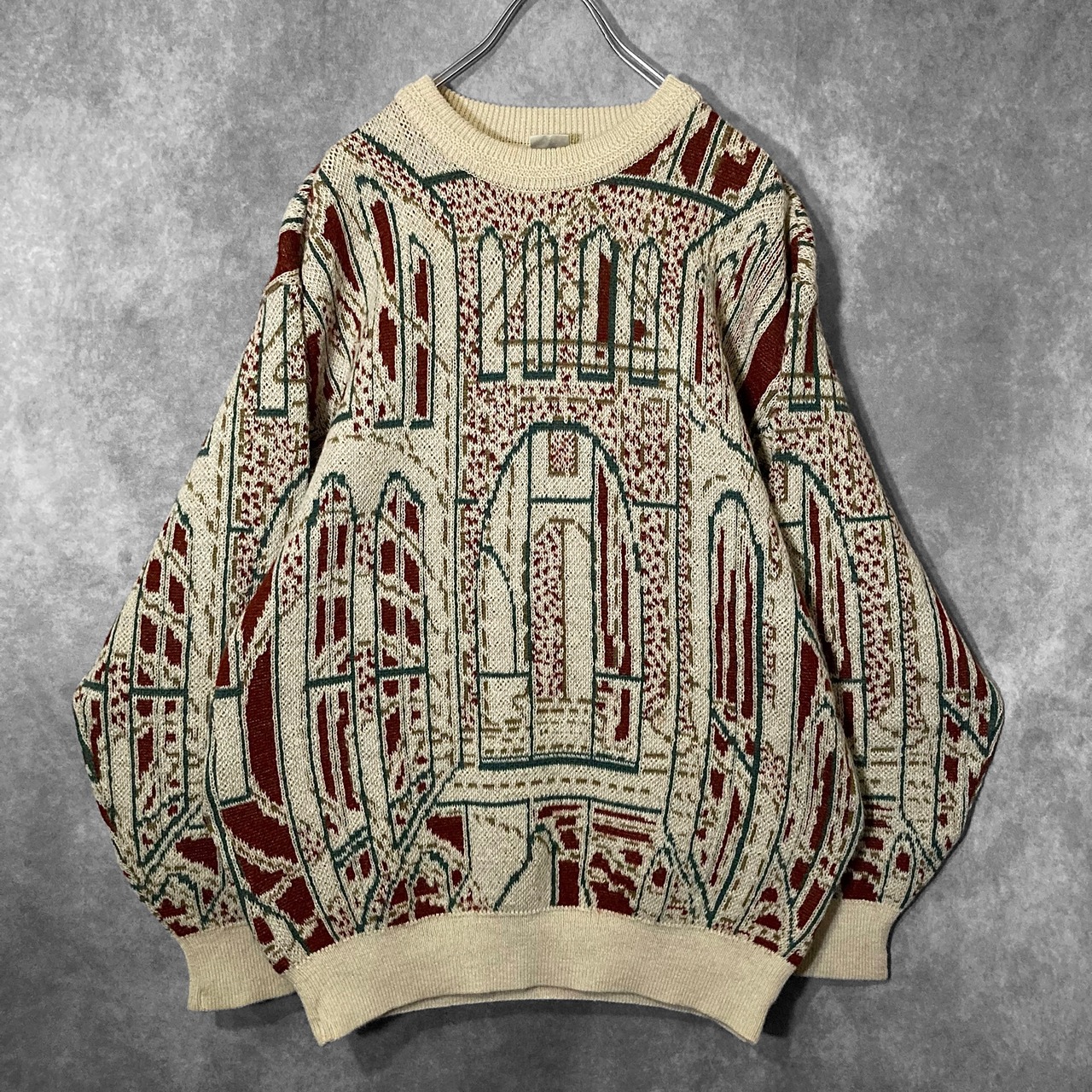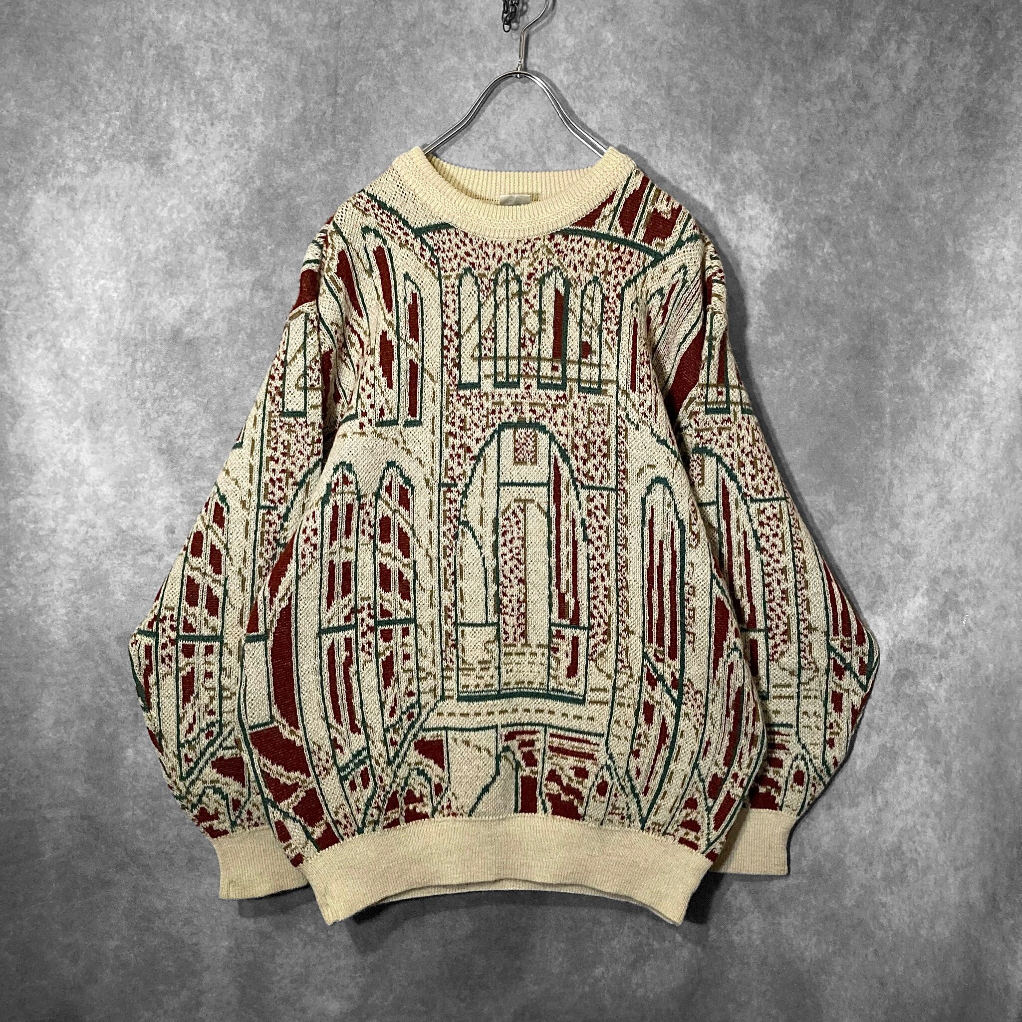 【Modigliami】Made in Italy, Townscape all over pattern design Knit