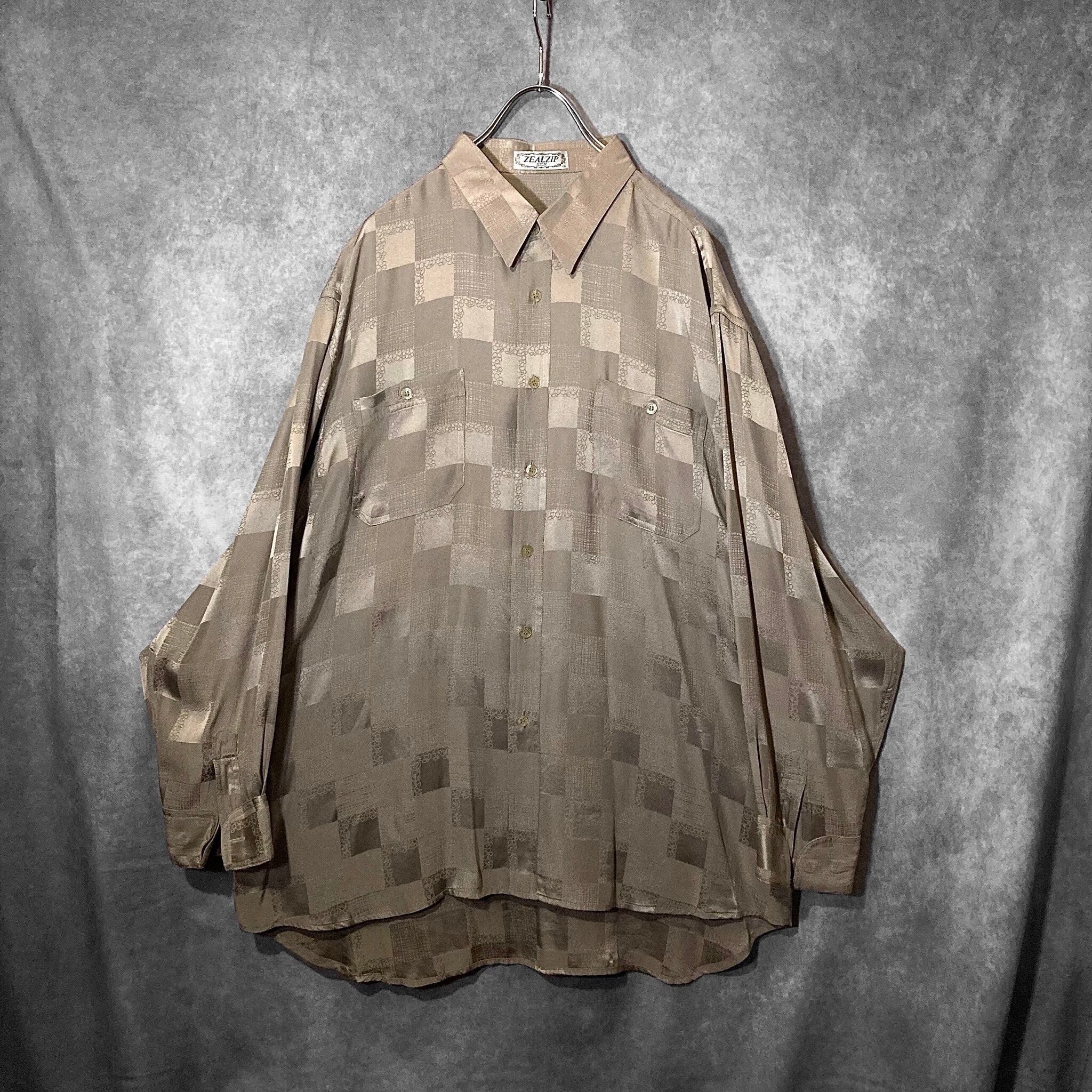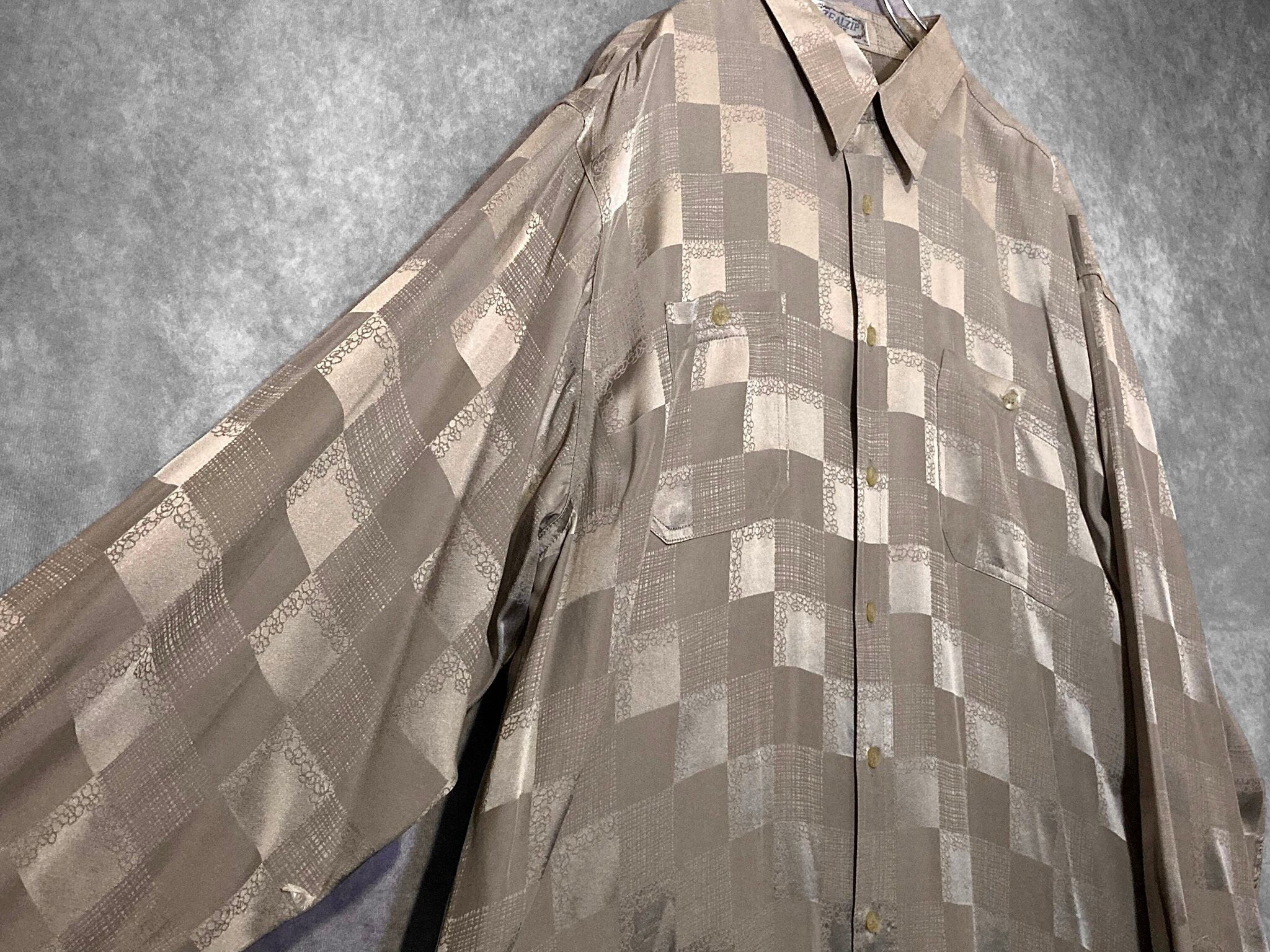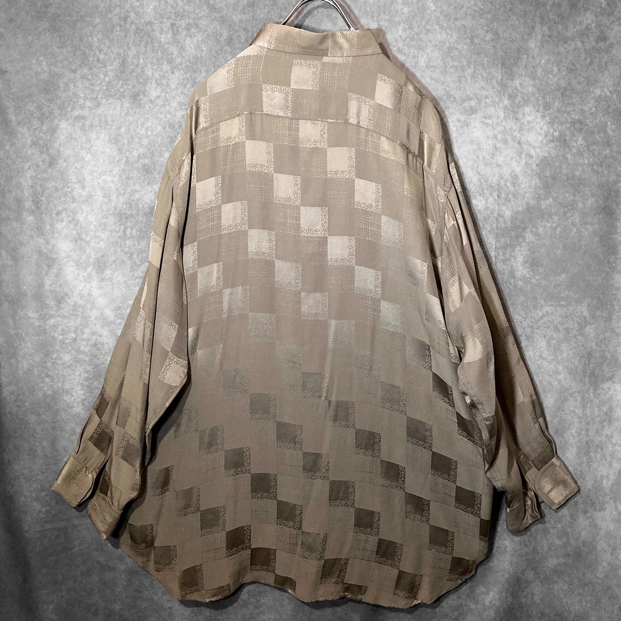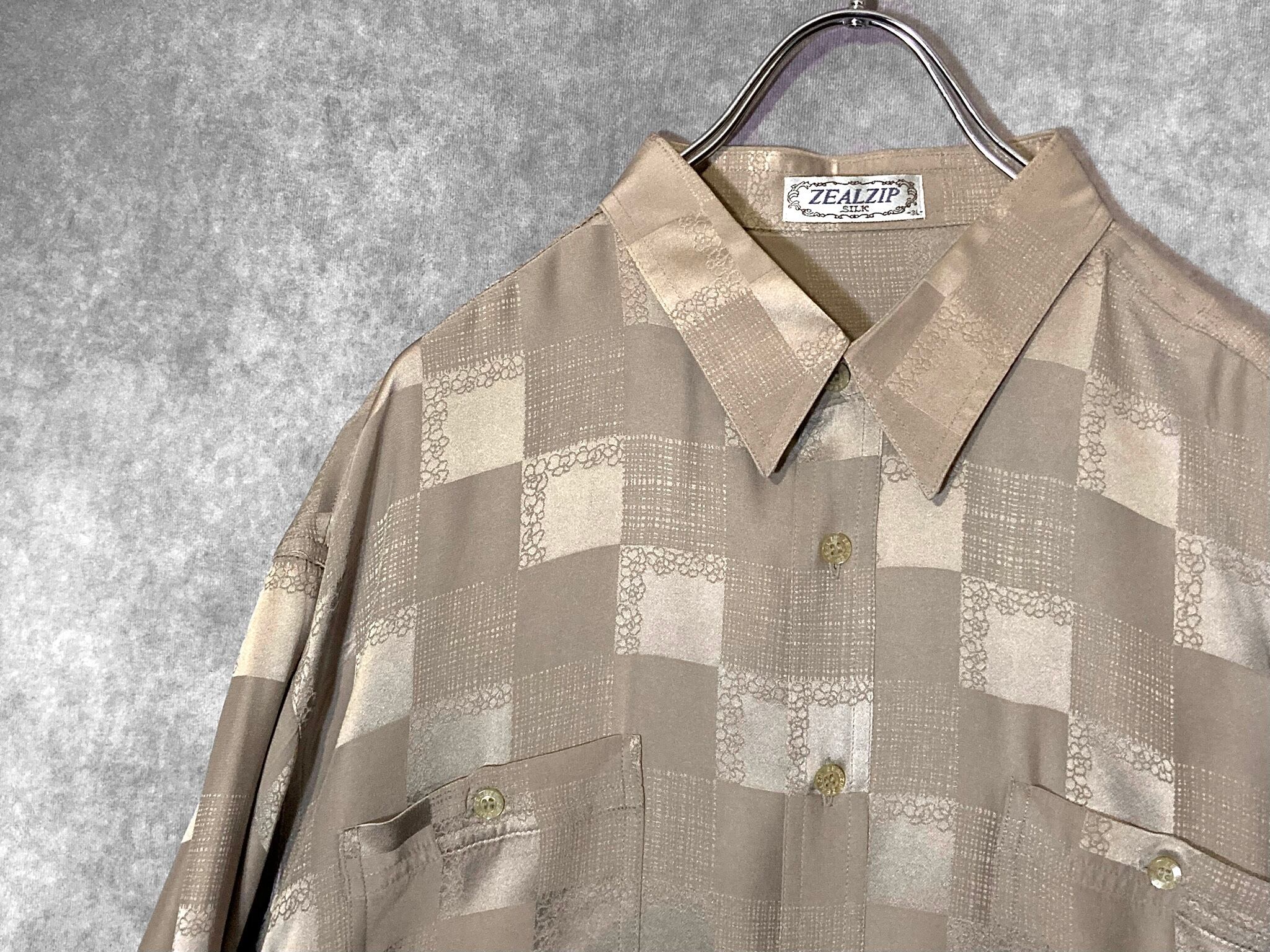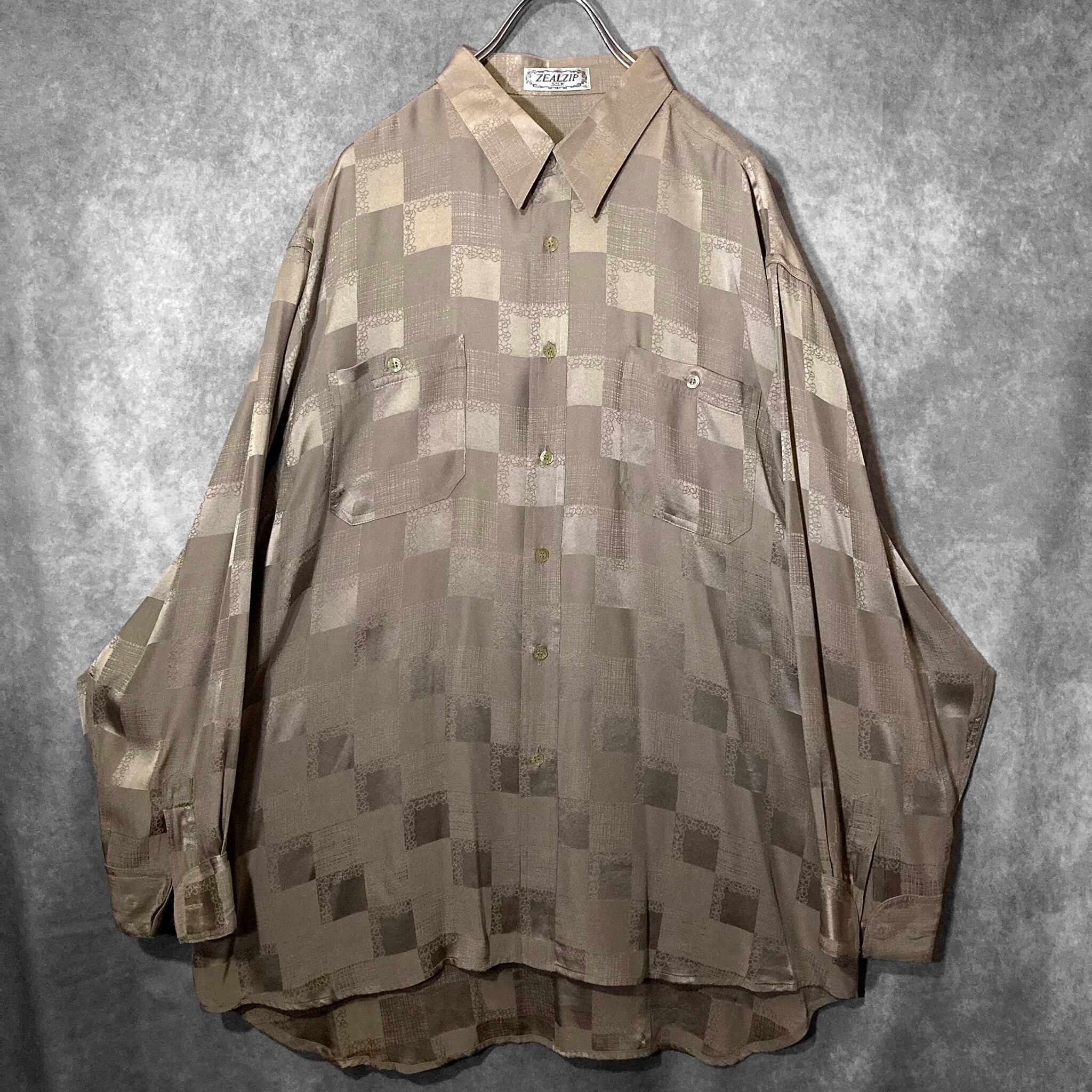 XXL size 超光沢 Milk tea color × Lustre Square full pattern design Silk L/S Shirt