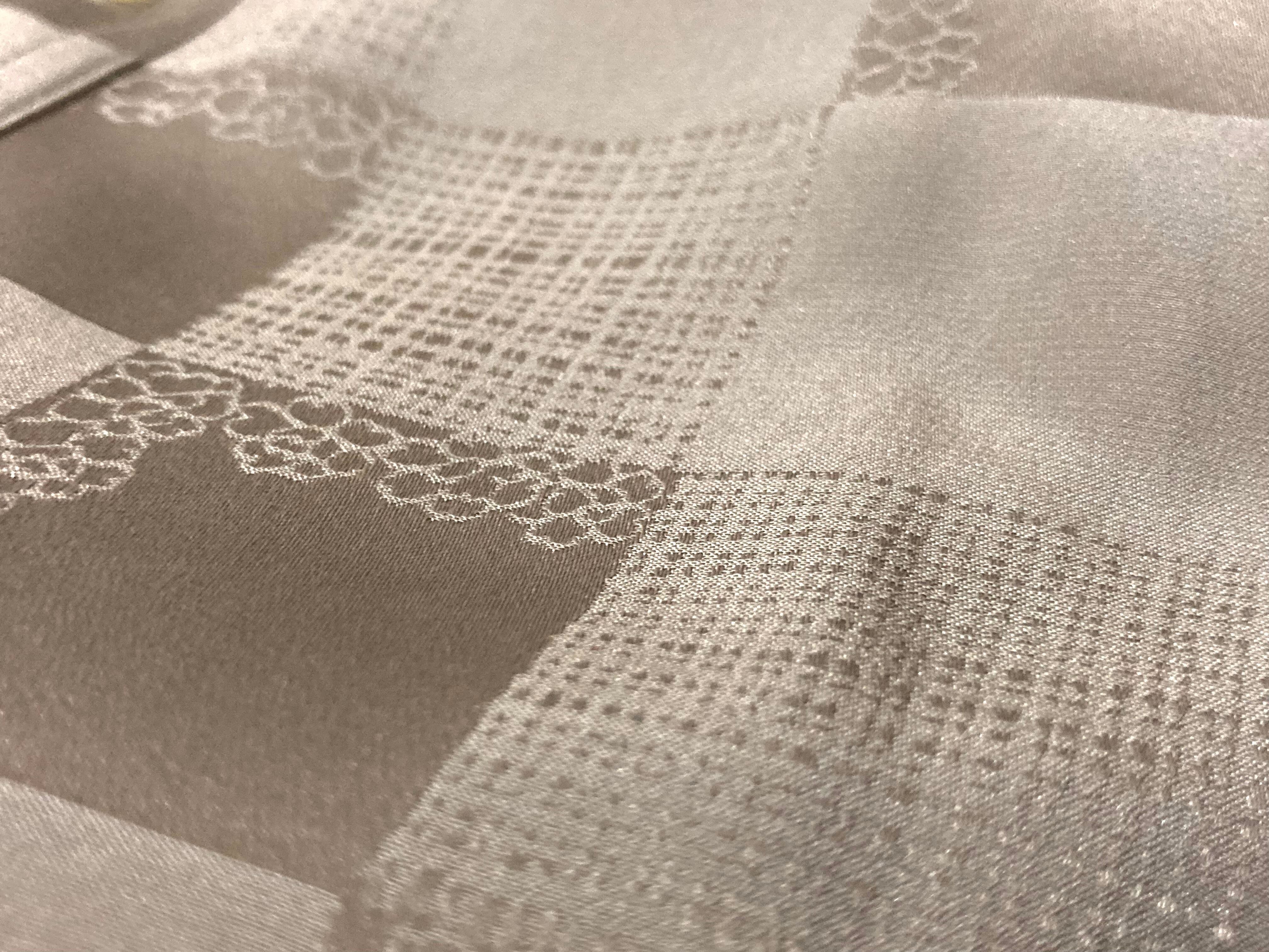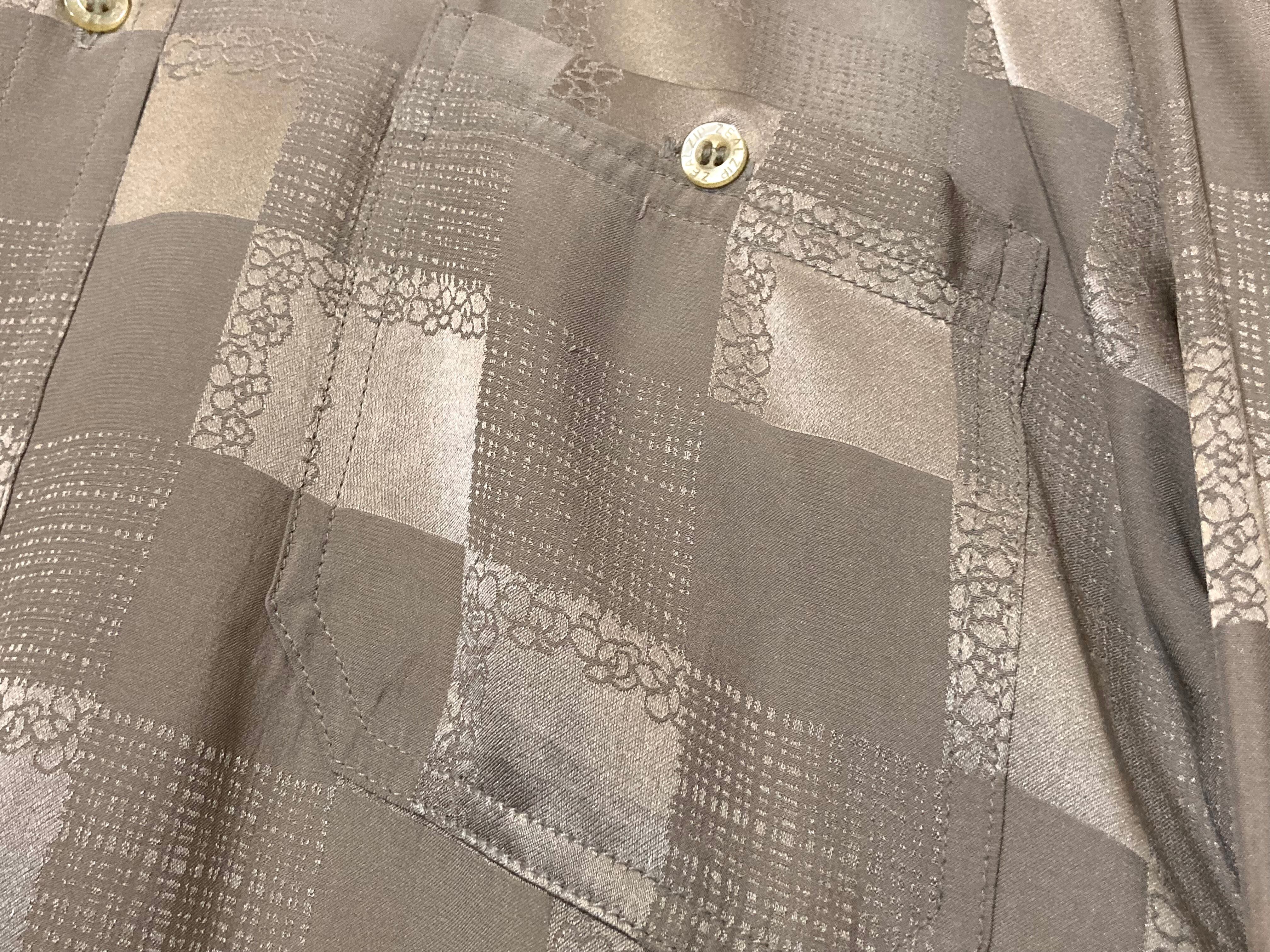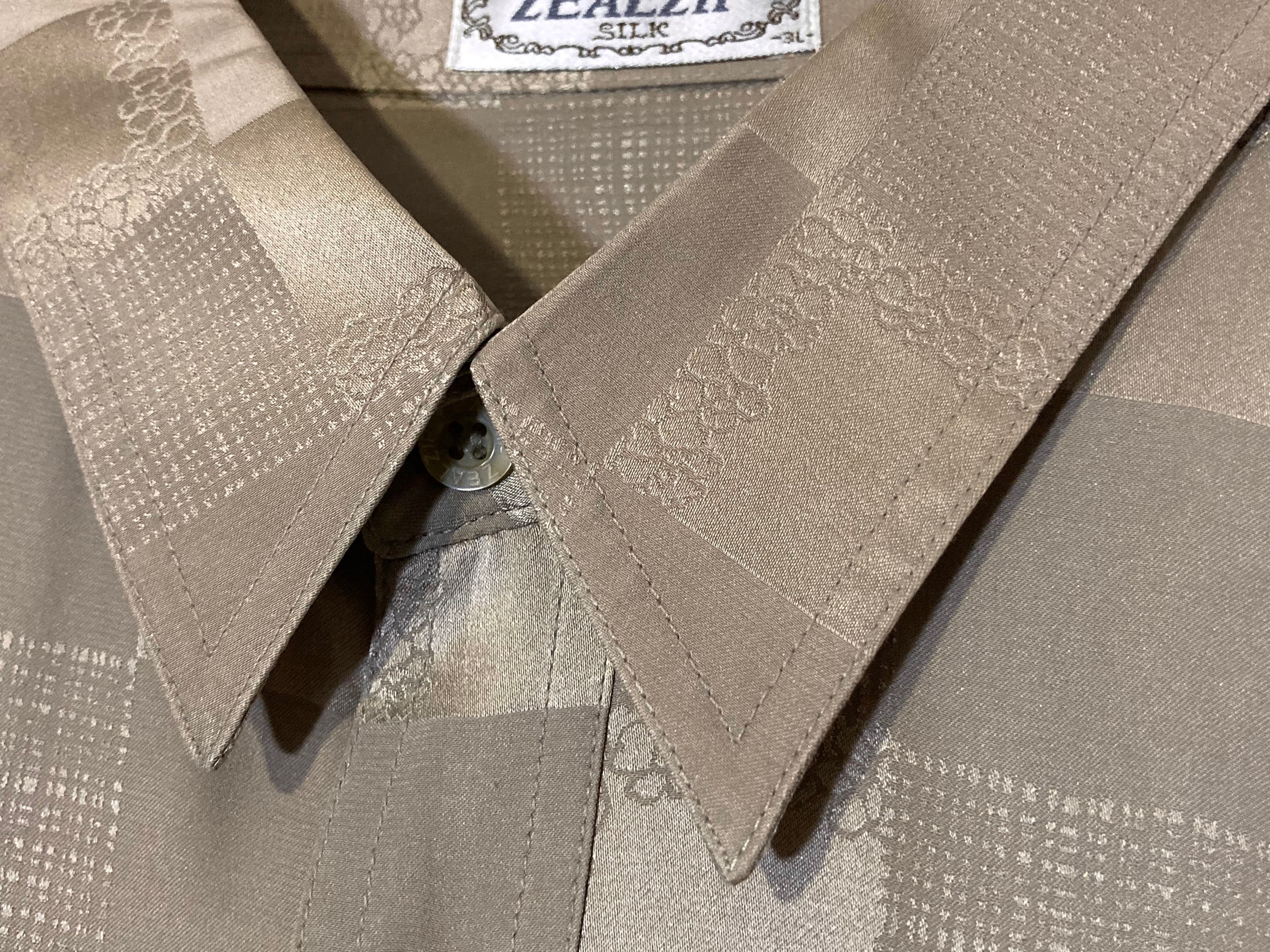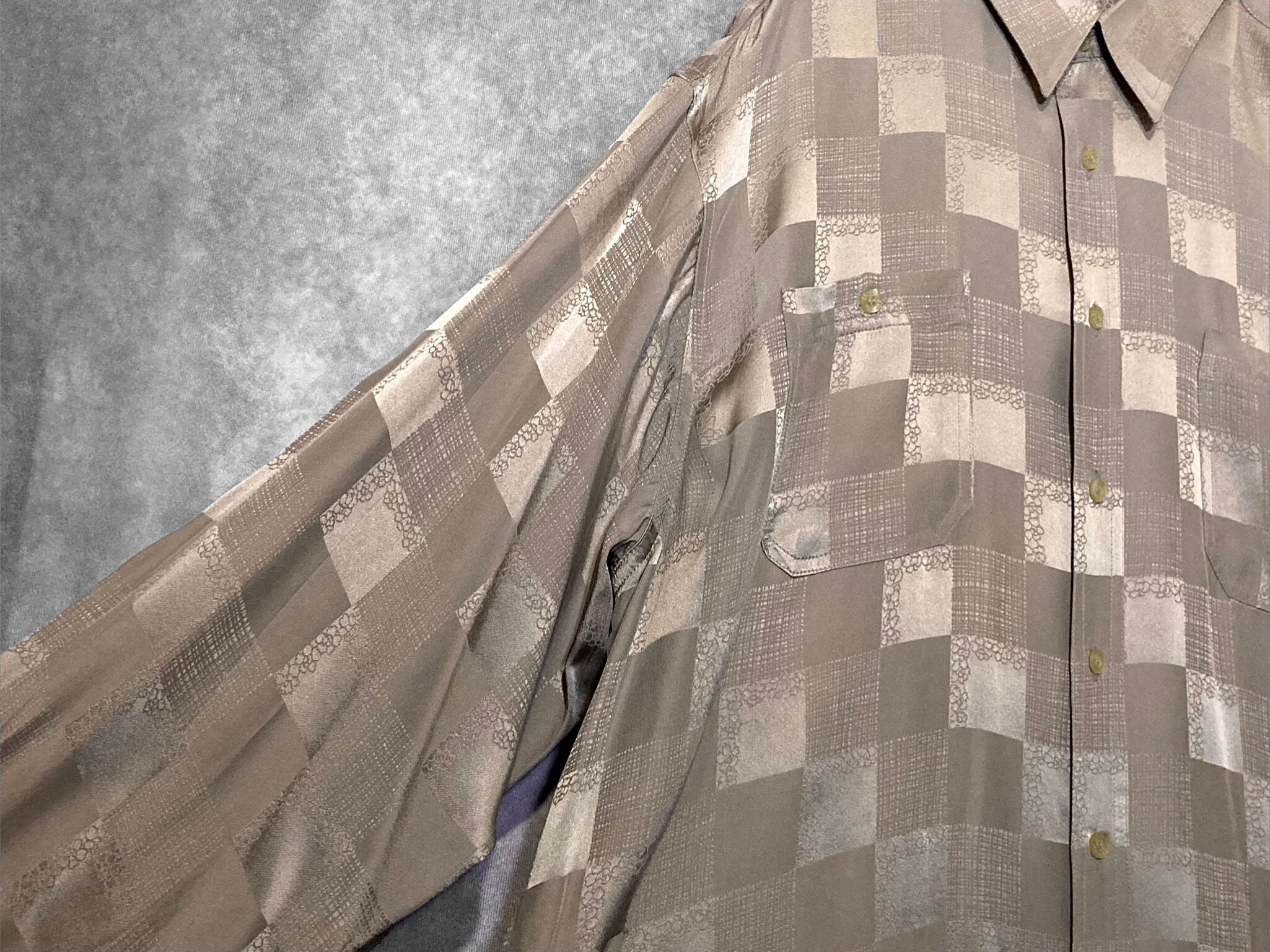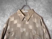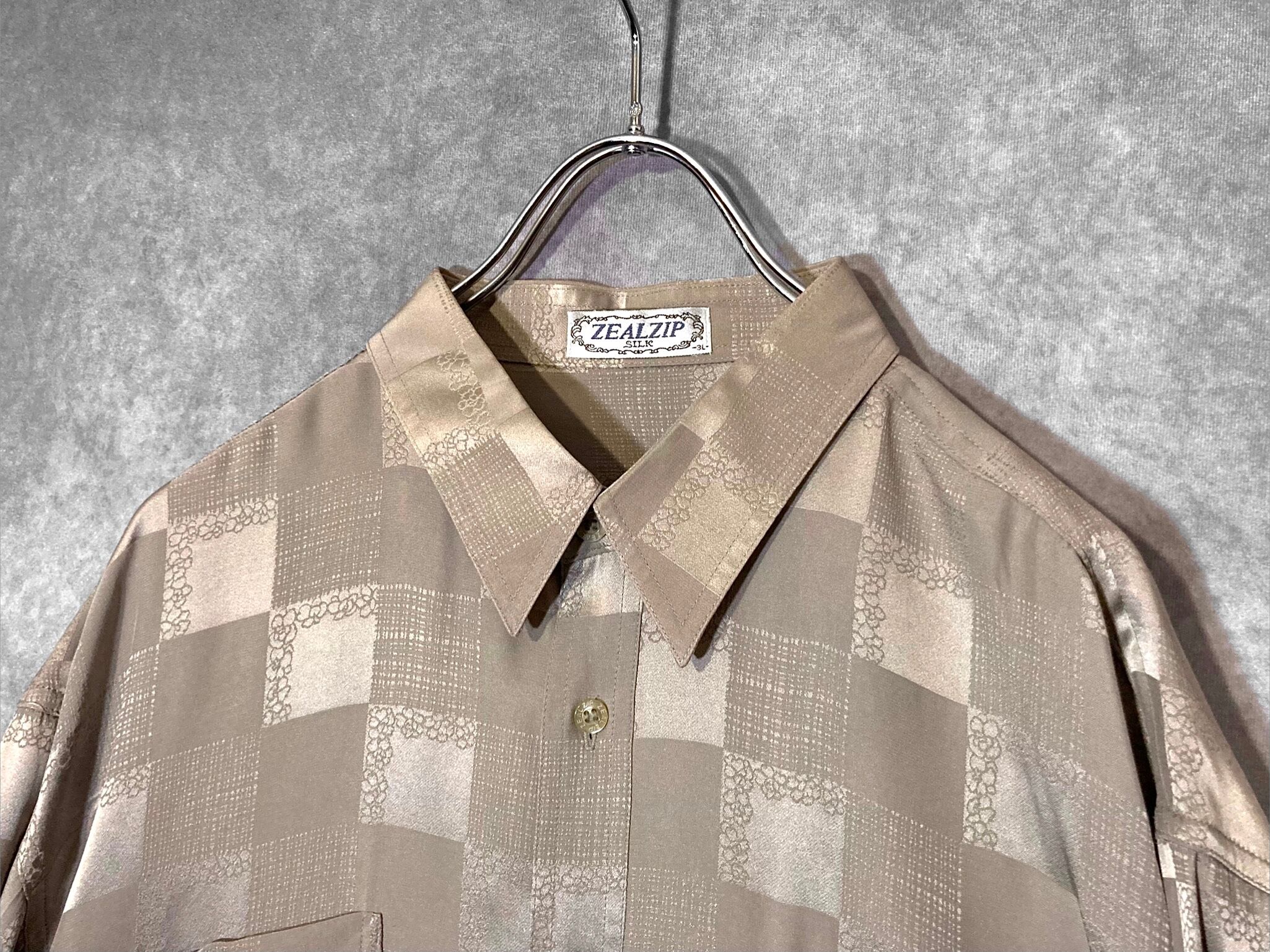 XXL size 超光沢 Milk tea color × Lustre Square full pattern design Silk L/S Shirt
