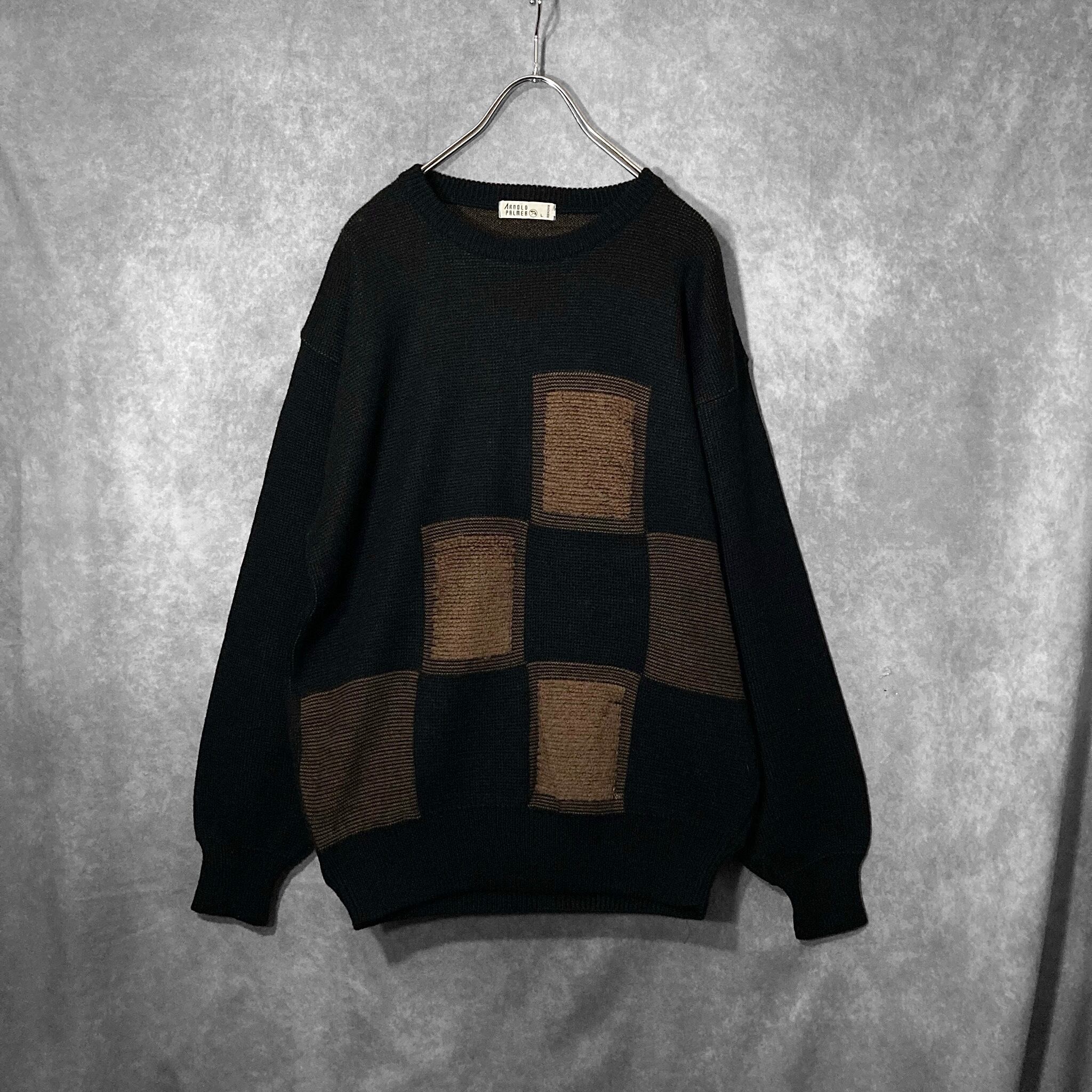 ARNOLD PALMER Black × Brown Square panel design Knit