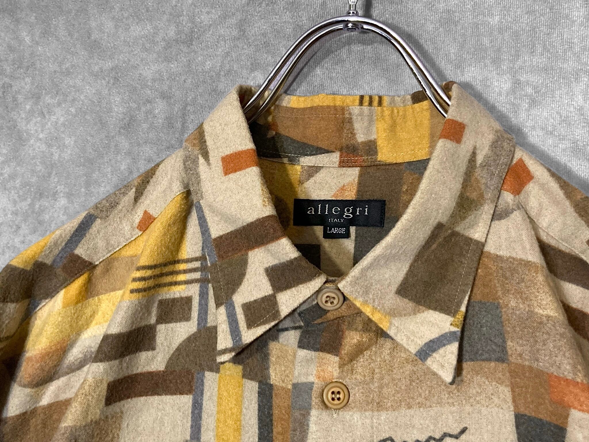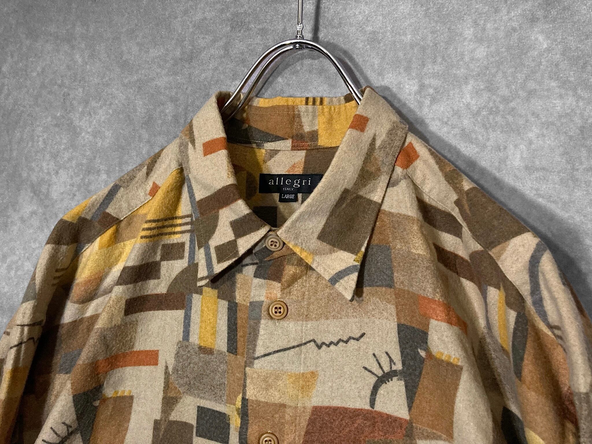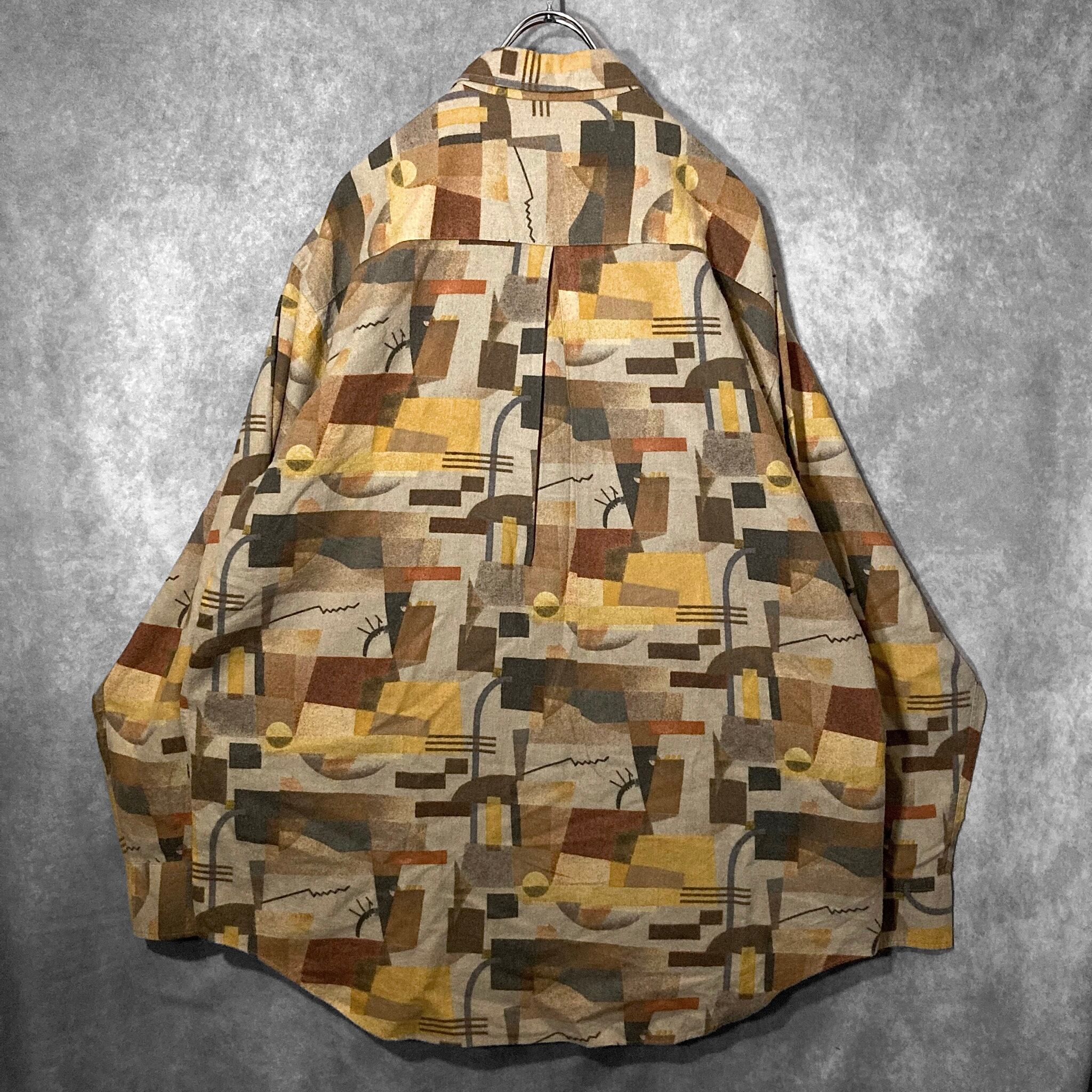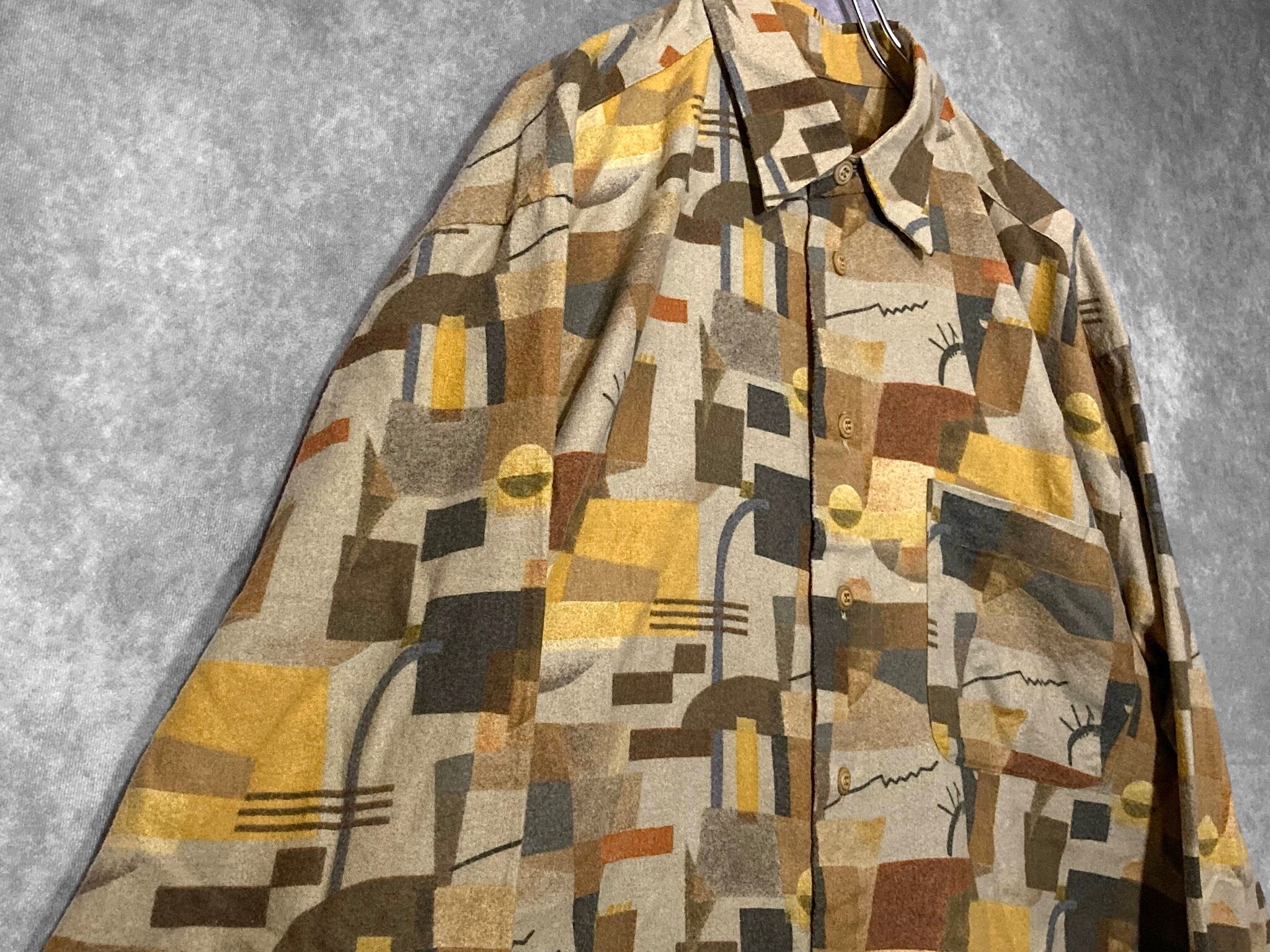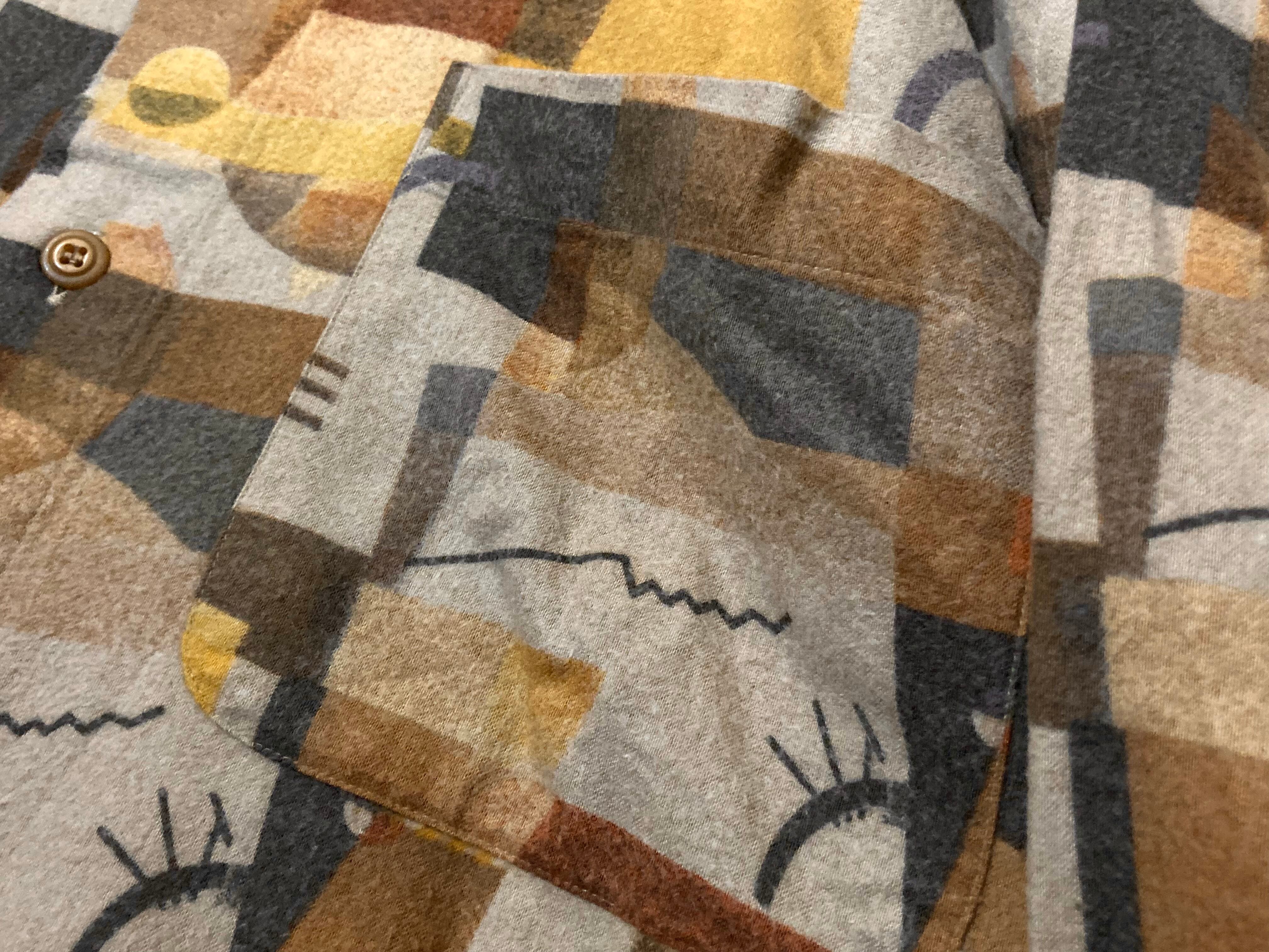XXL size, Warm color Abstract painting Pattern design Flannel L/S Shirt