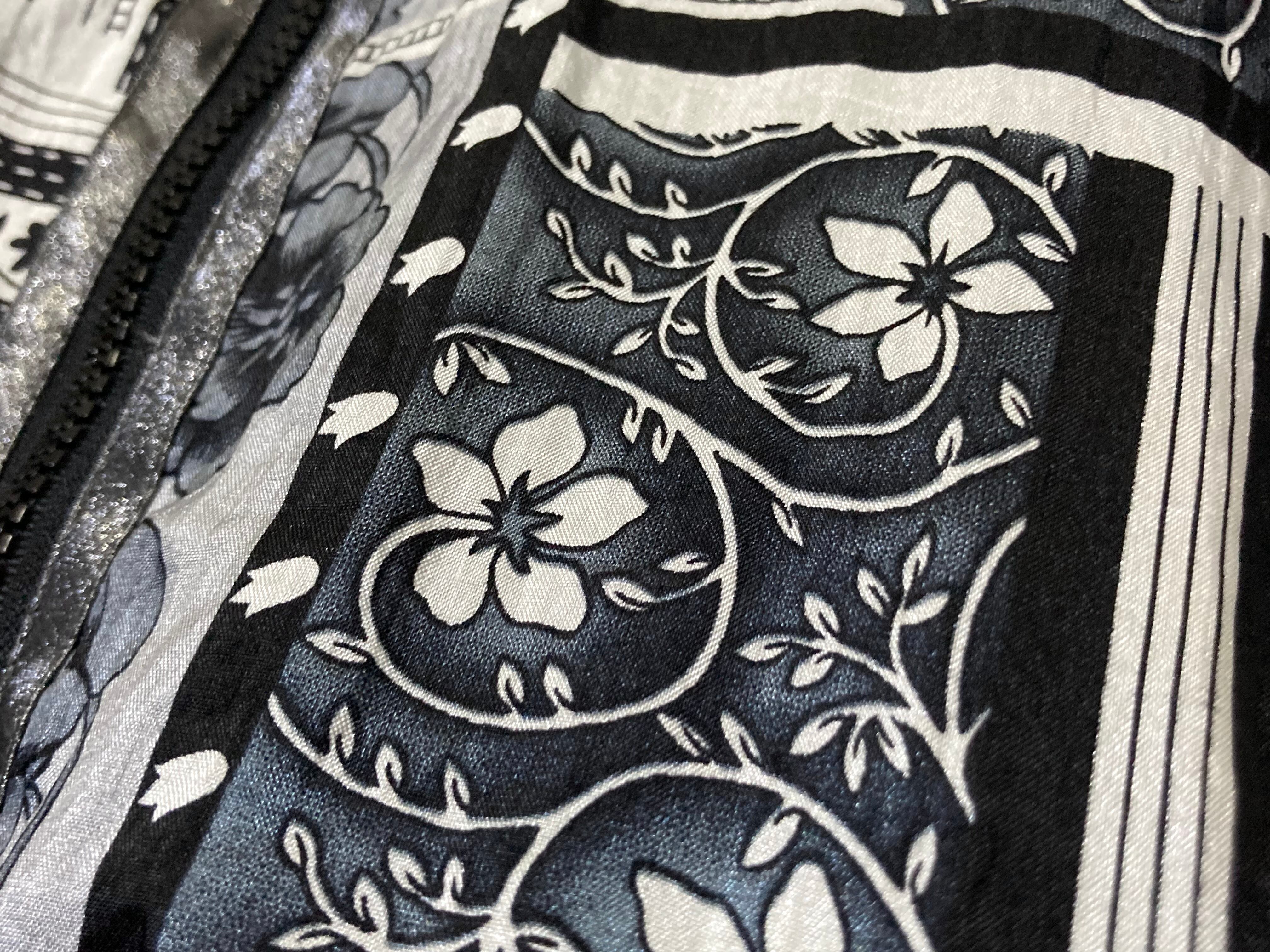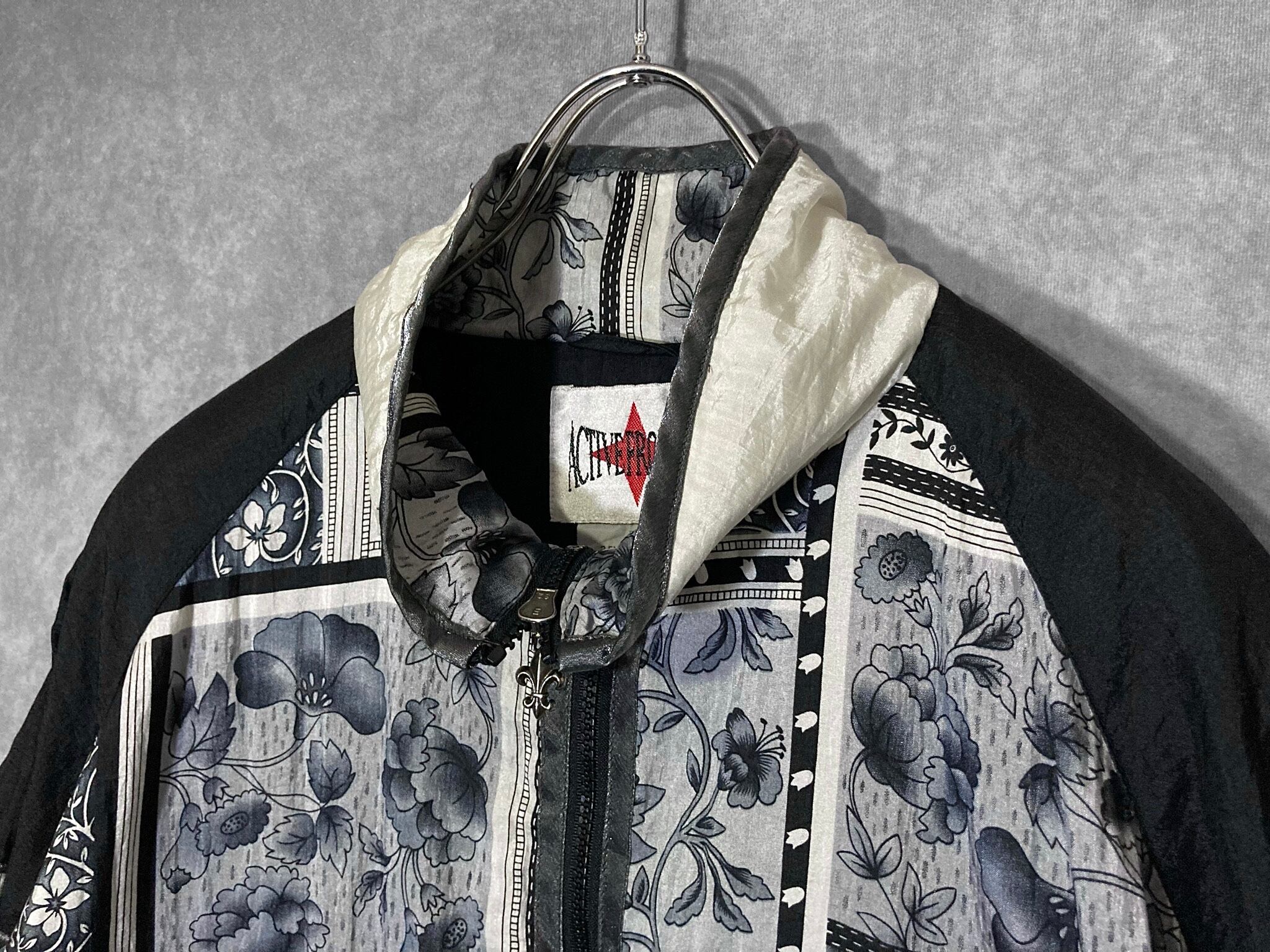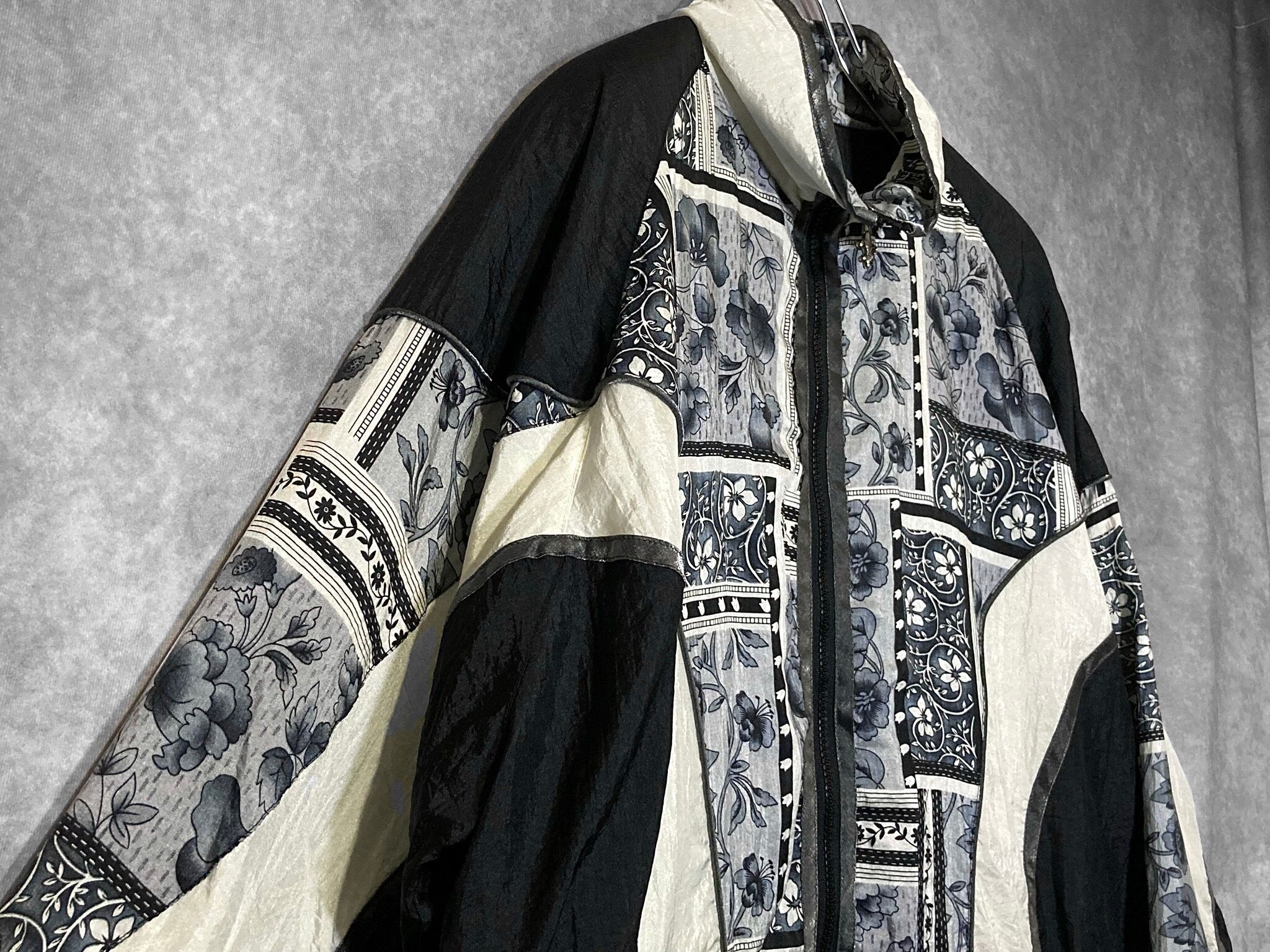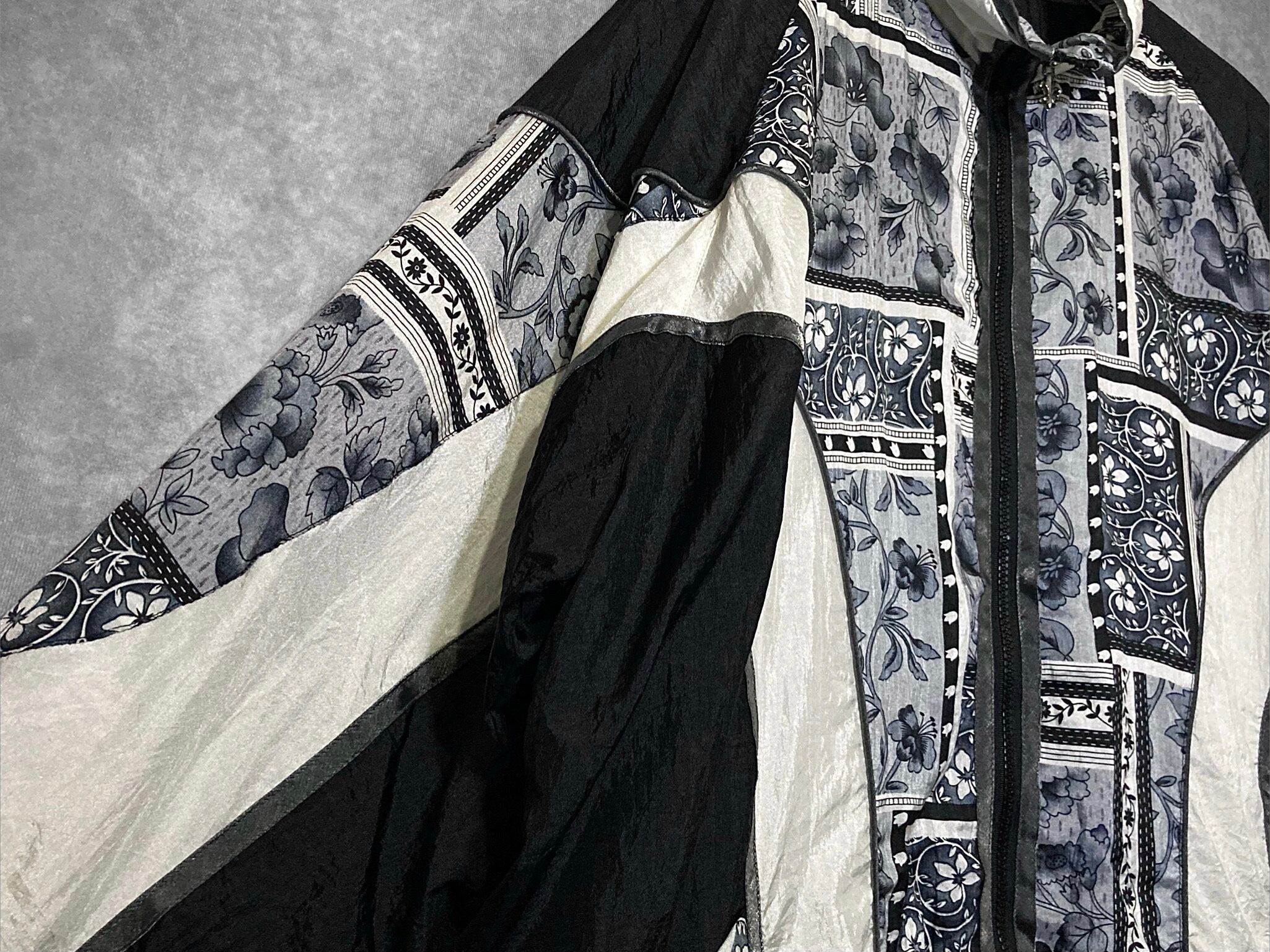 2XL Black and White color × Floral pattern combination design Nylon jacket