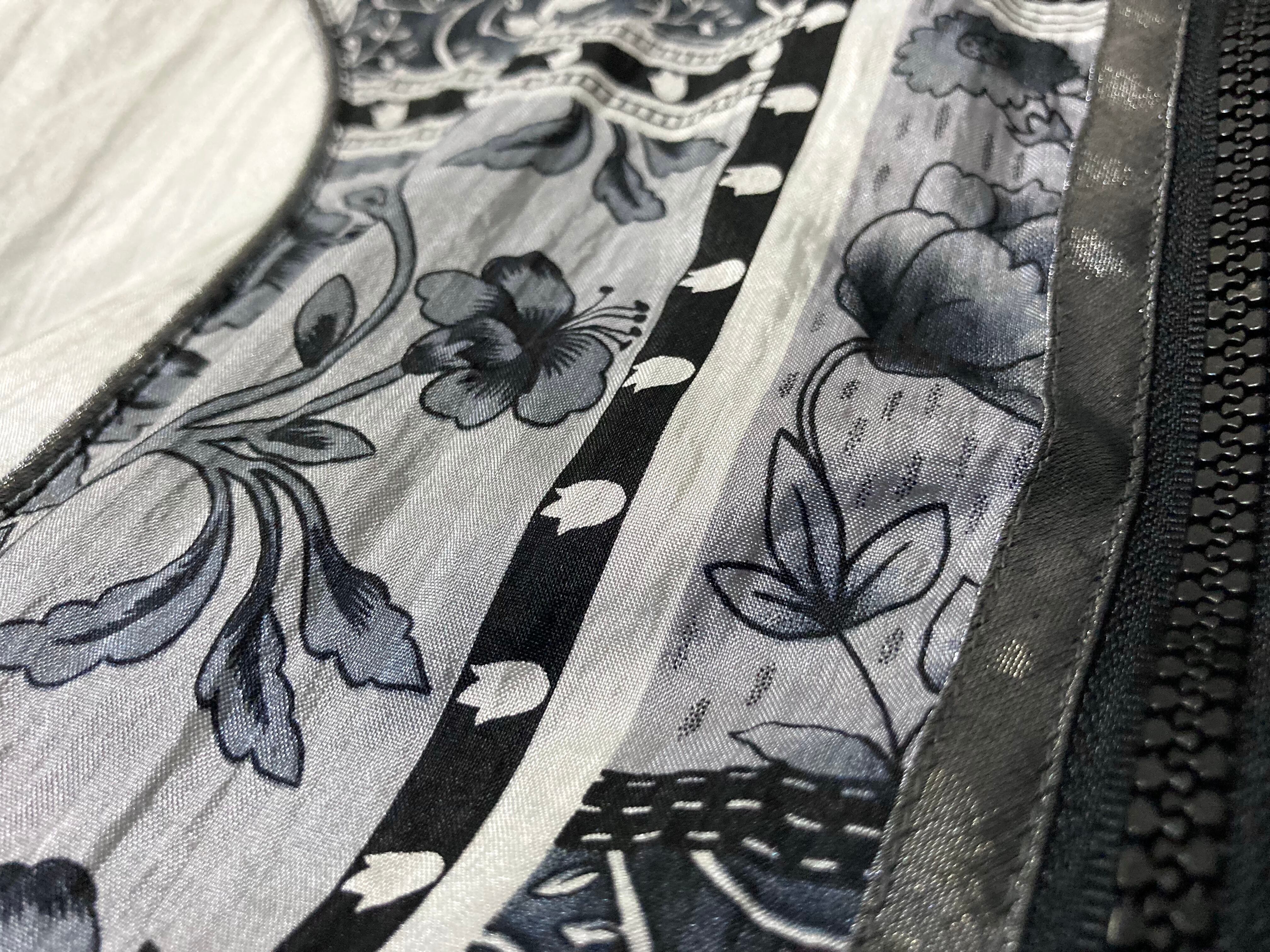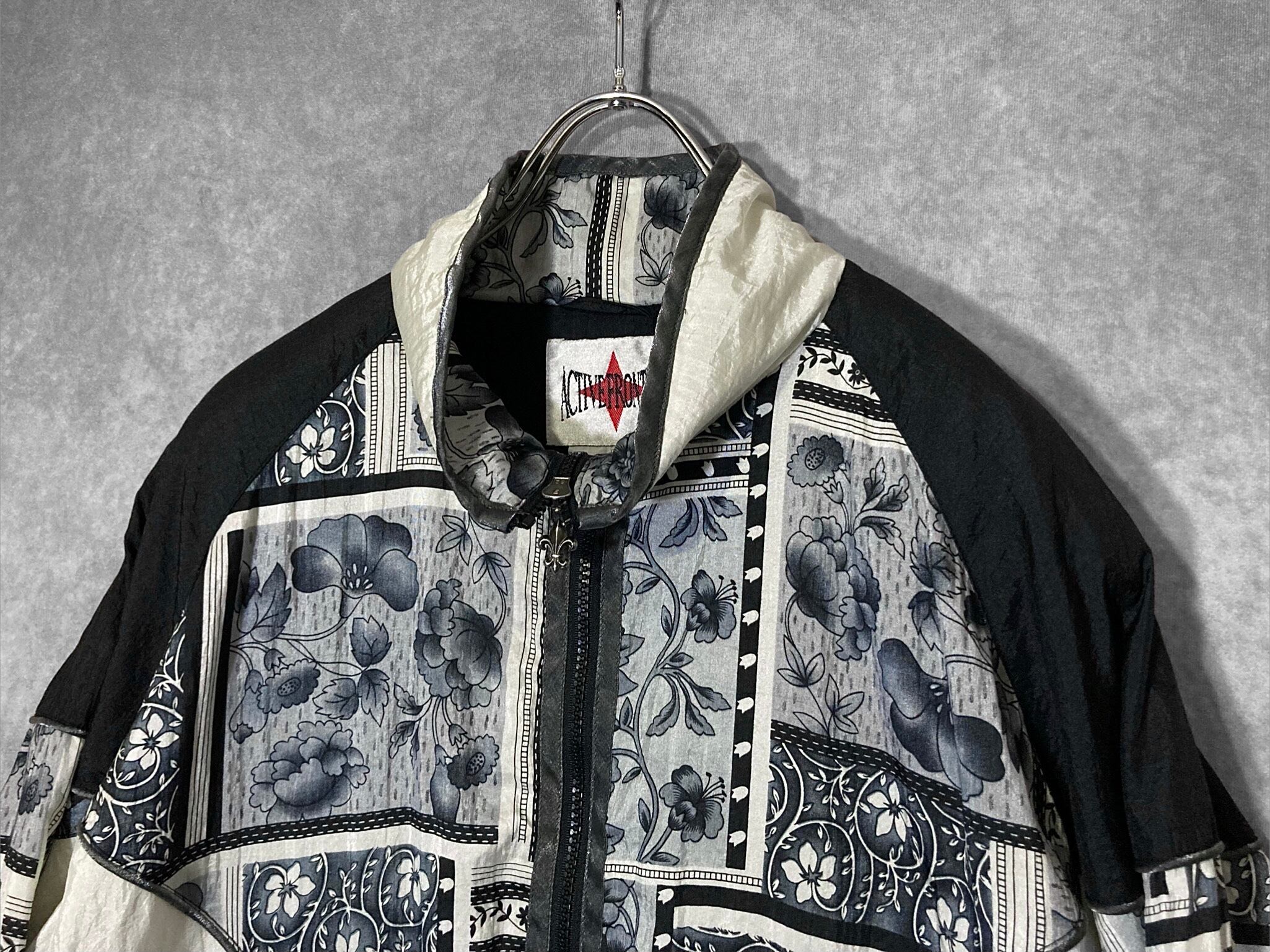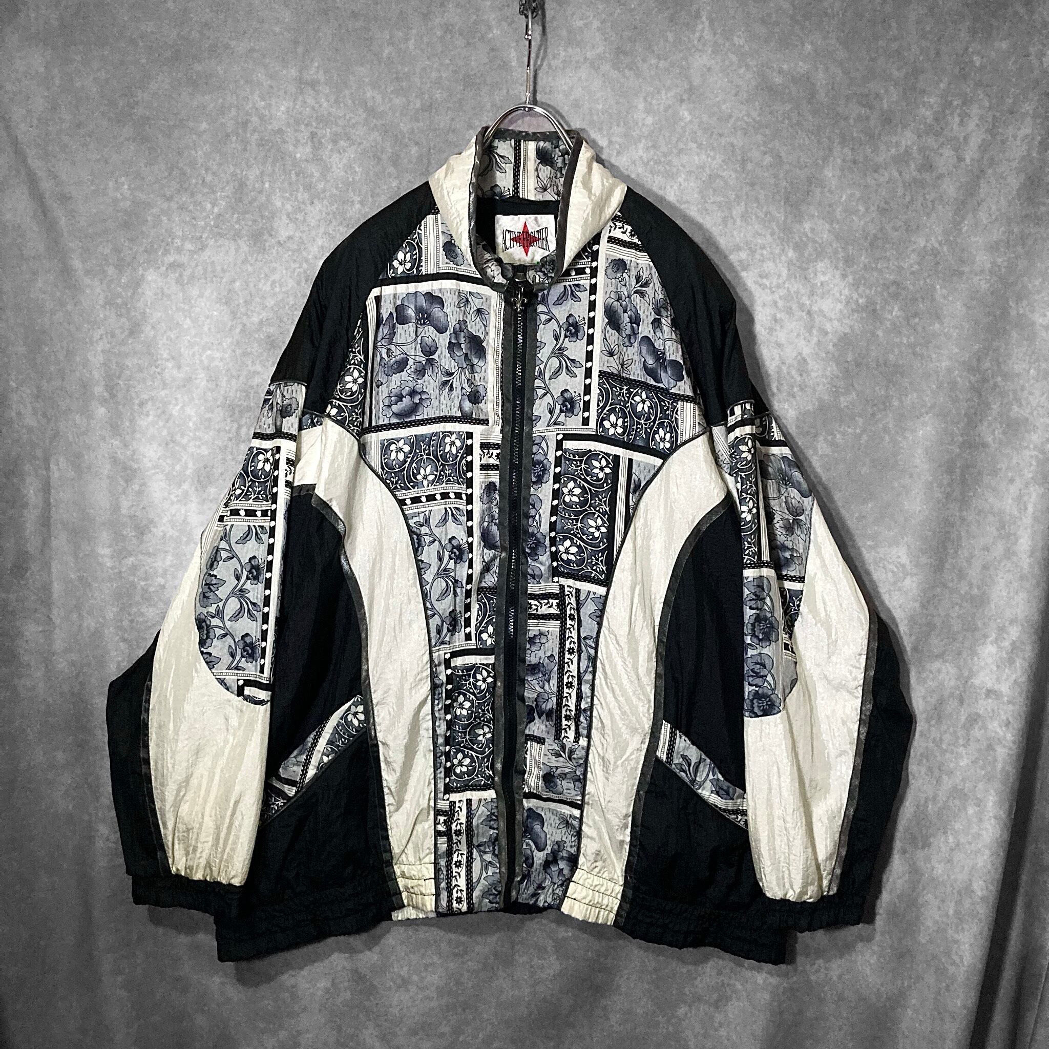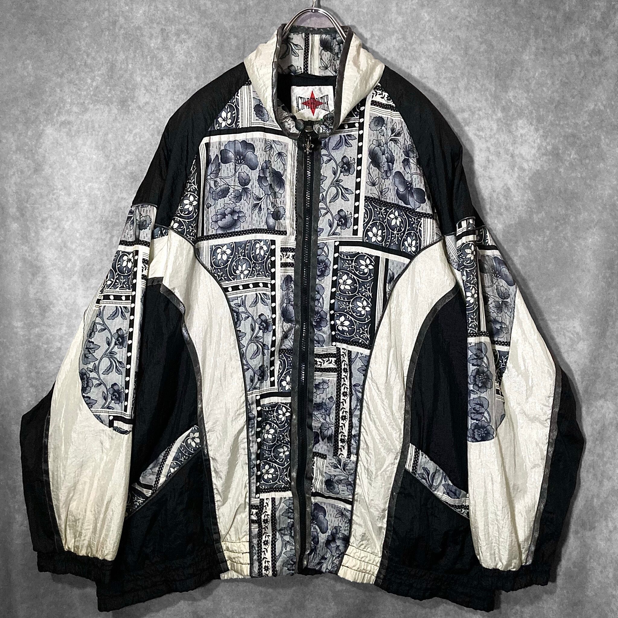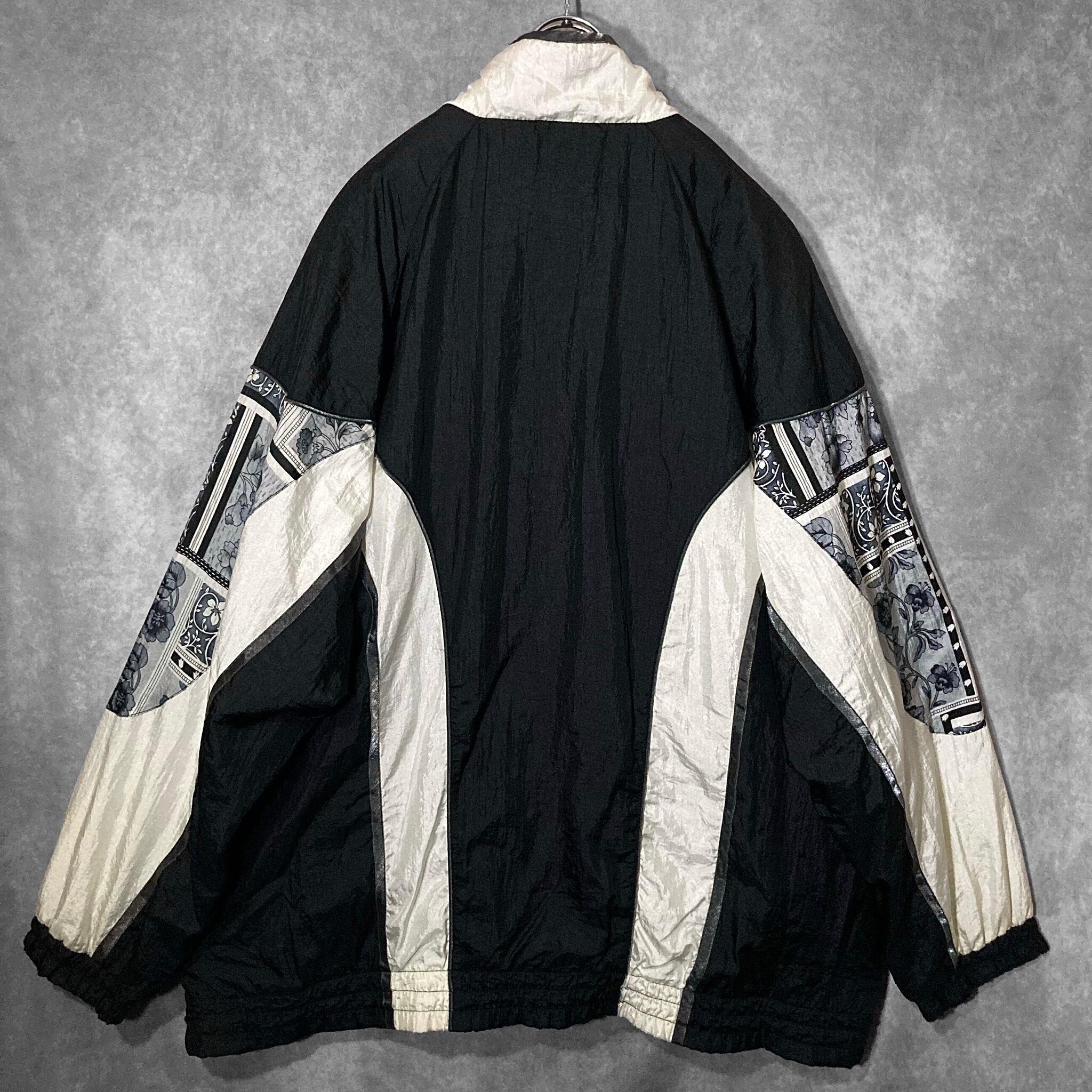 2XL Black and White color × Floral pattern combination design Nylon jacket