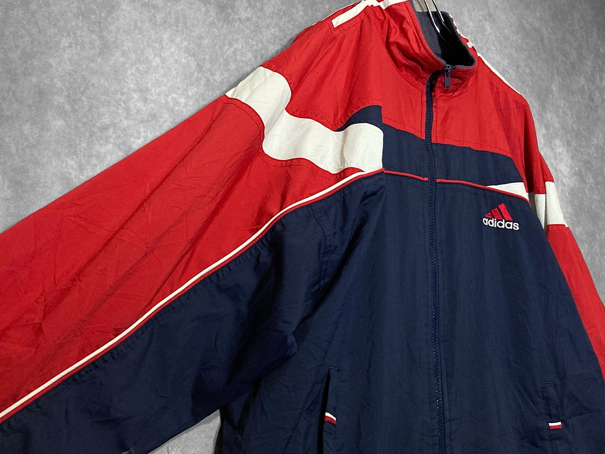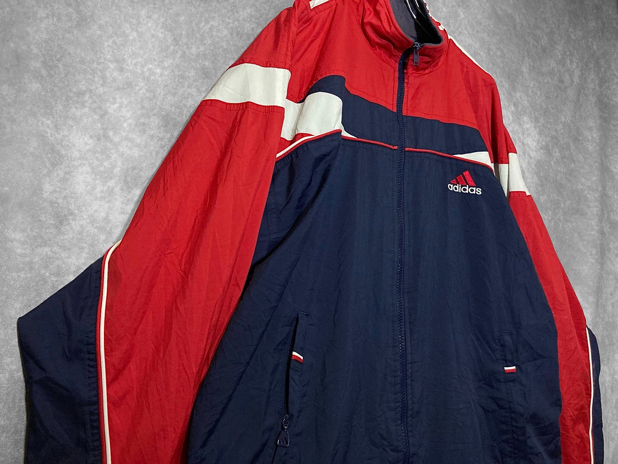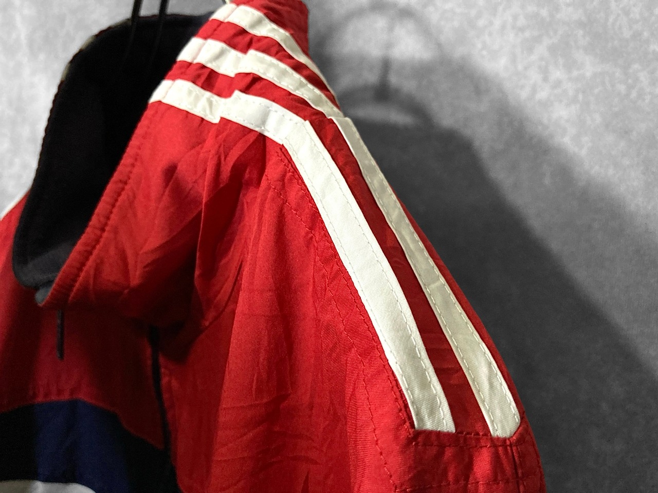 adidas Vivid Red and Navy color × Logo embroidery combination design Full-zip Jacket