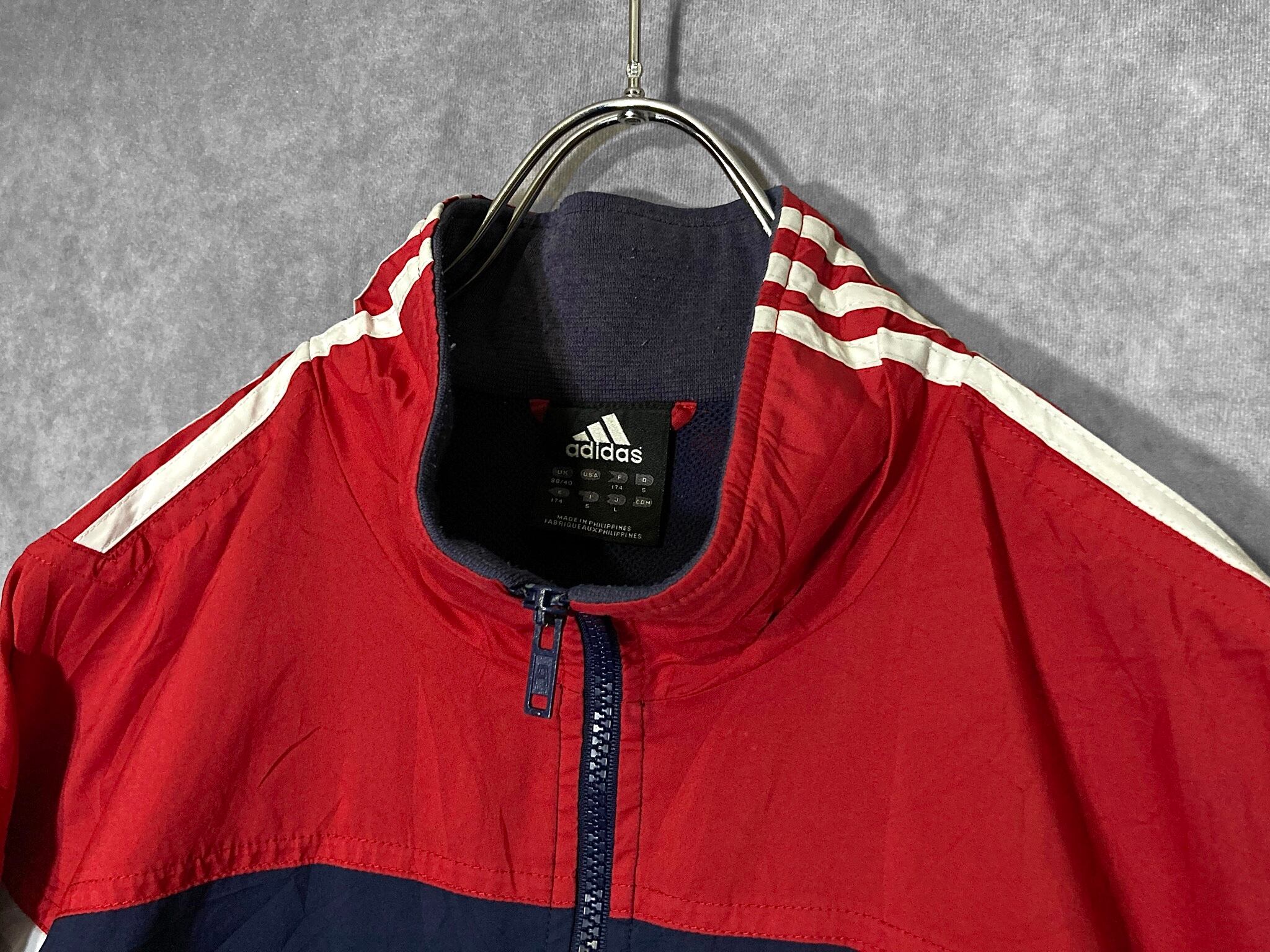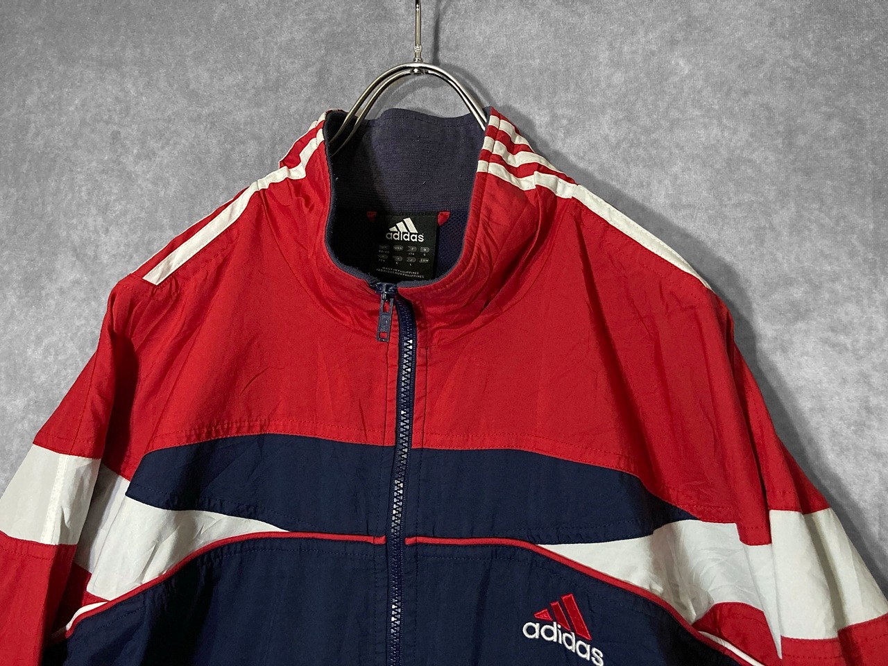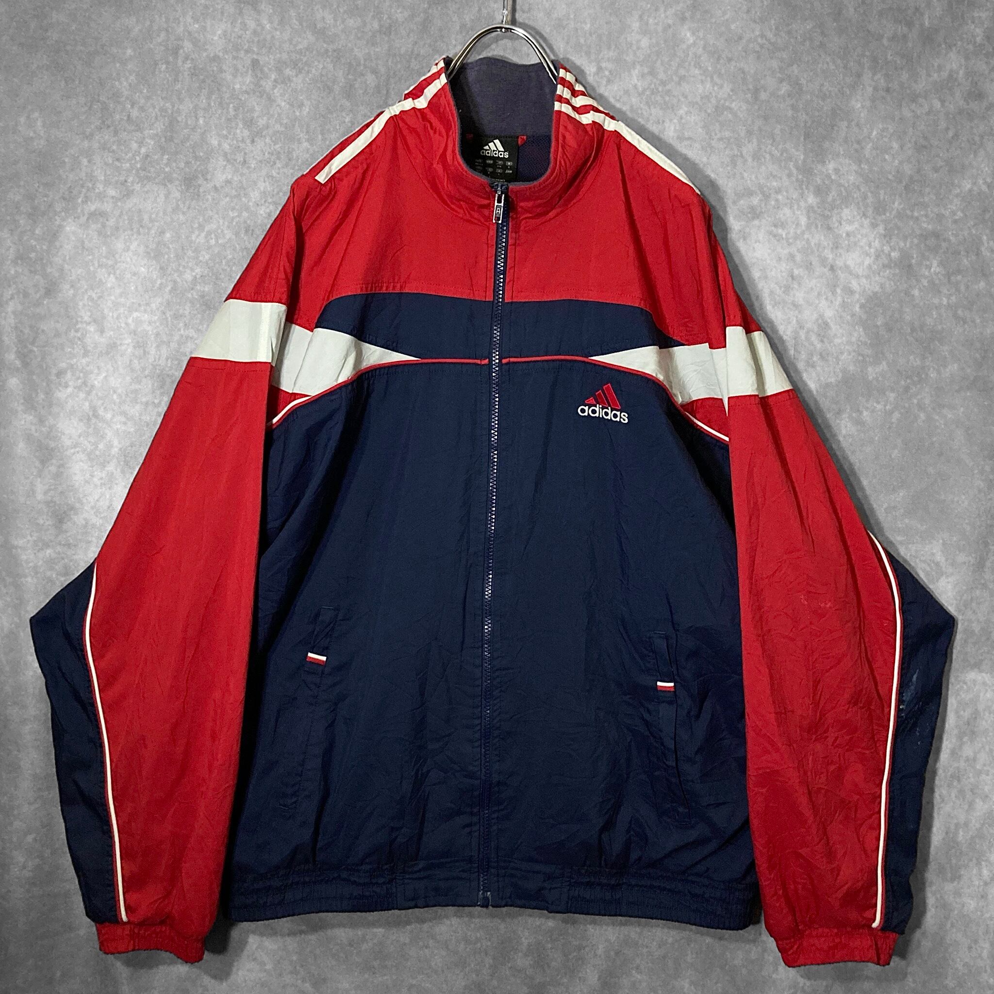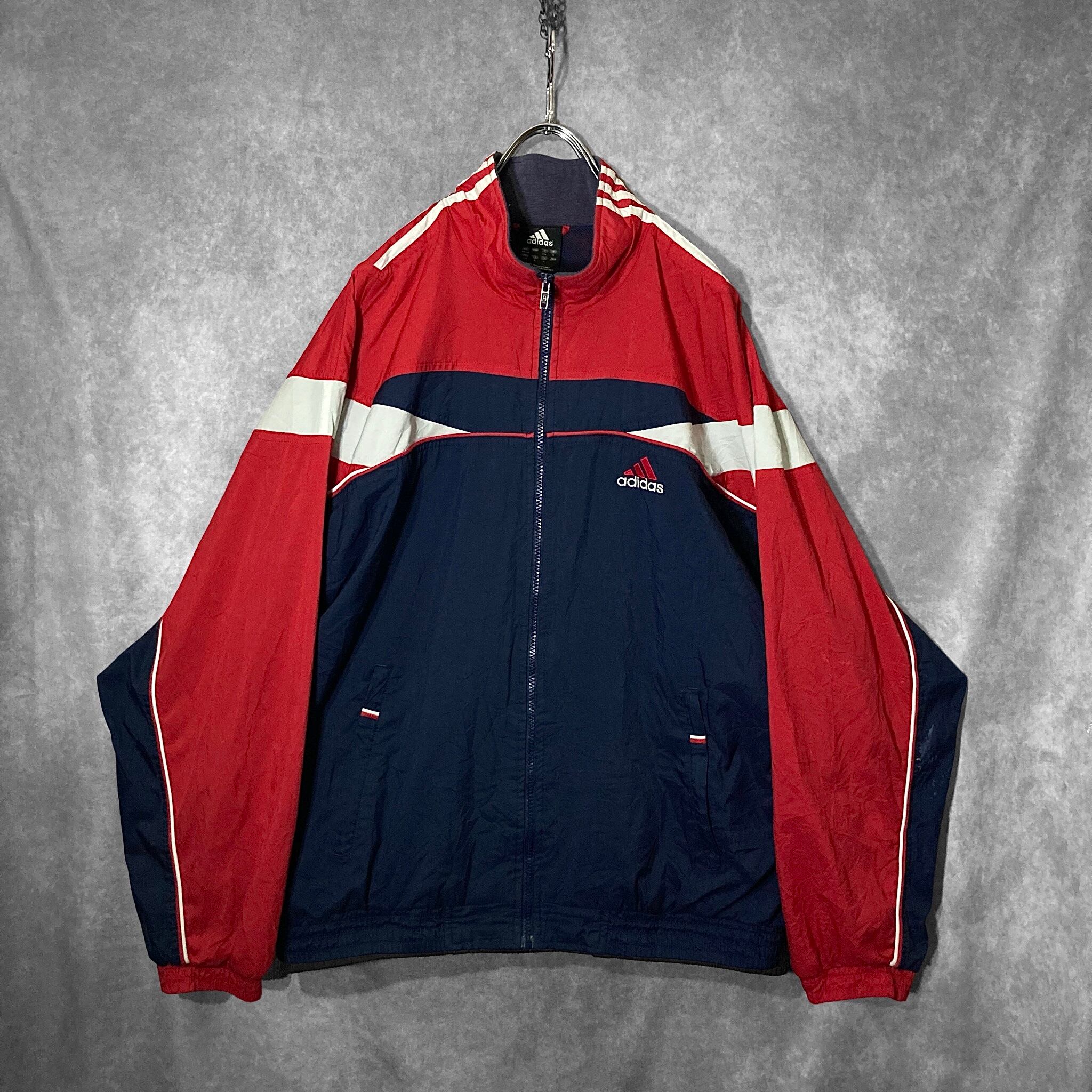 adidas Vivid Red and Navy color × Logo embroidery combination design Full-zip Jacket