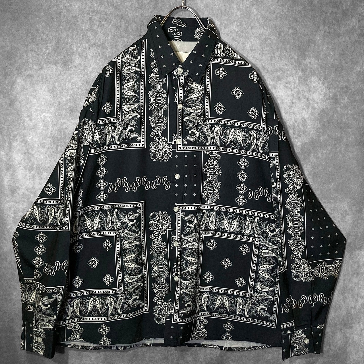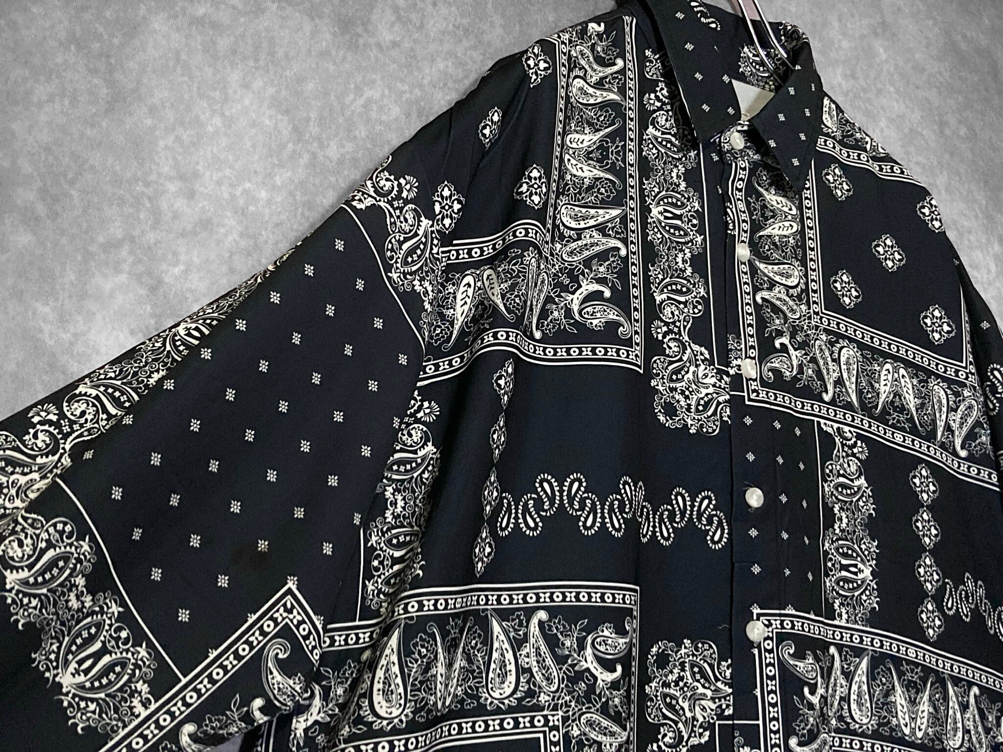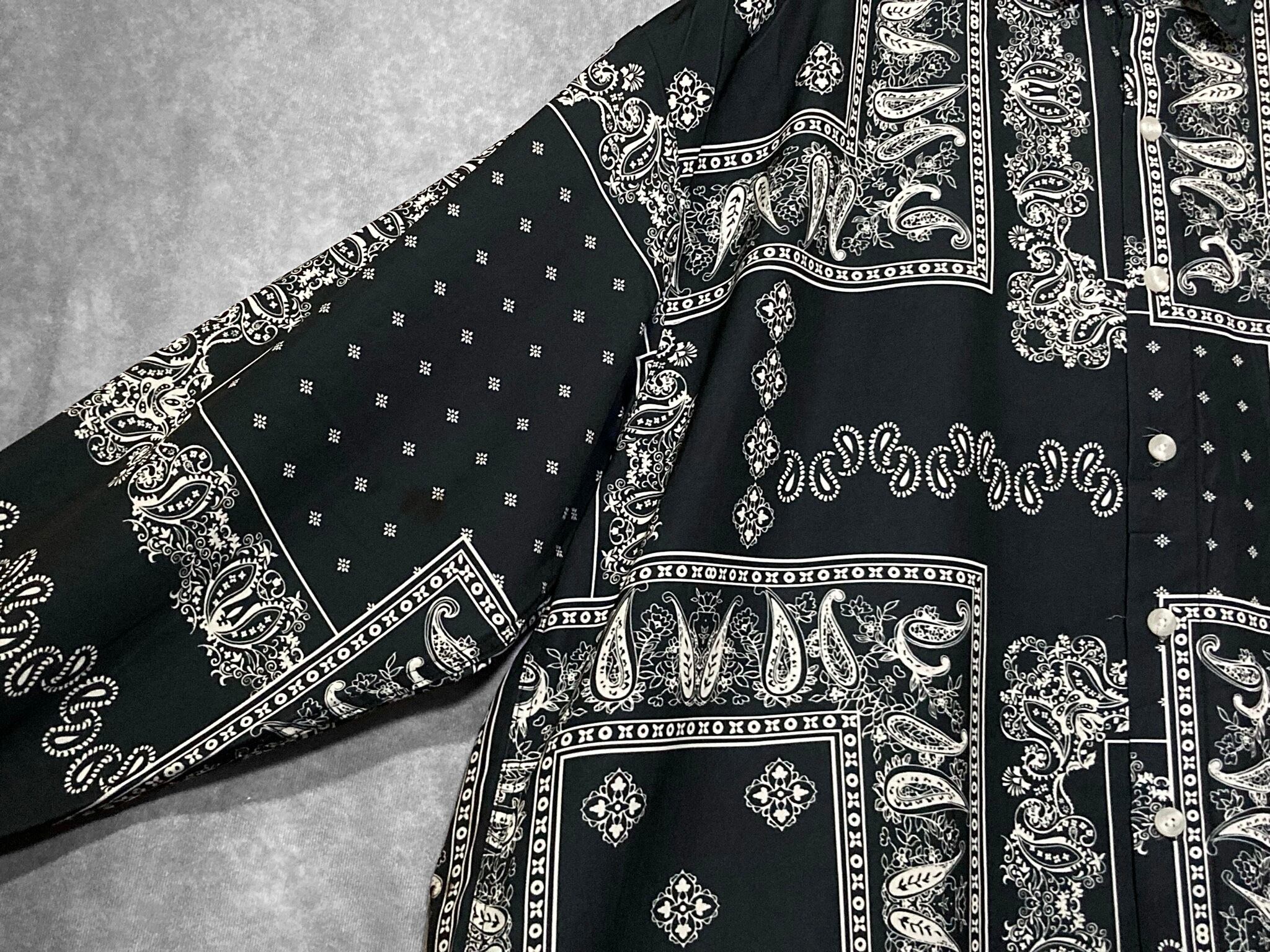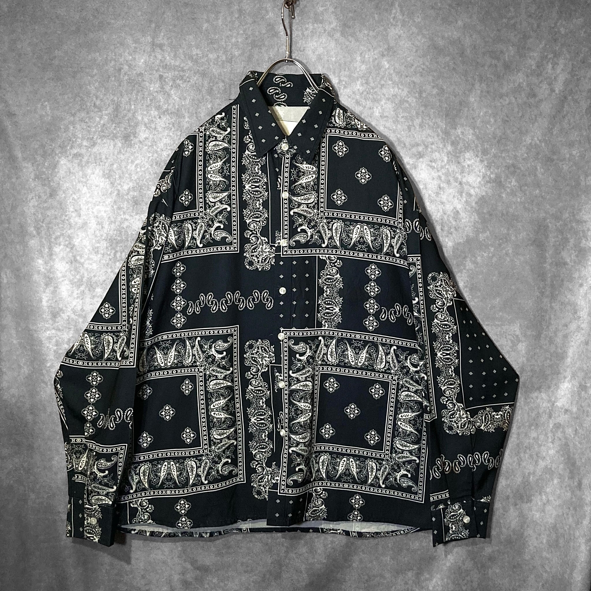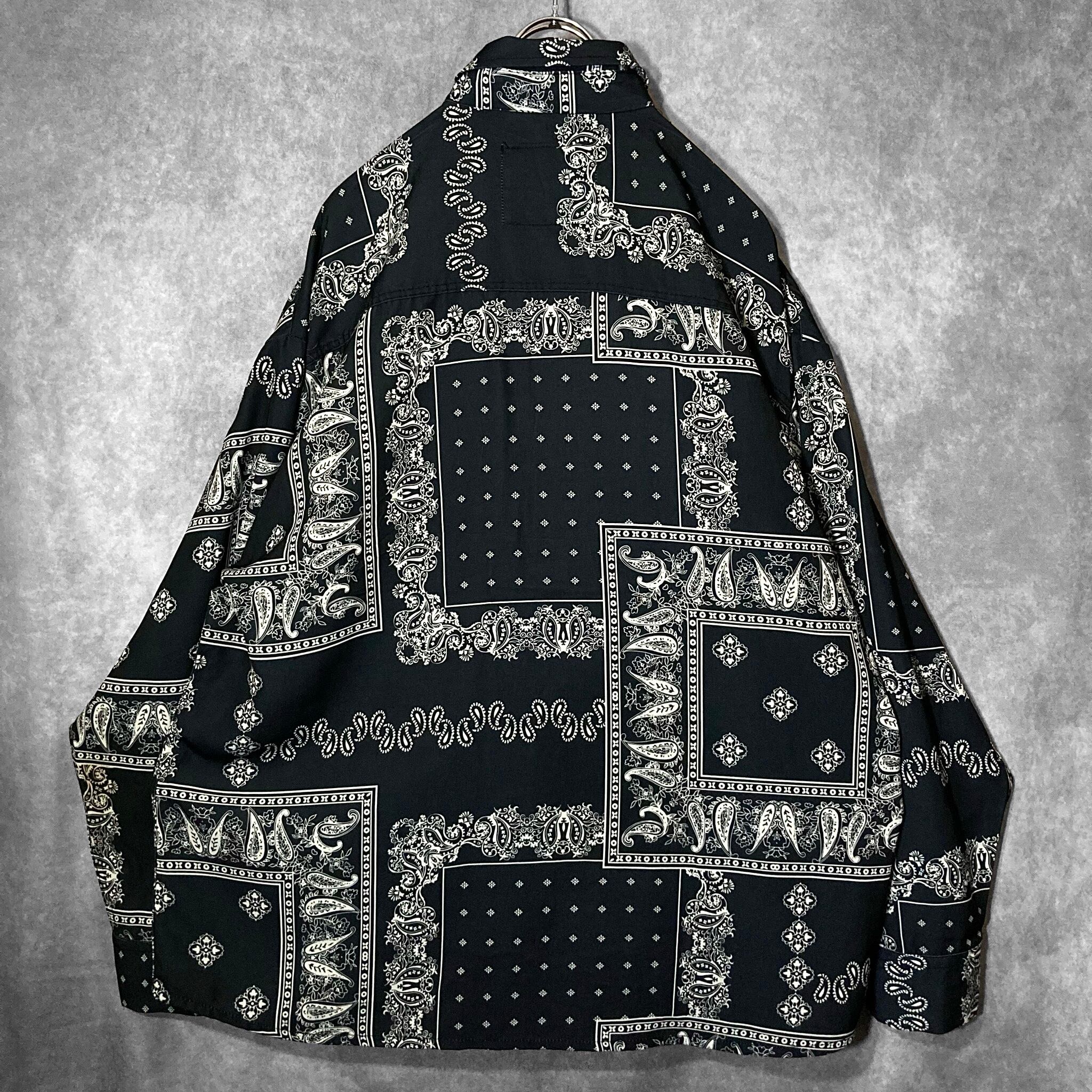 XXL Black × White Bewitching Paisley pattern design L/S Shirt