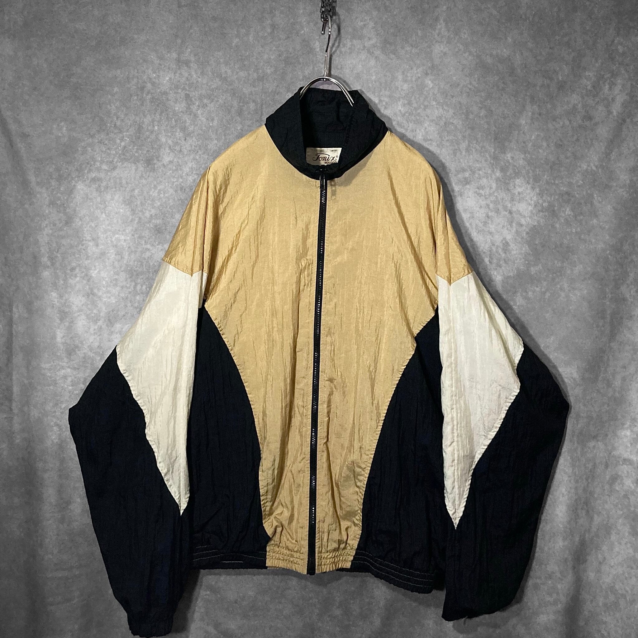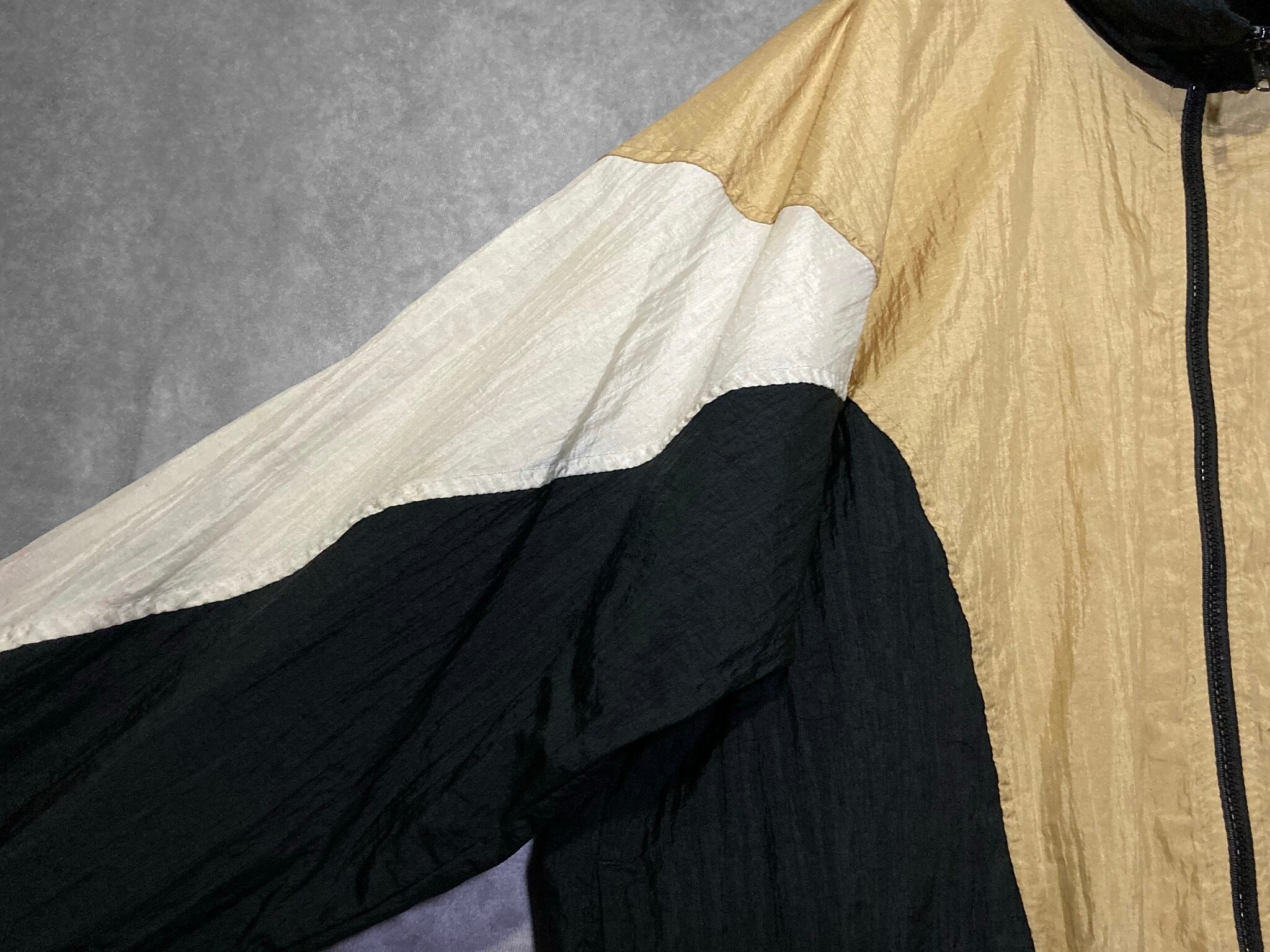 Primrose Yellow × Black Color Block pattern Combination design Nylon jacket