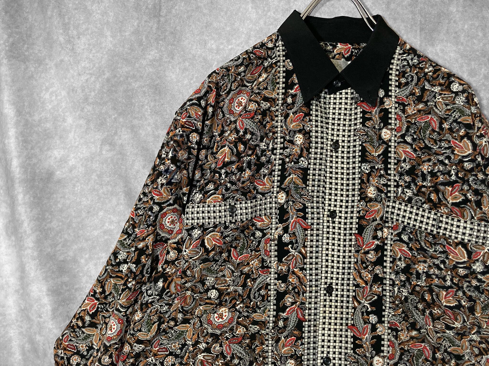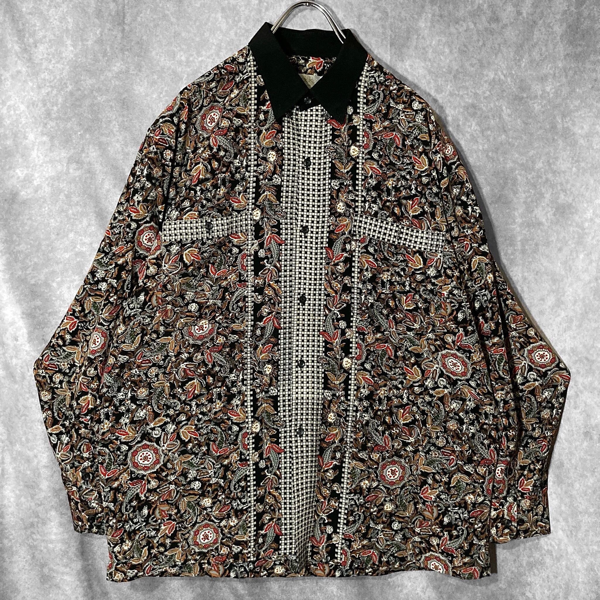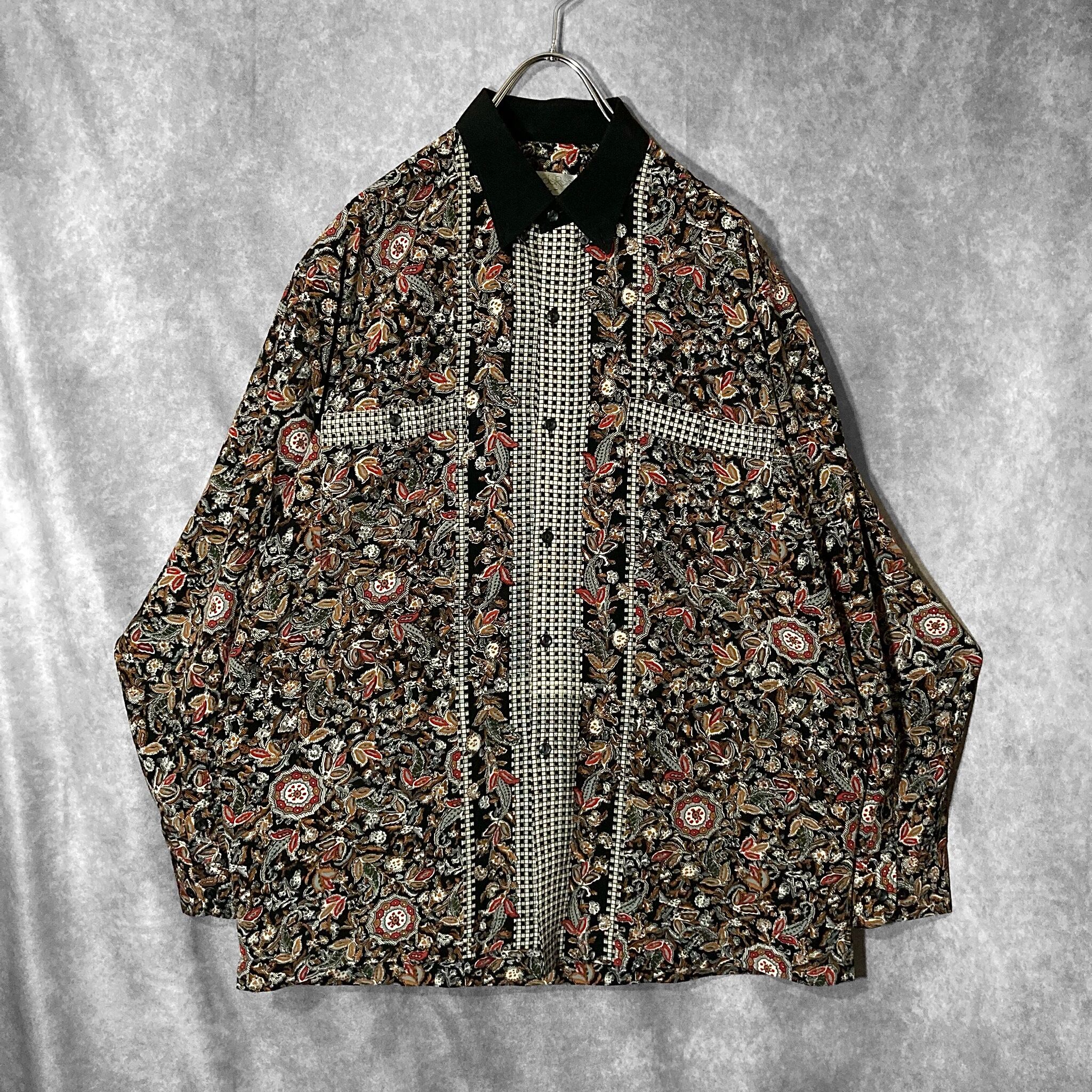 XL 劇画 Hand drawn Leaf pattern × Switch collar pattern design L/S shirt