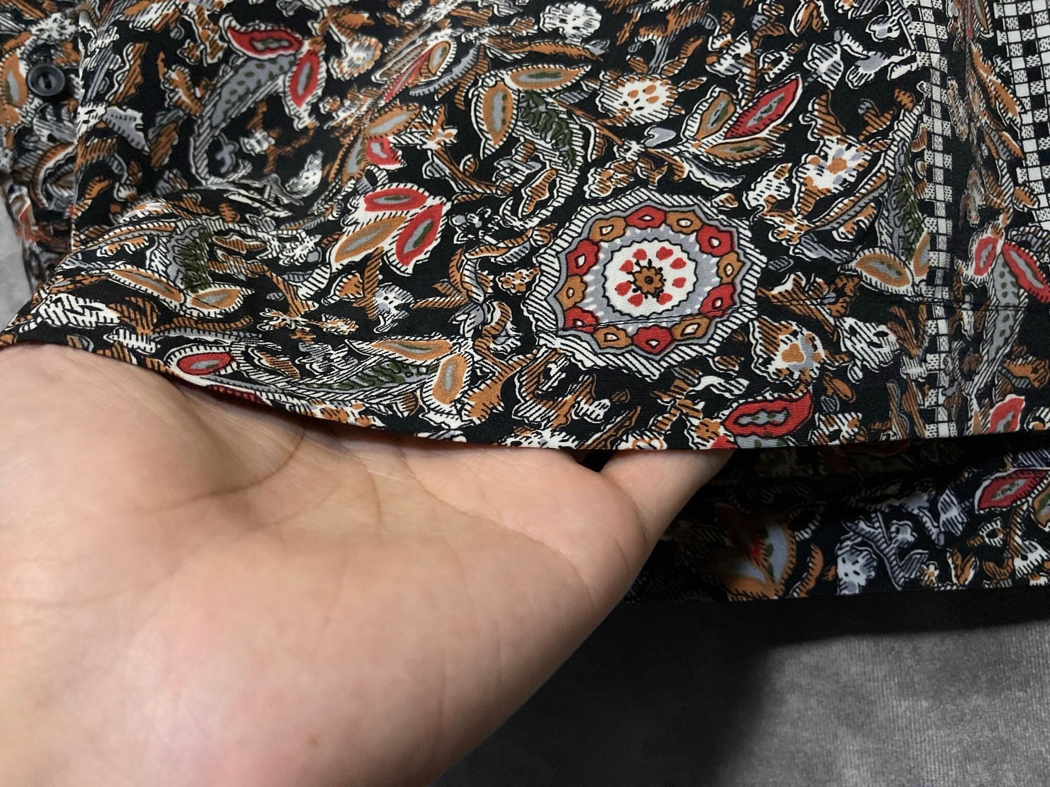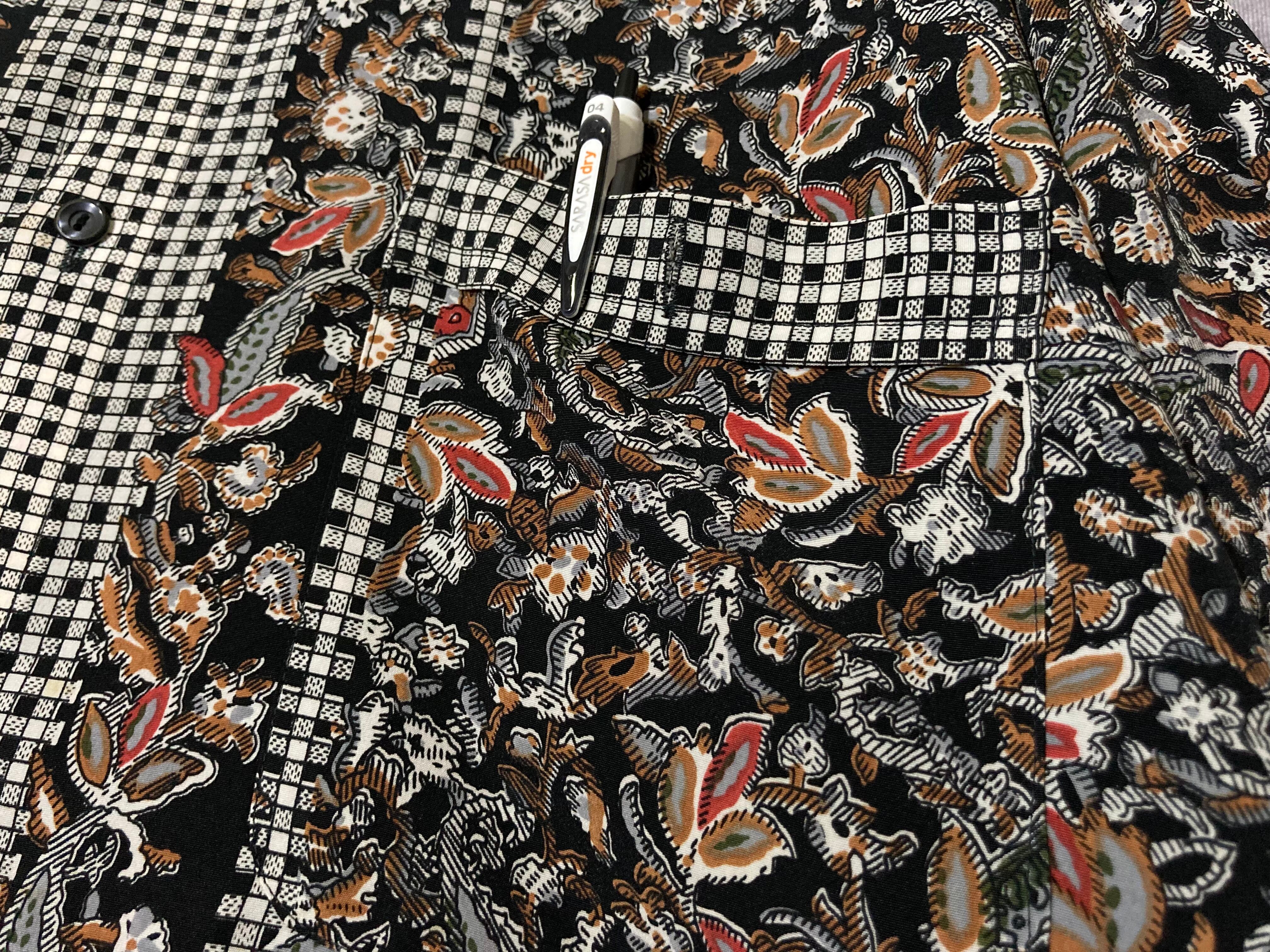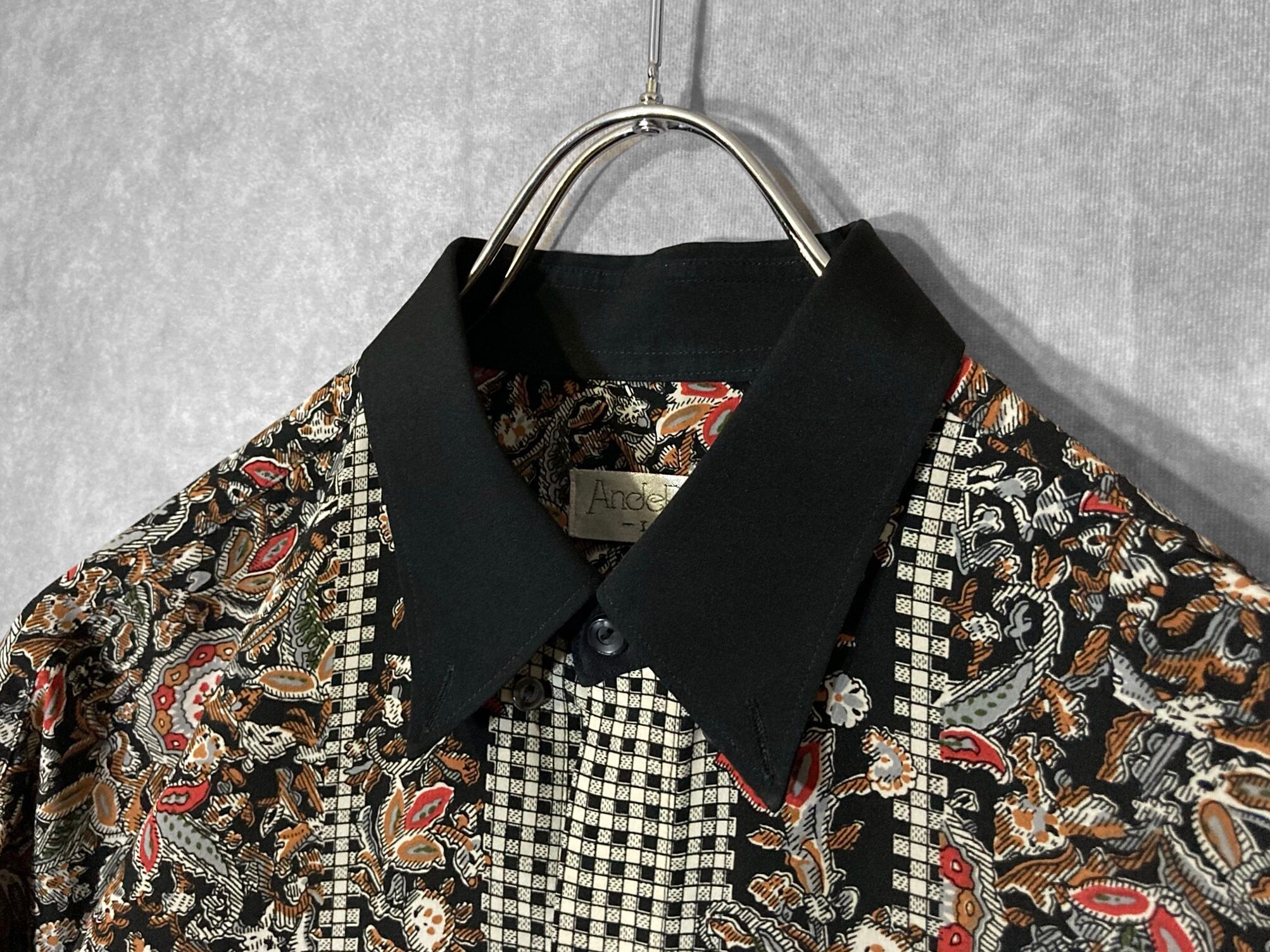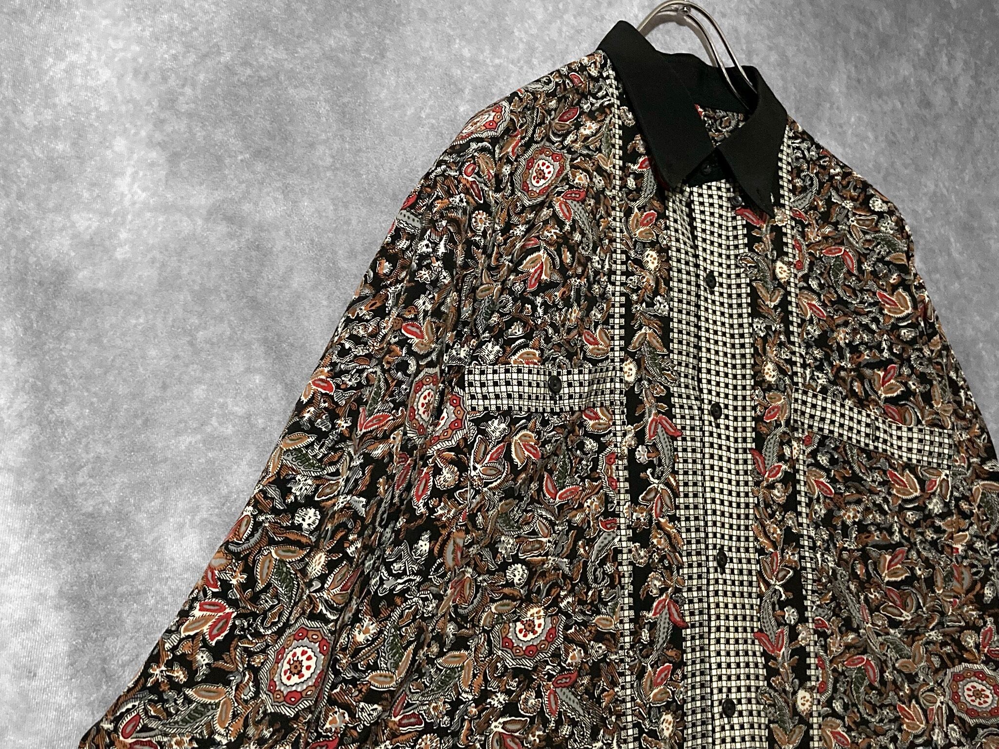 XL 劇画 Hand drawn Leaf pattern × Switch collar pattern design L/S shirt