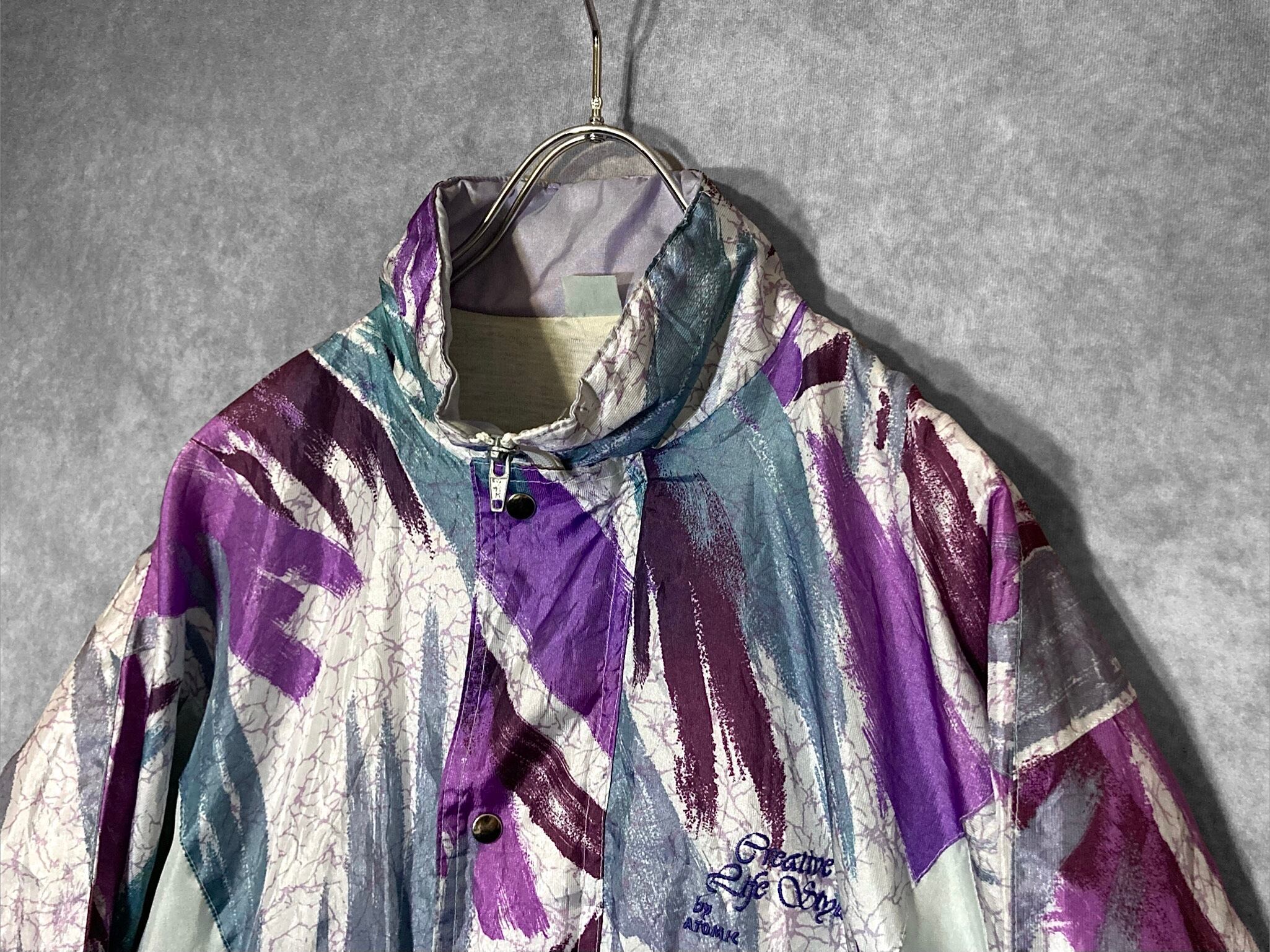 Purple × Snow white Hand drawn art design Nylon blouson
