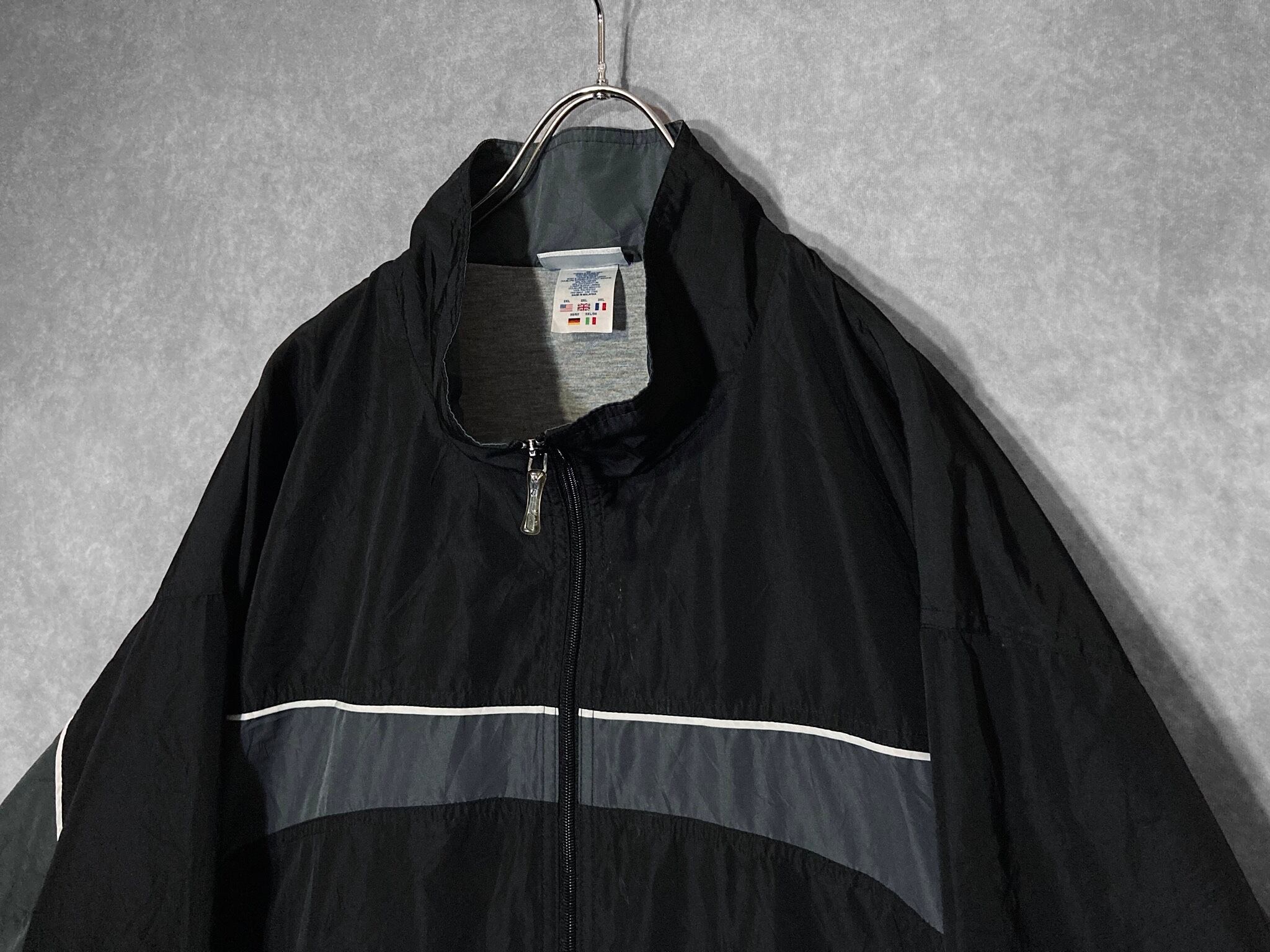 Reebok XXL Monochrome color × Piping line combination design Over-size Full-zip jacket