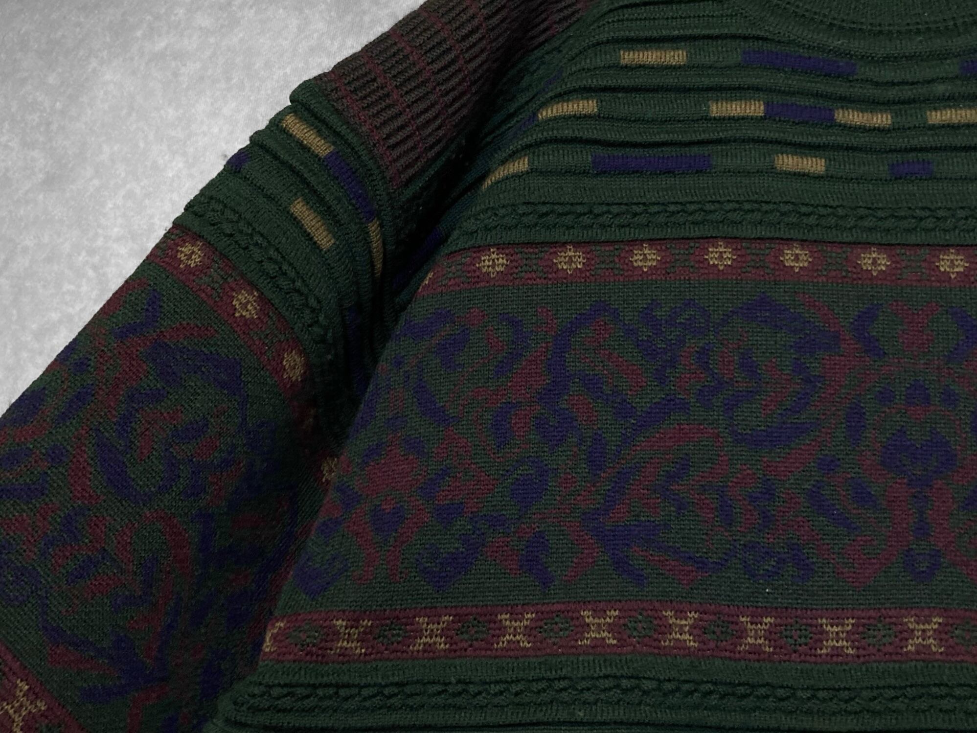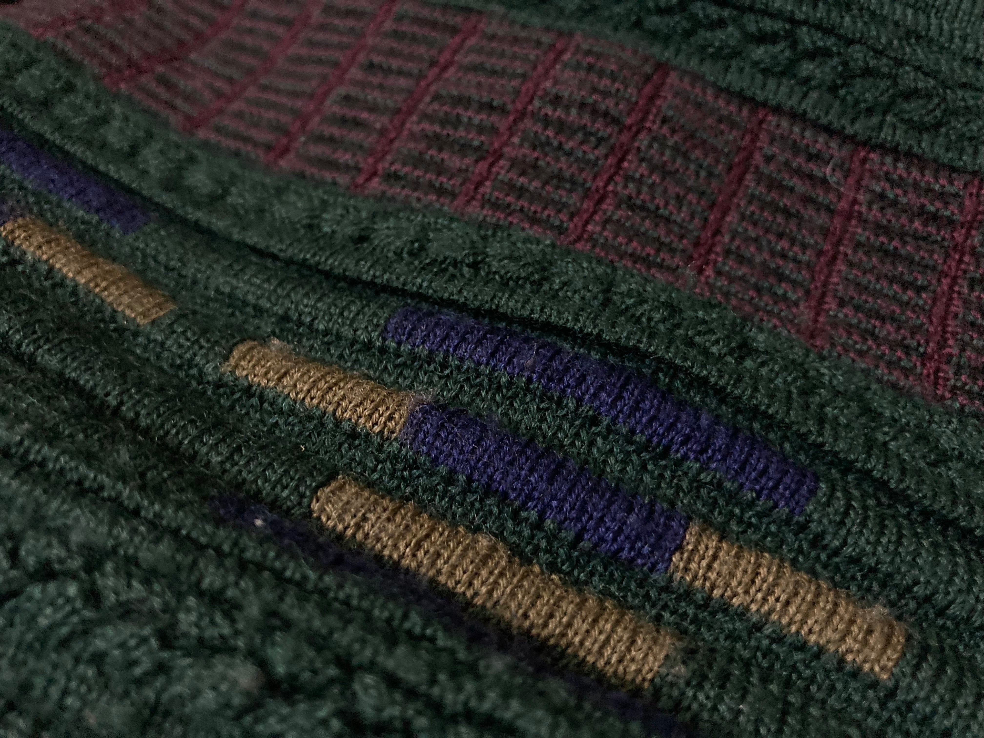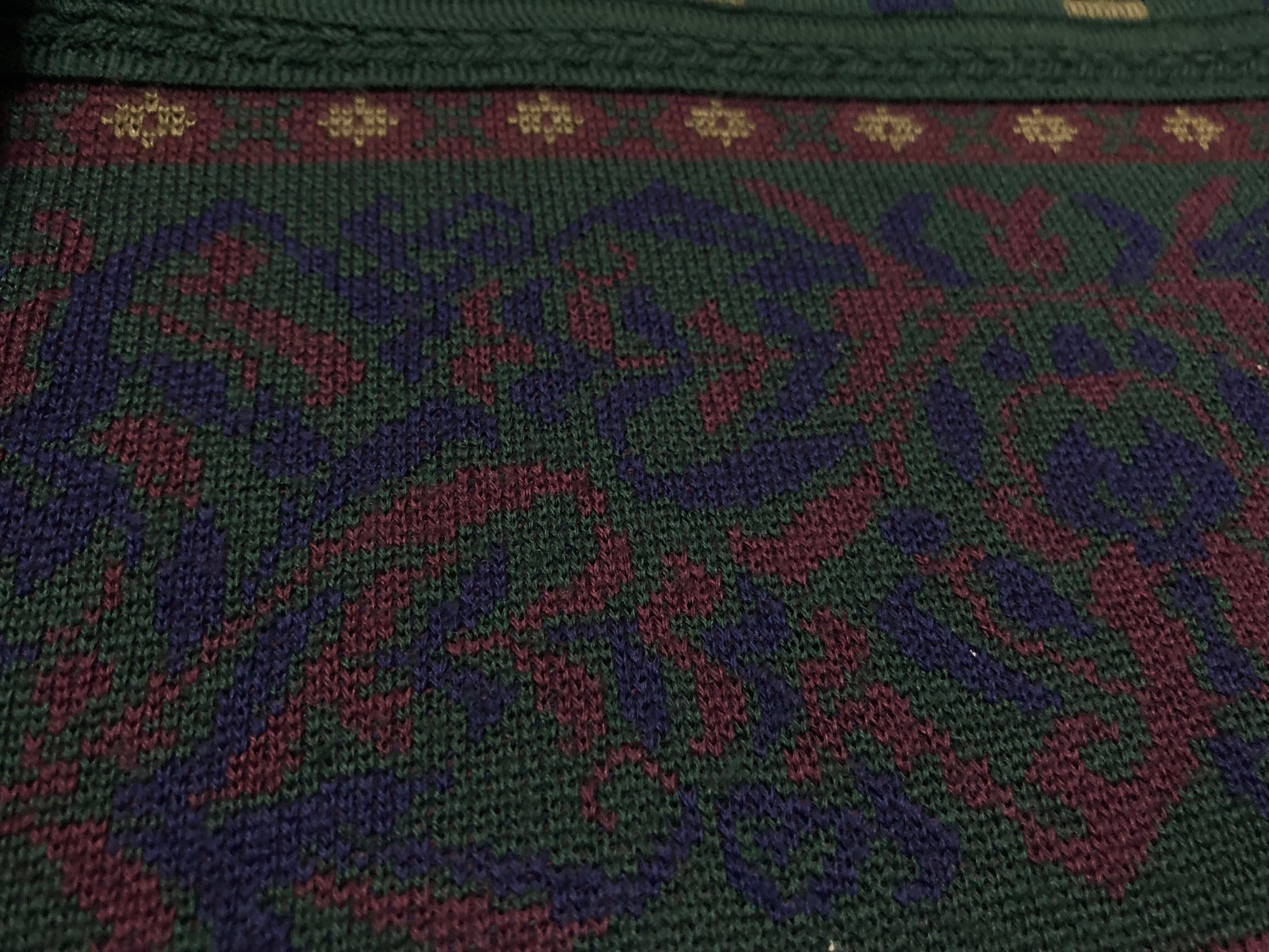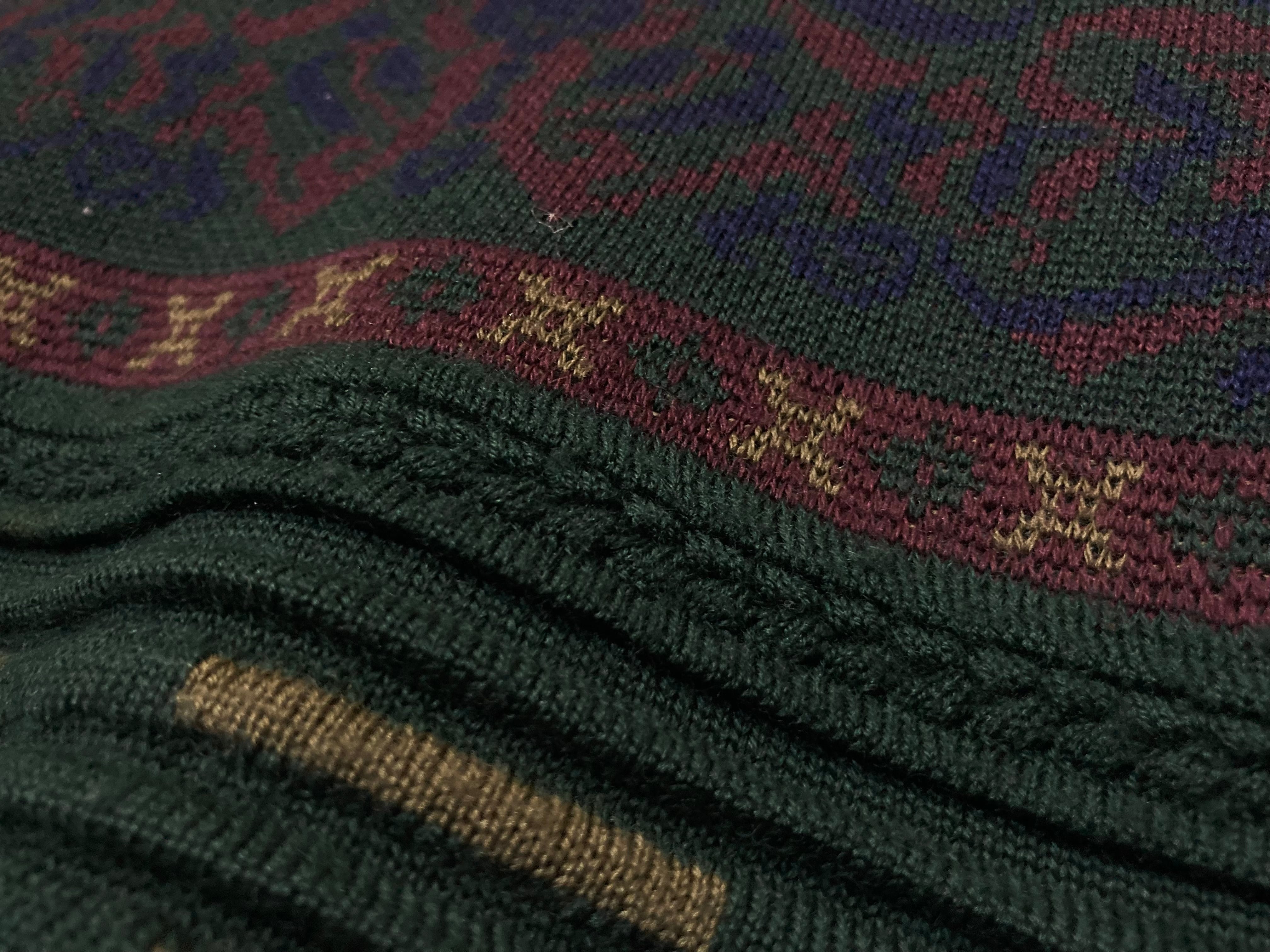 Dark green color Gobelins pattern × Embossed design knit