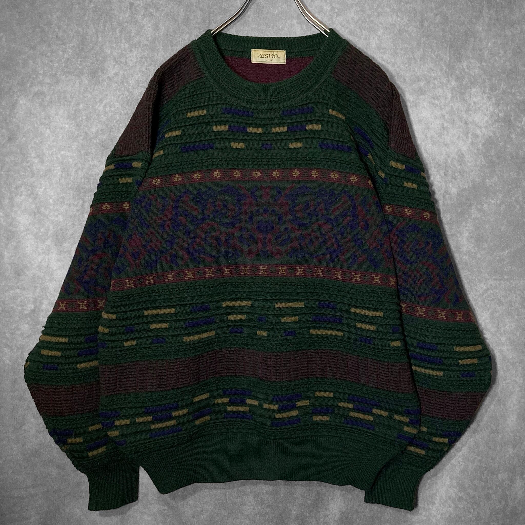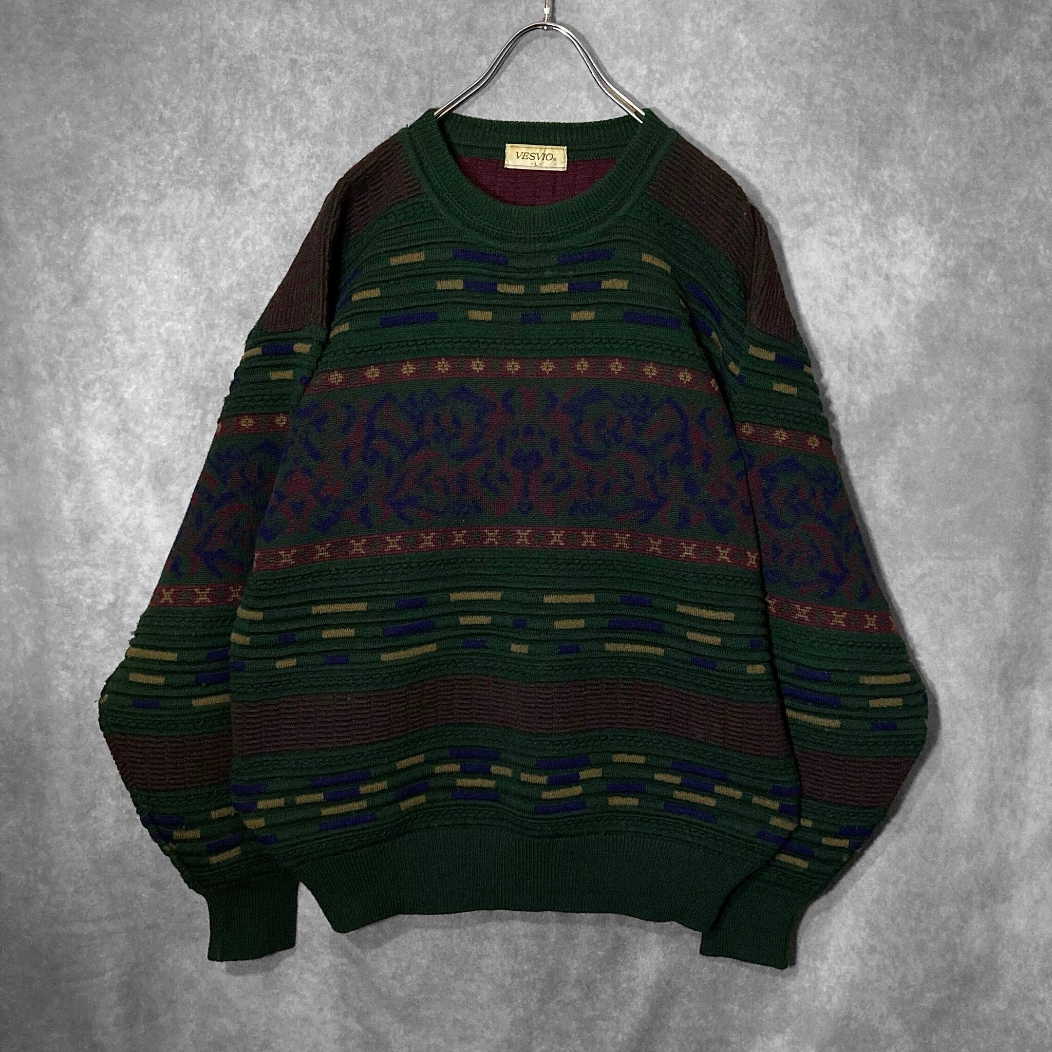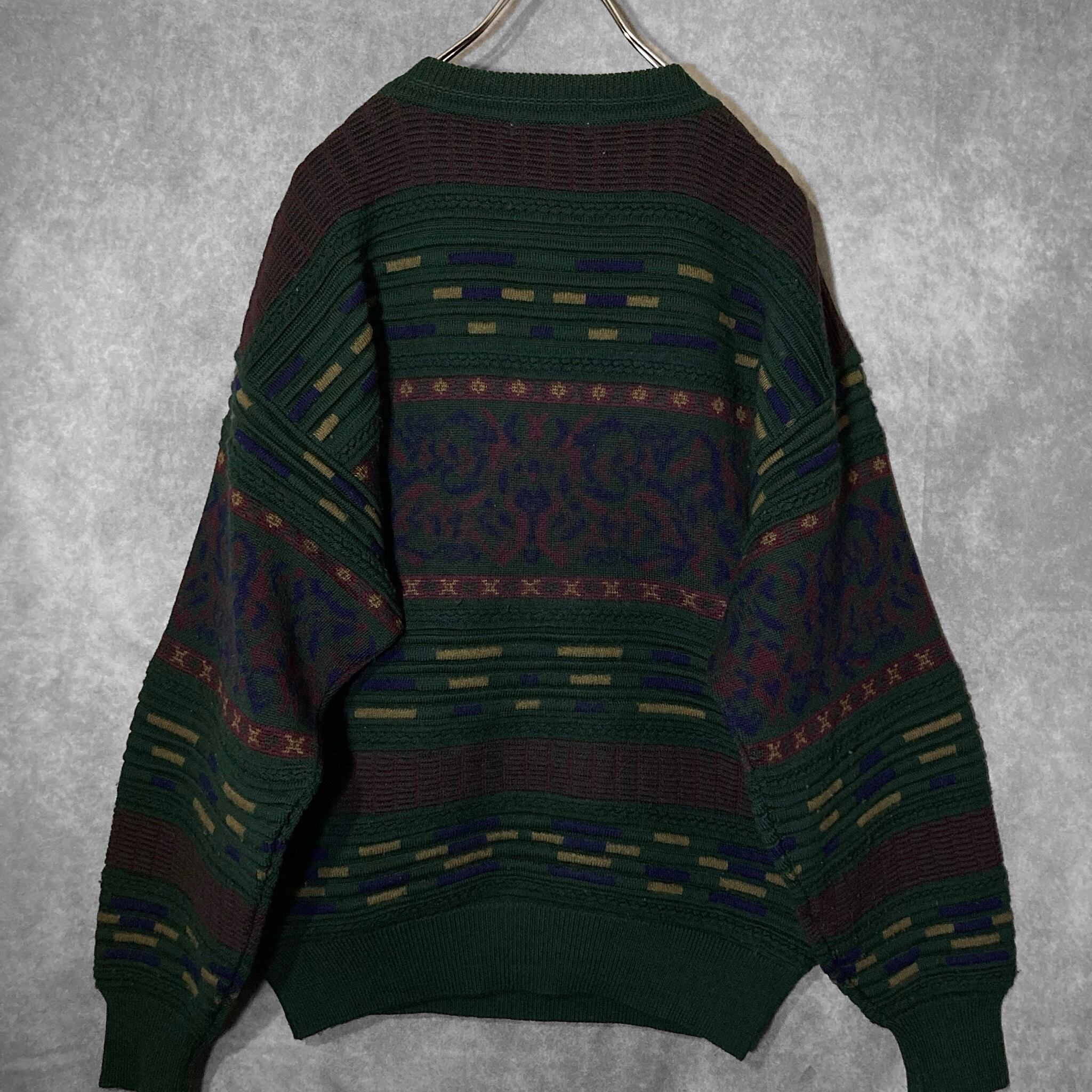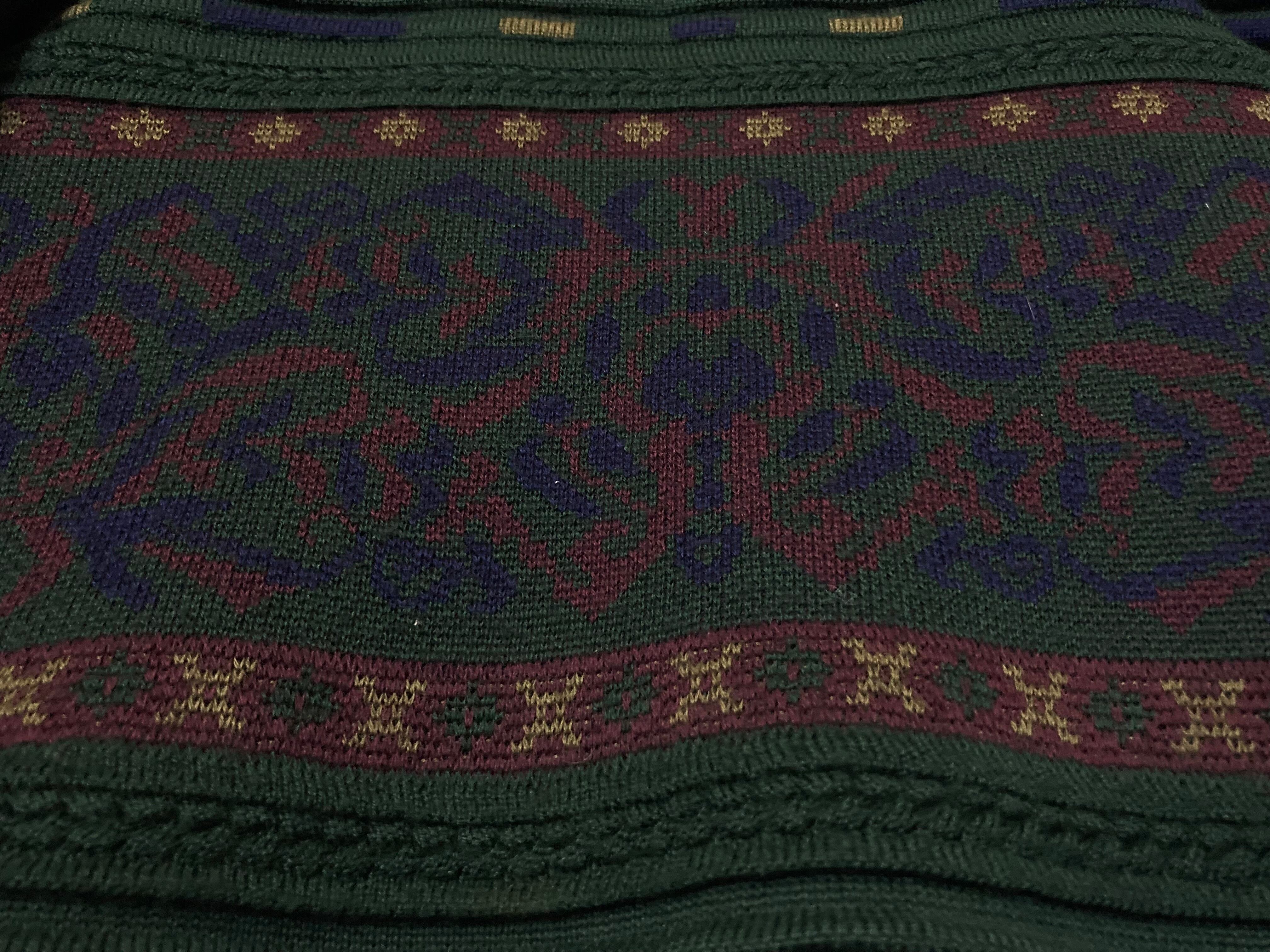 Dark green color Gobelins pattern × Embossed design knit