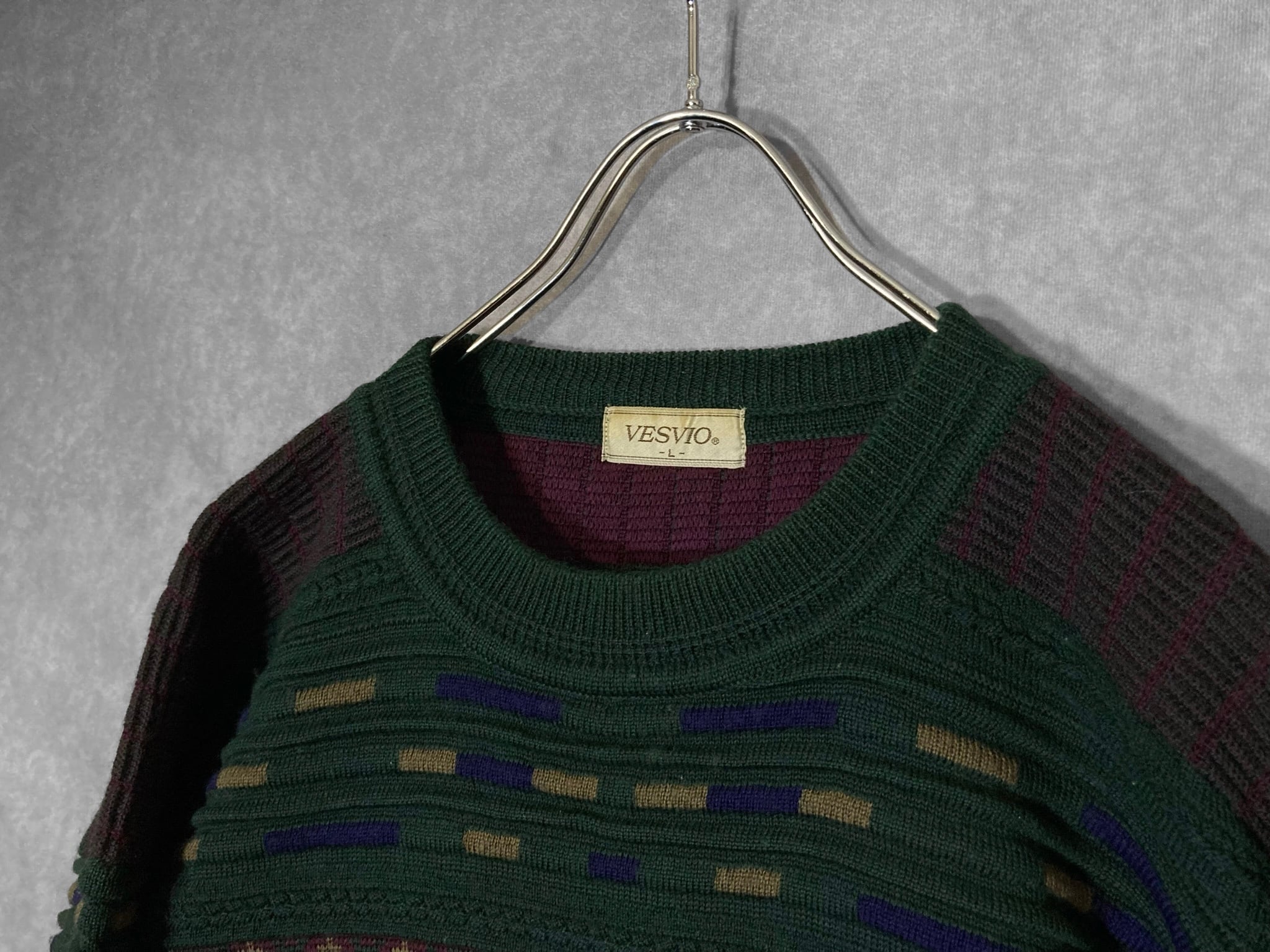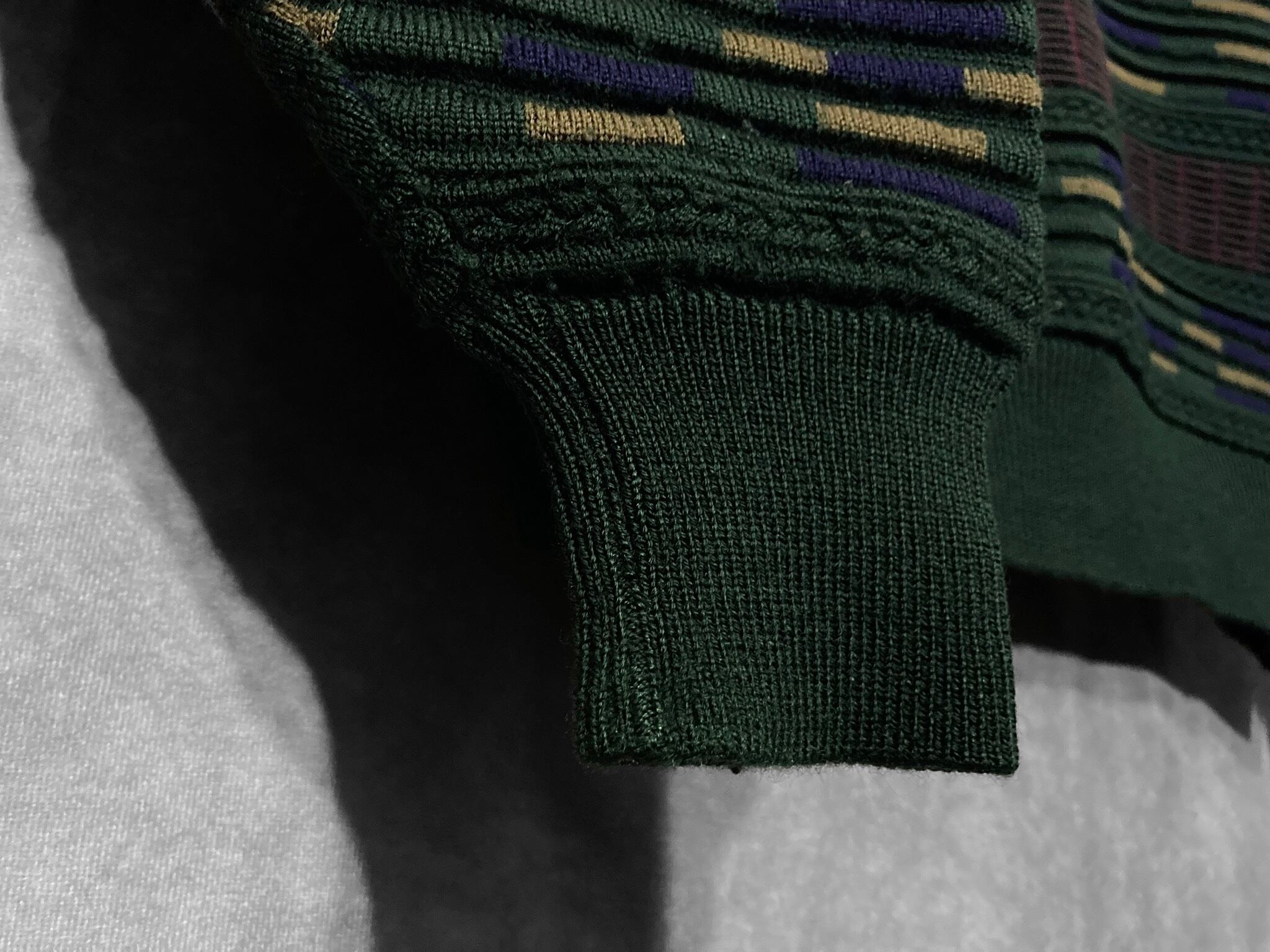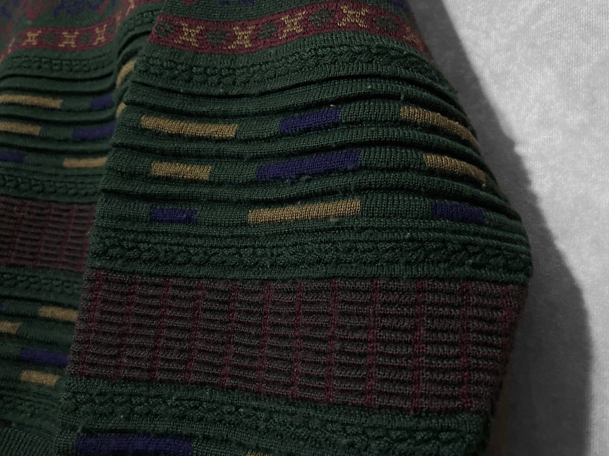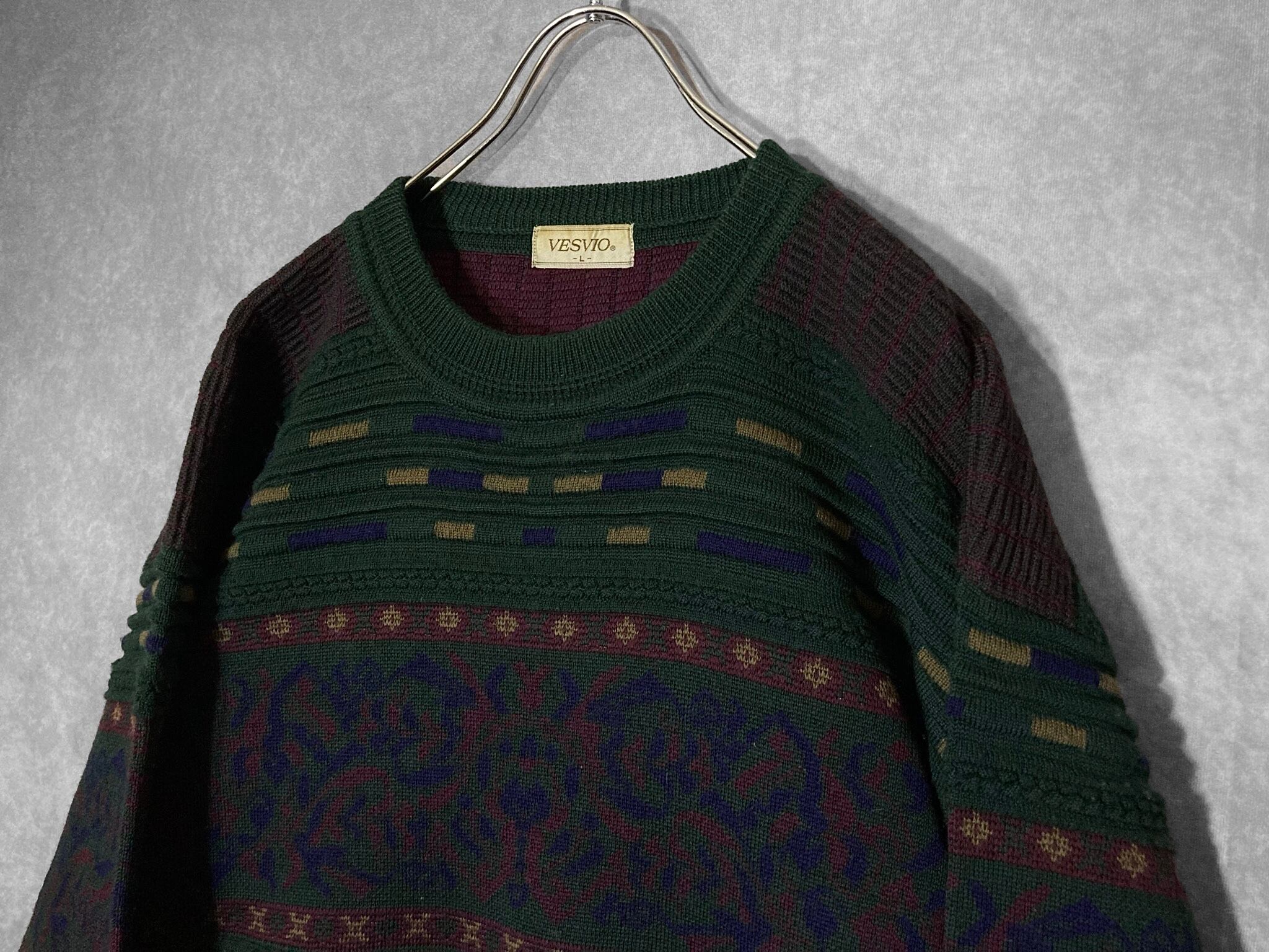 Dark green color Gobelins pattern × Embossed design knit