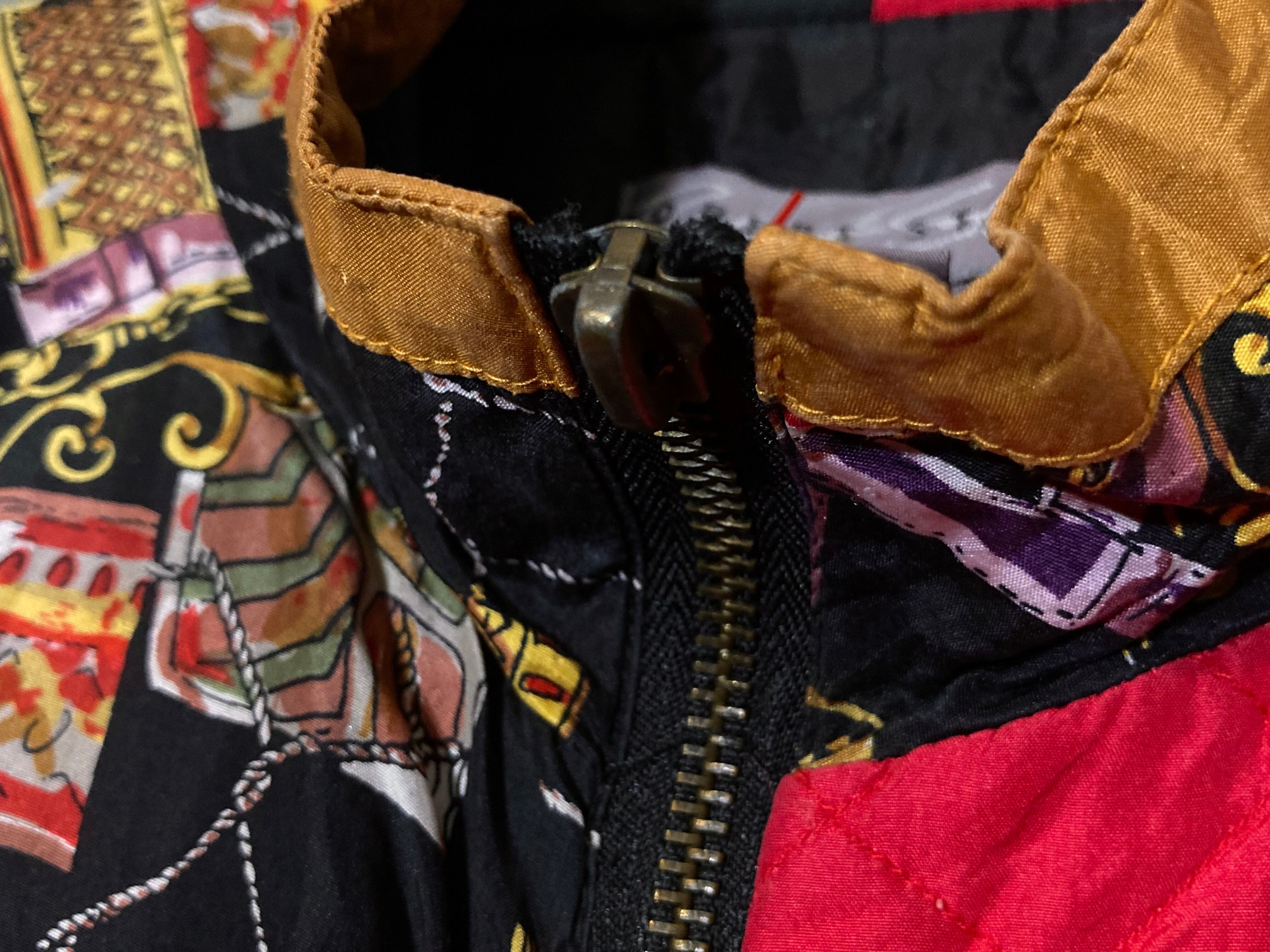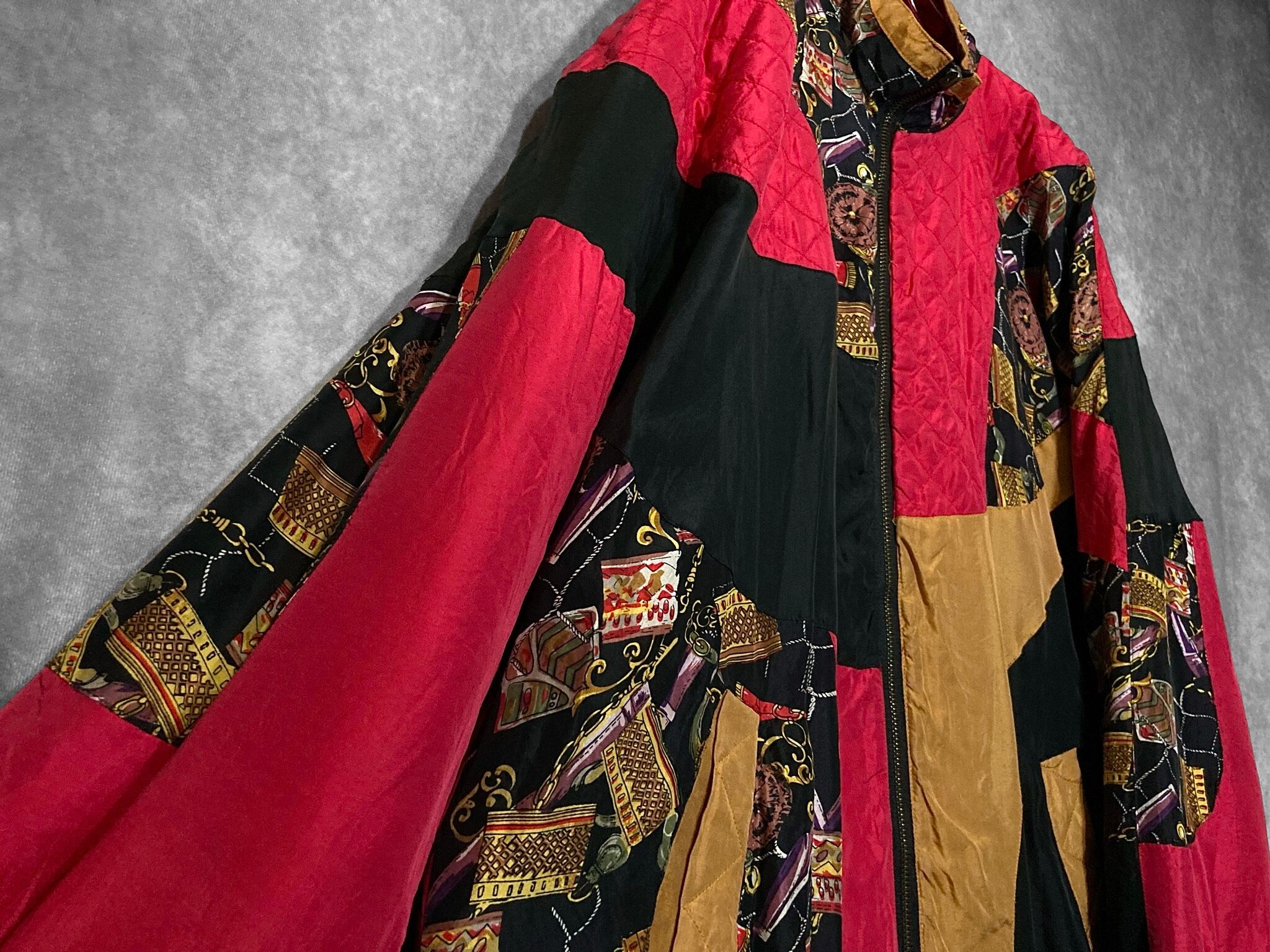 XL Ornament pattern × Switching design Silk jacket