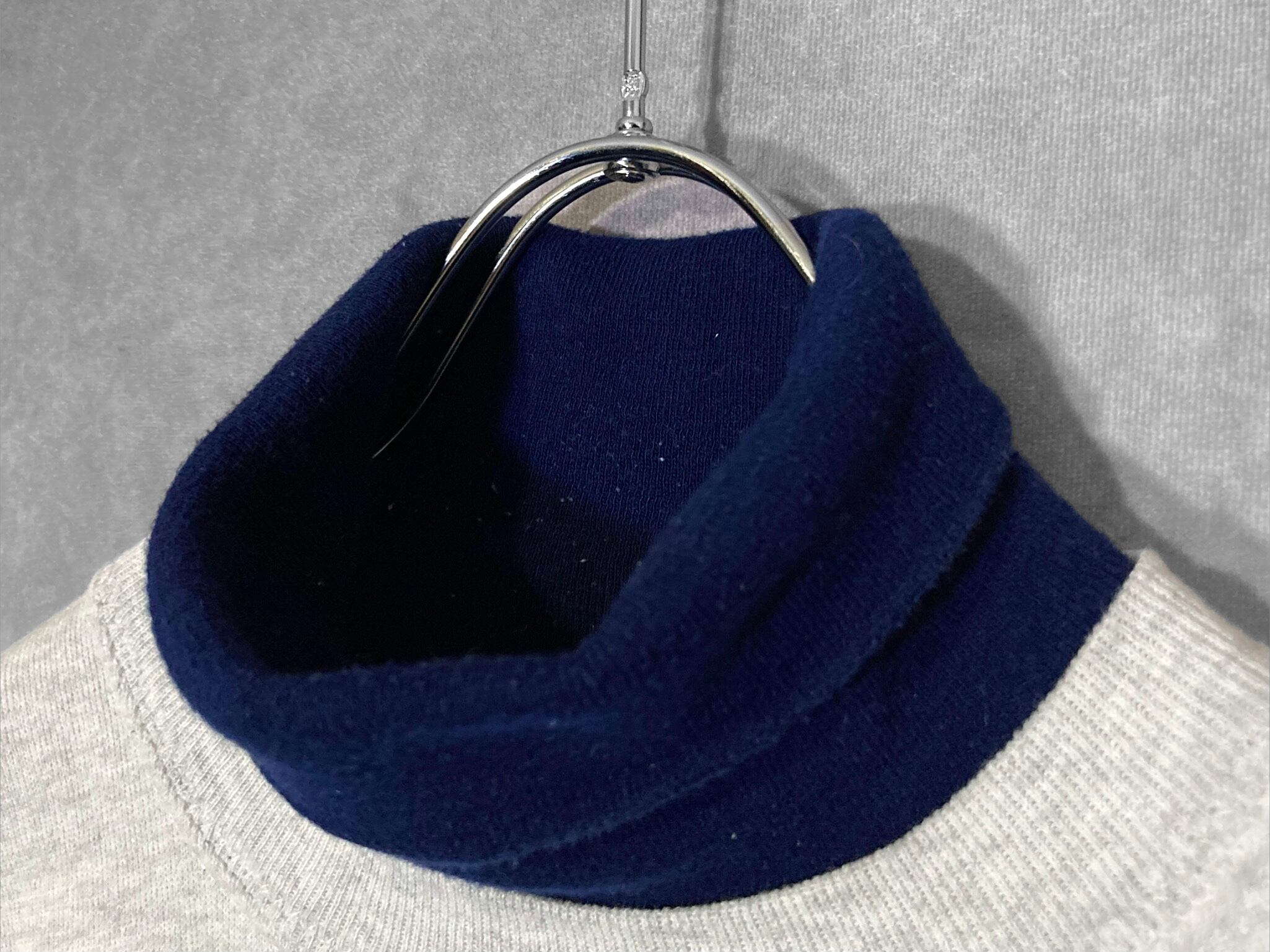 タートルネックのようになった薄手のニットとドッキングしたようなデザインになっており、首元が寒い秋冬のインナーに推したい1着◎
