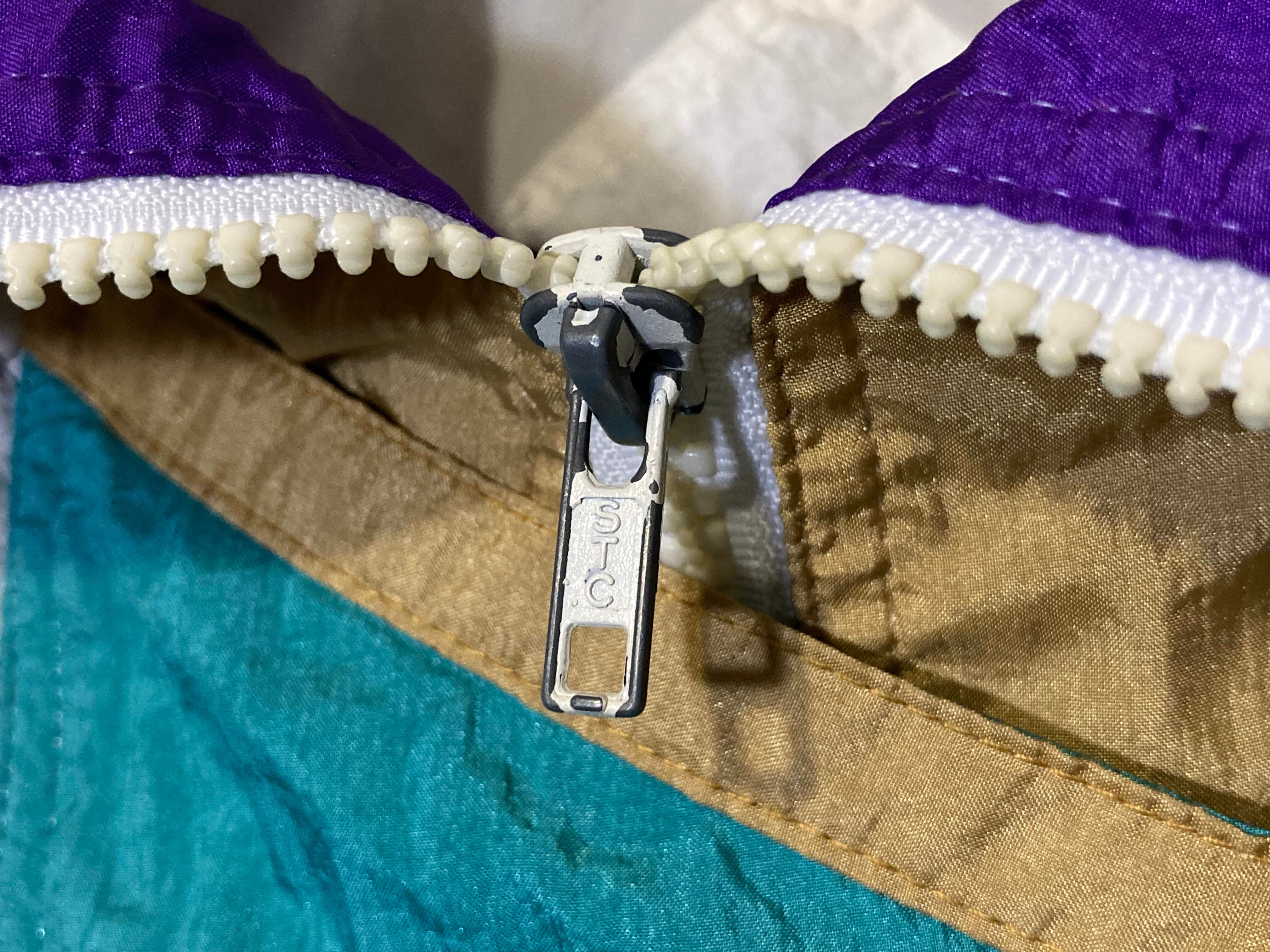 フルジップ式で襟をスタンドネックにしたり、裏地のパープルを見せたりと気分に合わせて2wayにできるのも魅力です〜◎
