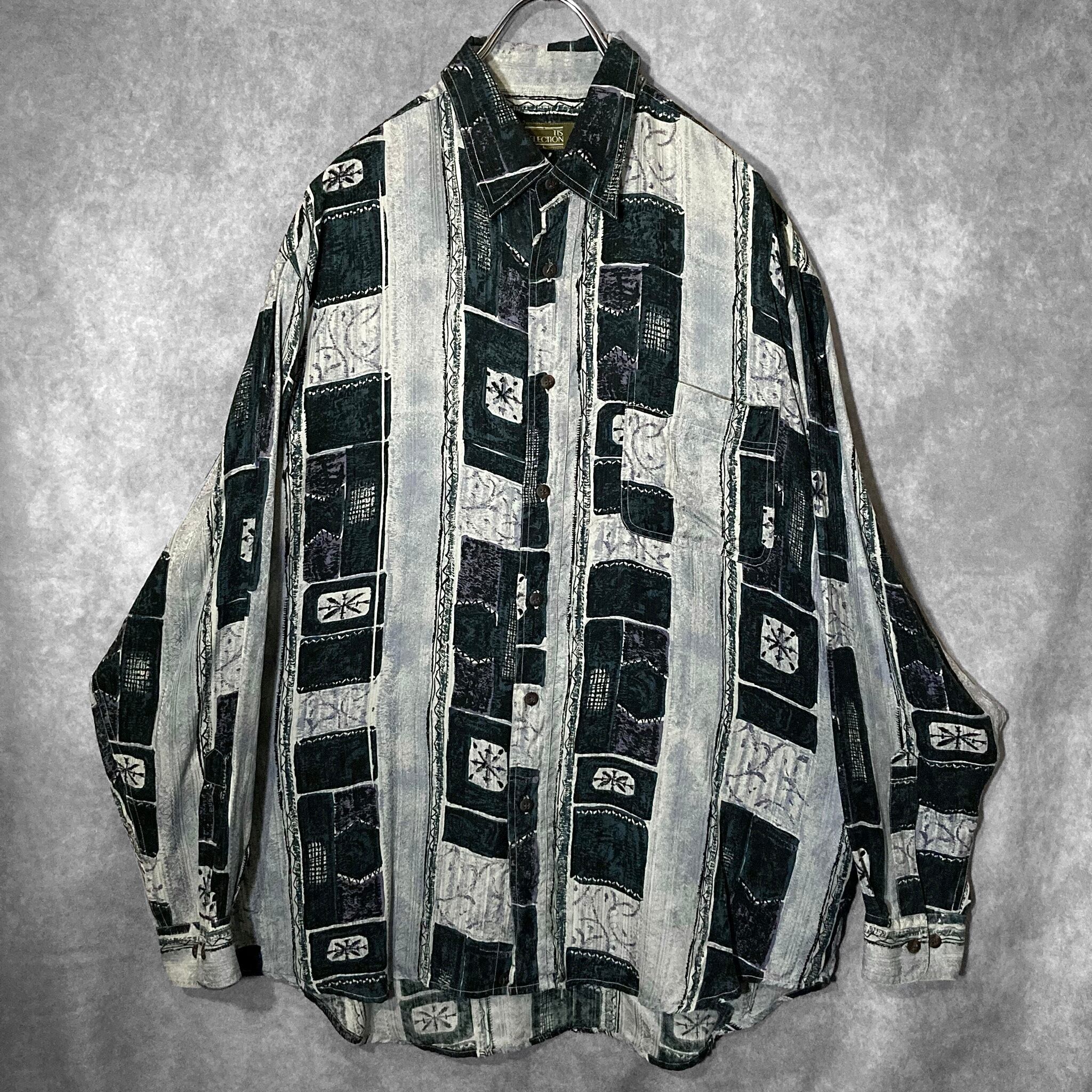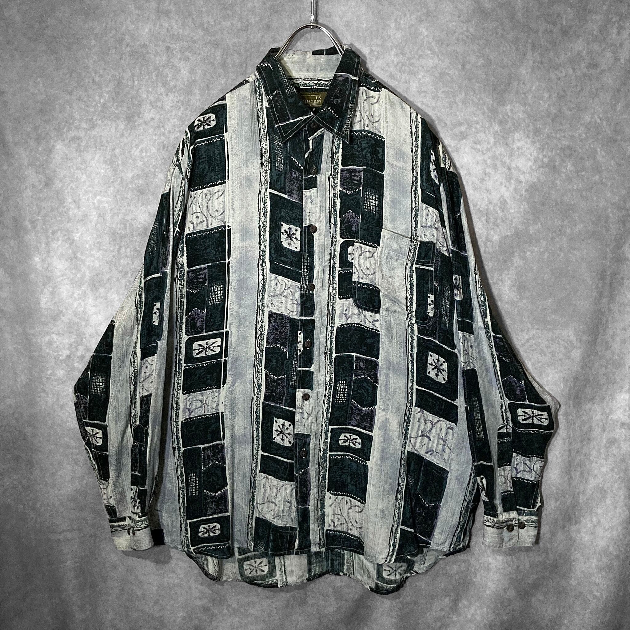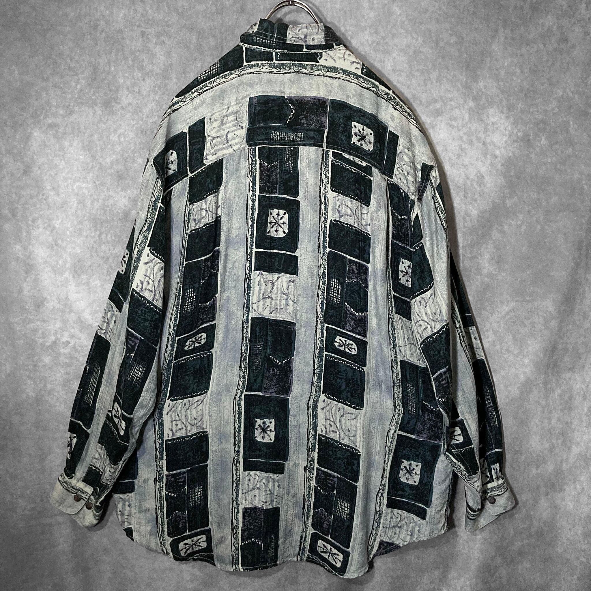 XL Monochrome color Hand drawn pattern art design L/S shirt