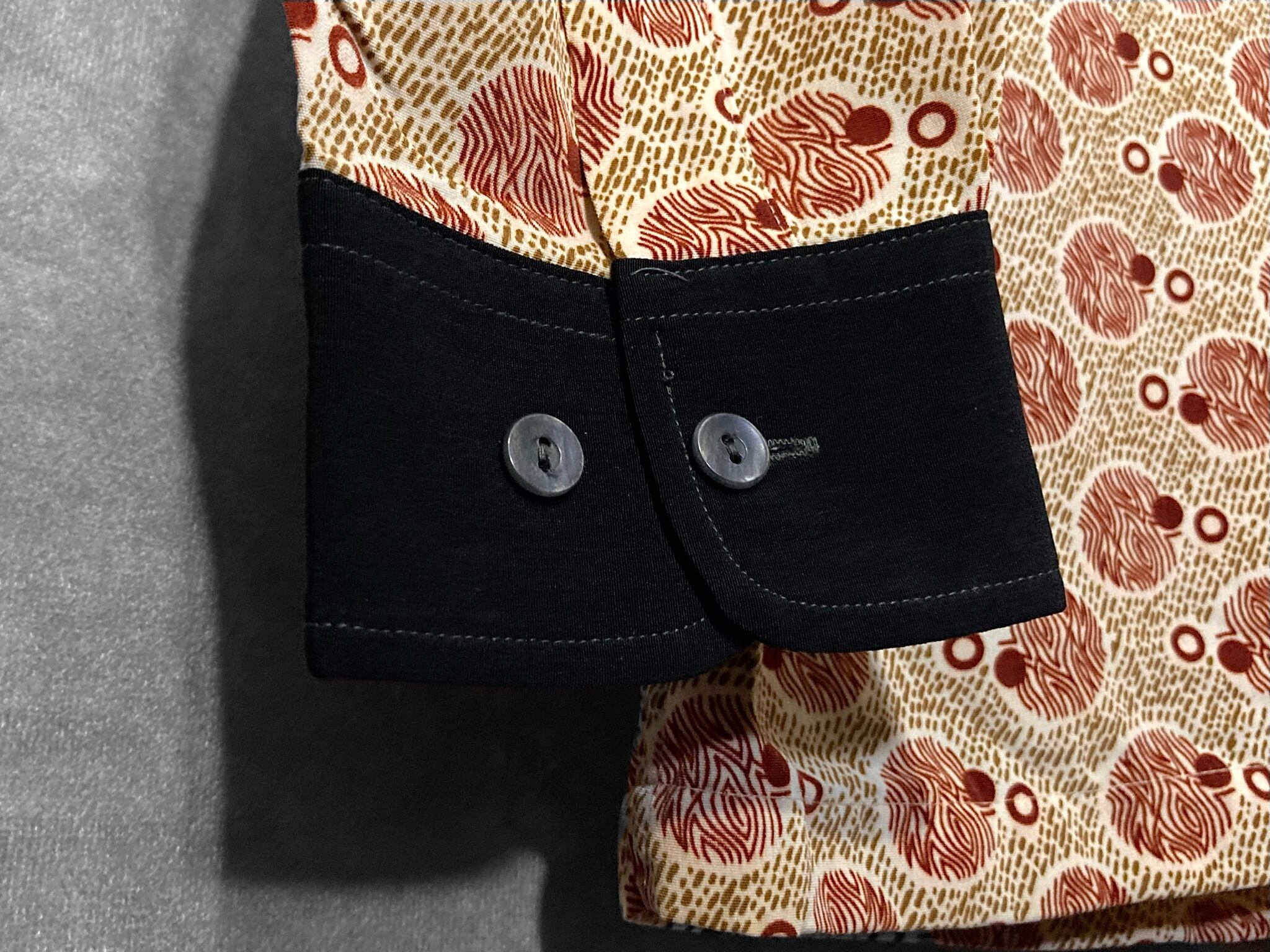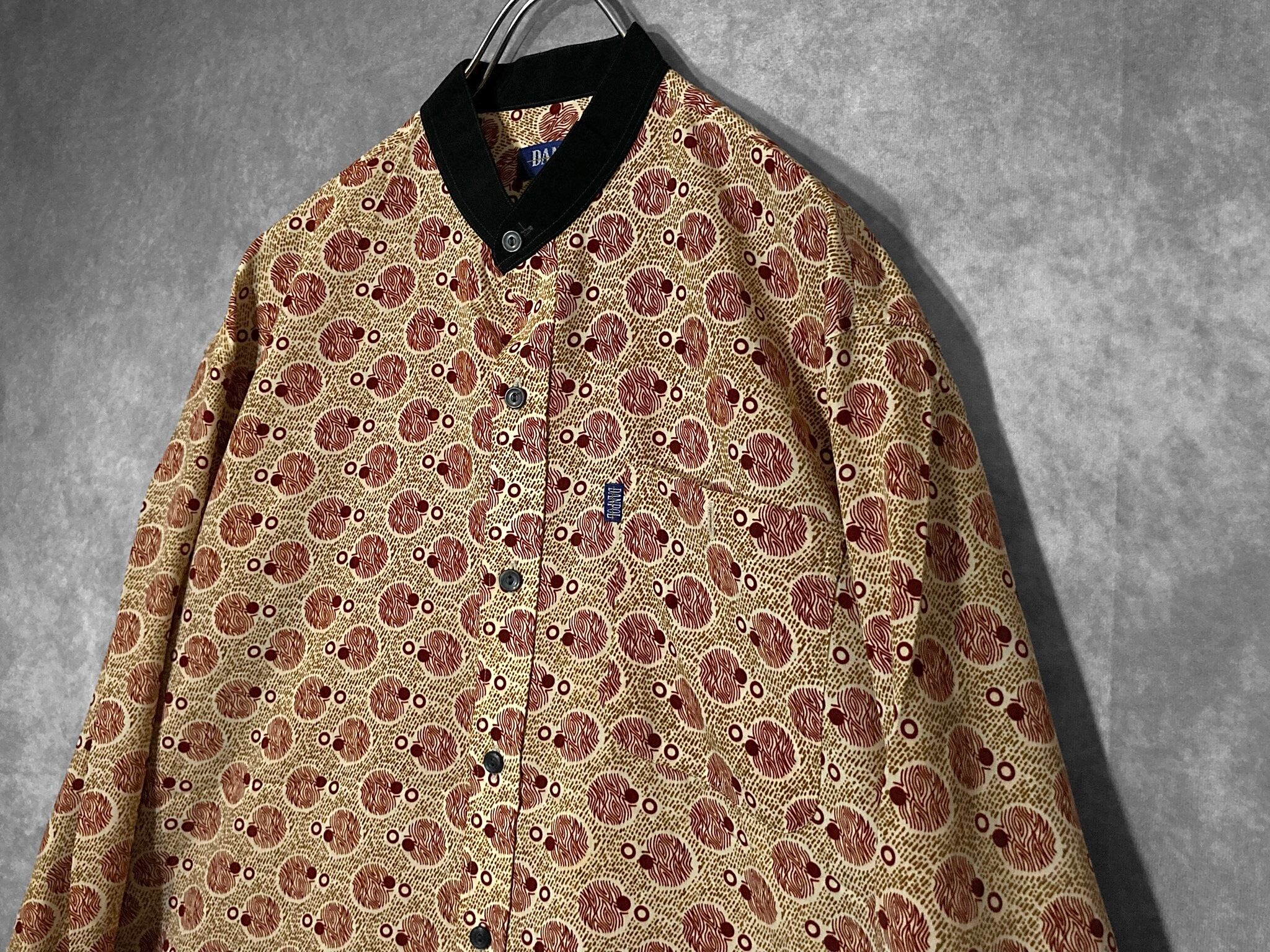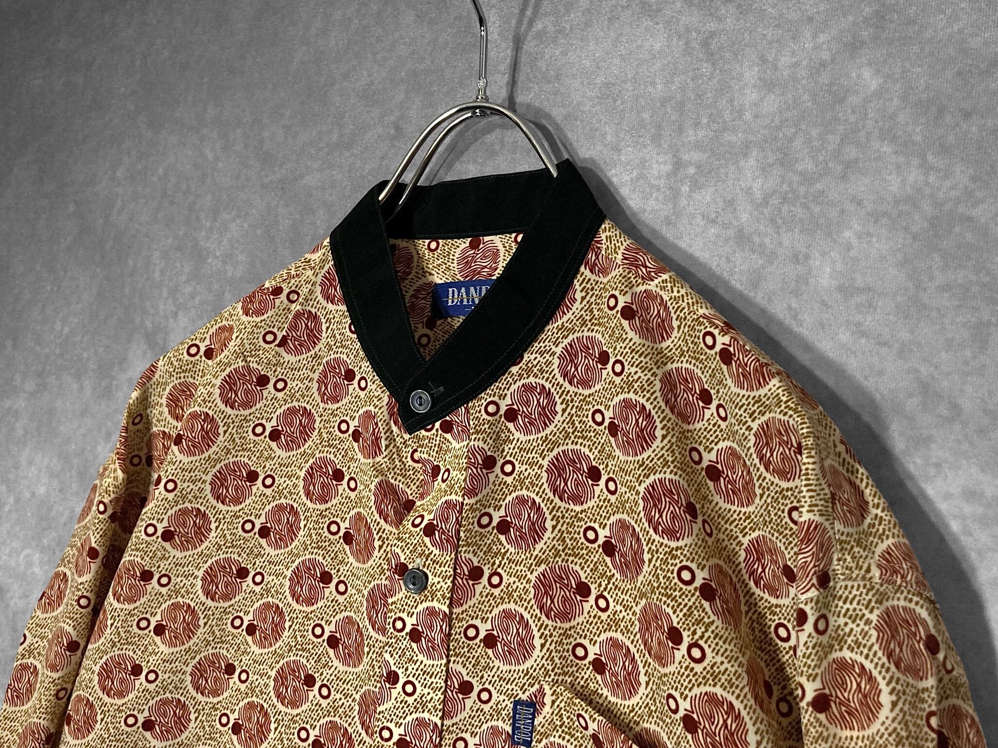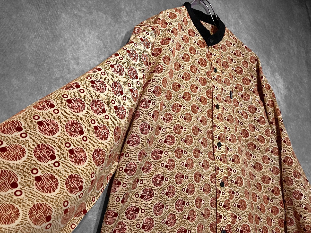 XL Japanese-ish Marble pattern all over design Band-collar L/S shirt