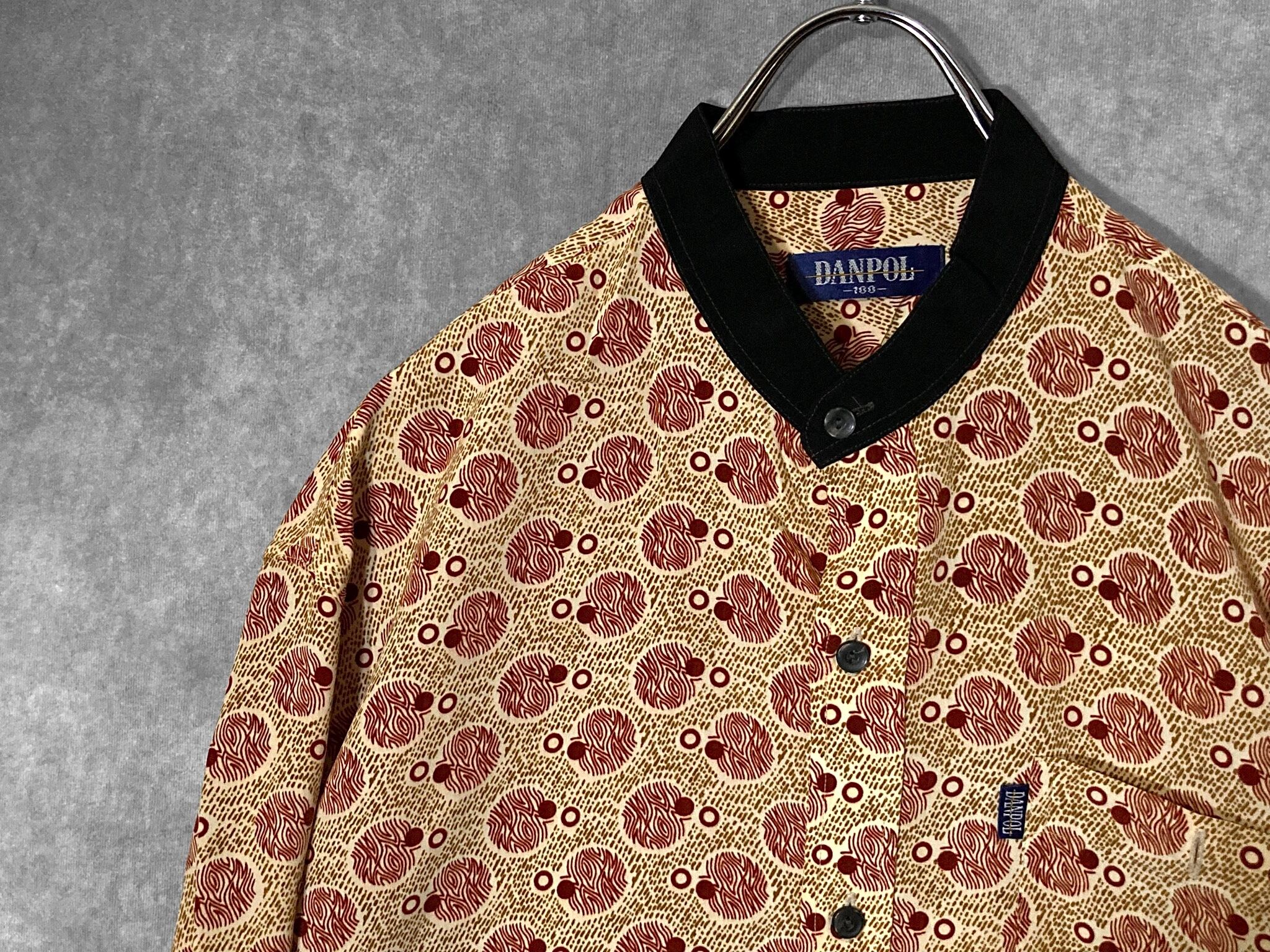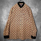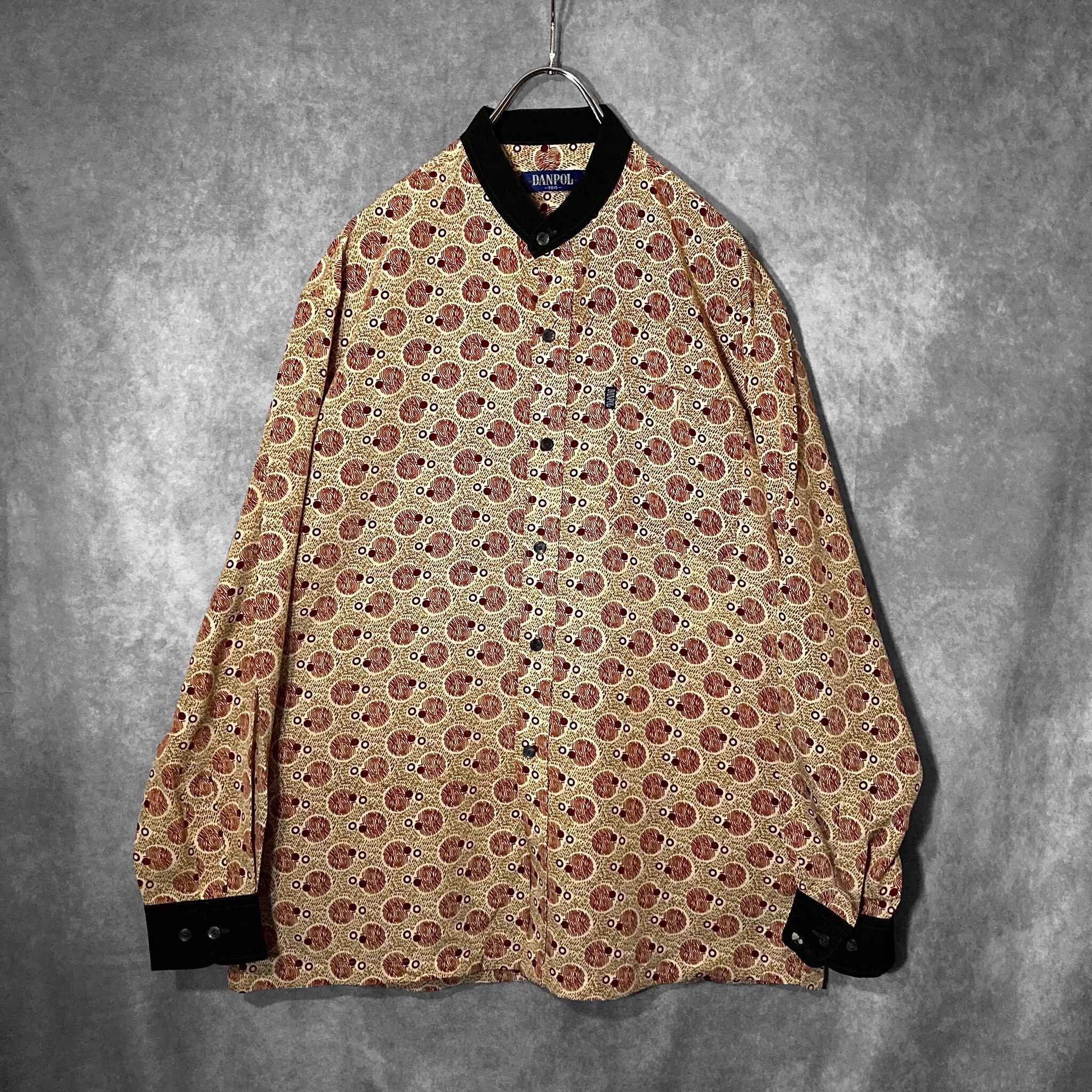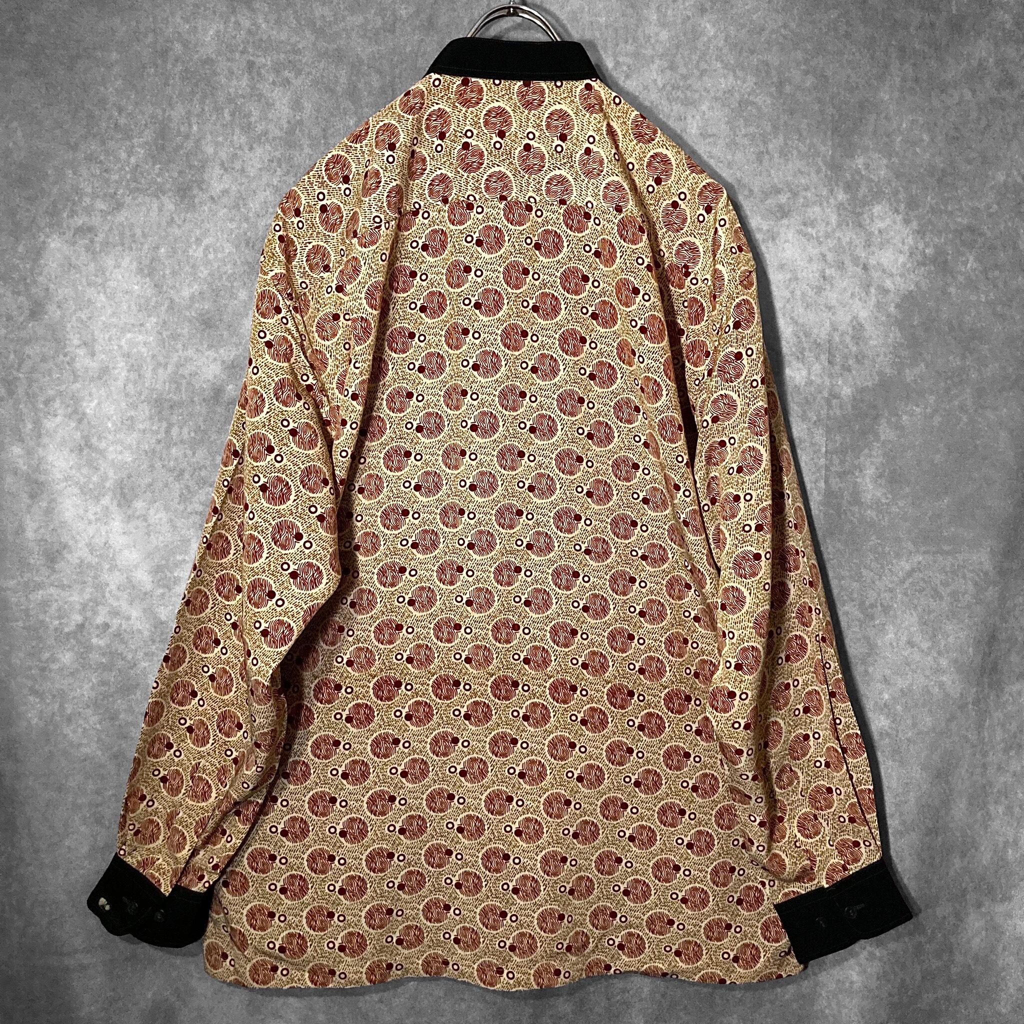 XL Japanese-ish Marble pattern all over design Band-collar L/S shirt