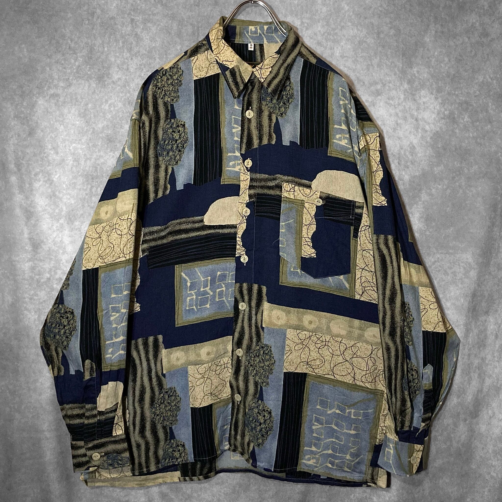 XXL Japanese-ish Hand drawn all over pattern art design L/S shirt