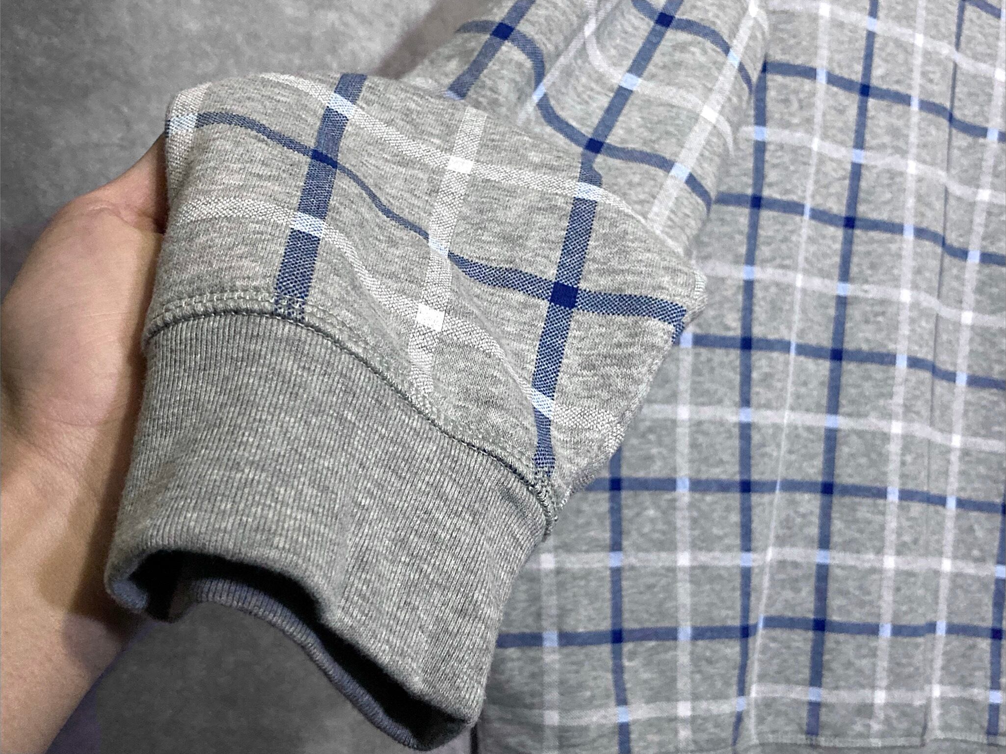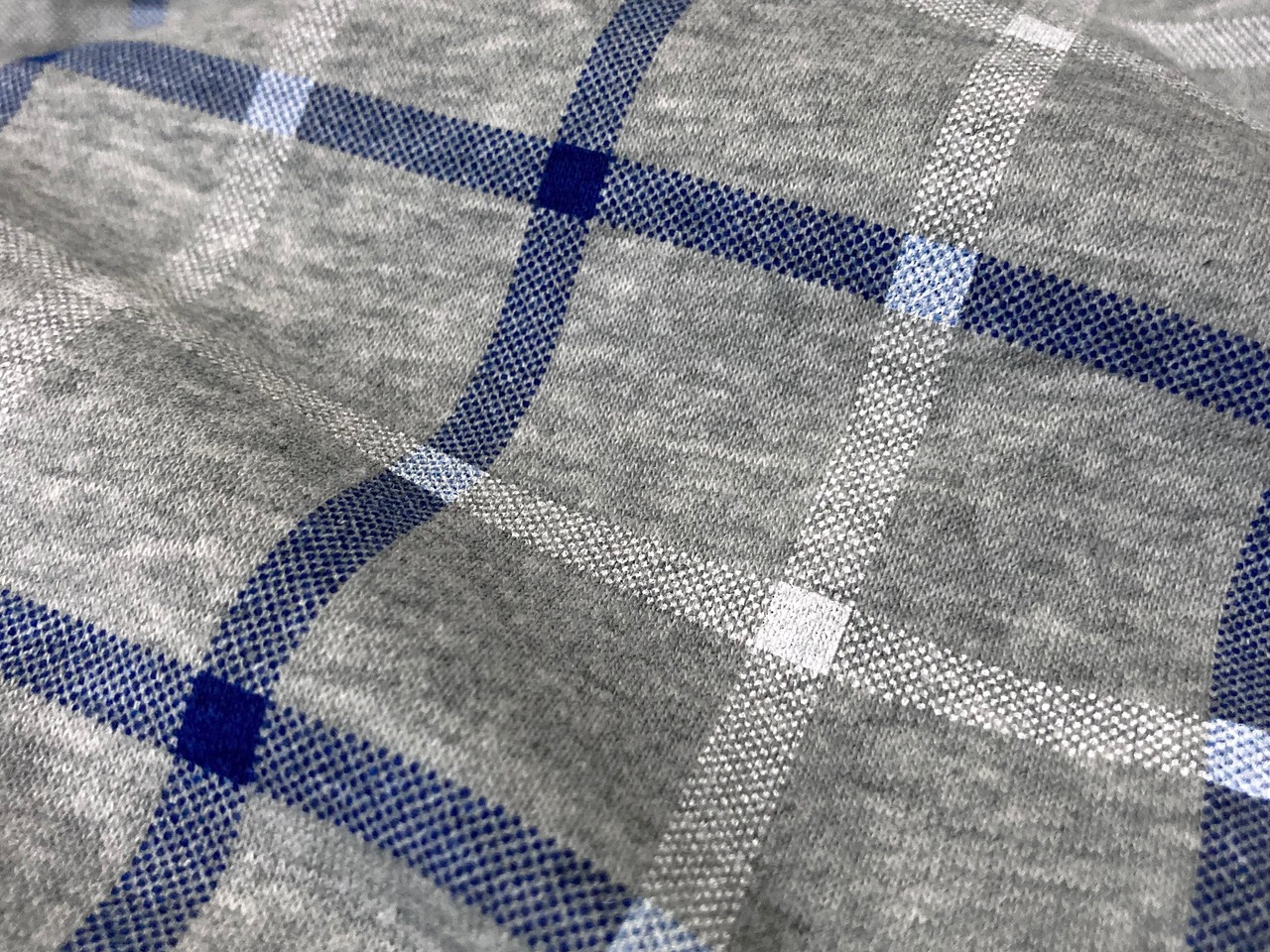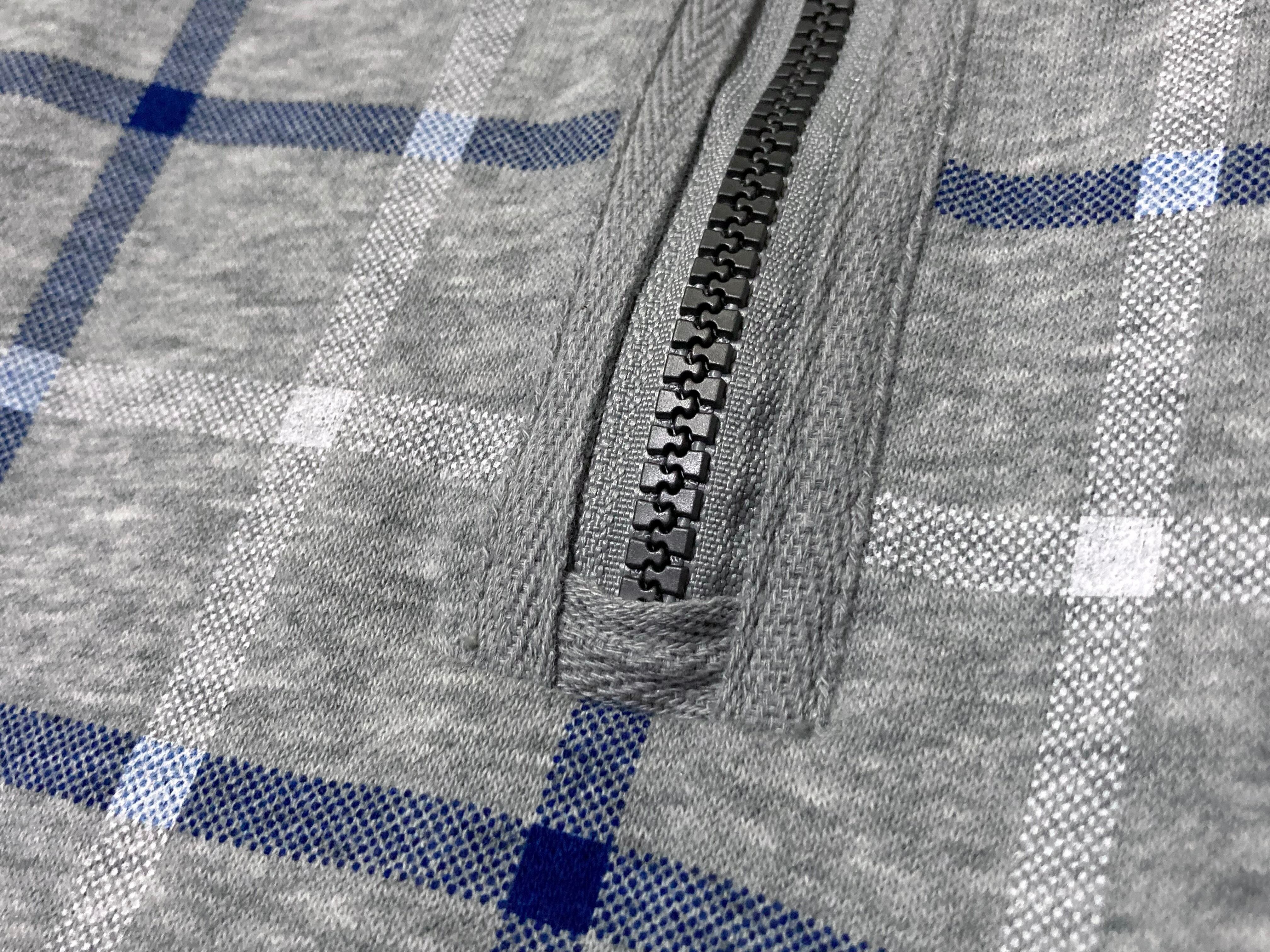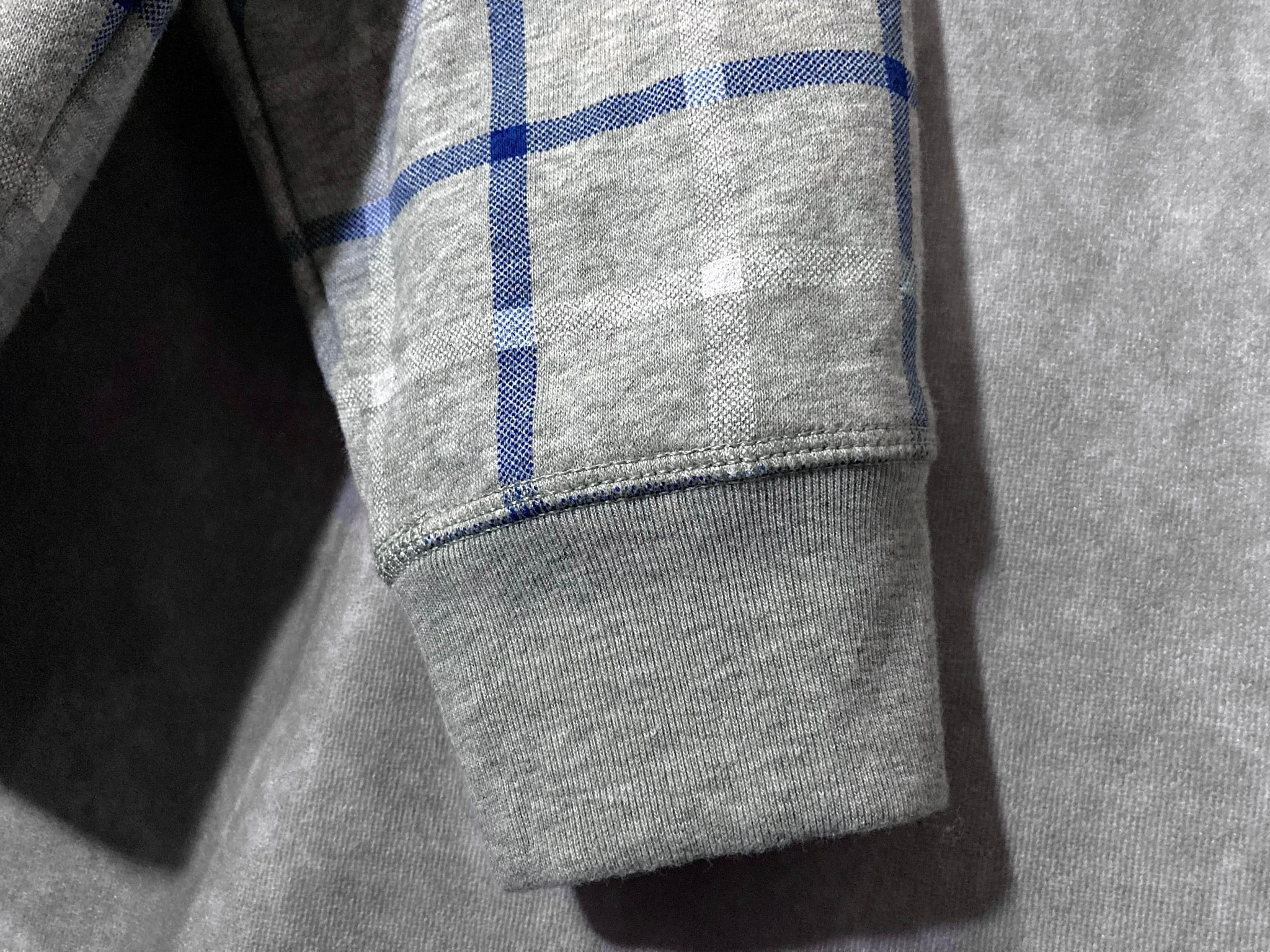 ウインターカラーのブルーとホワイトのラインによるチェック柄のかわいいハーフジッププルオーバー入荷✔️