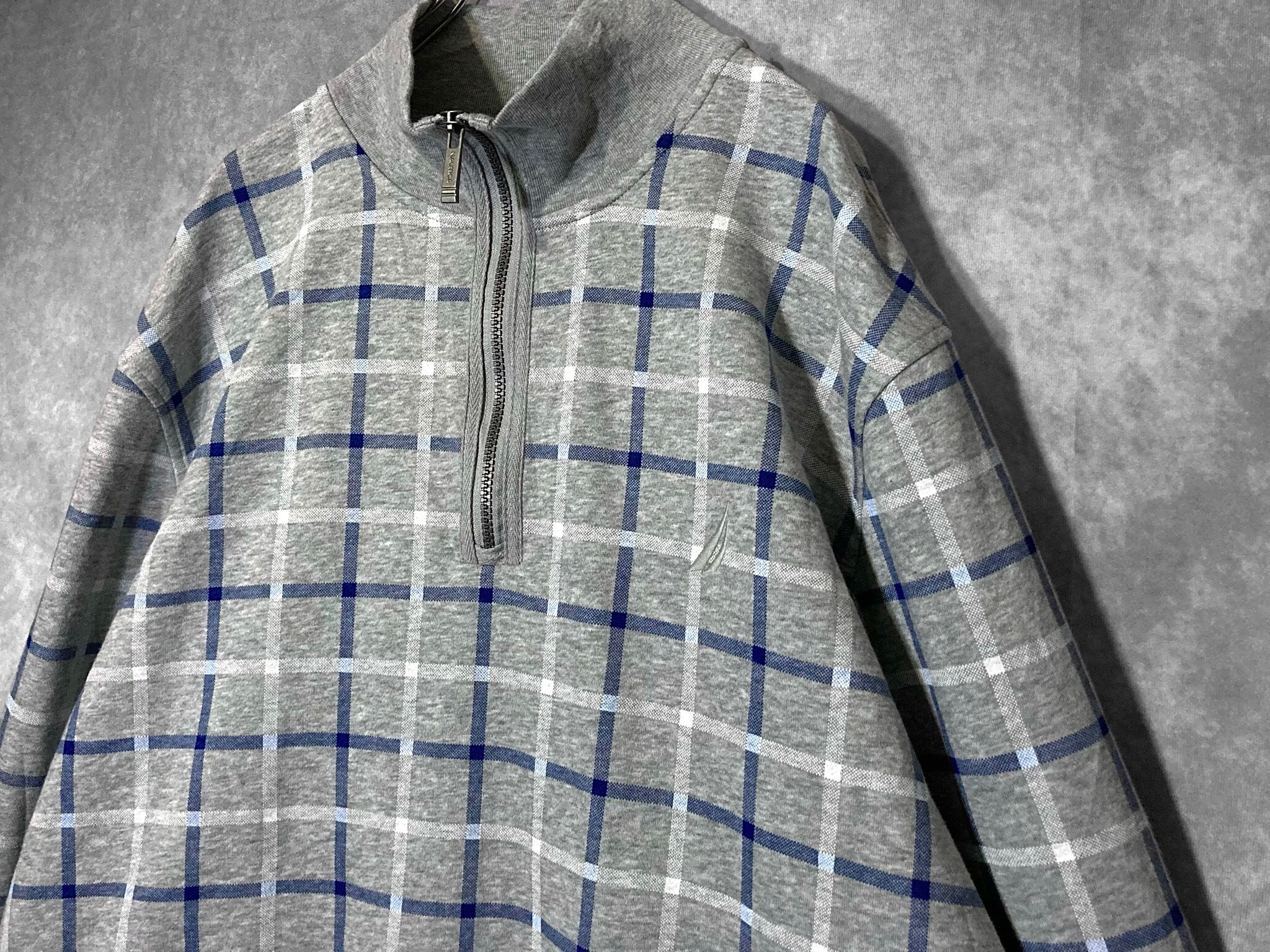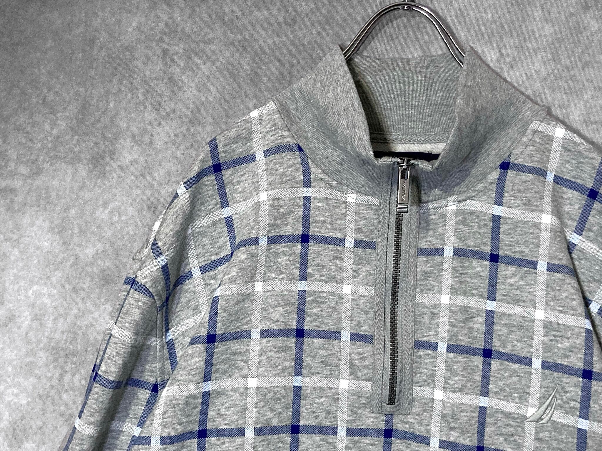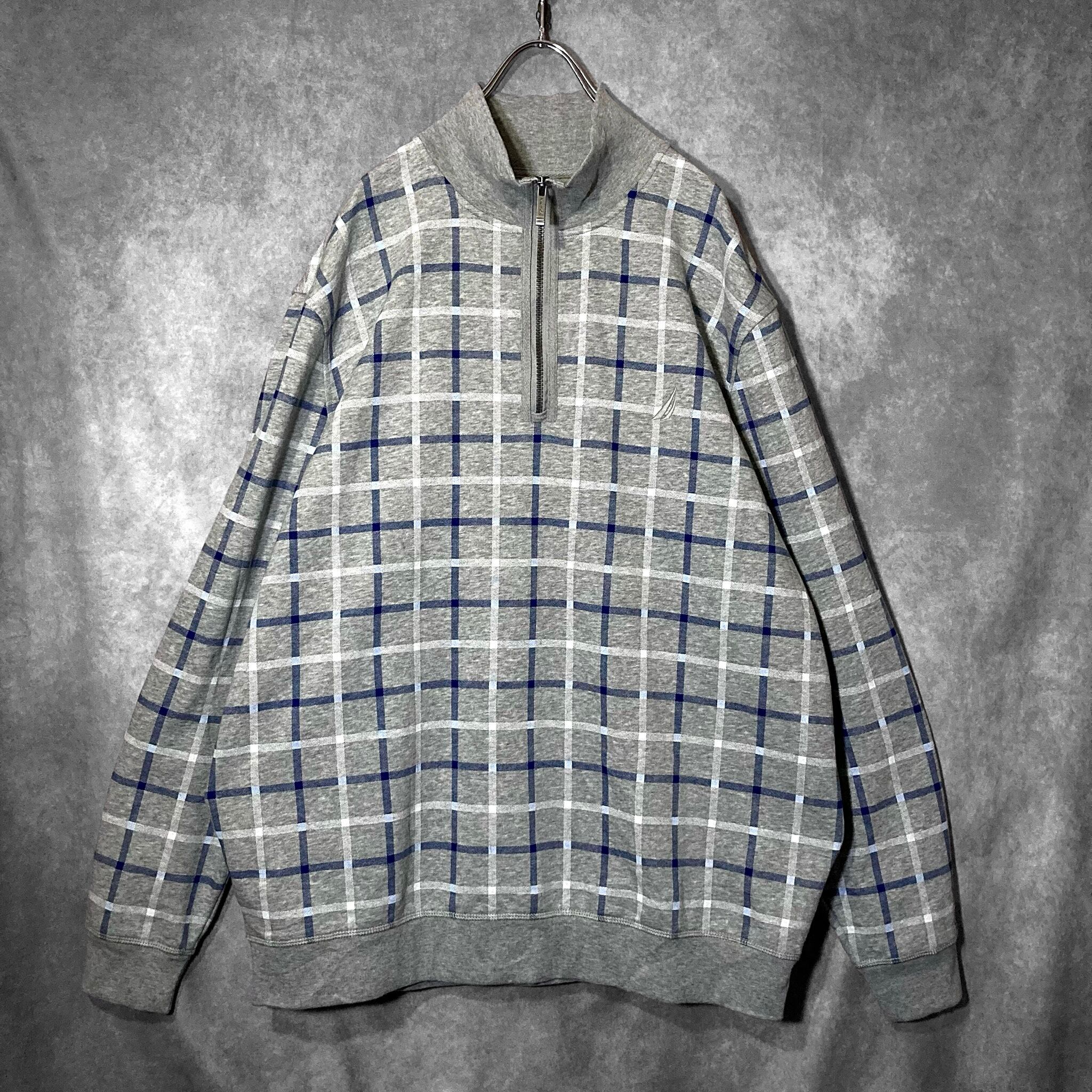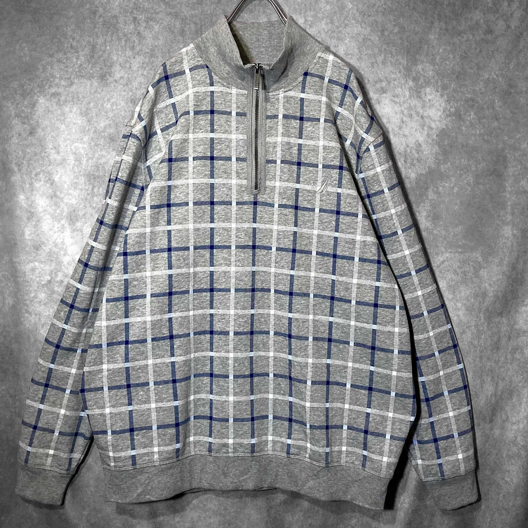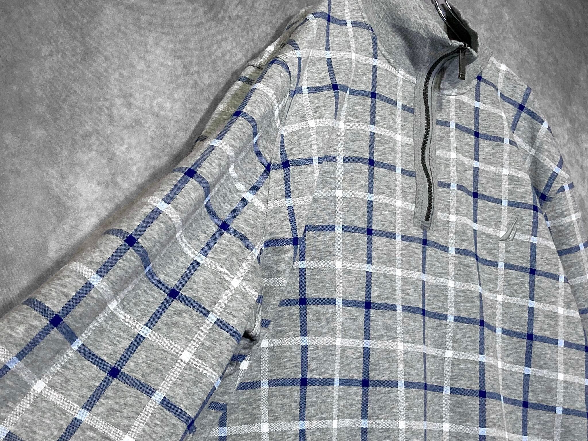 【NAUTICA】 XXL 寒冷 Cold color Check pattern design Half-zip pullover