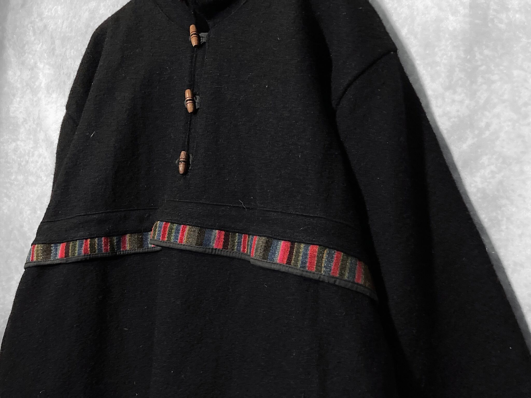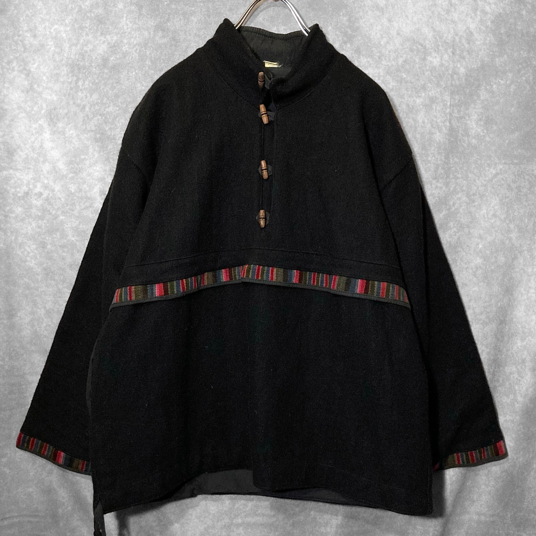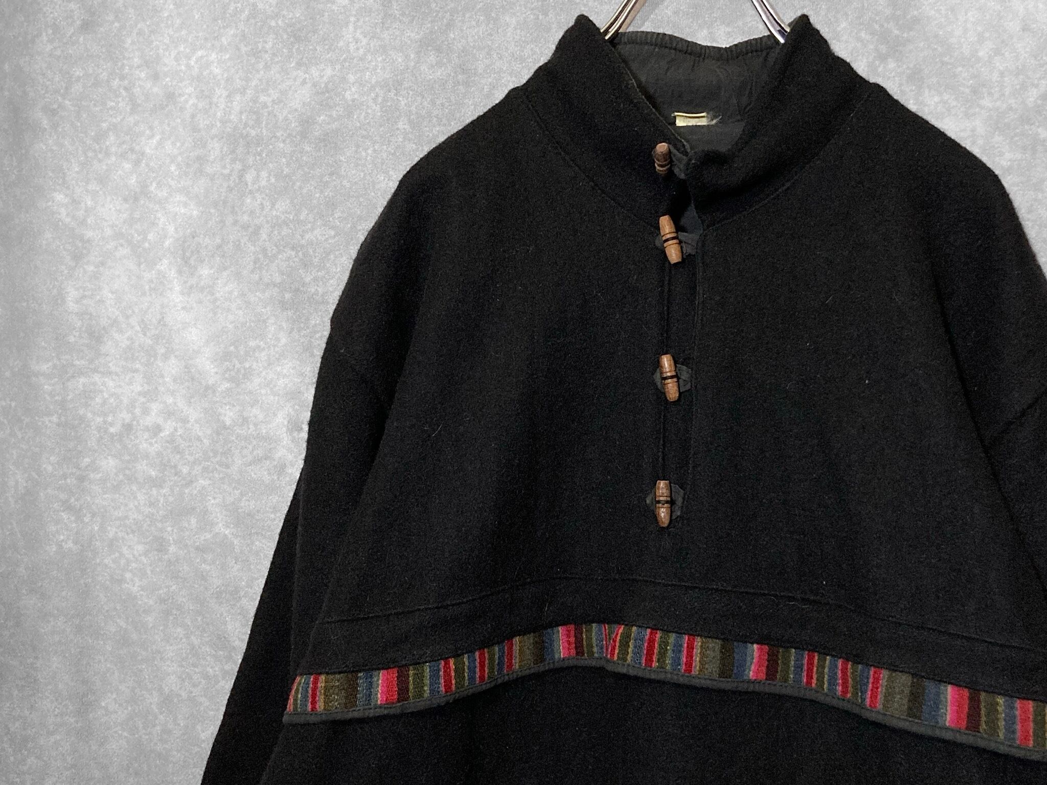 Ethnic Stripes pattern line × Toggle button design Wool material Pullover jacket