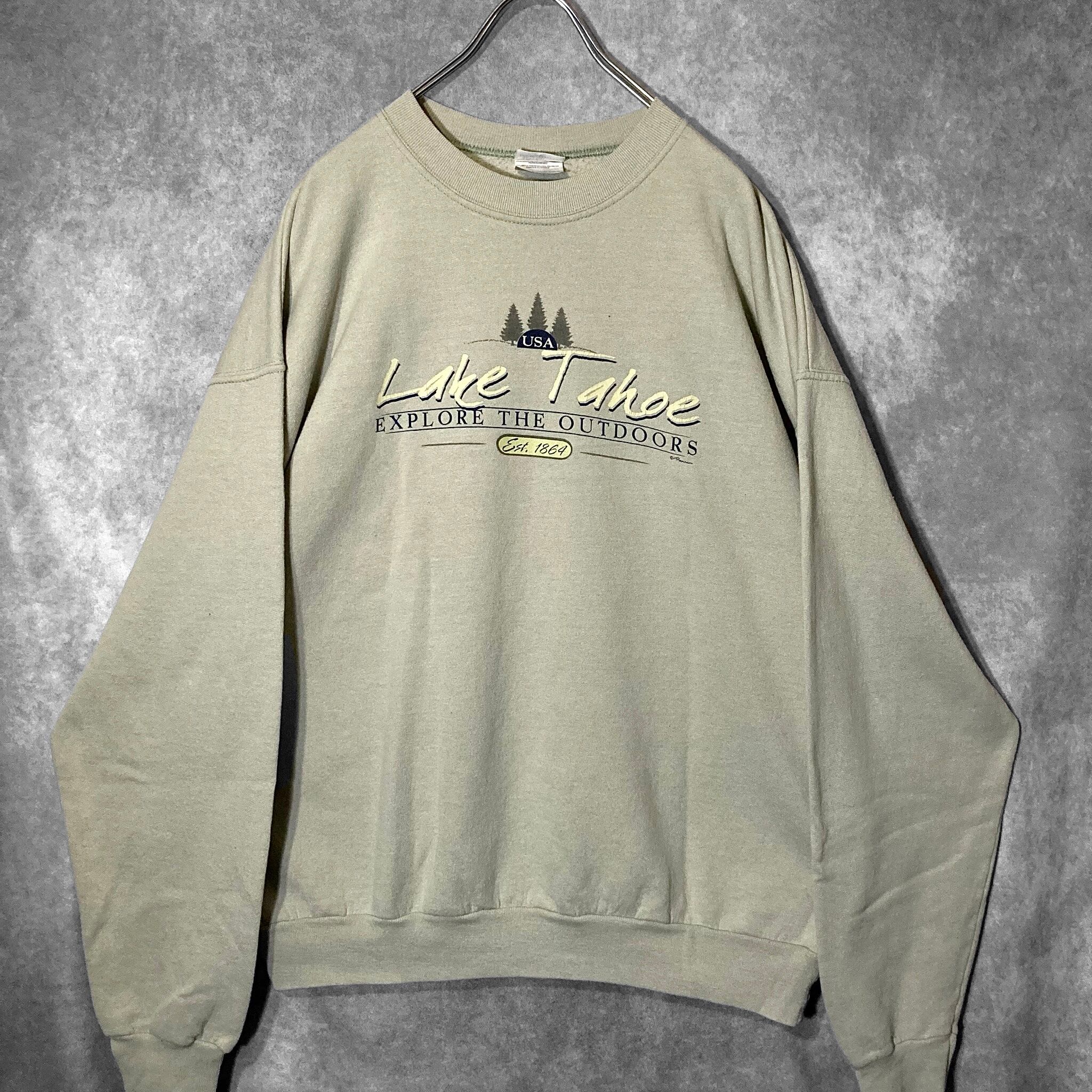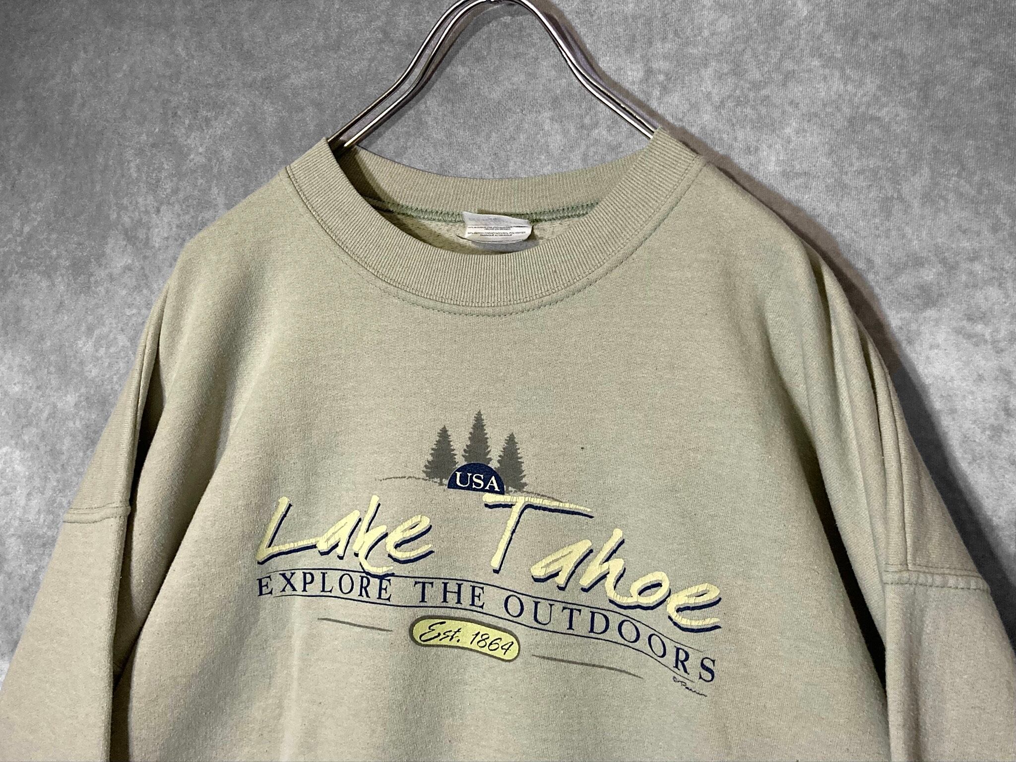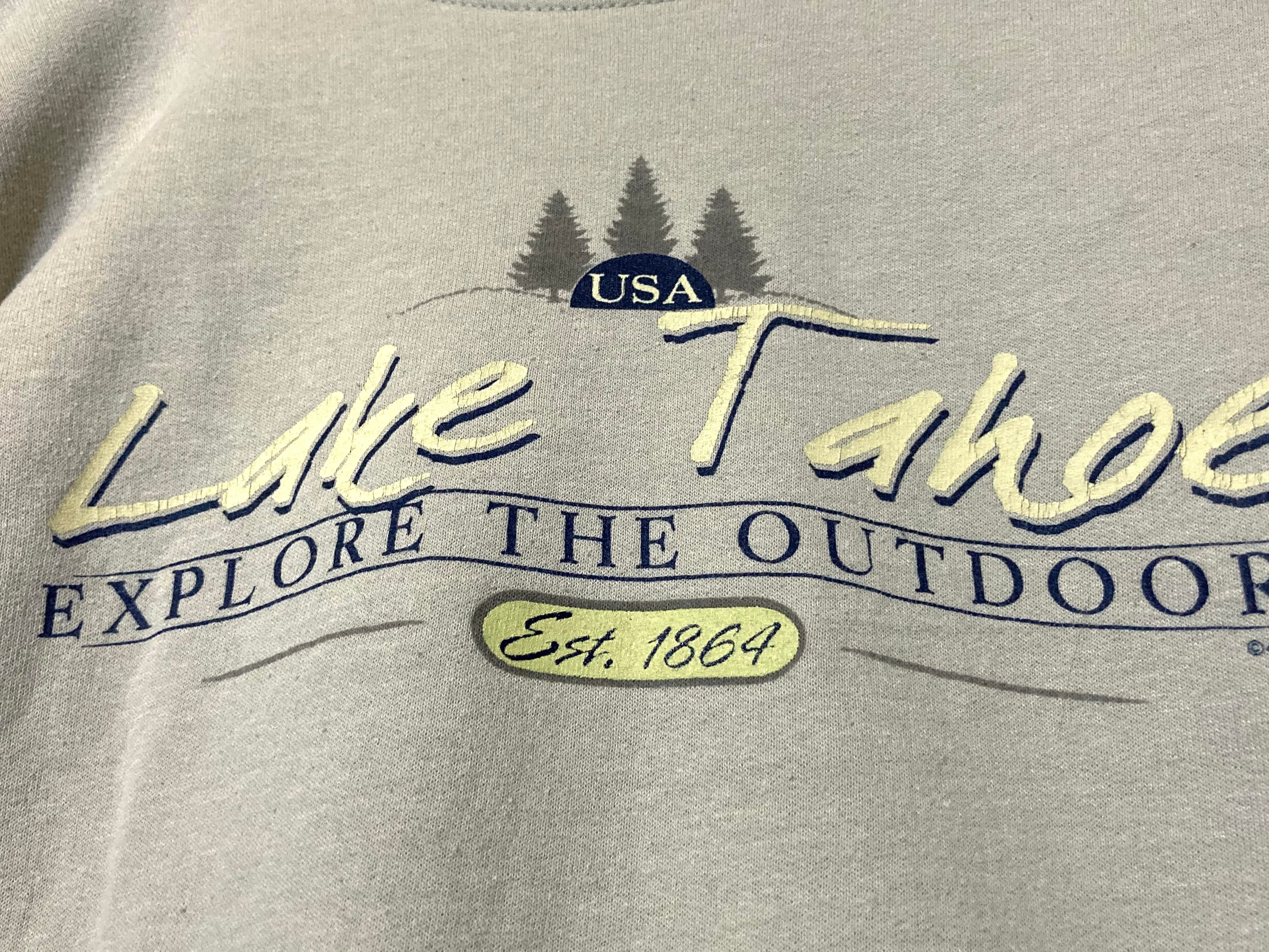 アメリカのカリフォルニア州とネバダ州との州境にあるタホー湖のロゴ " Lake Tahoe " がデザインされたプリントスウェット。