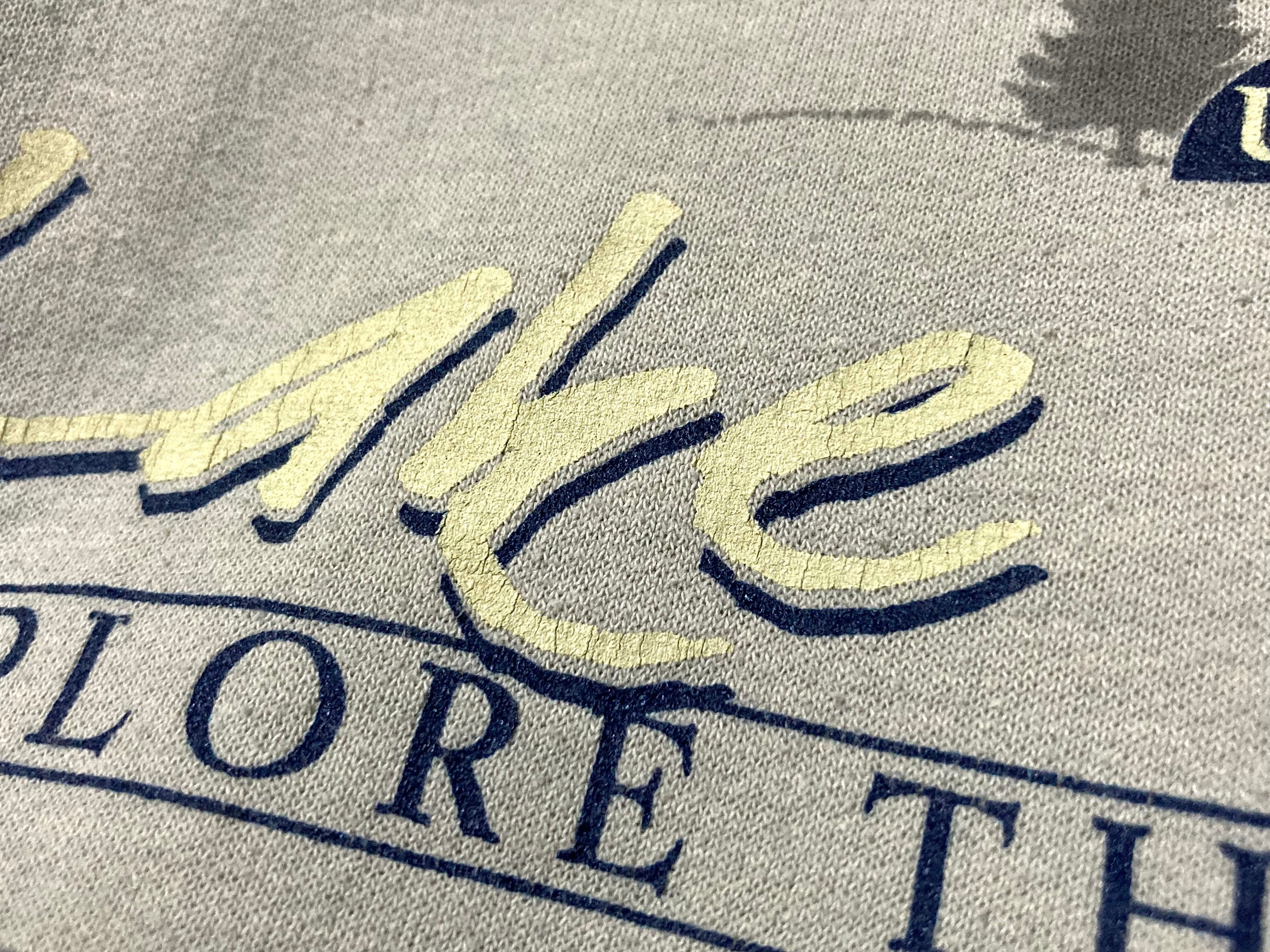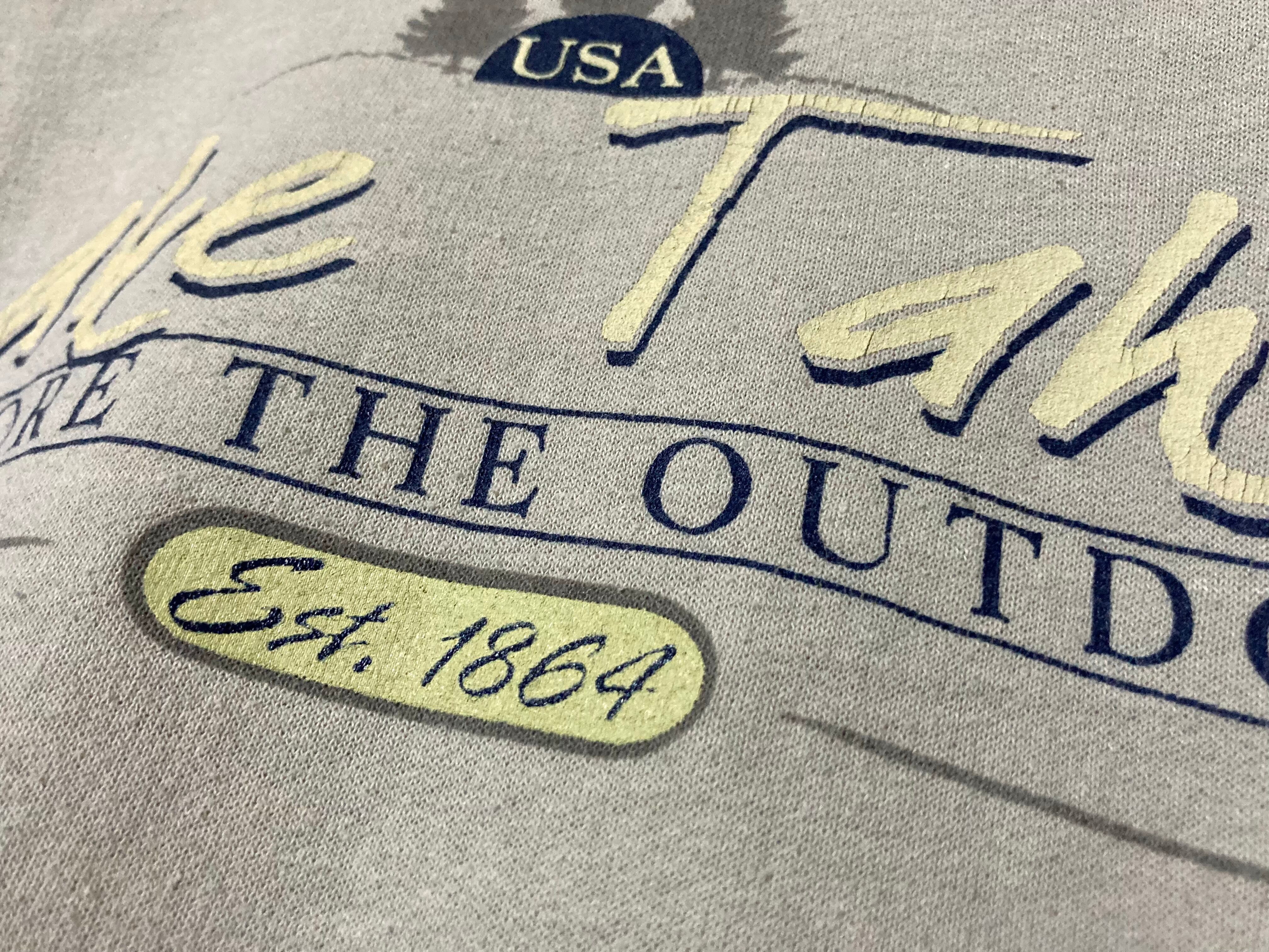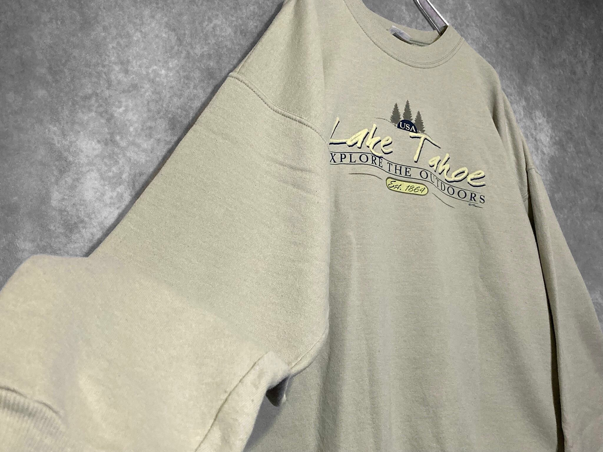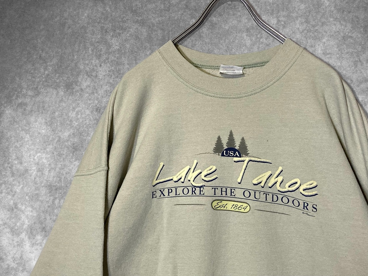 アメリカのカリフォルニア州とネバダ州との州境にあるタホー湖のロゴ " Lake Tahoe " がデザインされたプリントスウェット。