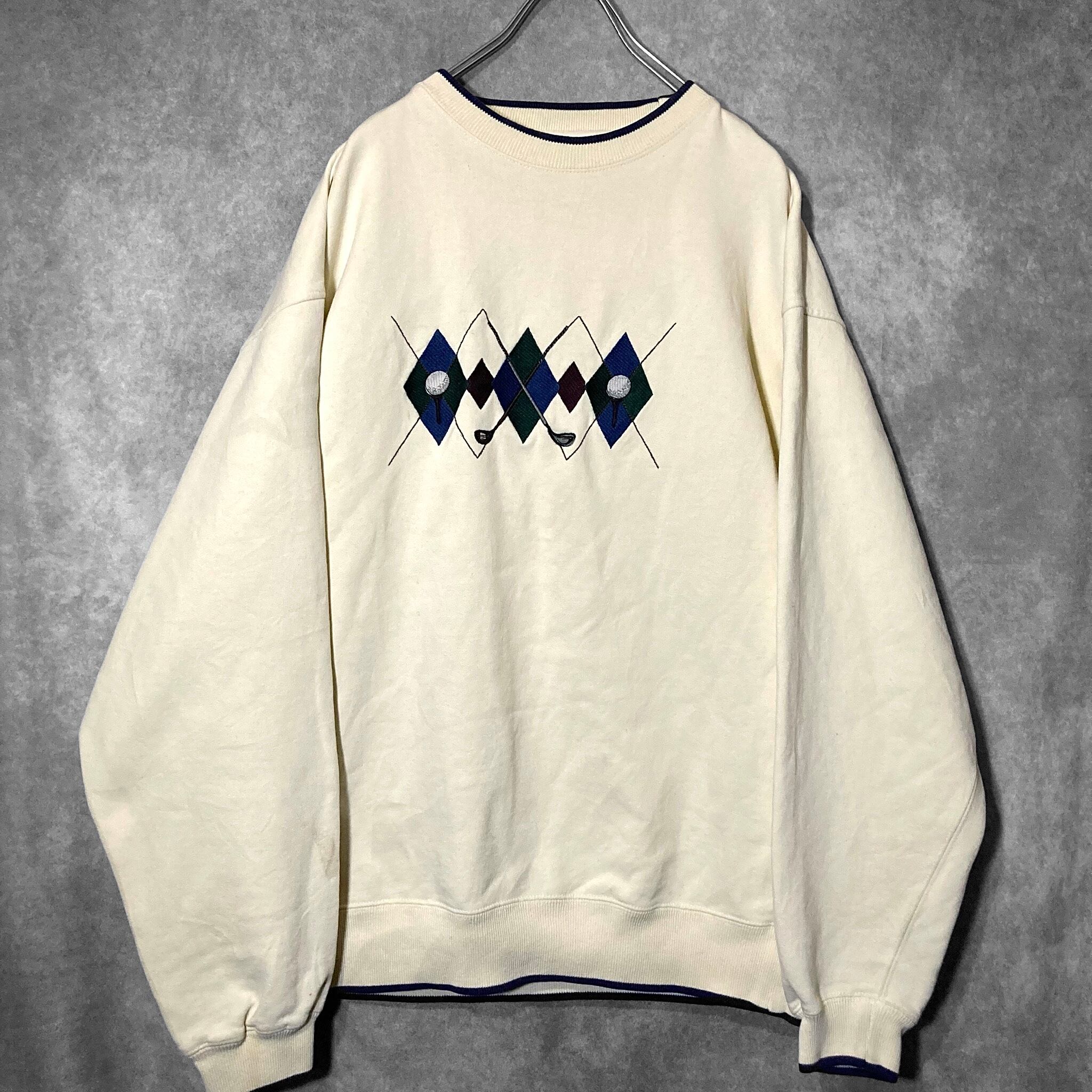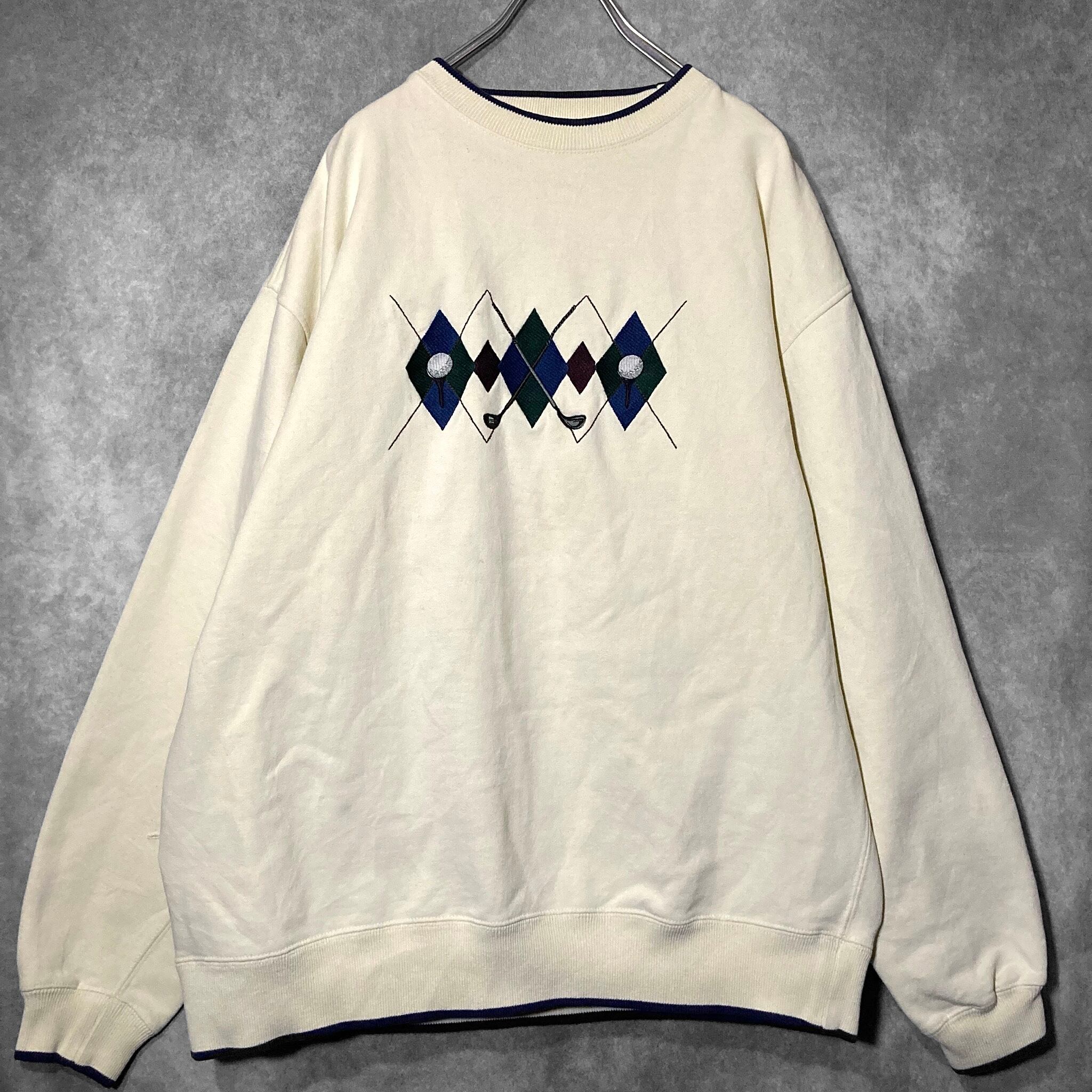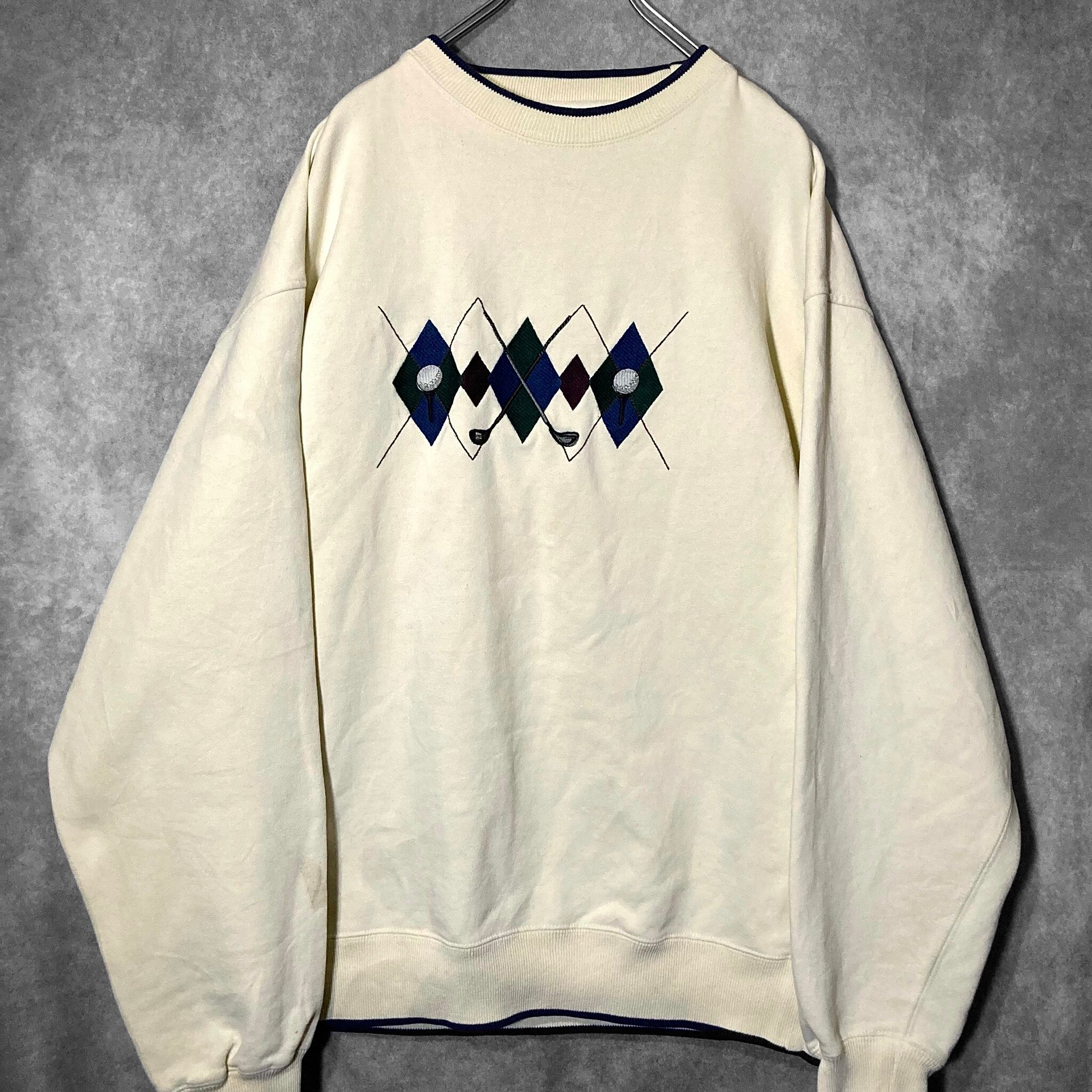 ゴルフボールとドライバーが細かく刺繍でデザインされており、3つのクロスのうちのセンターだけがゴルフクラブでクロスに見立てられたデザイン。