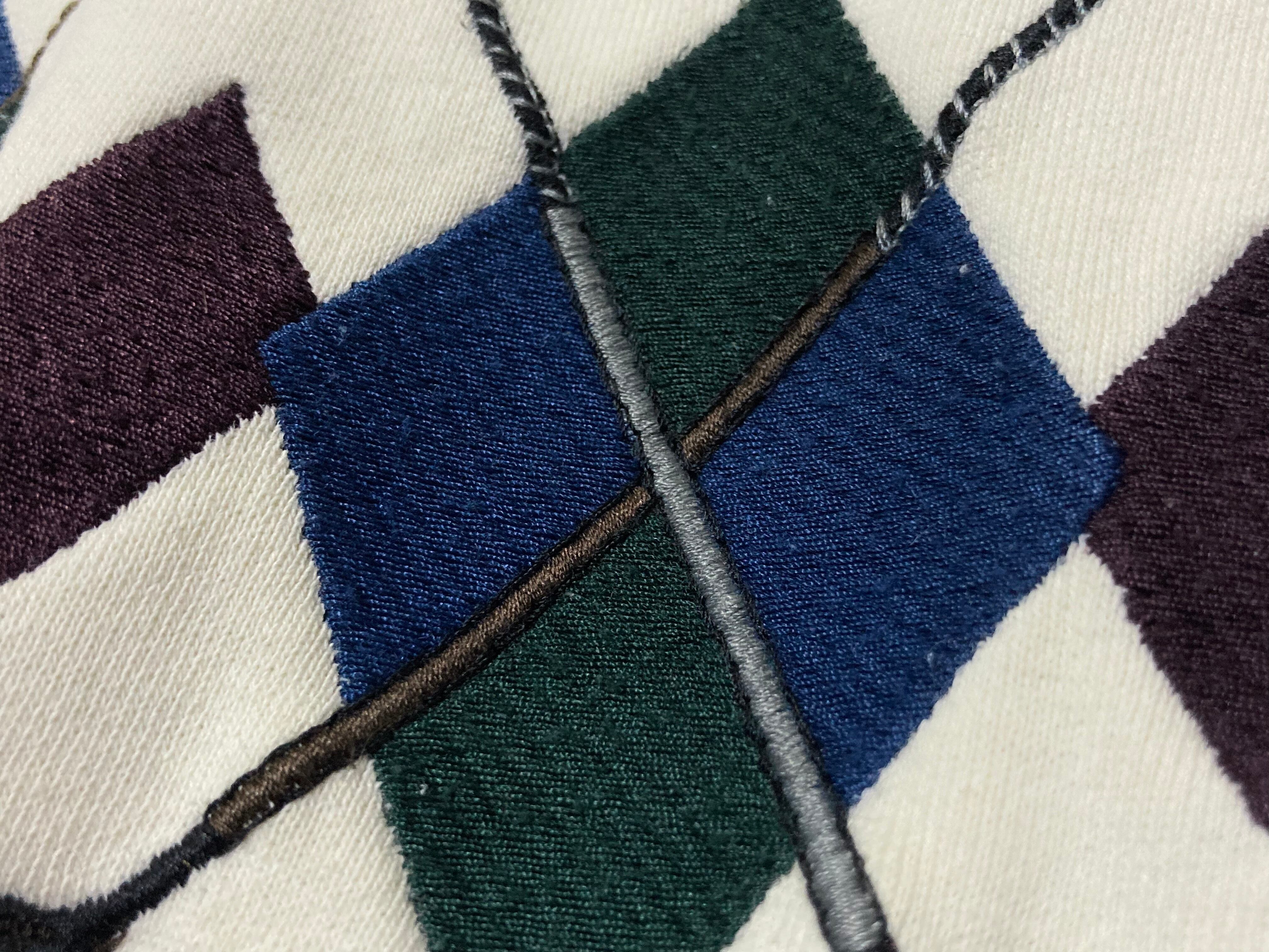 ほんのりベージュを帯びたようなアイボリーカラーが印象的な刺繍デザインスウェット。
