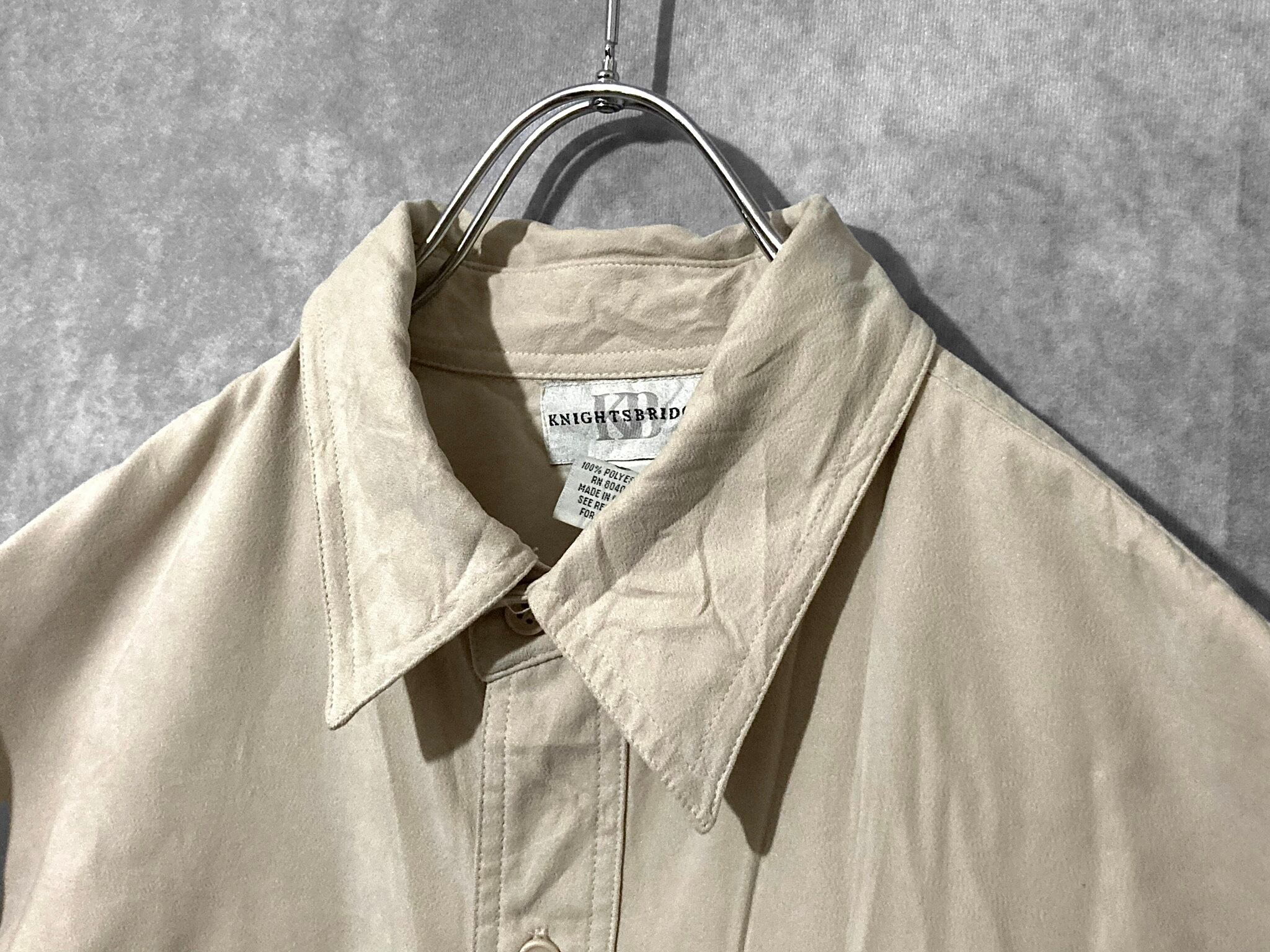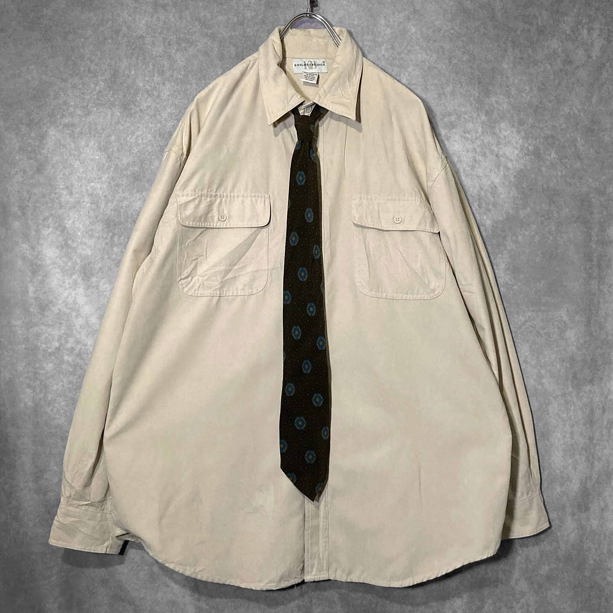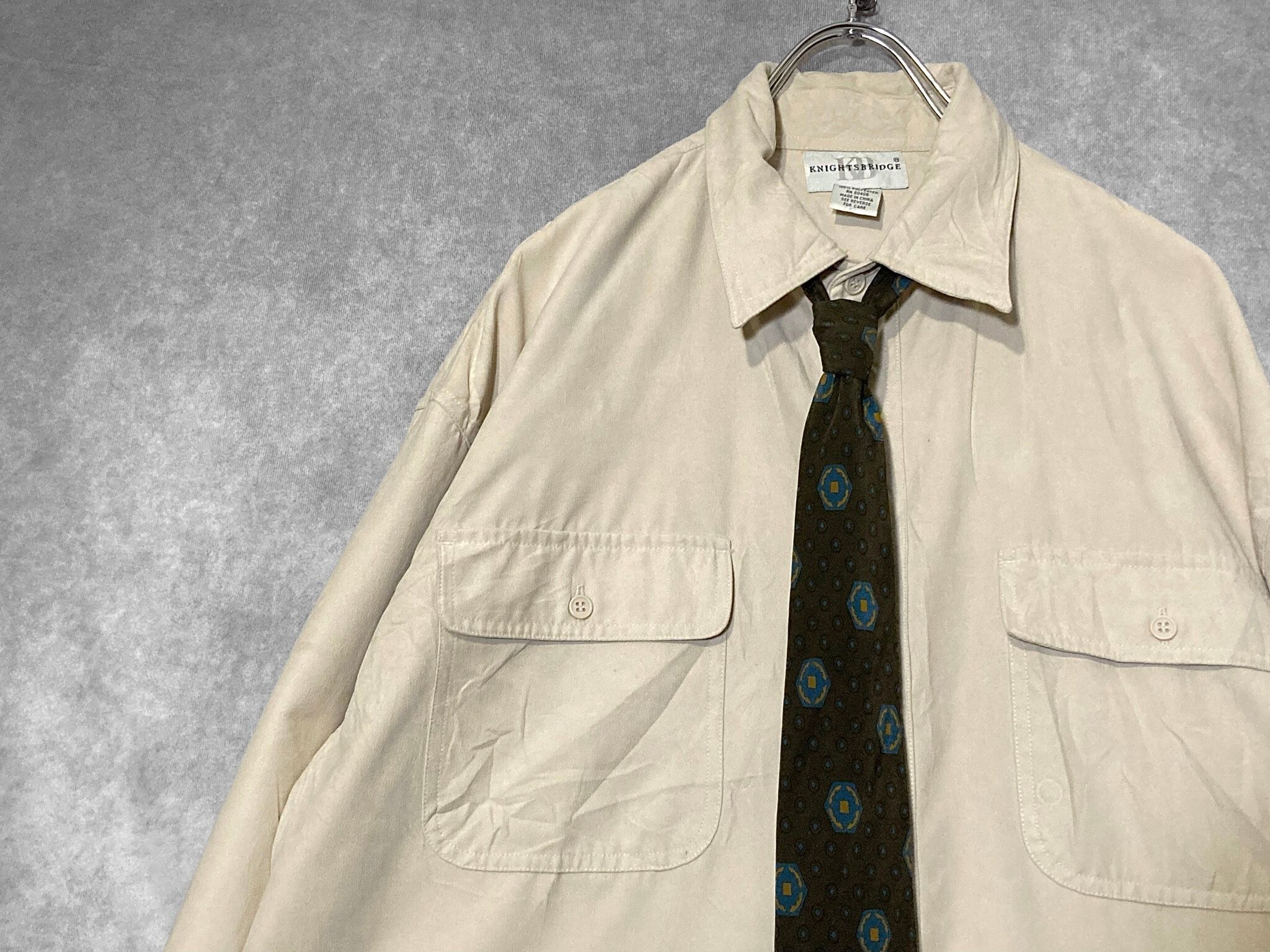 XL size Light Beige color Fake suede L/S shirt × 【Pierre Balman】Bewitching pattern design necktie set
