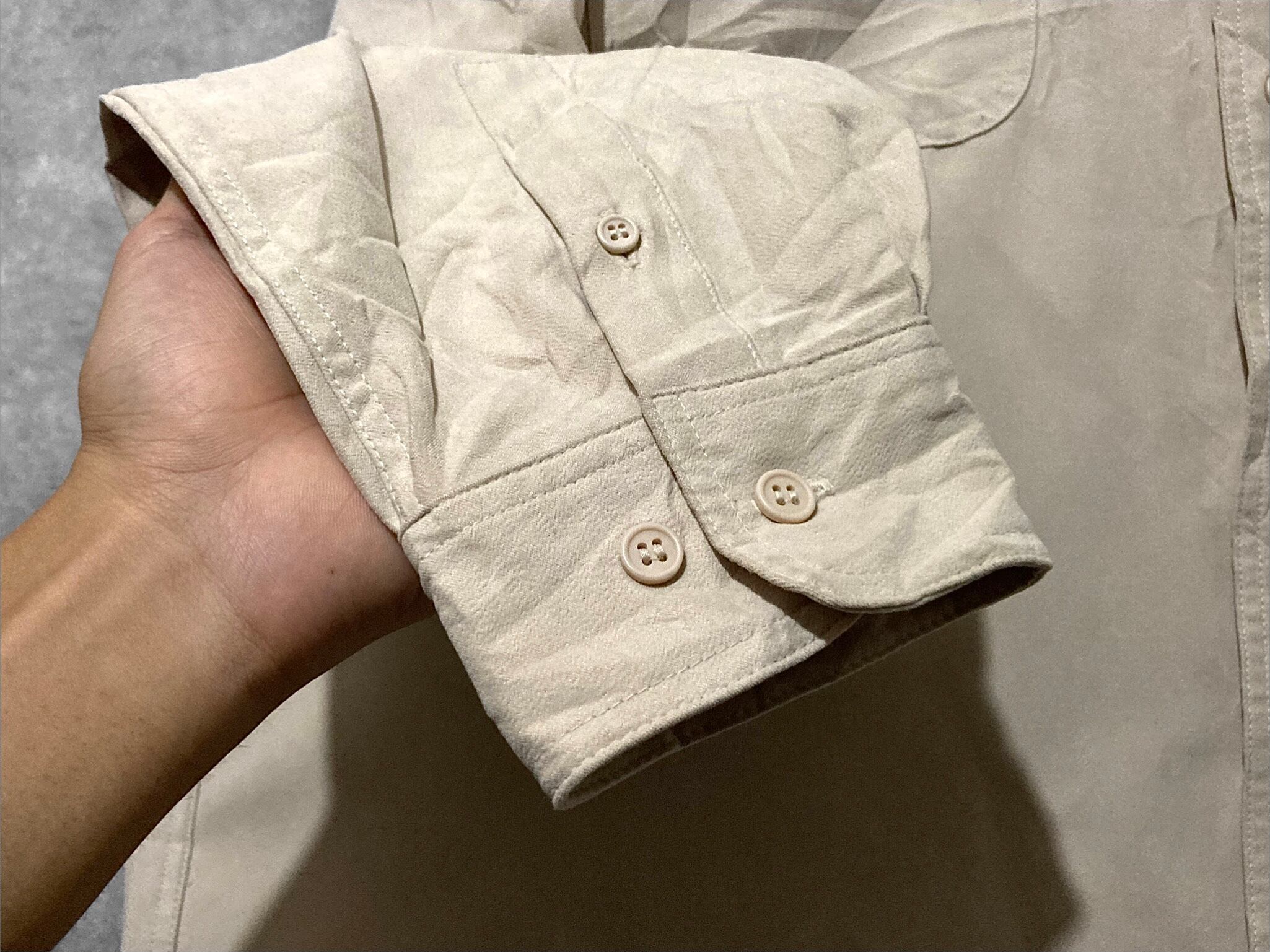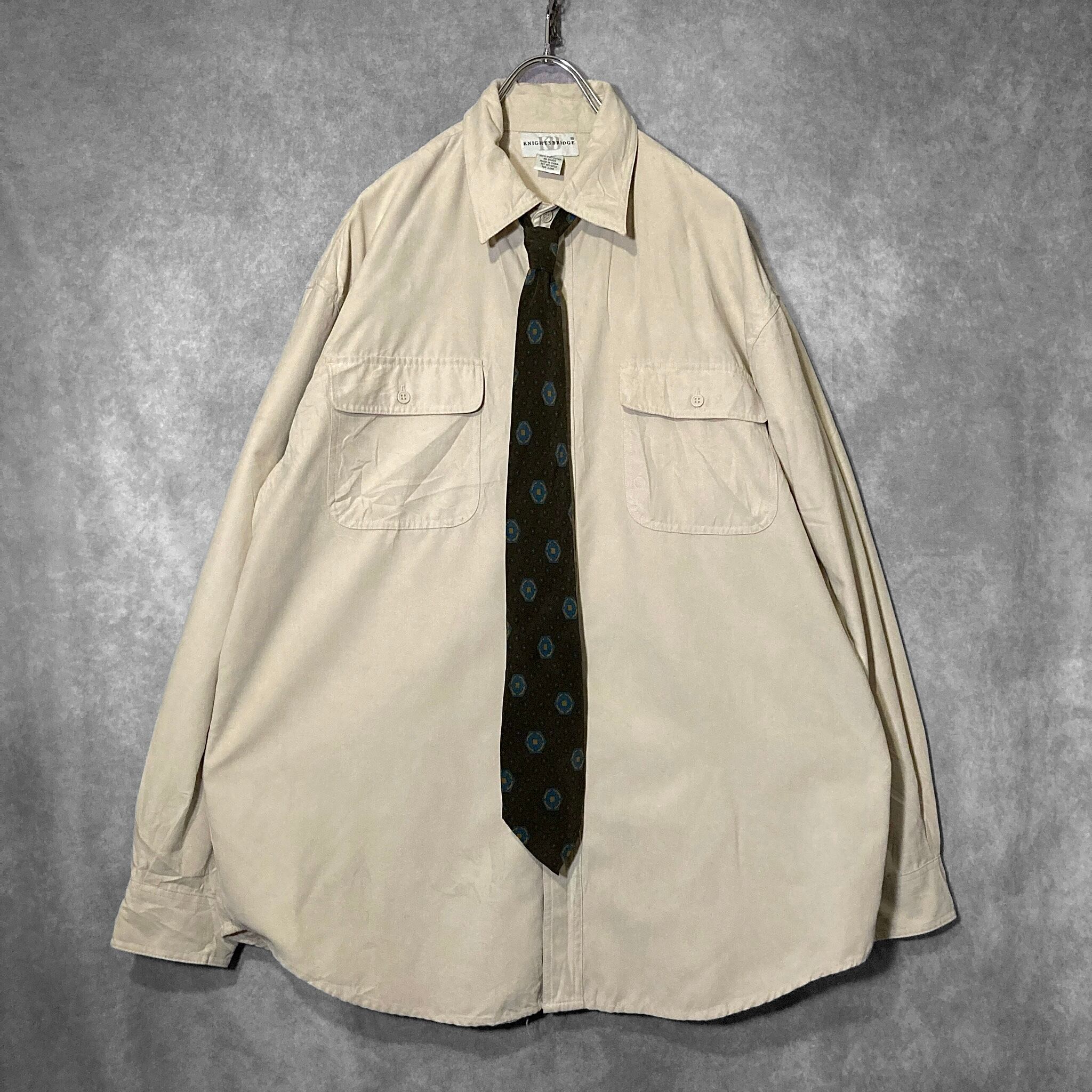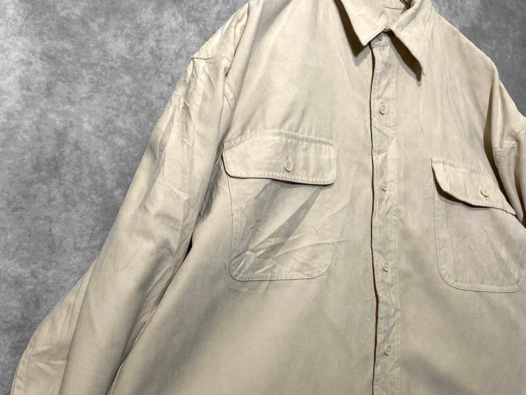 XL size Light Beige color Fake suede L/S shirt × 【Pierre Balman】Bewitching pattern design necktie set