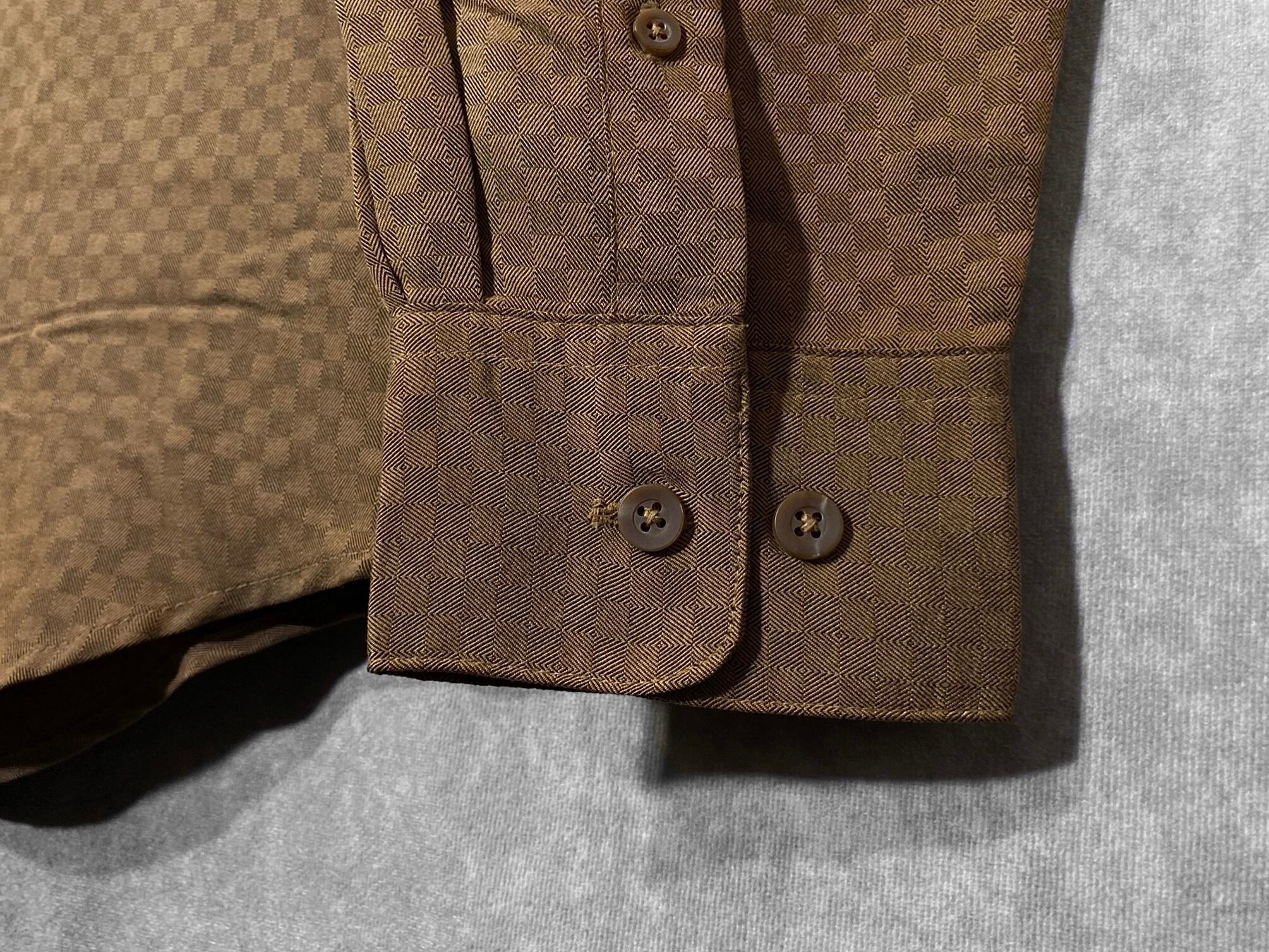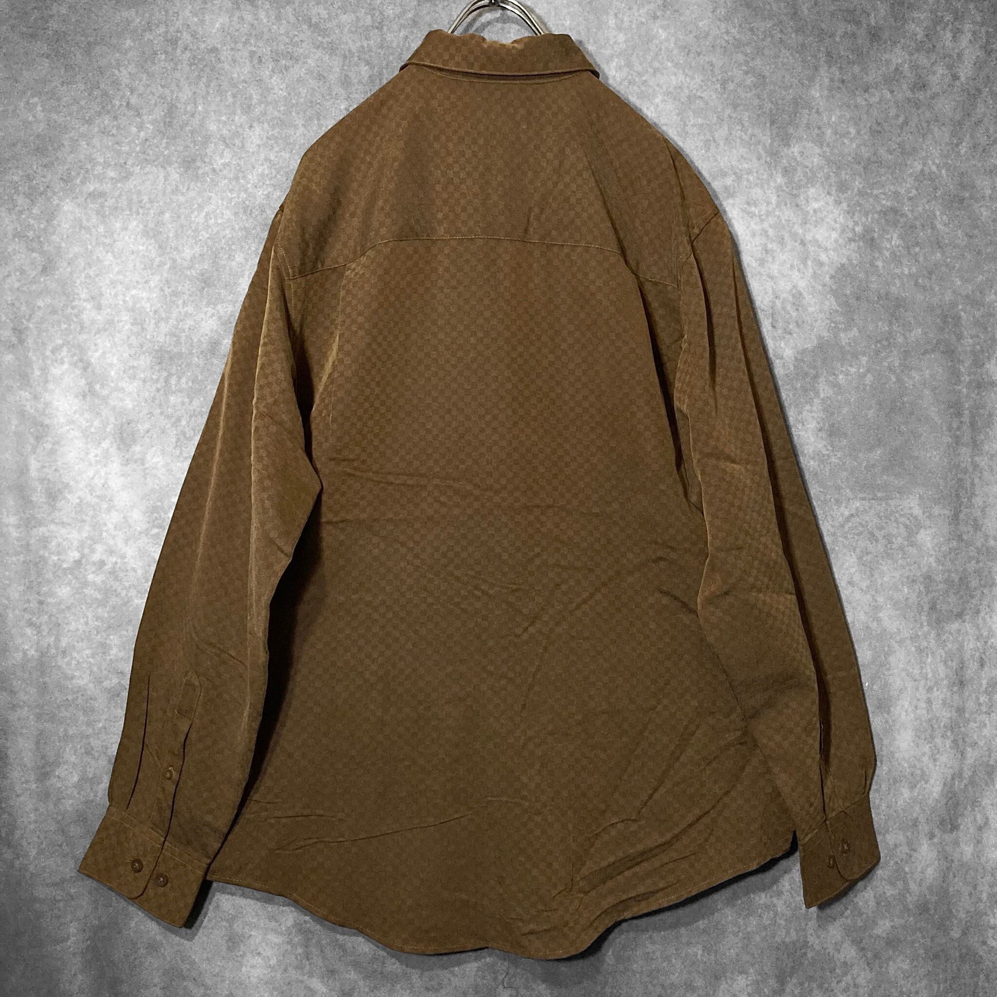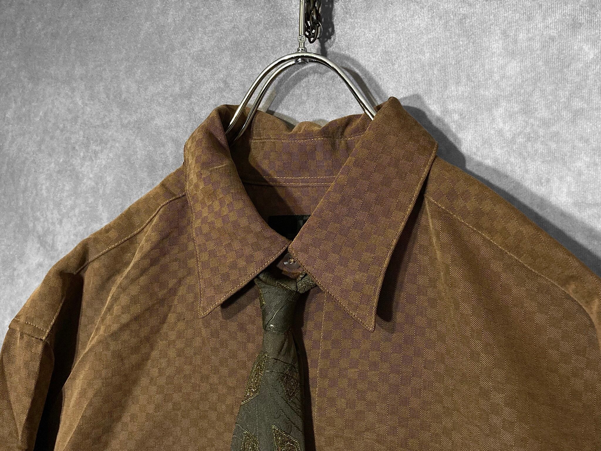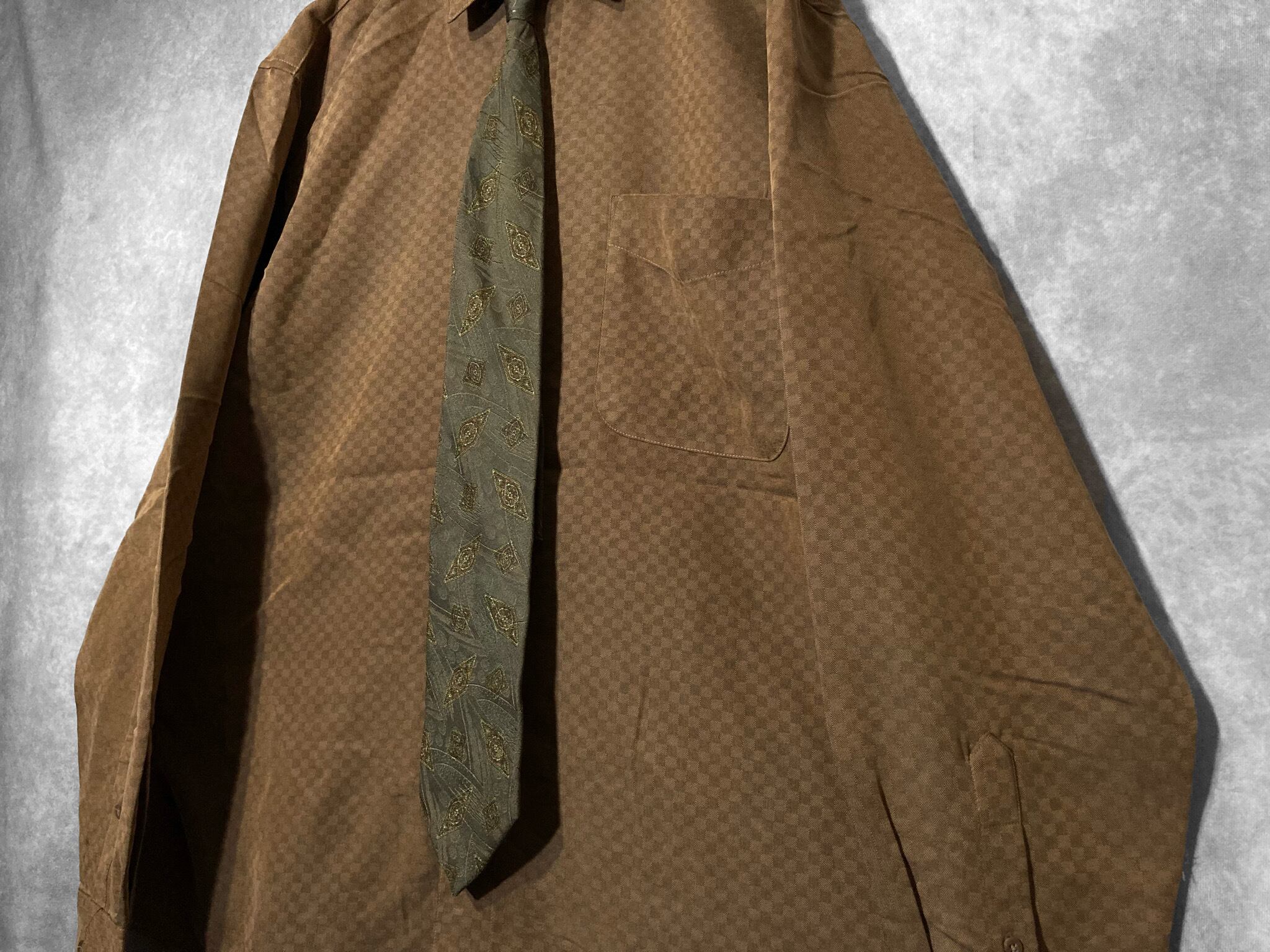 XL Hidden Four square all over pattern design Brown color L/S shirt × Khaki color Bewitching all over pattern design Necktie set
