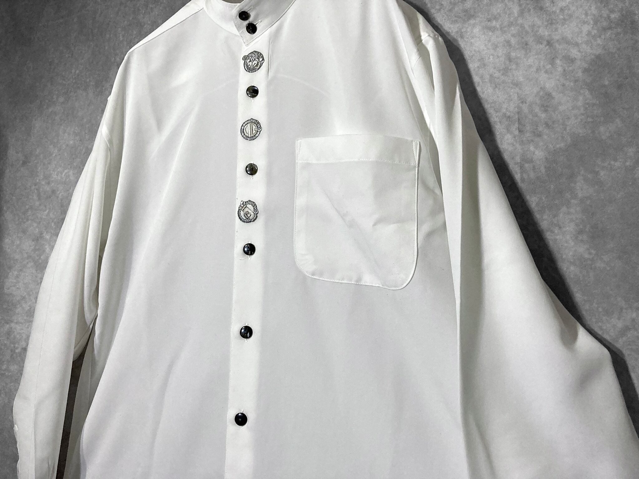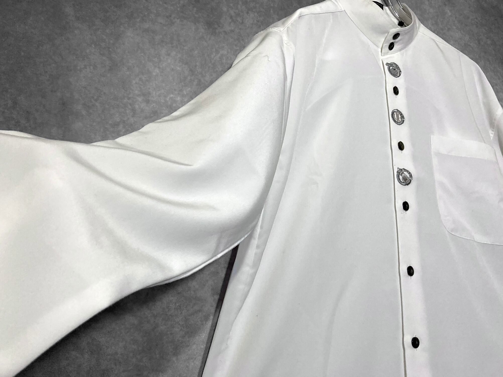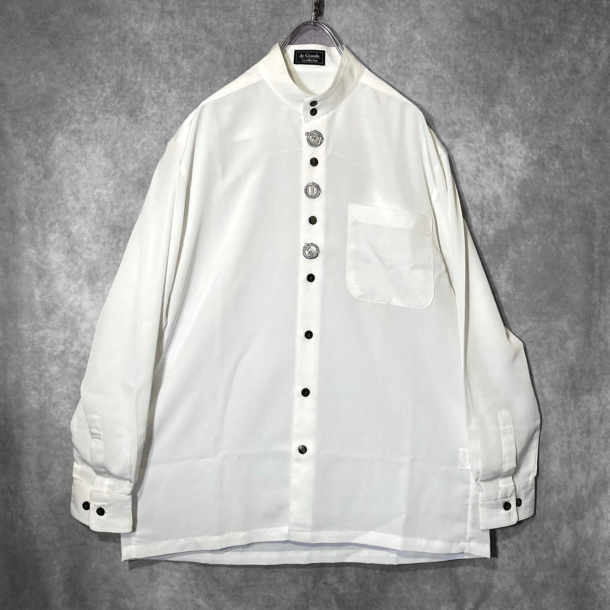 XL White color Tyrolean embroidery design Band collar L/S shirt