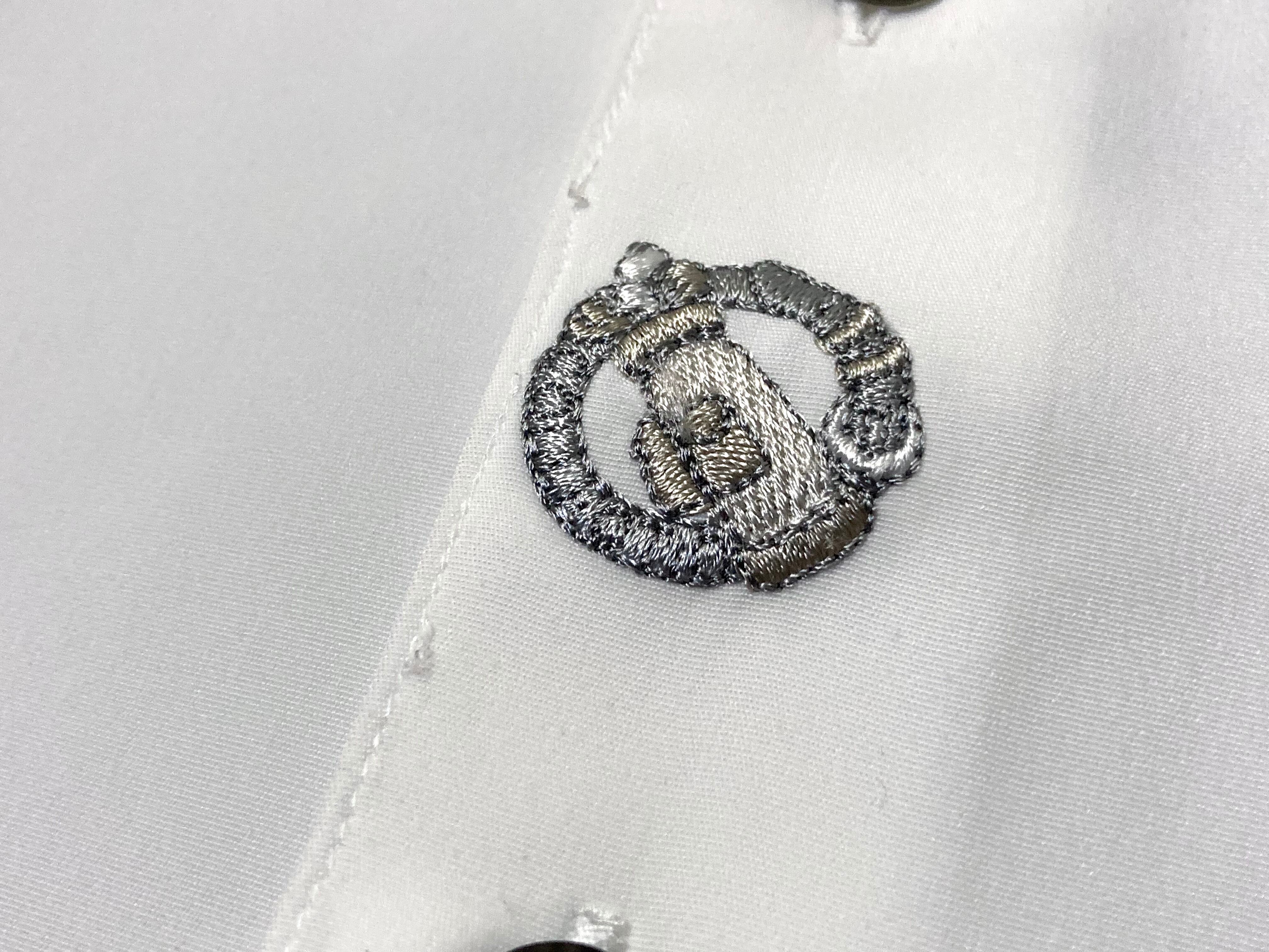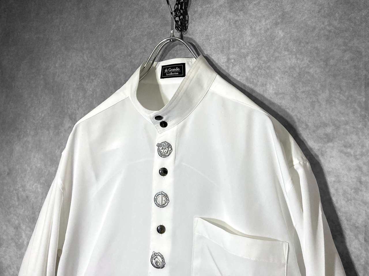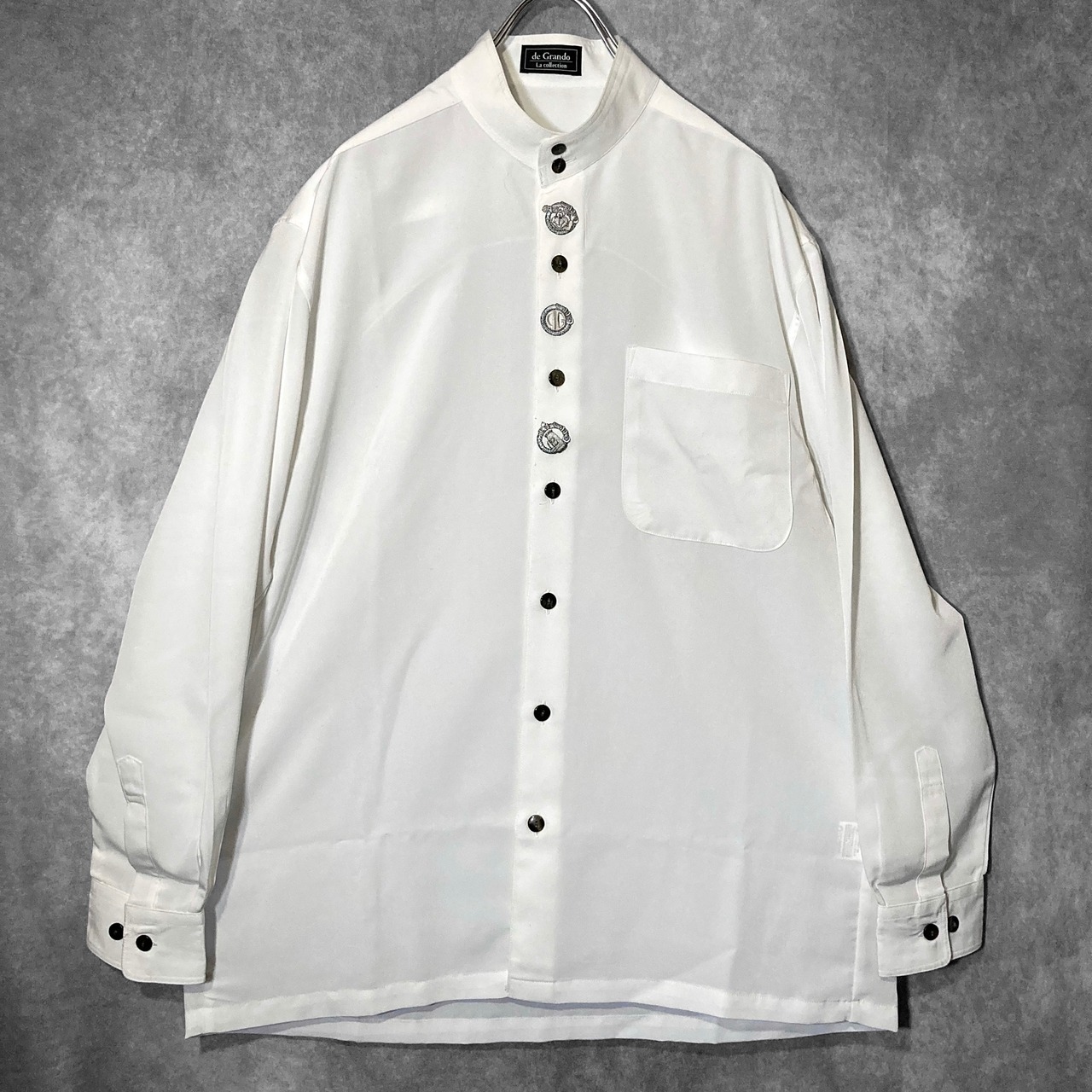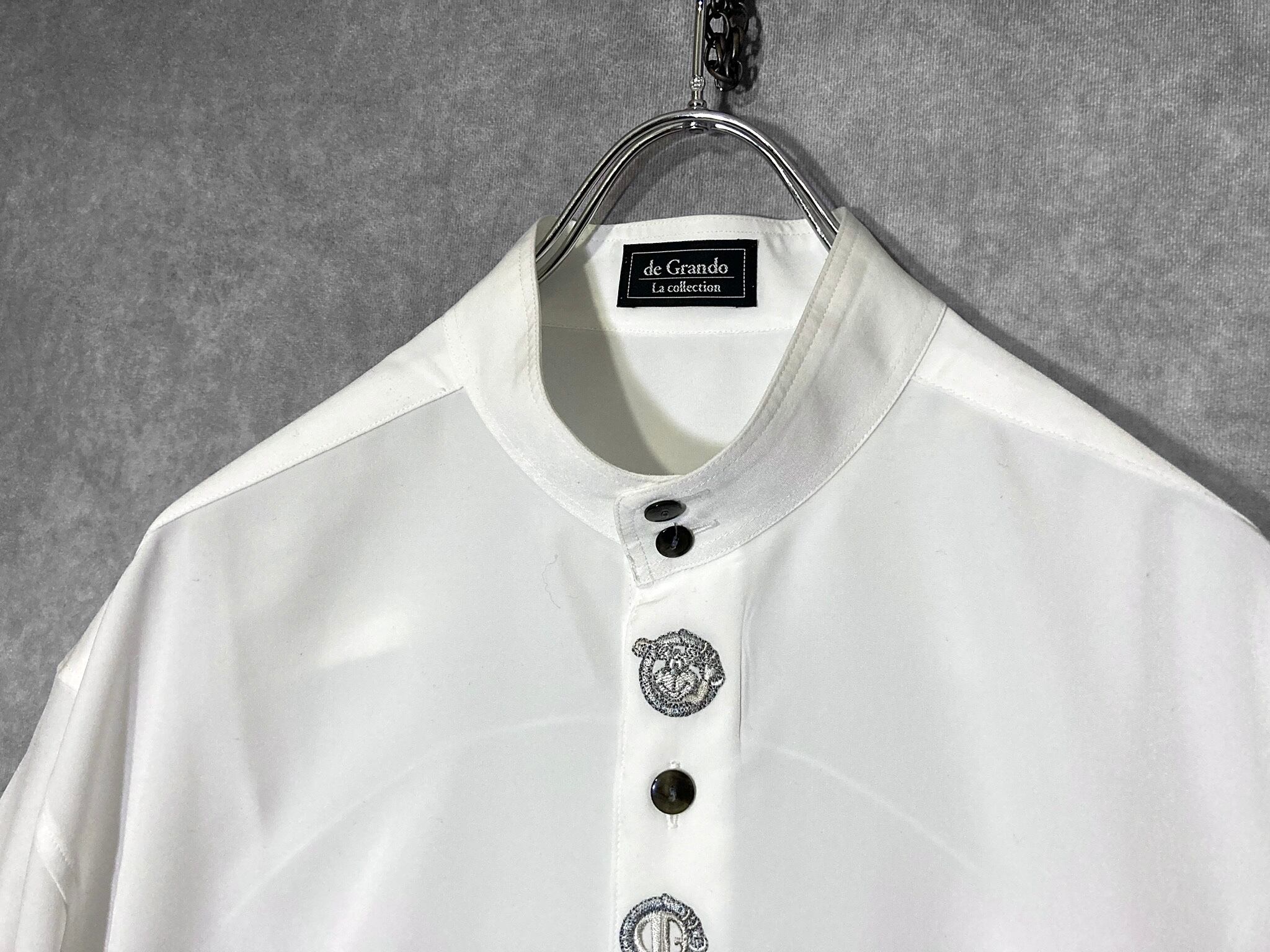 XL White color Tyrolean embroidery design Band collar L/S shirt