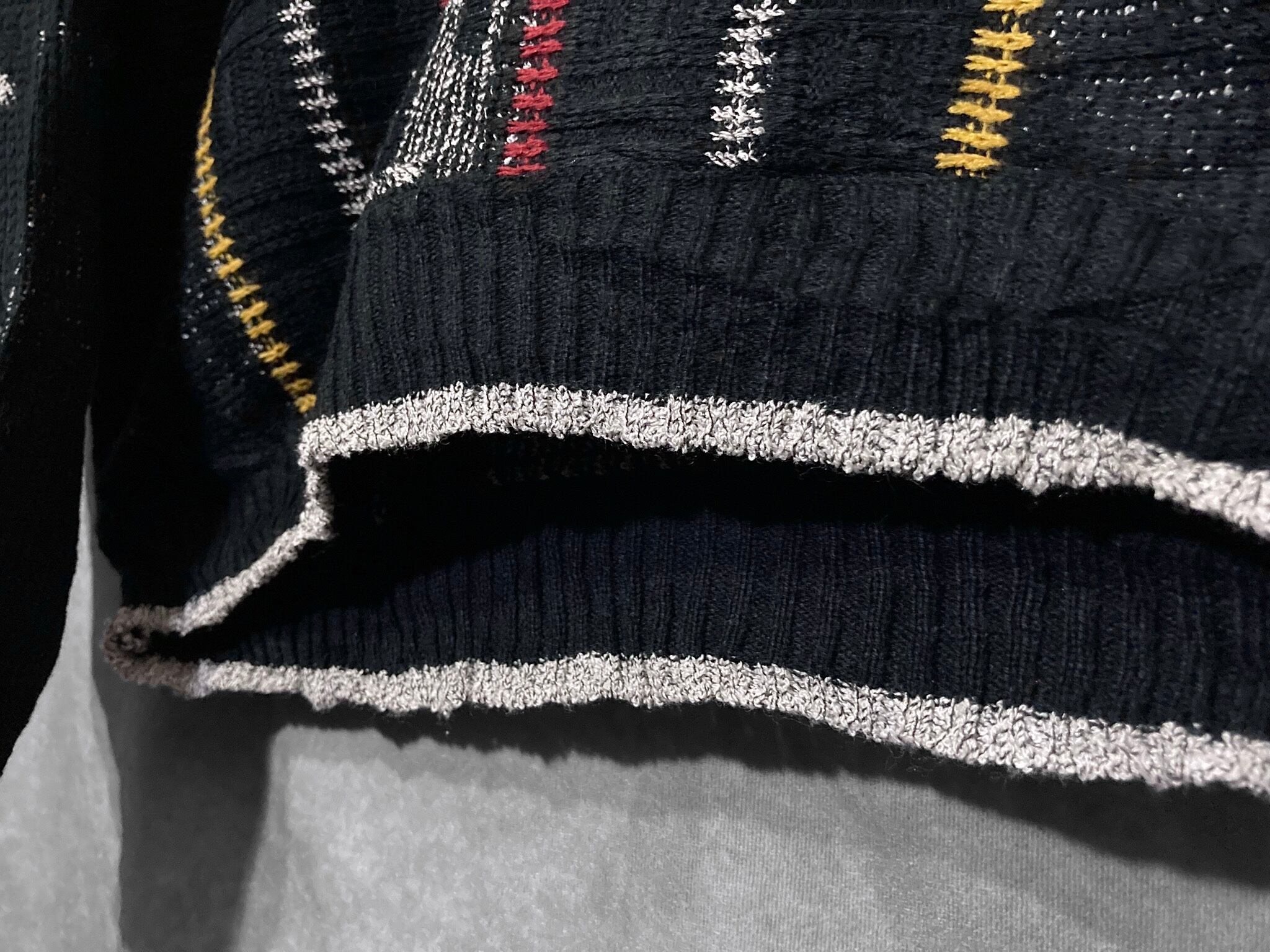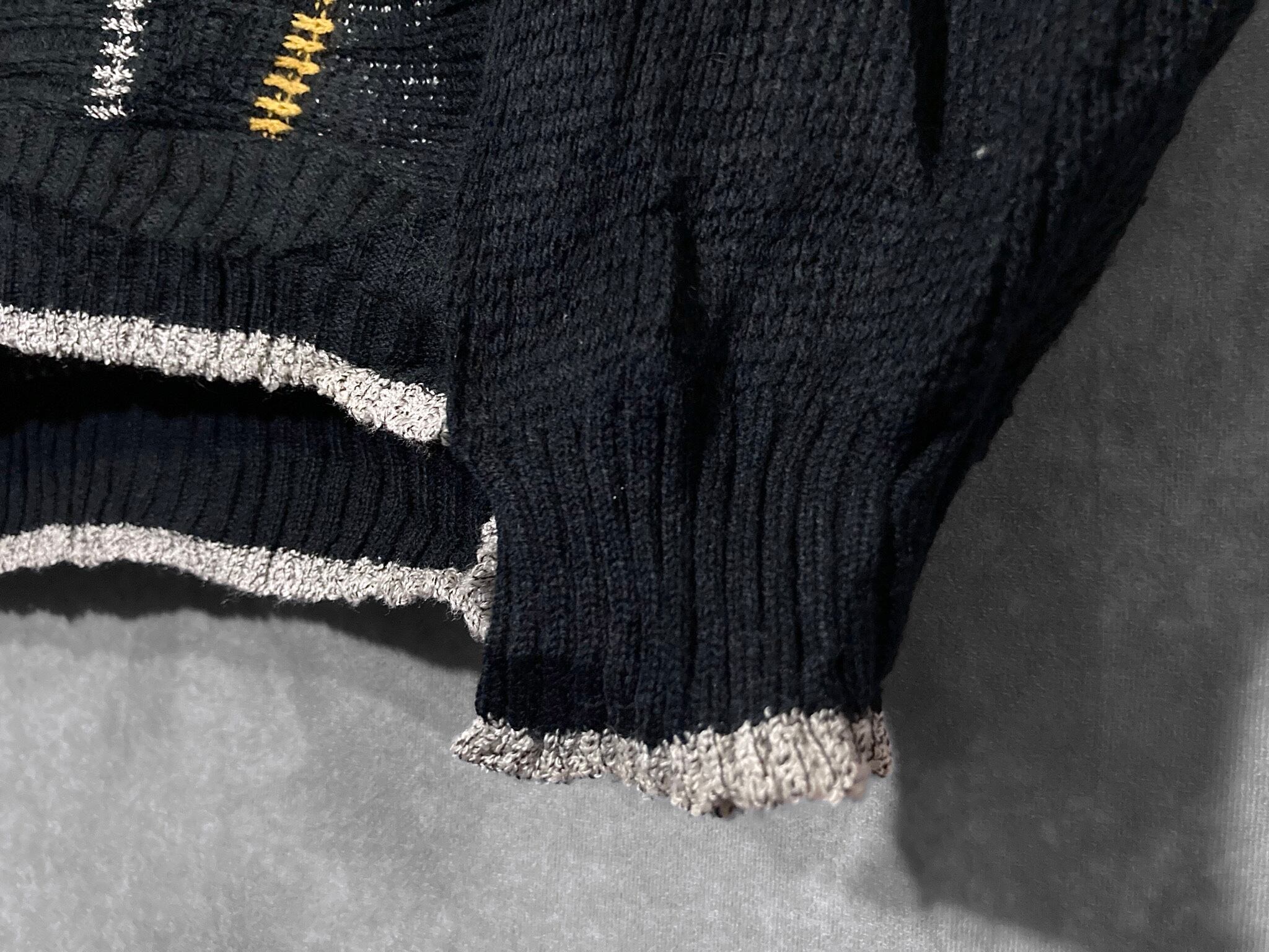 色の違う糸で黒の上を走るように編まれた