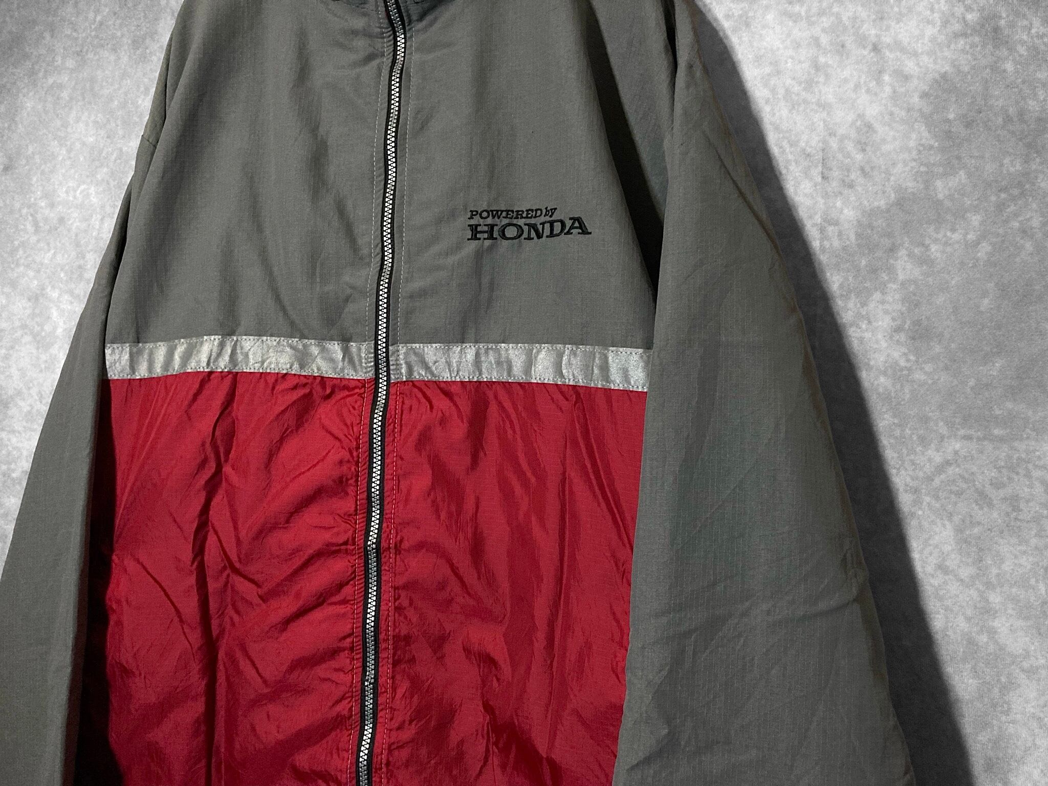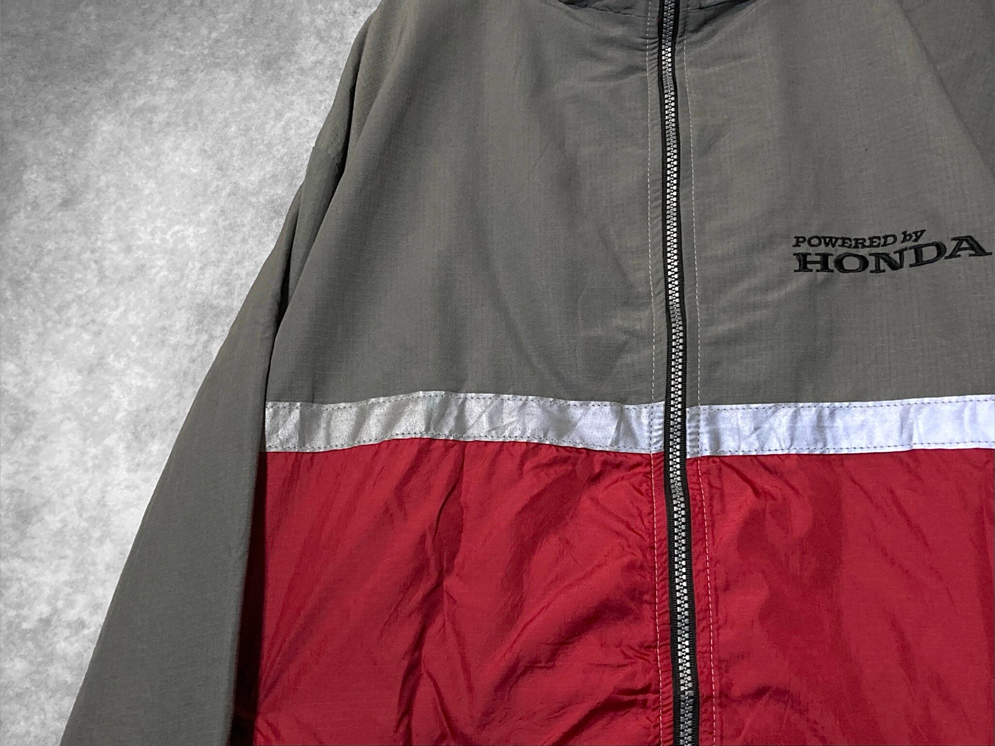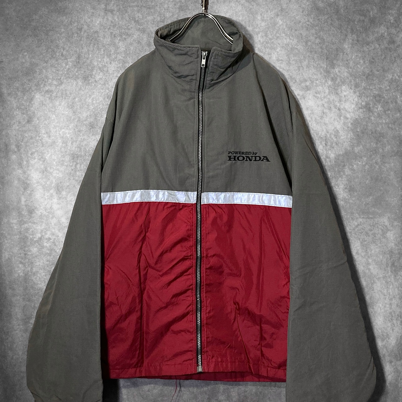 HONDA Logo embroidery × Gray / Red color Combination Switching design Full-zip jacket