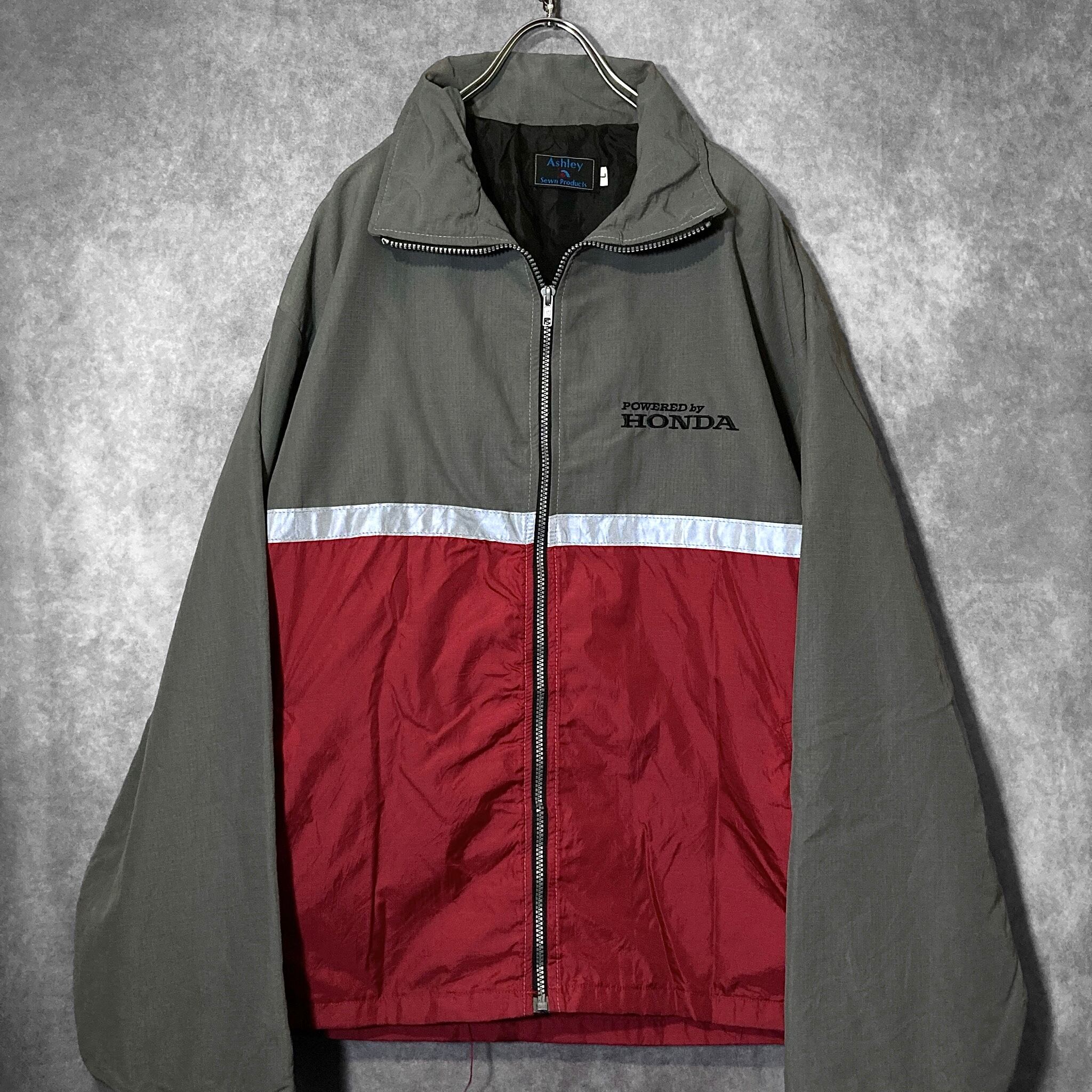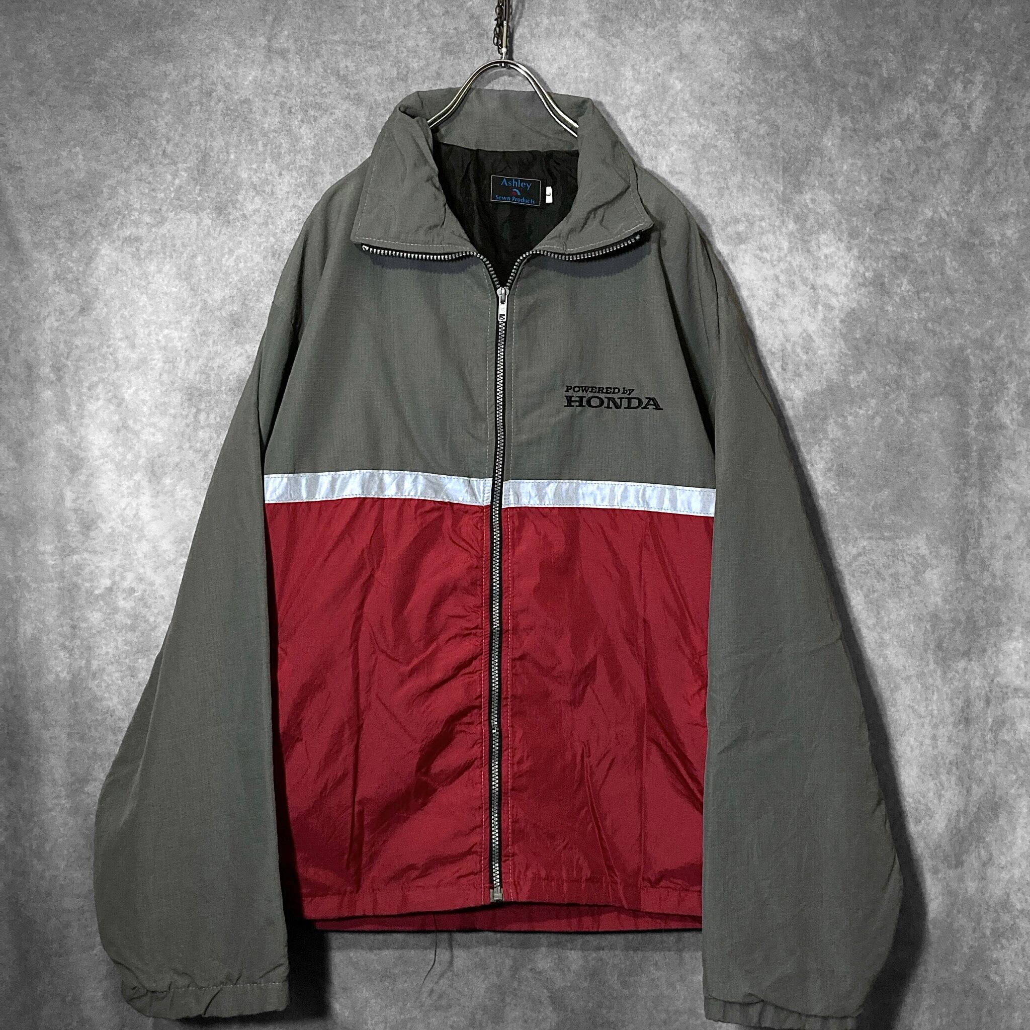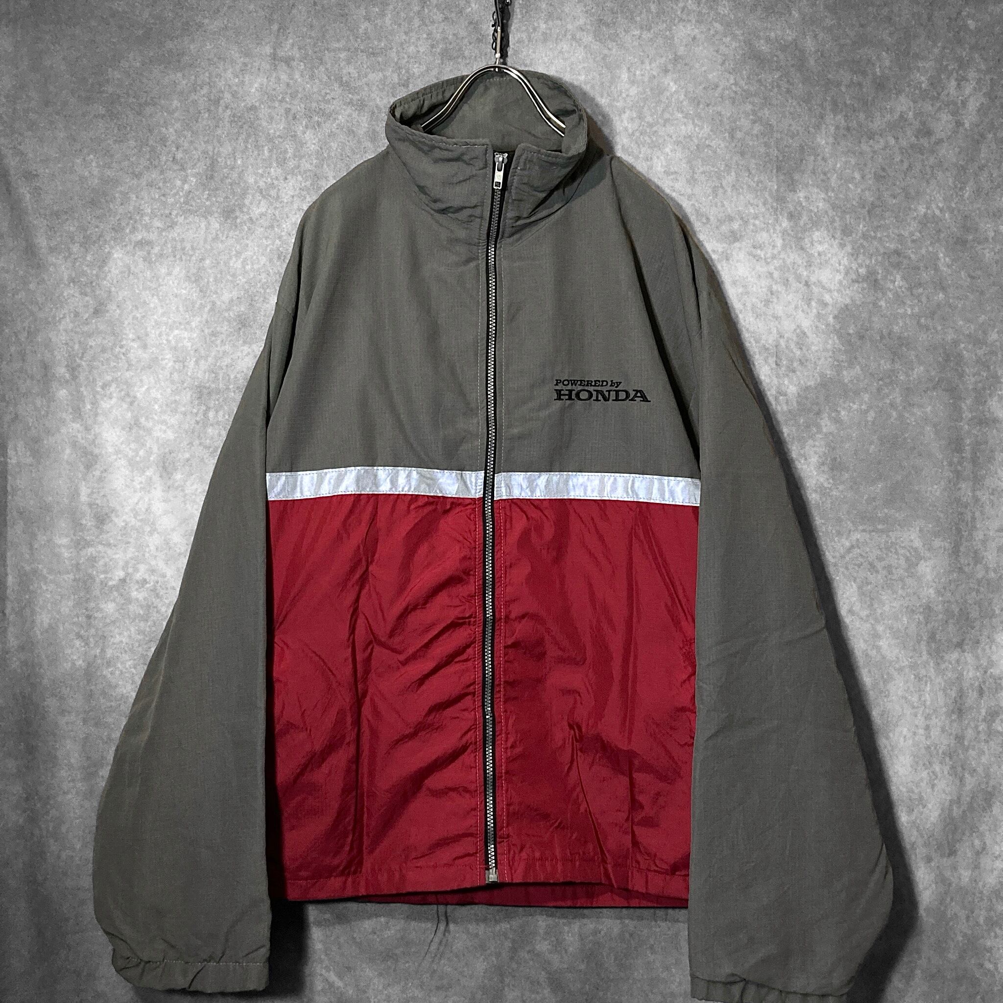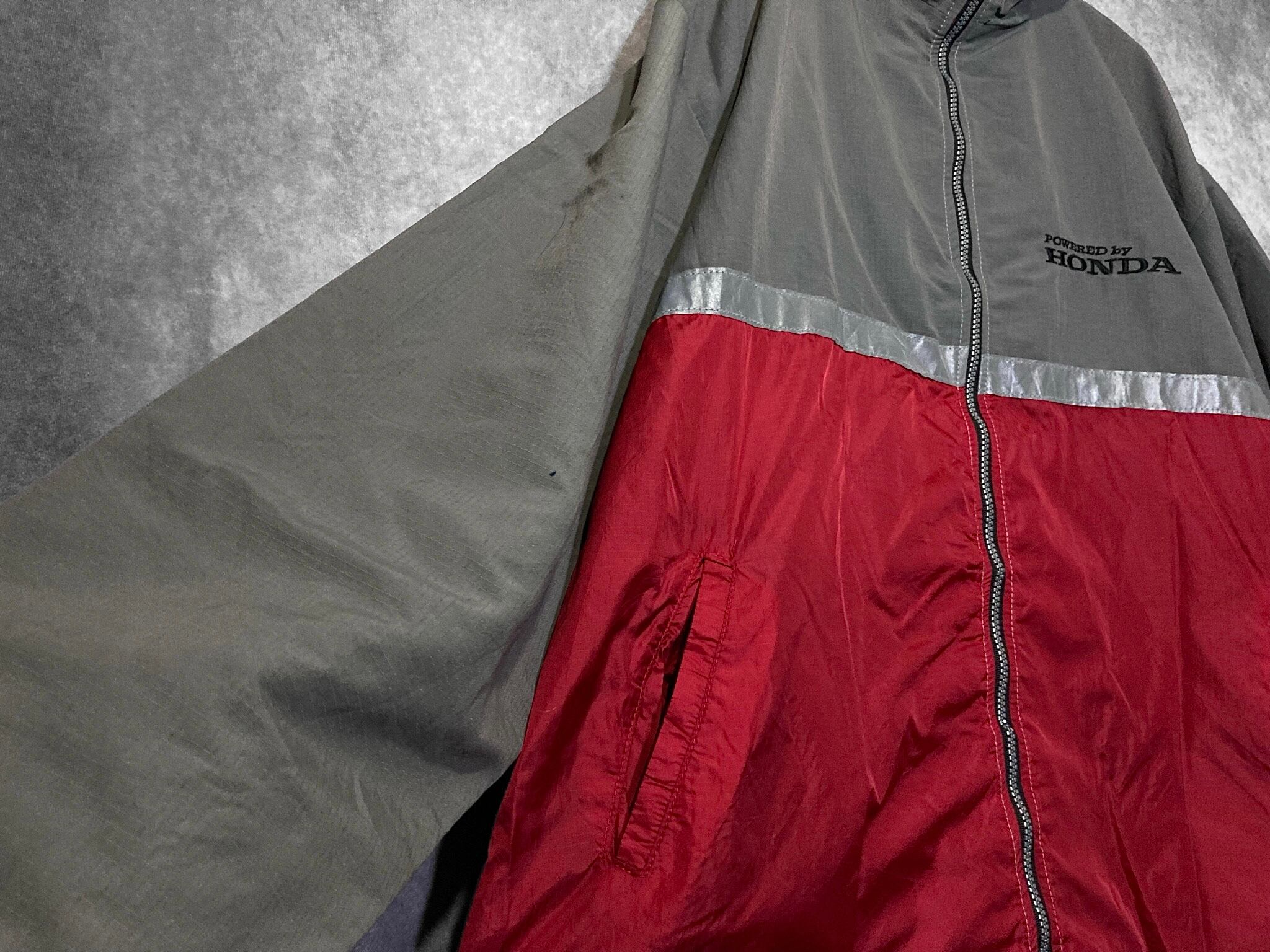 HONDA Logo embroidery × Gray / Red color Combination Switching design Full-zip jacket
