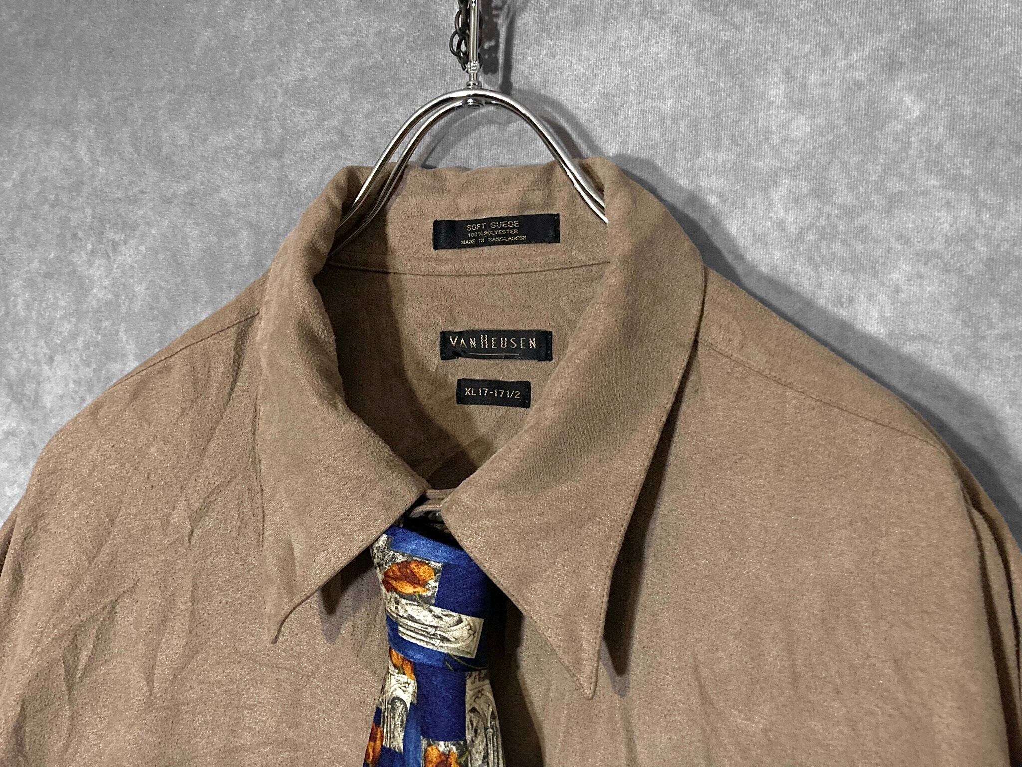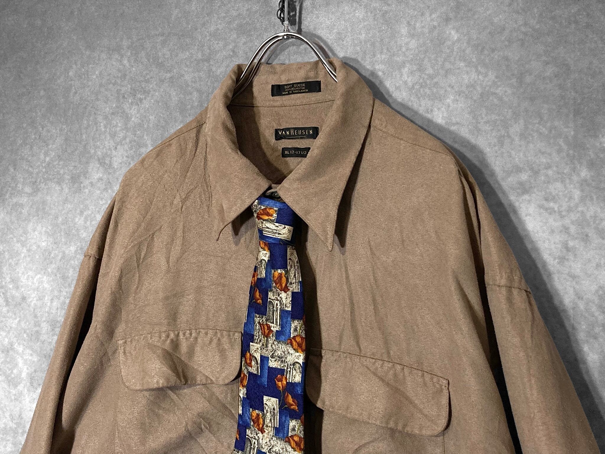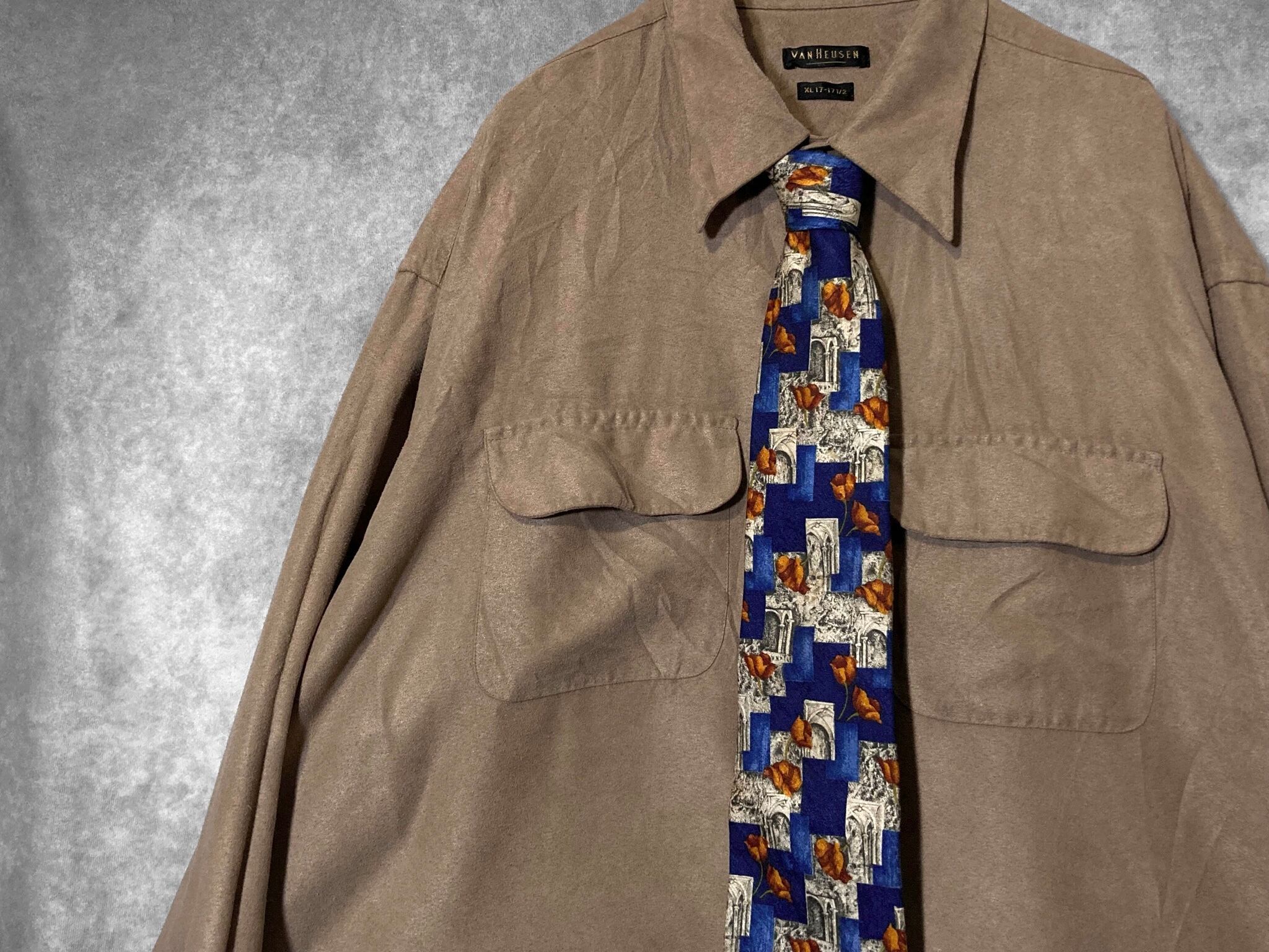 【VAN HEUSEN】XXL Faux suede fabric L/S Shirt × 【GIVENCHY】 Bewitching Floral pattern design necktie
