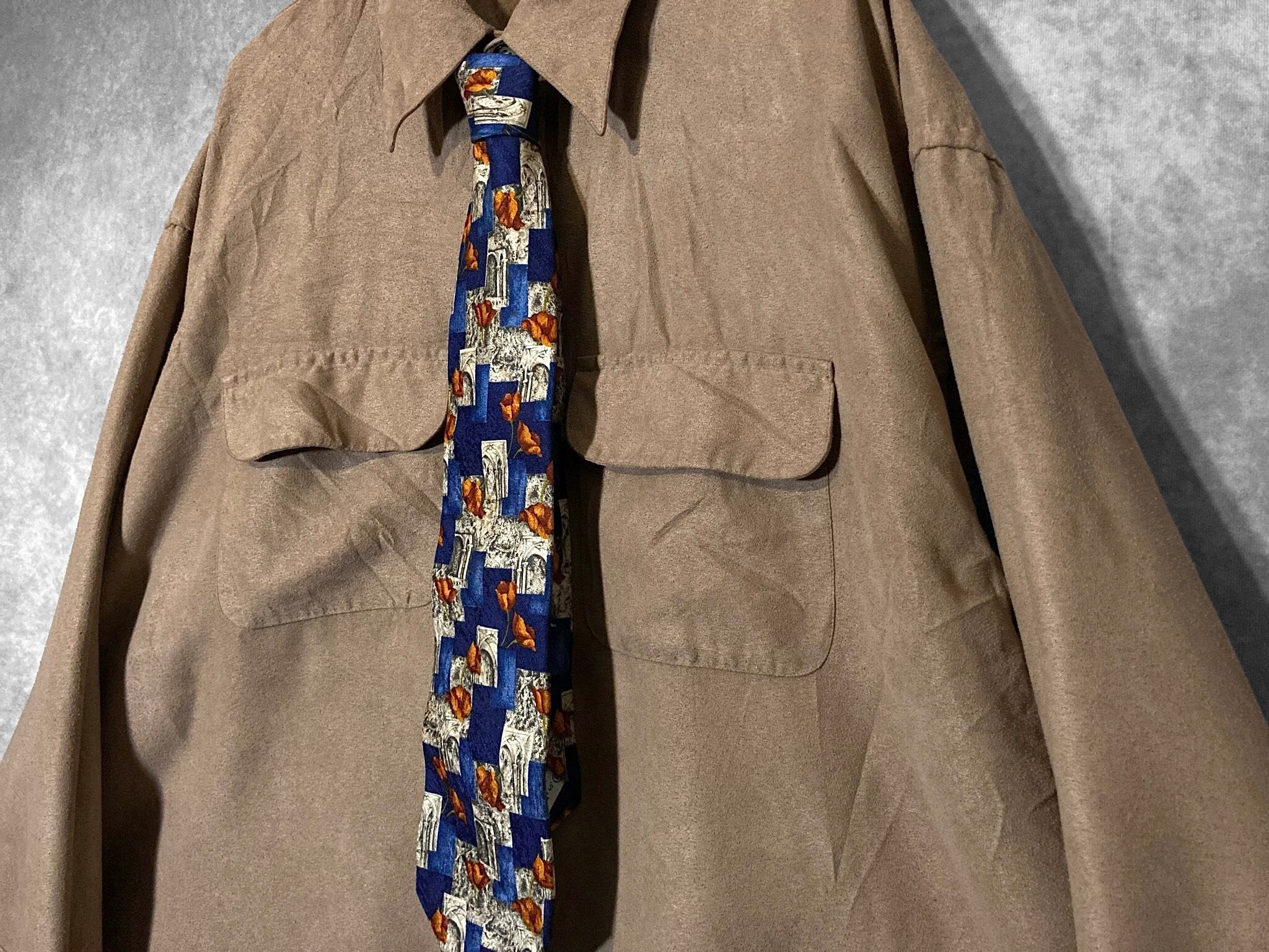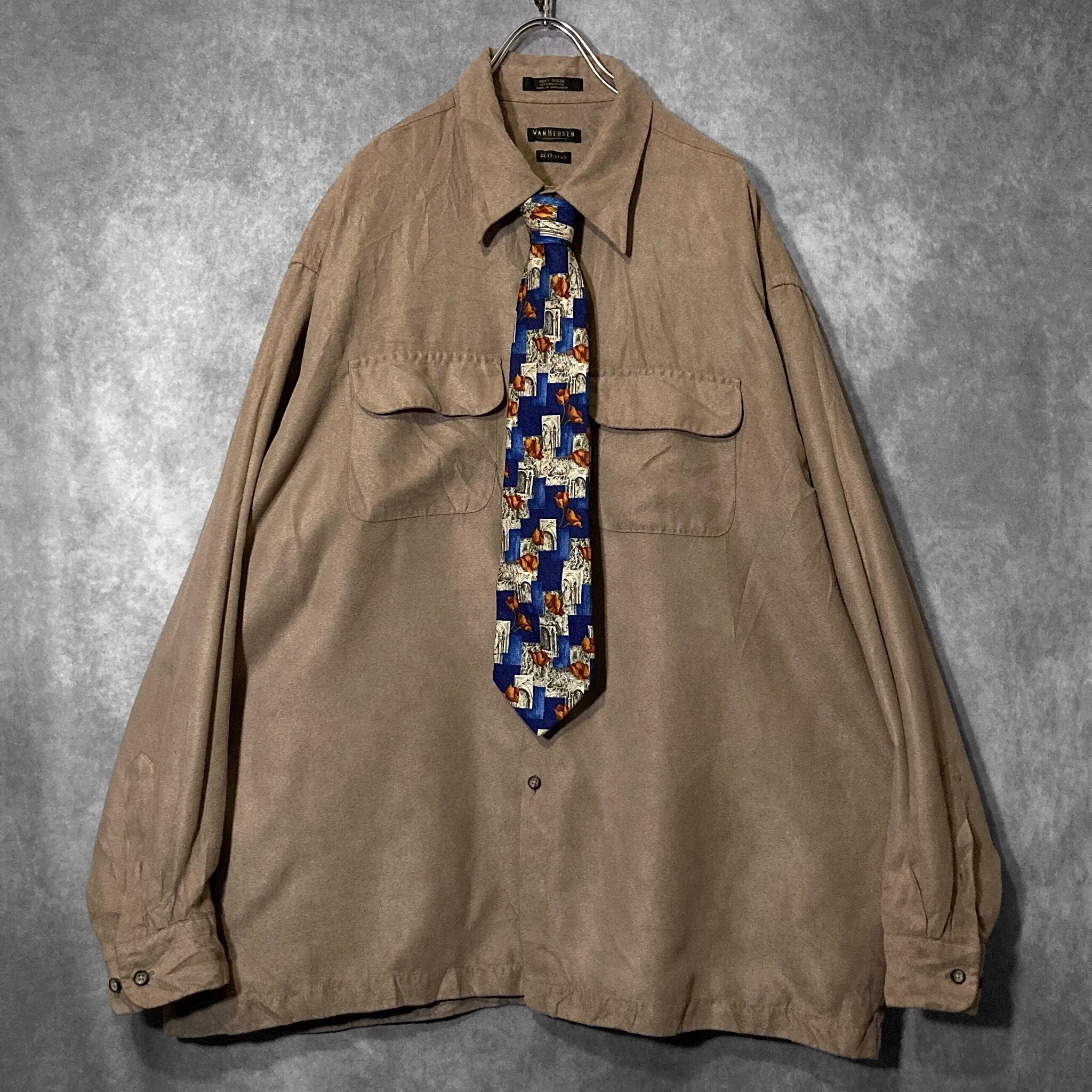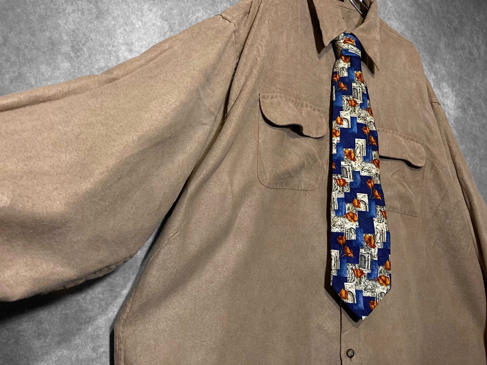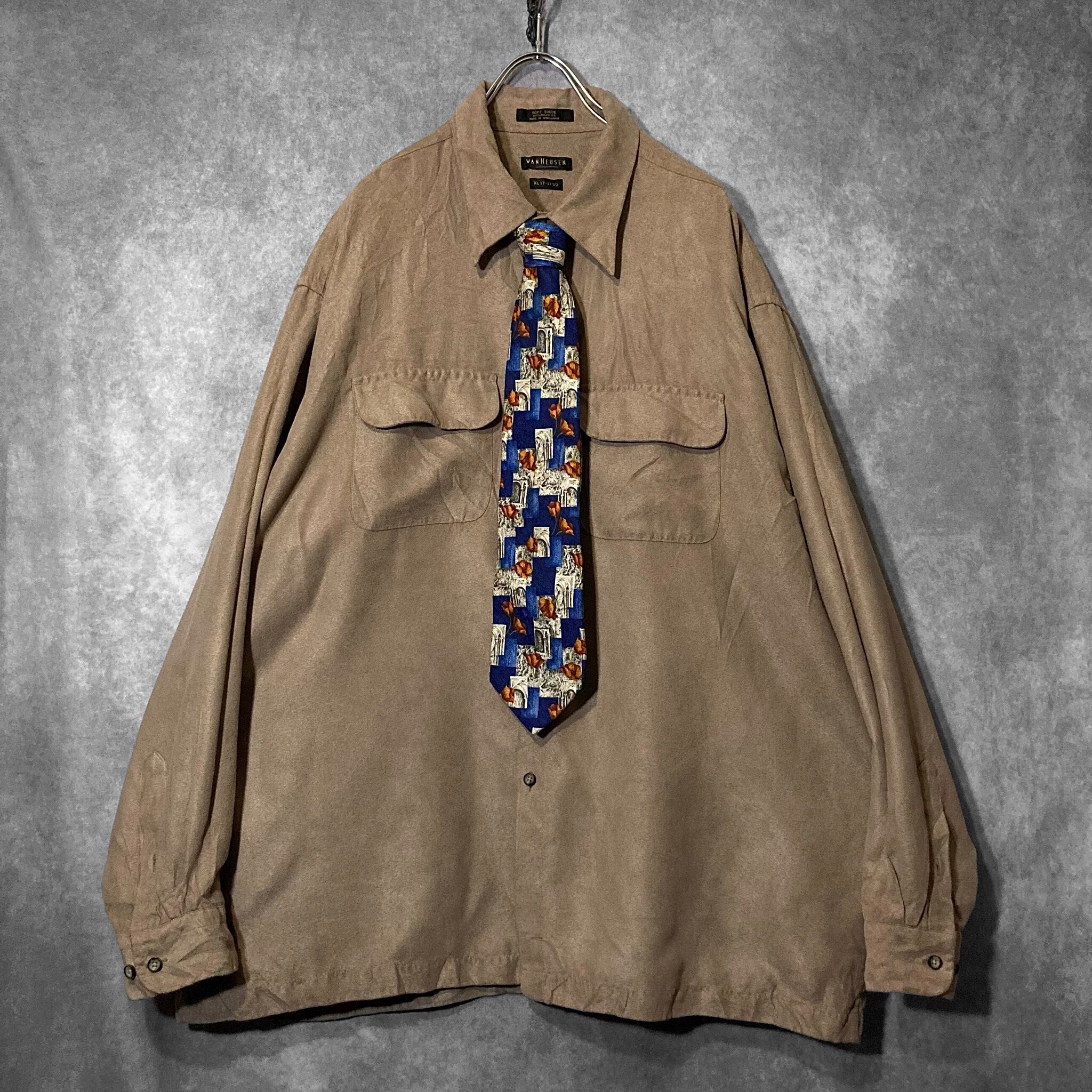 【VAN HEUSEN】XXL Faux suede fabric L/S Shirt × 【GIVENCHY】 Bewitching Floral pattern design necktie
