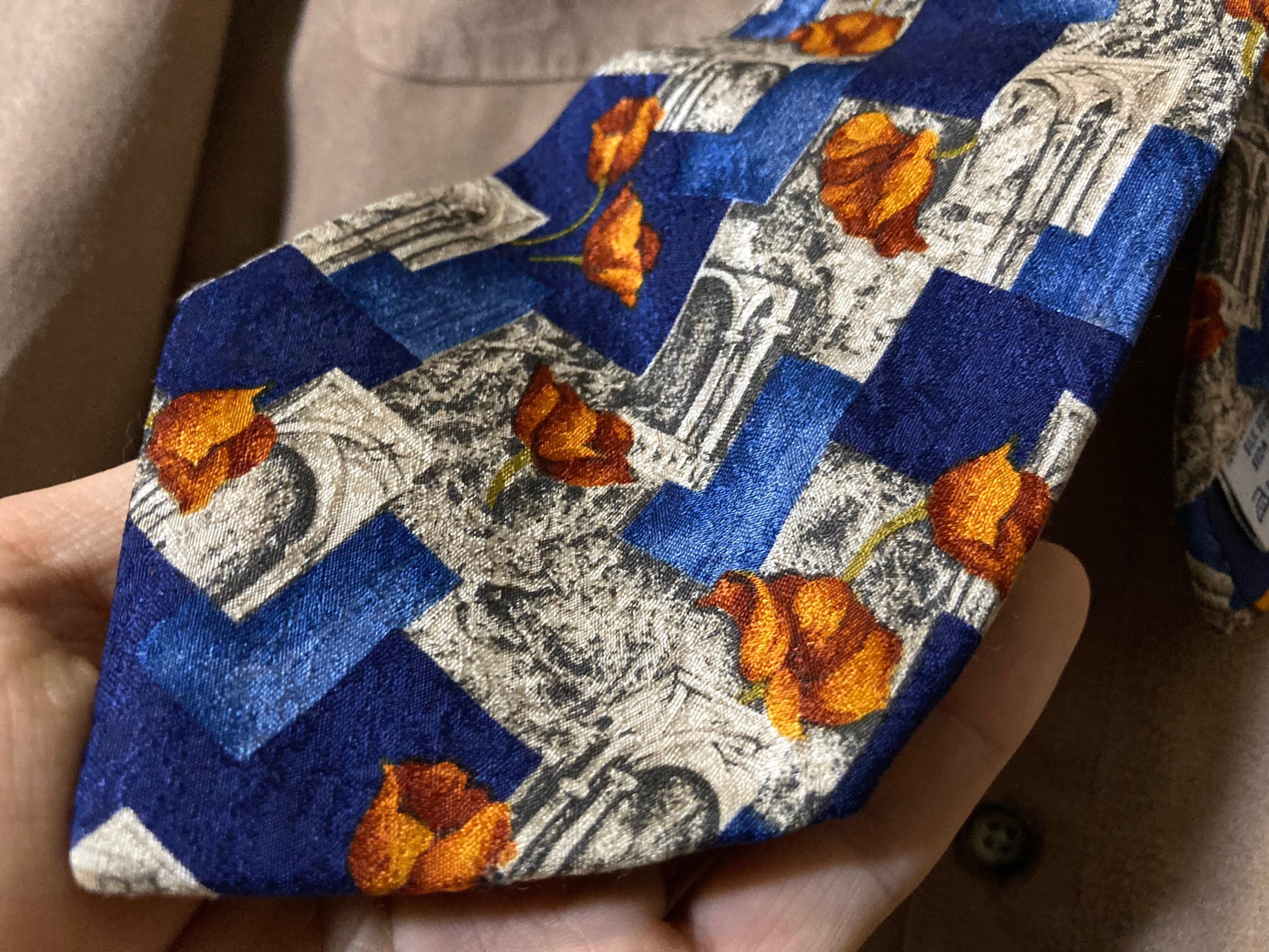 まるで1枚の花の絵画のようなアーティスティックなフローラルプリントが可愛い総柄ネクタイ。