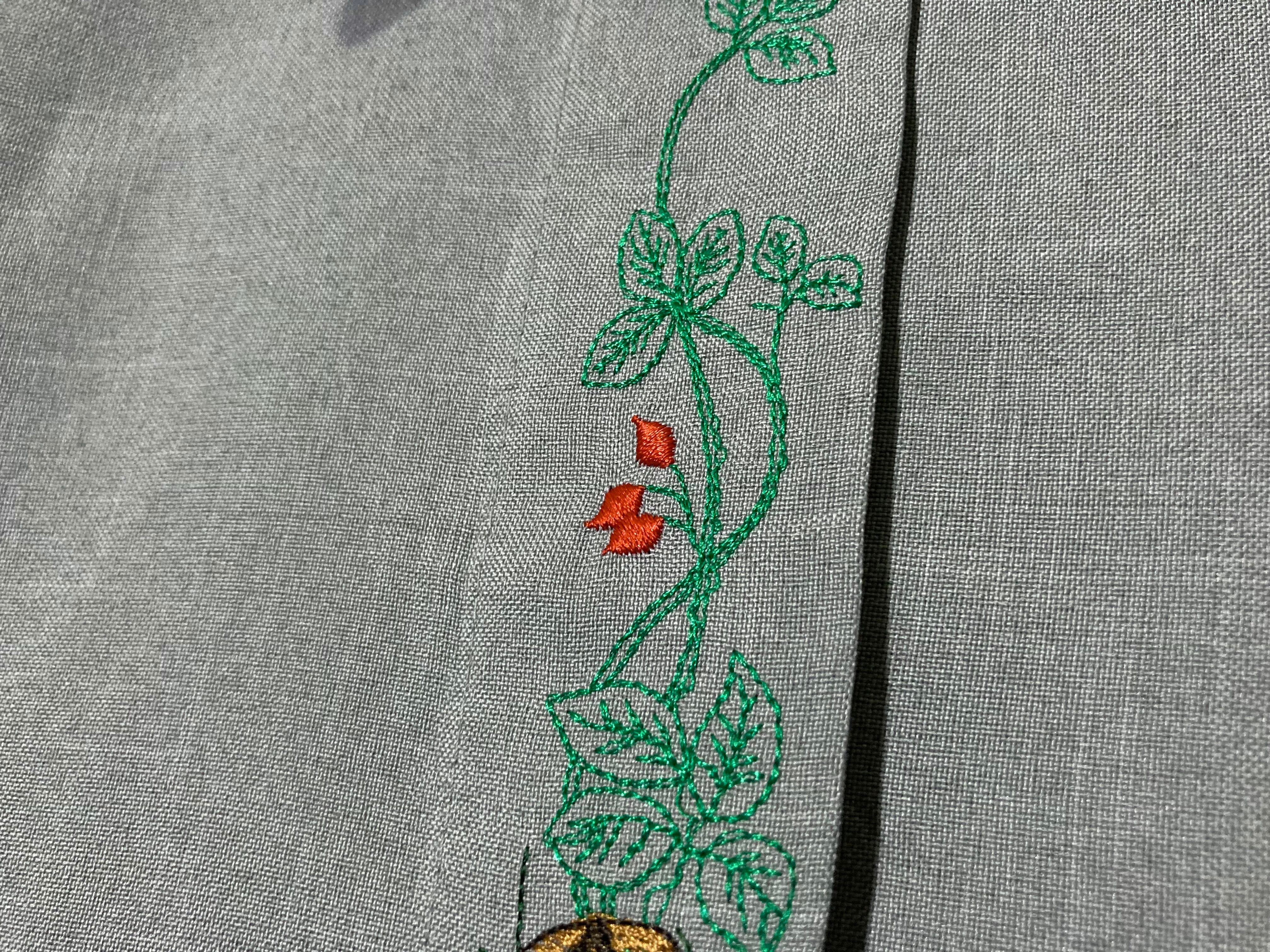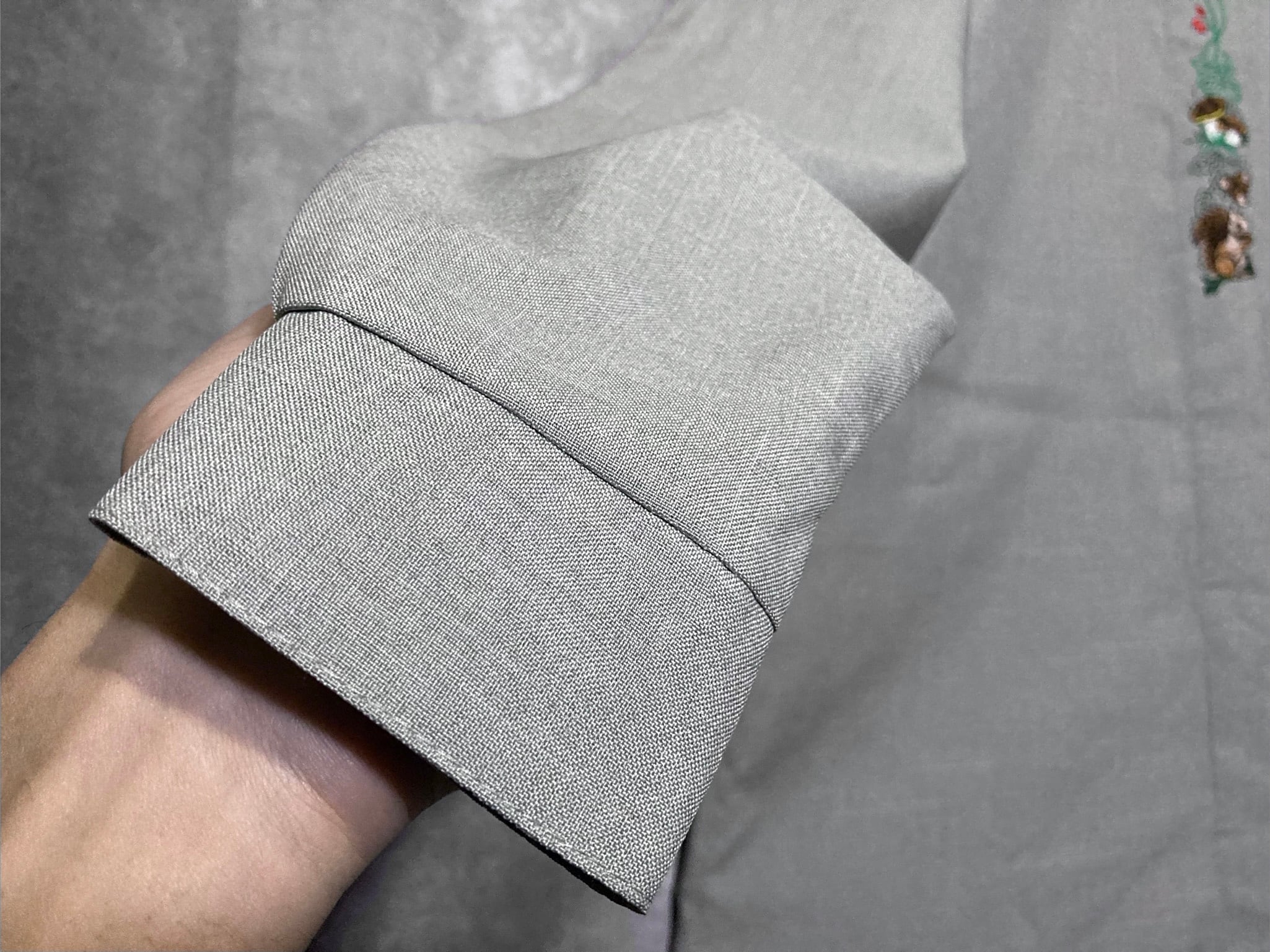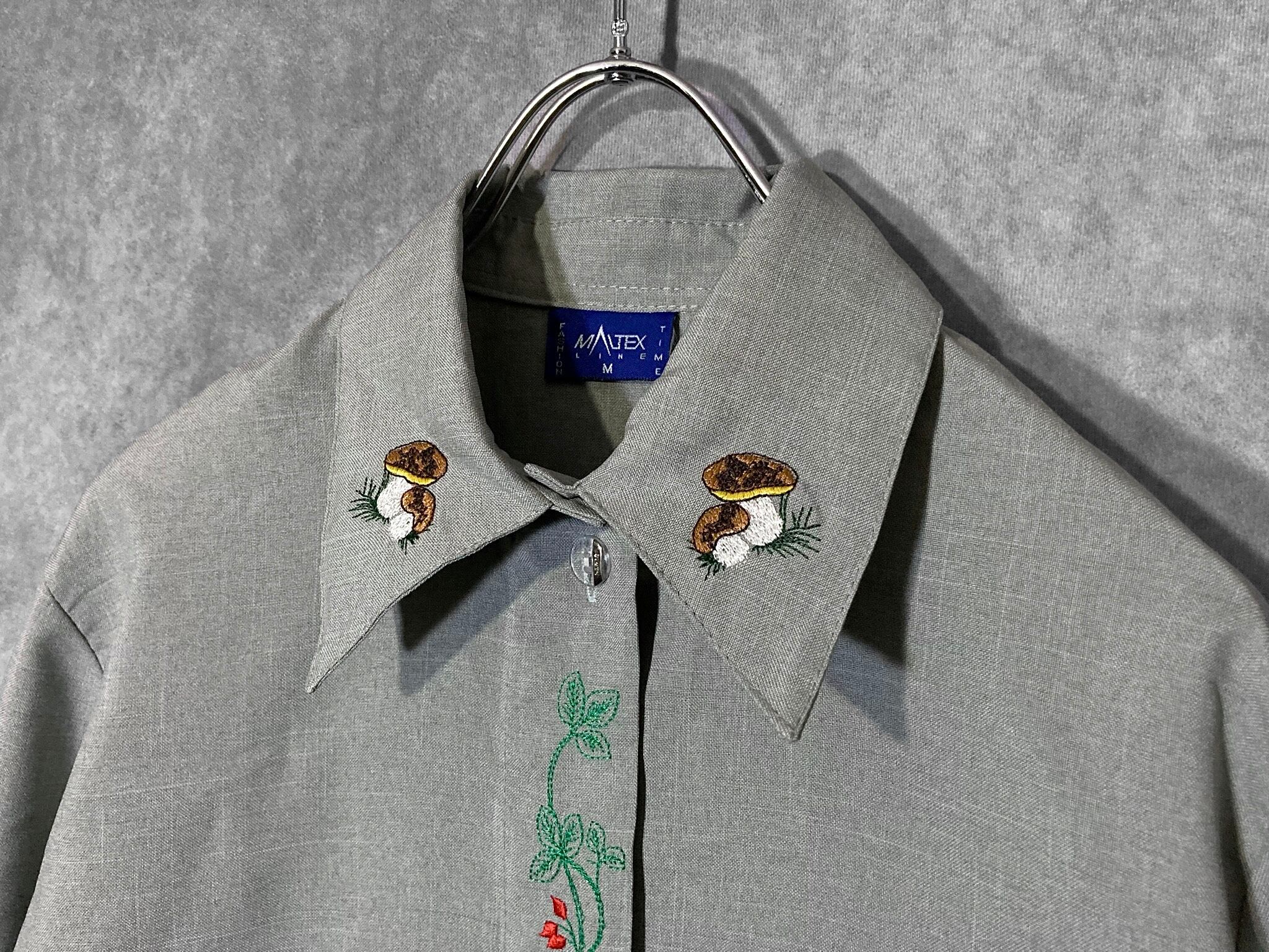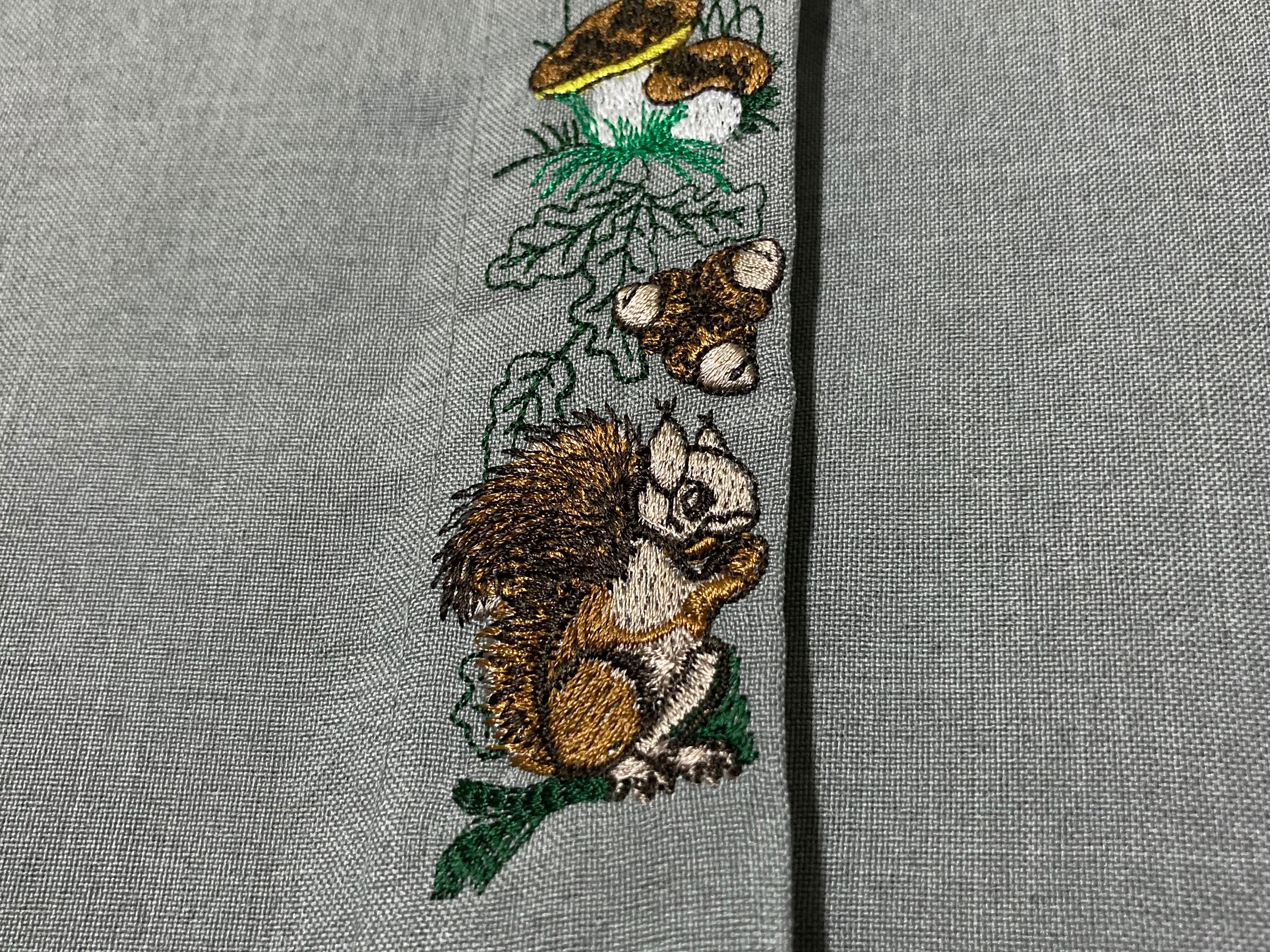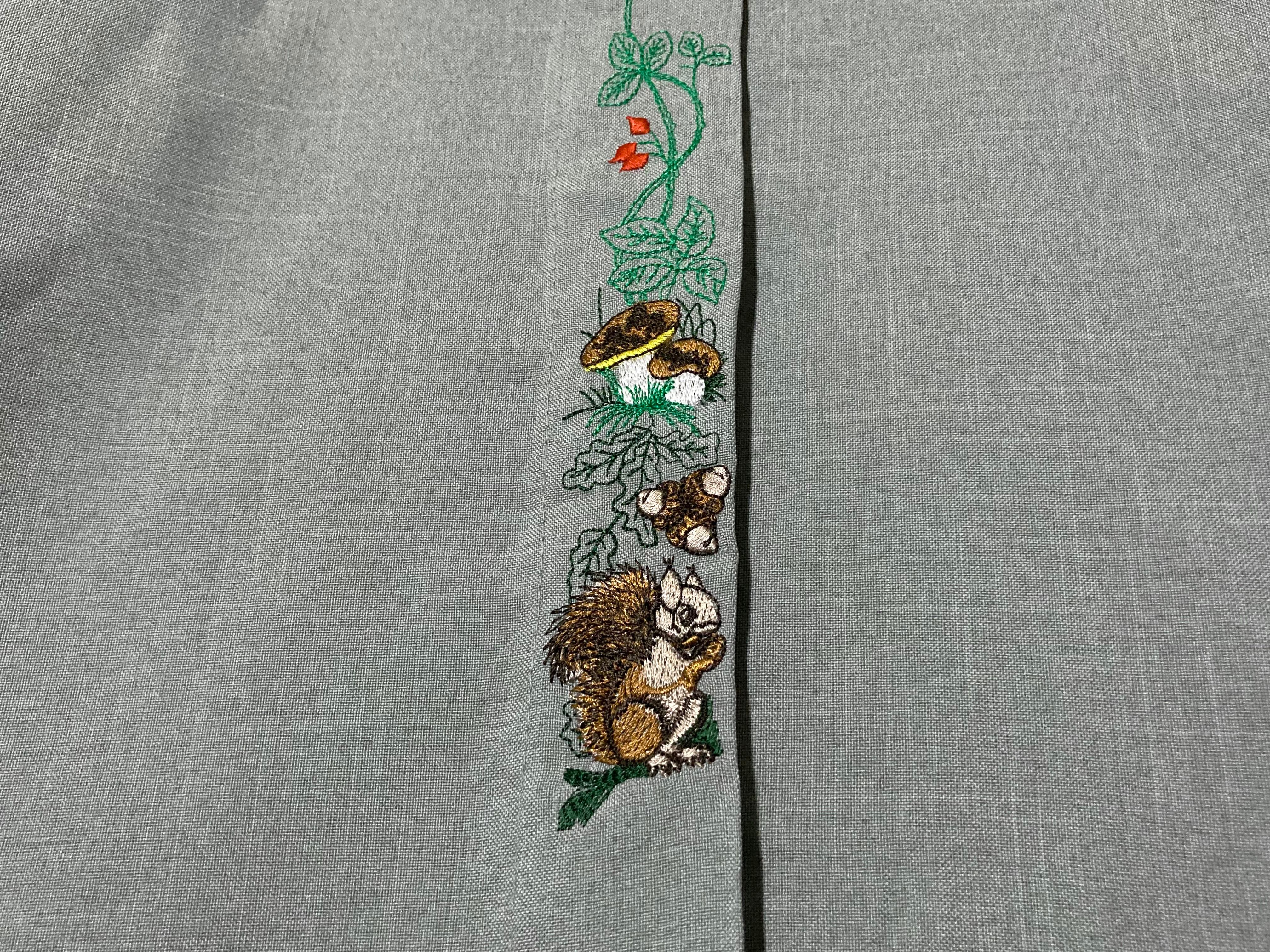 Squirrel and mushroom embroidery design L/S chambray Gray shirt