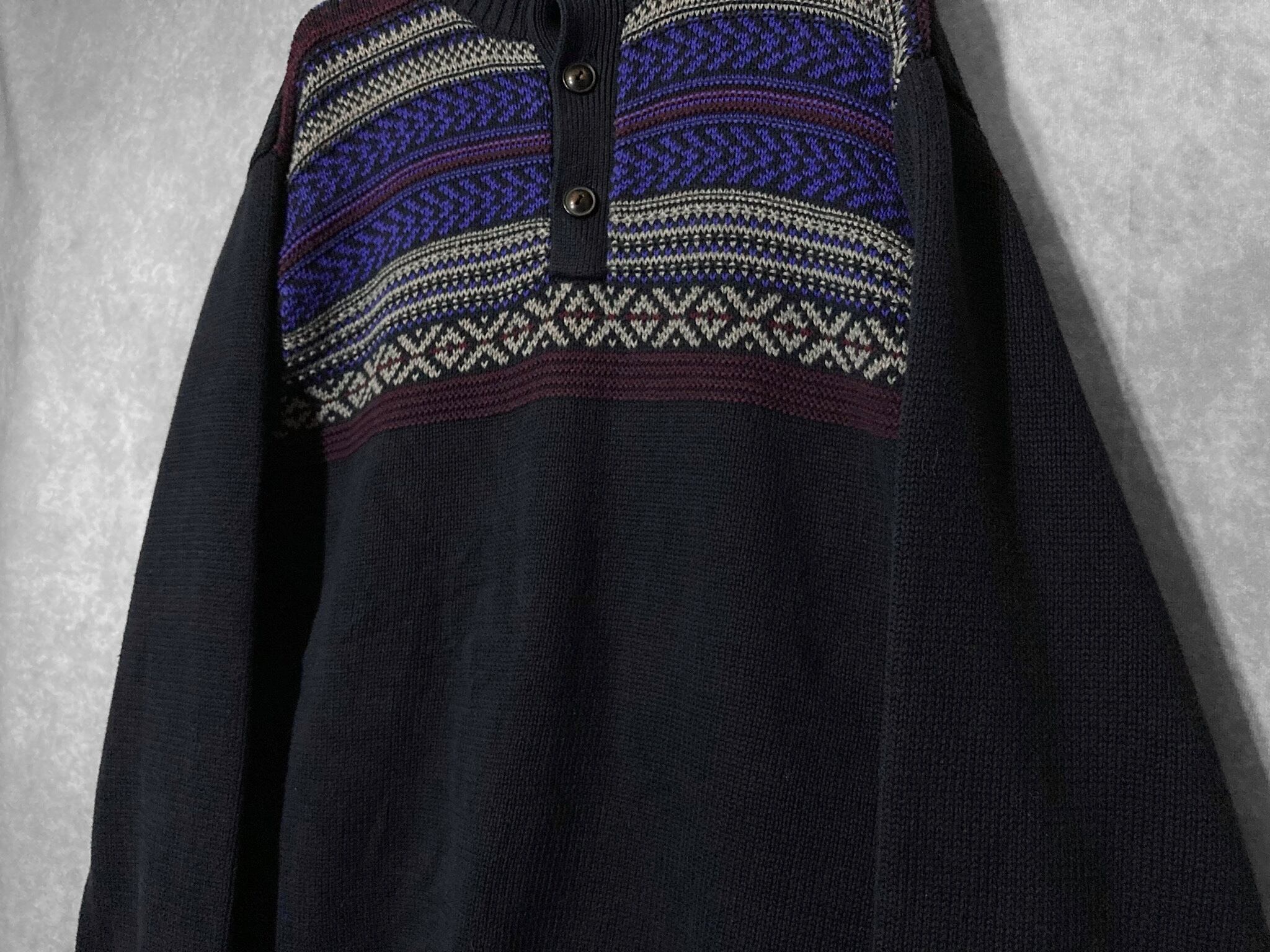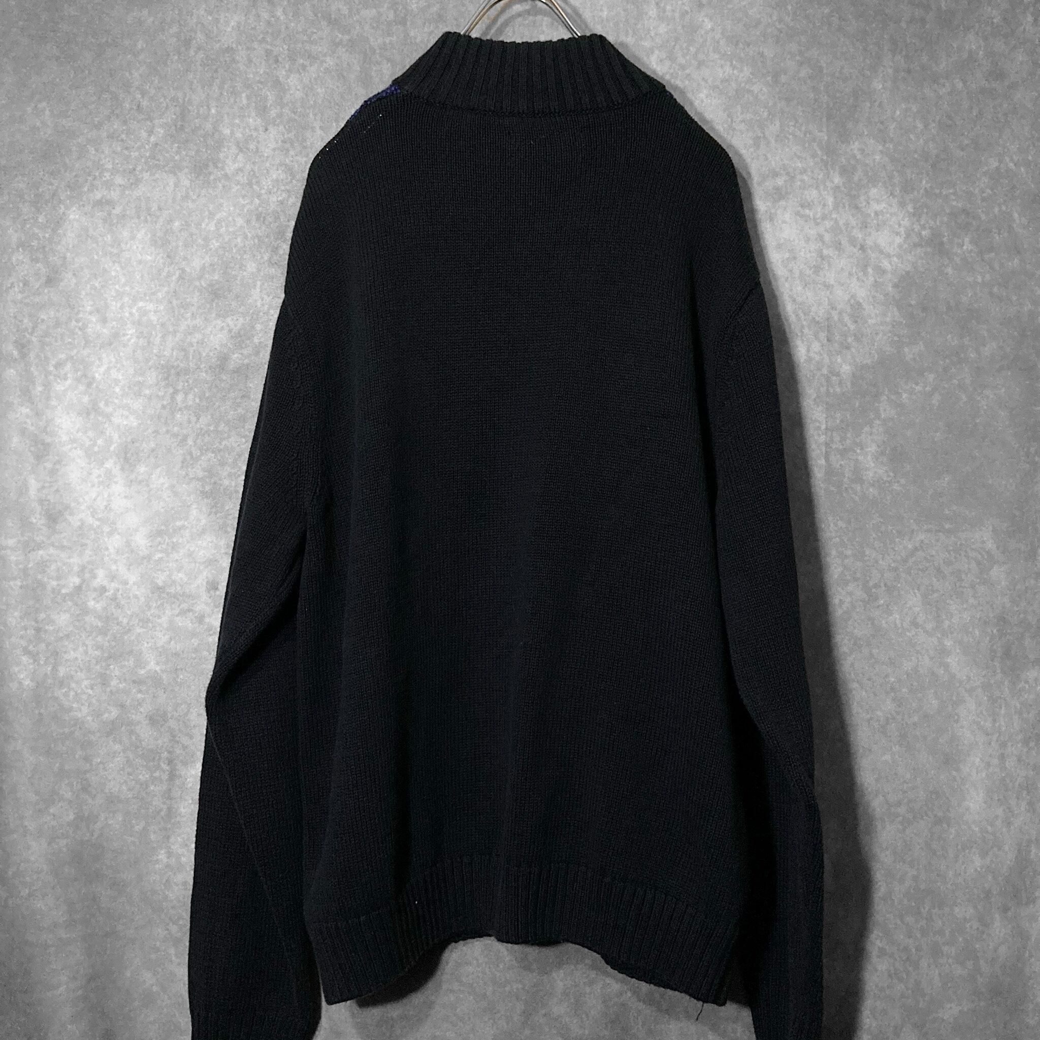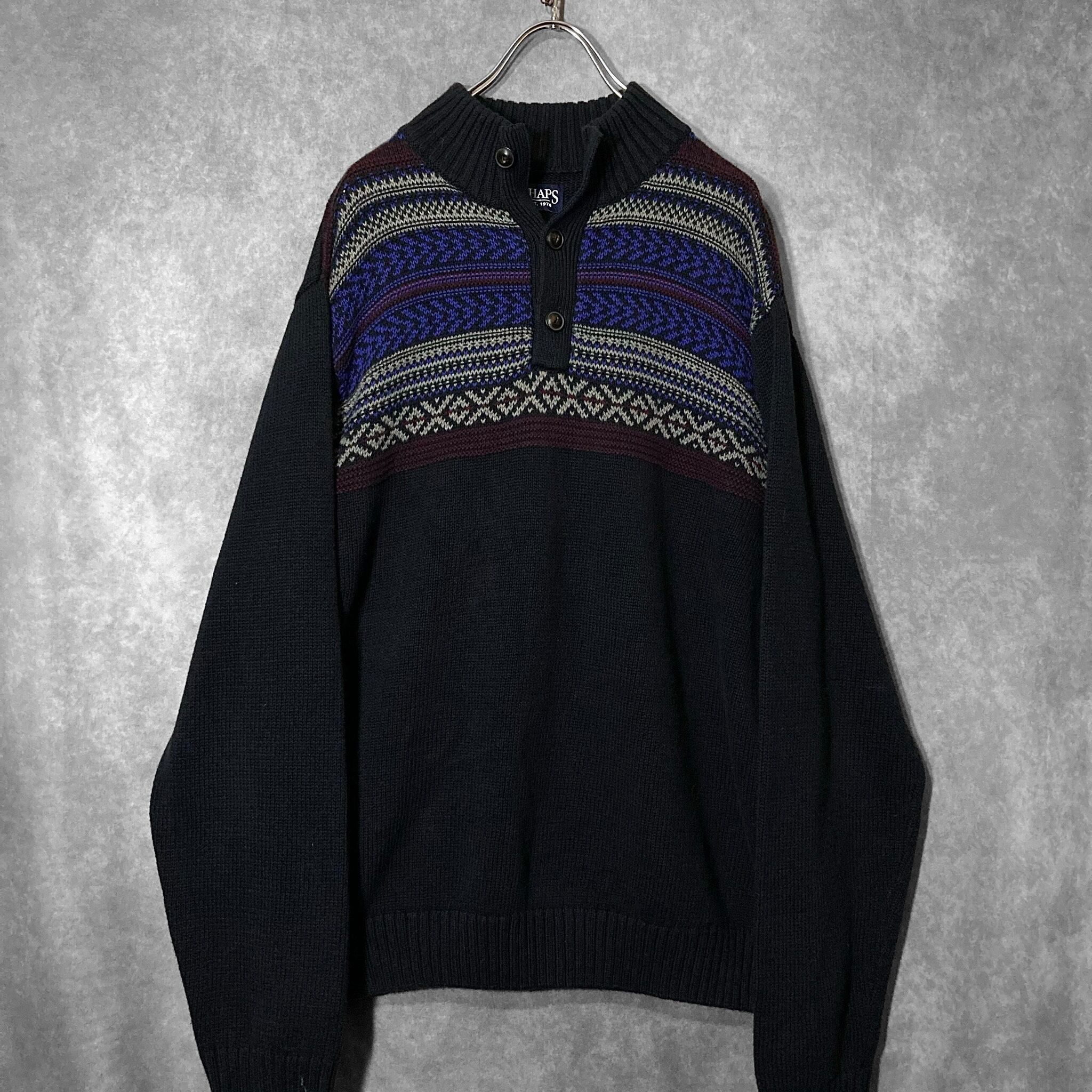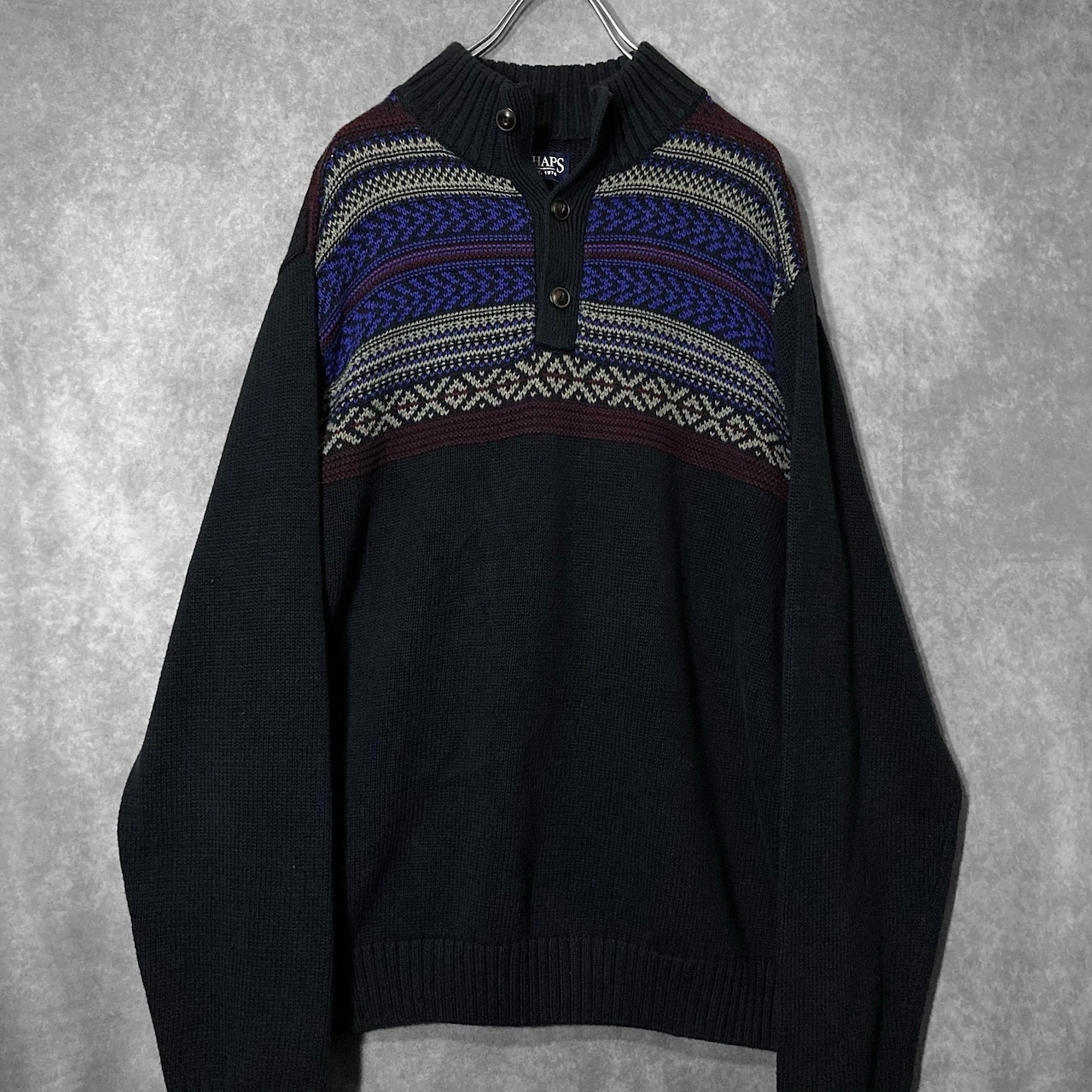 CHAPS Mysterious jacquard pattern Switching design Black color Half button knit