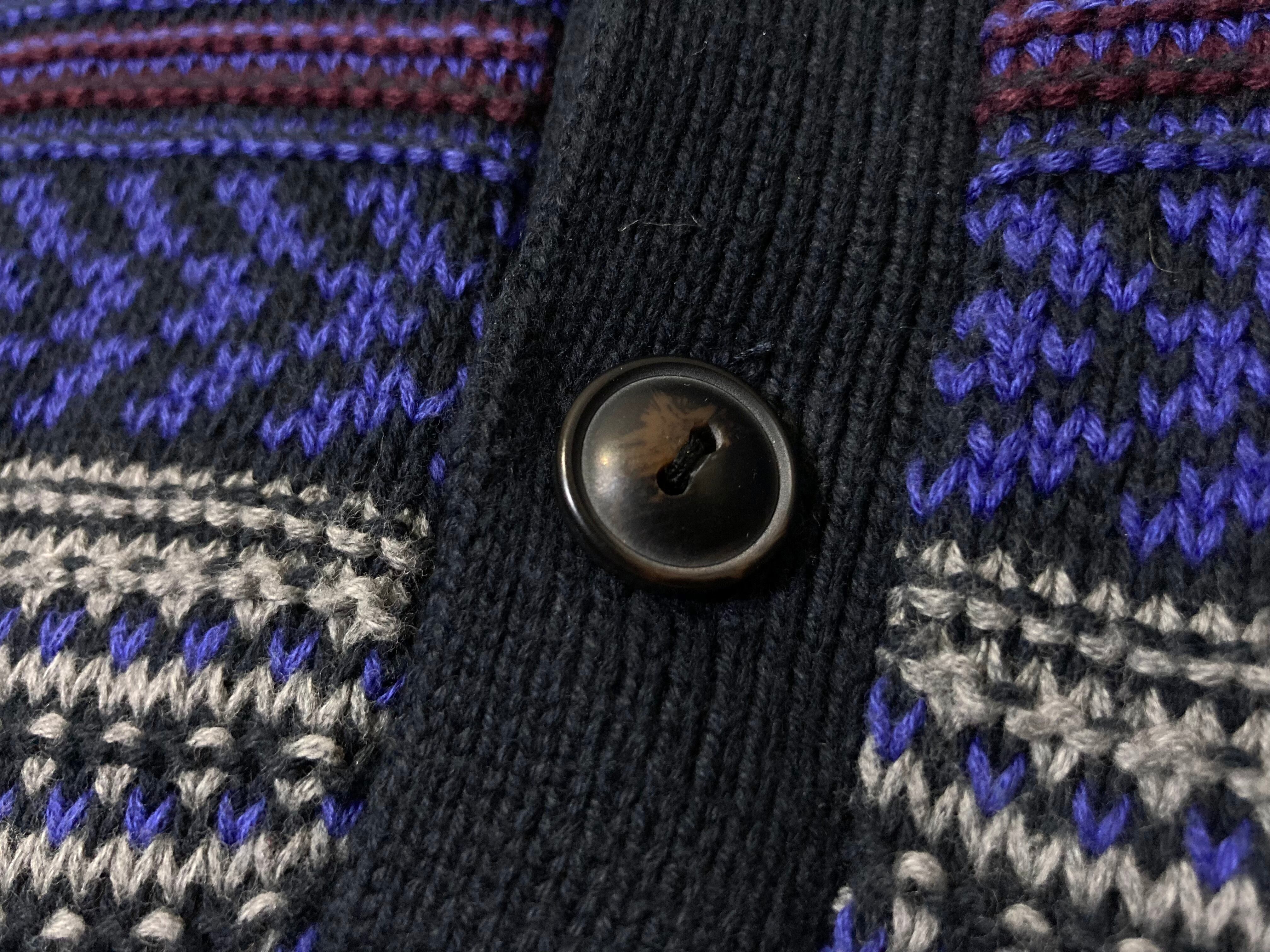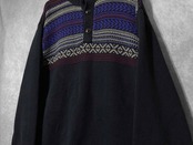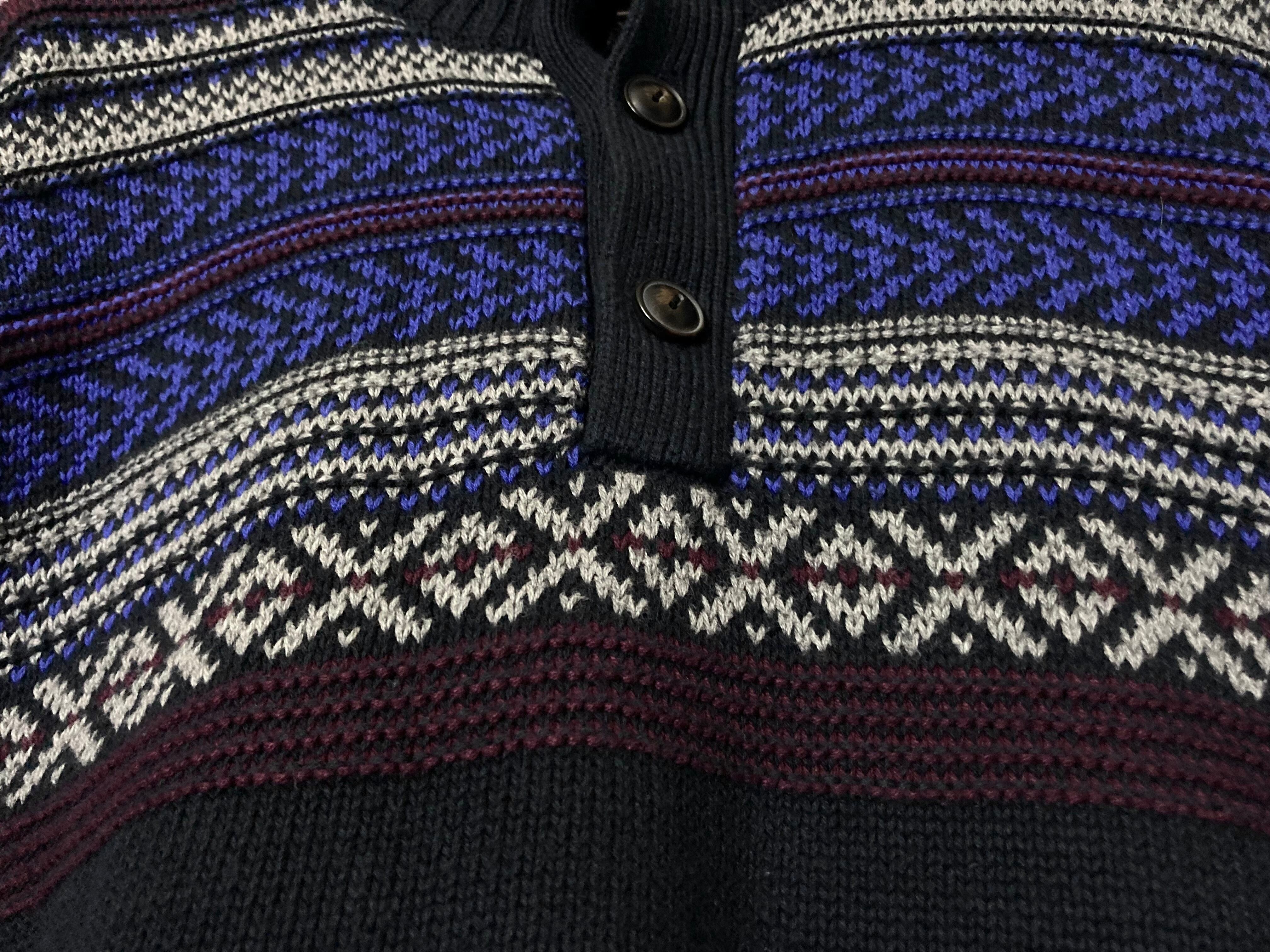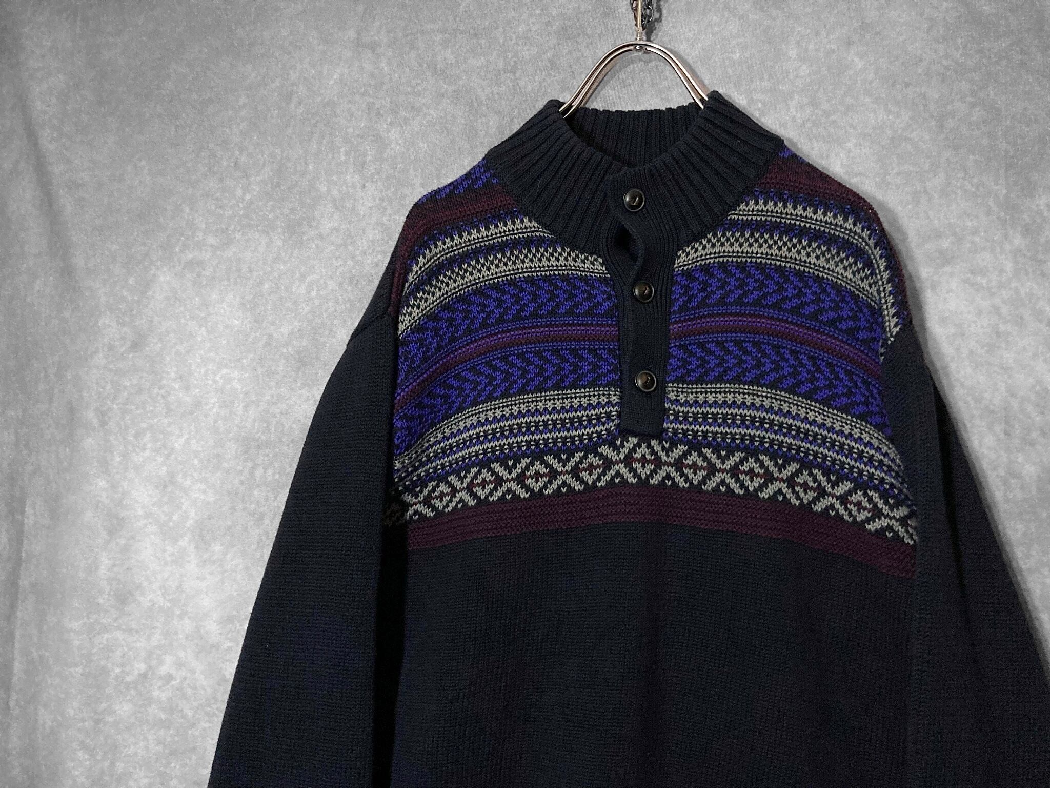 CHAPS Mysterious jacquard pattern Switching design Black color Half button knit