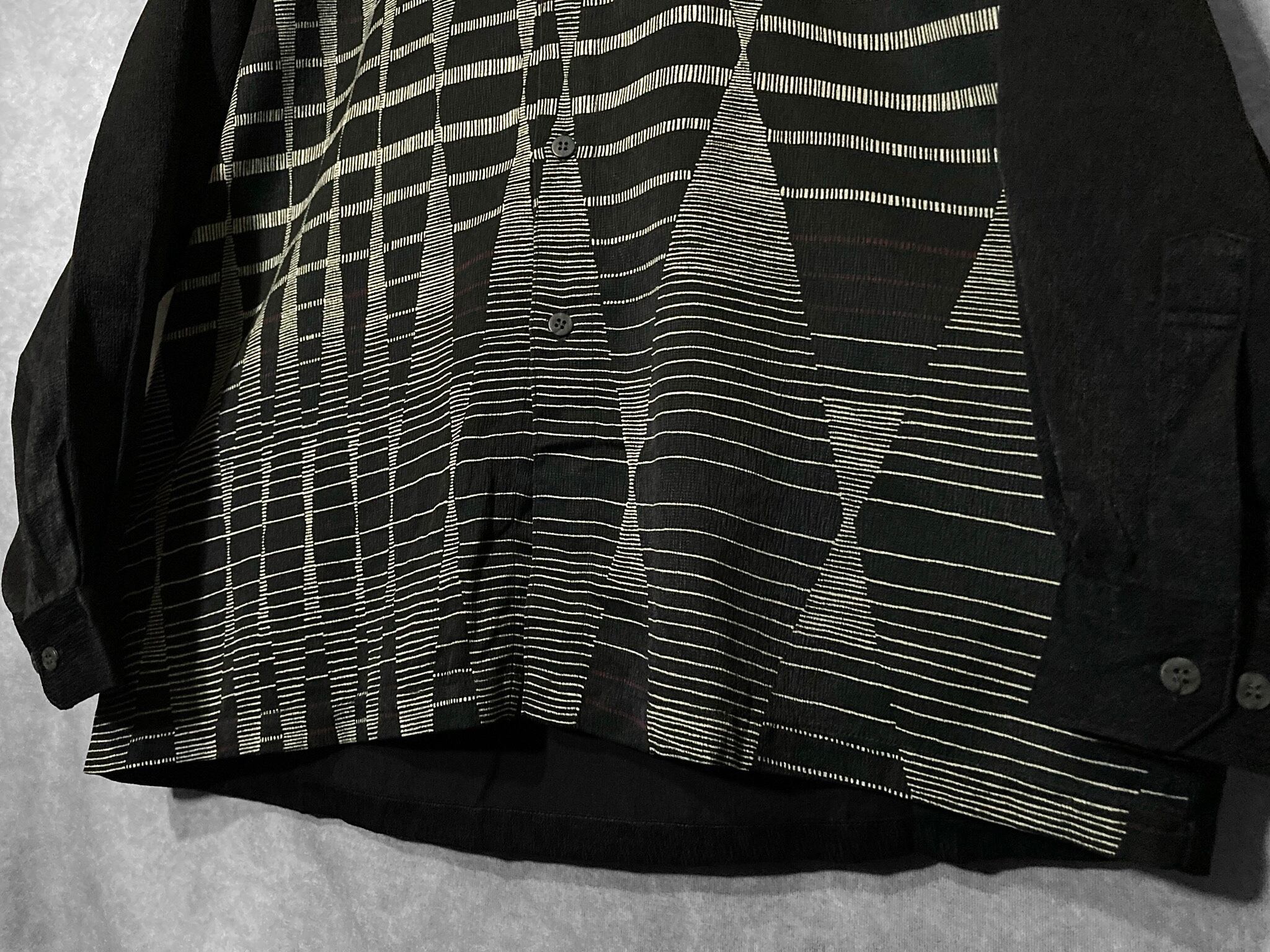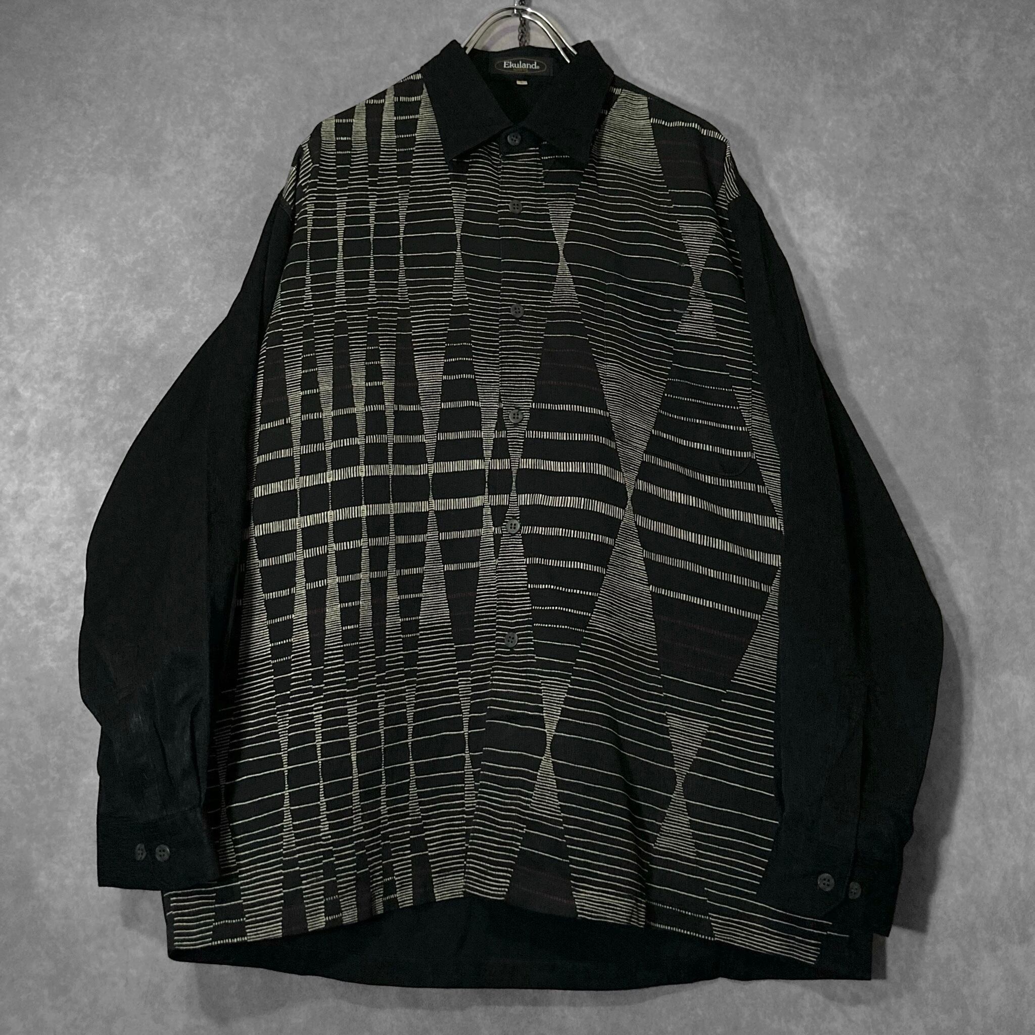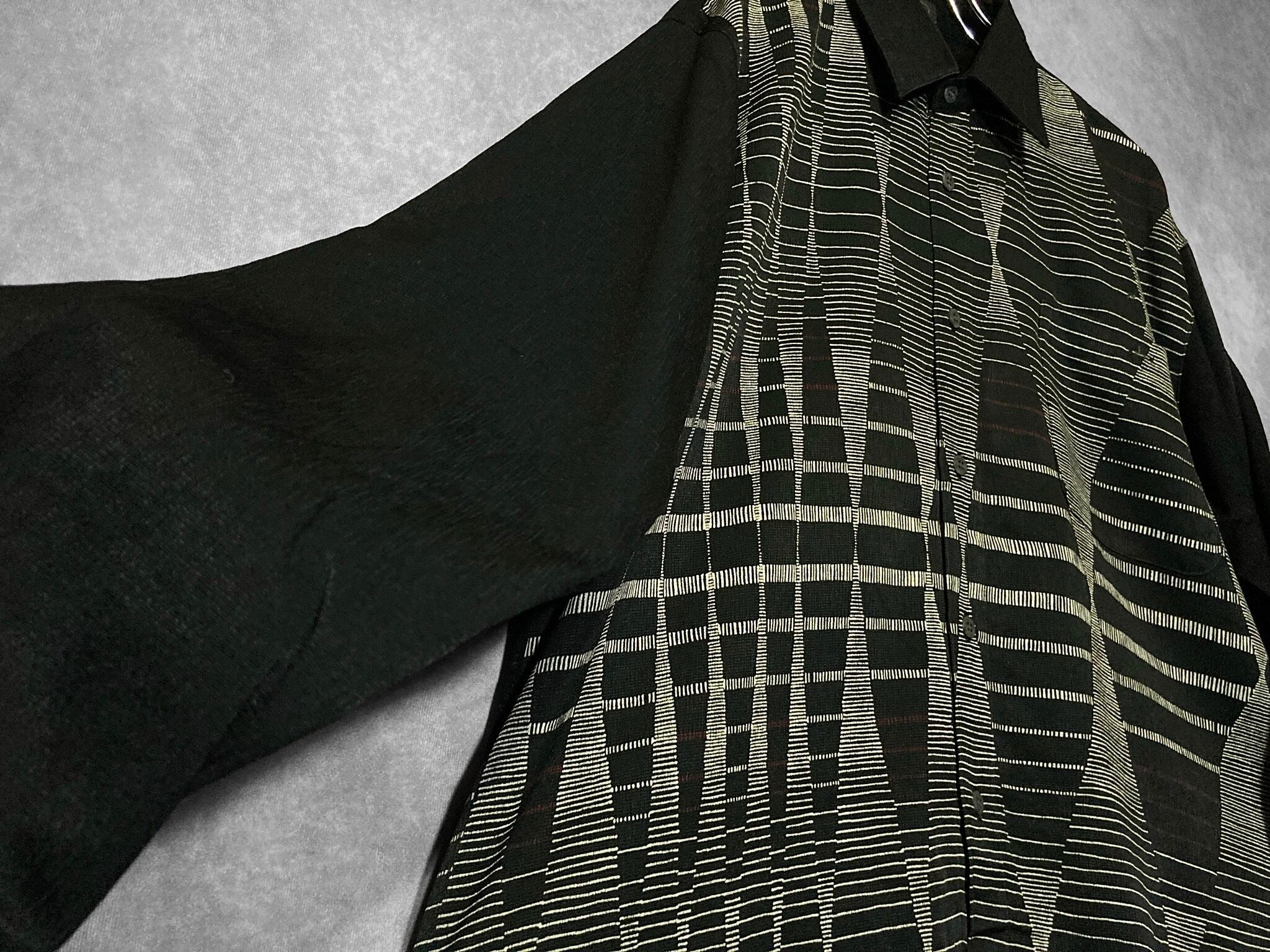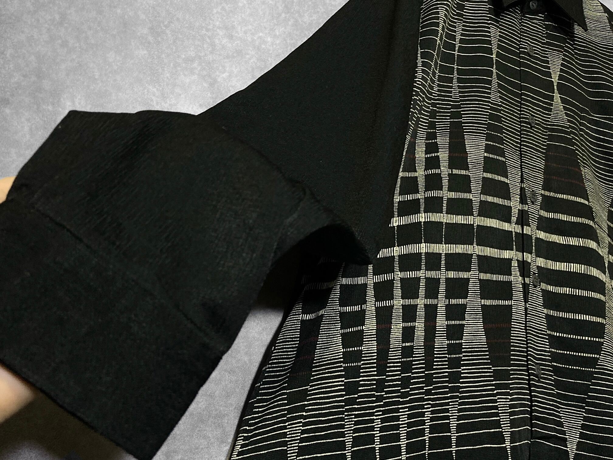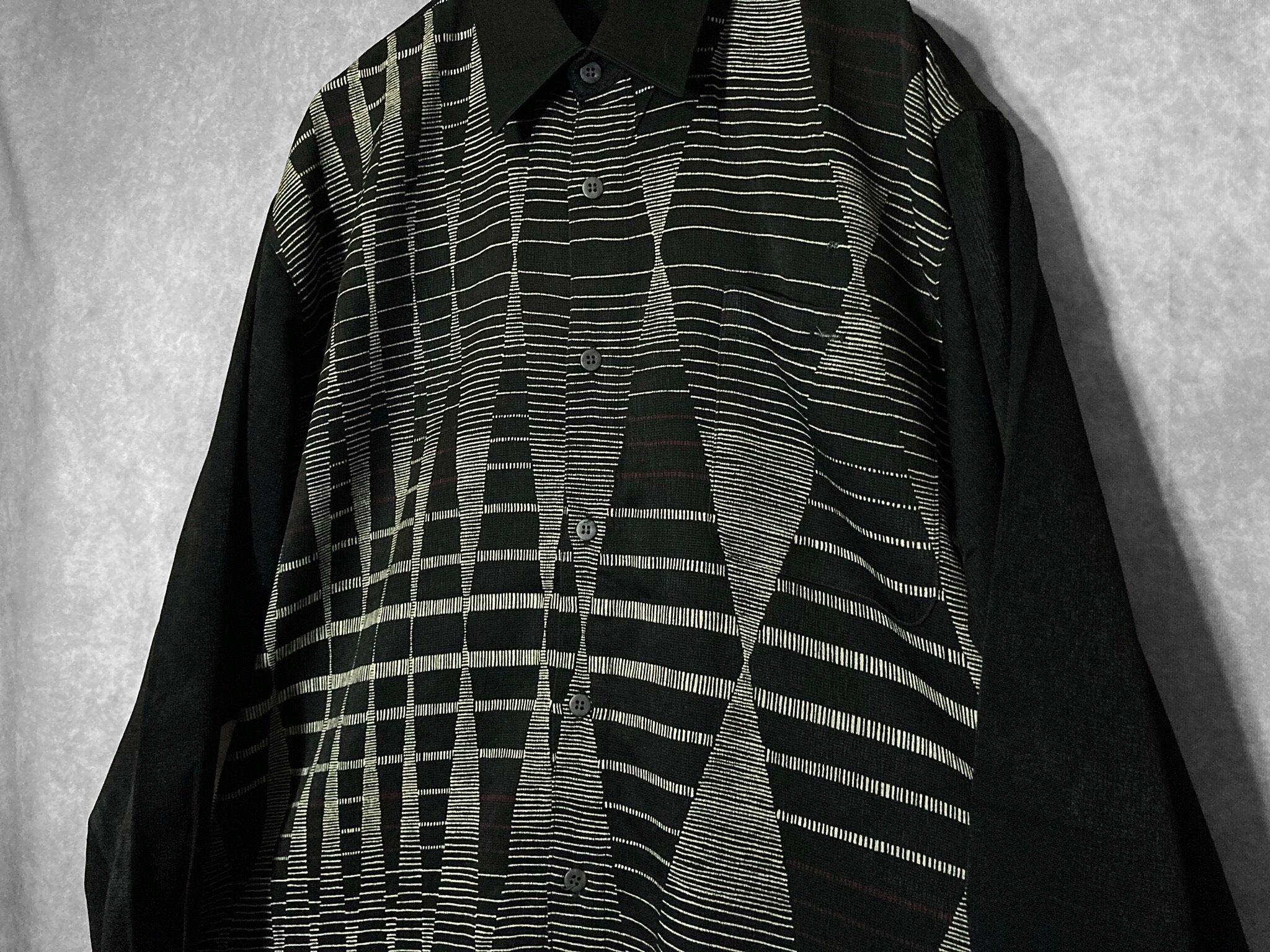 Hidden geometrical pattern Monochrome colored Switching design L/S shirt
