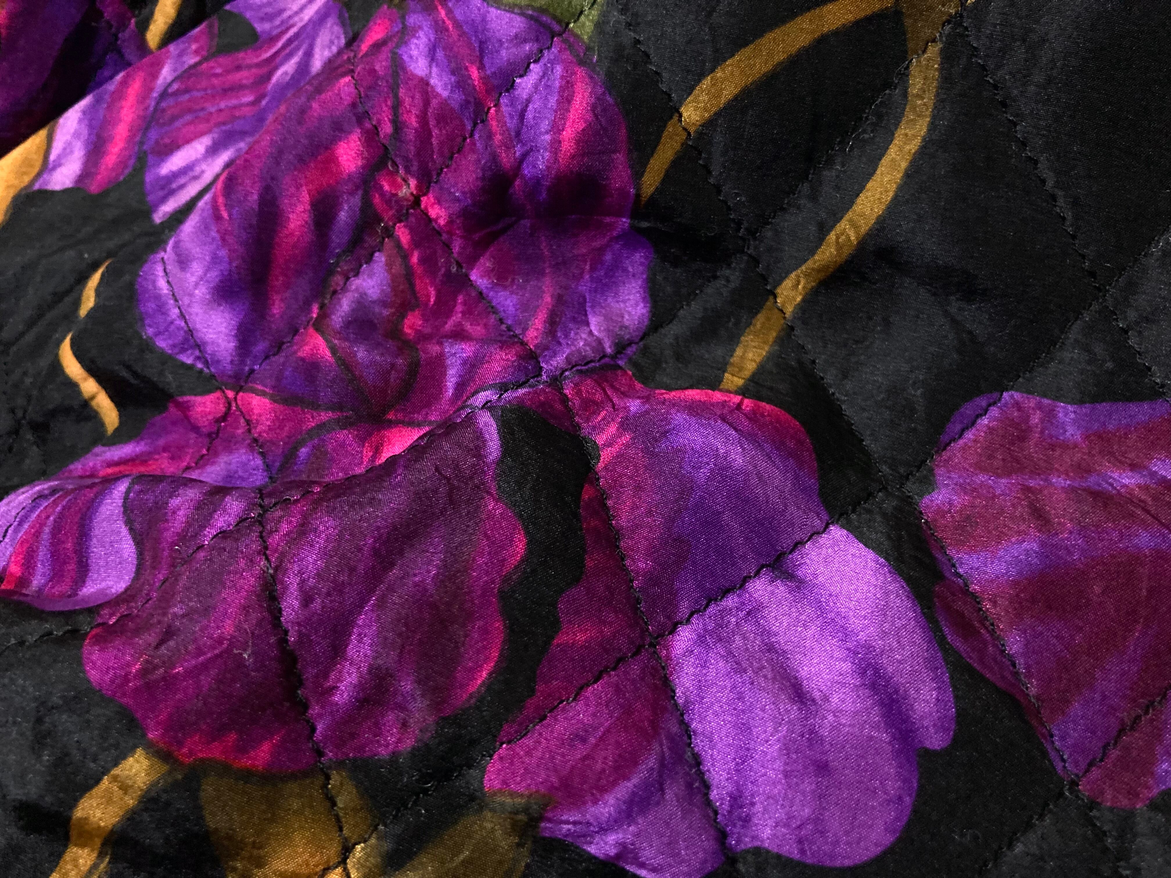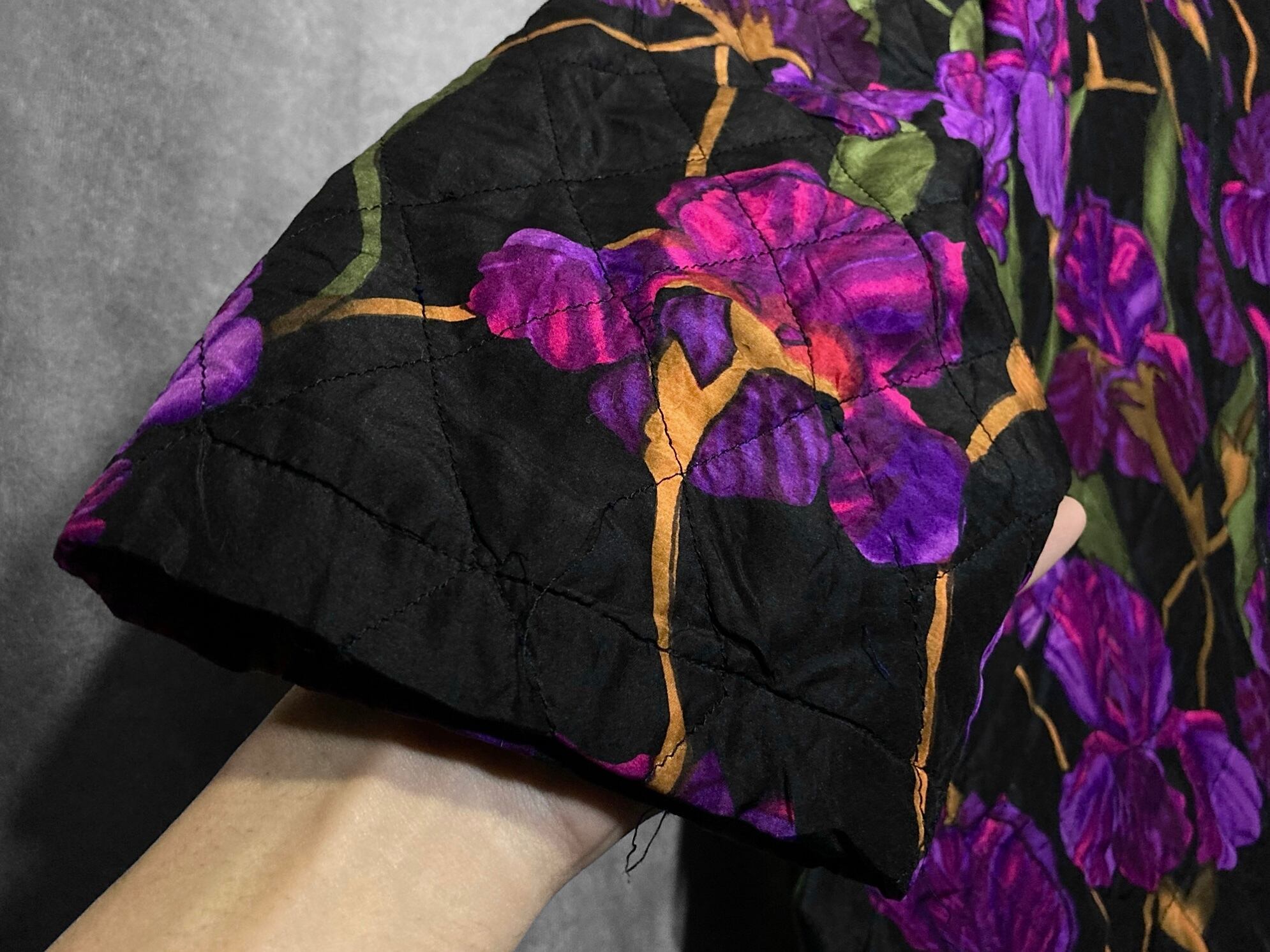 妖艶な雰囲気ムンムンの大胆な紫色の花が咲き乱れる総柄シルクジャケット。