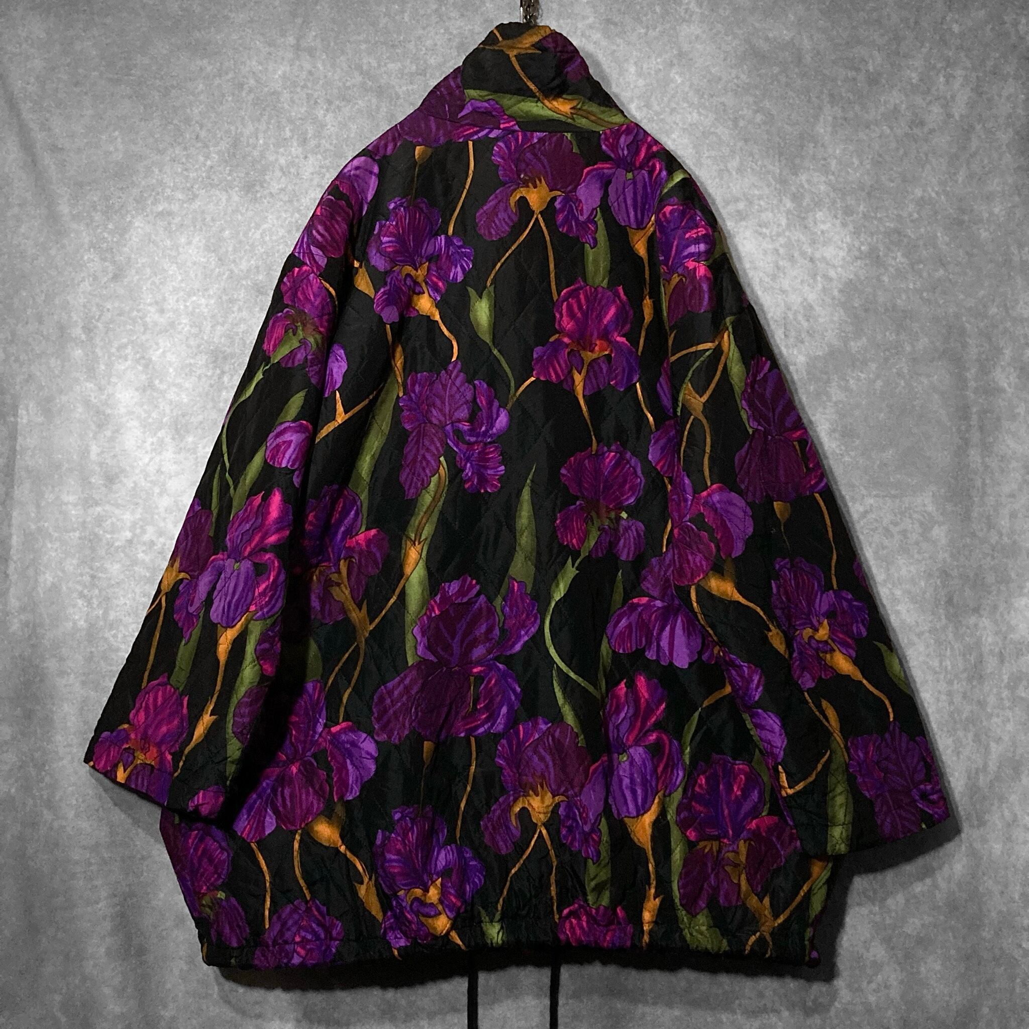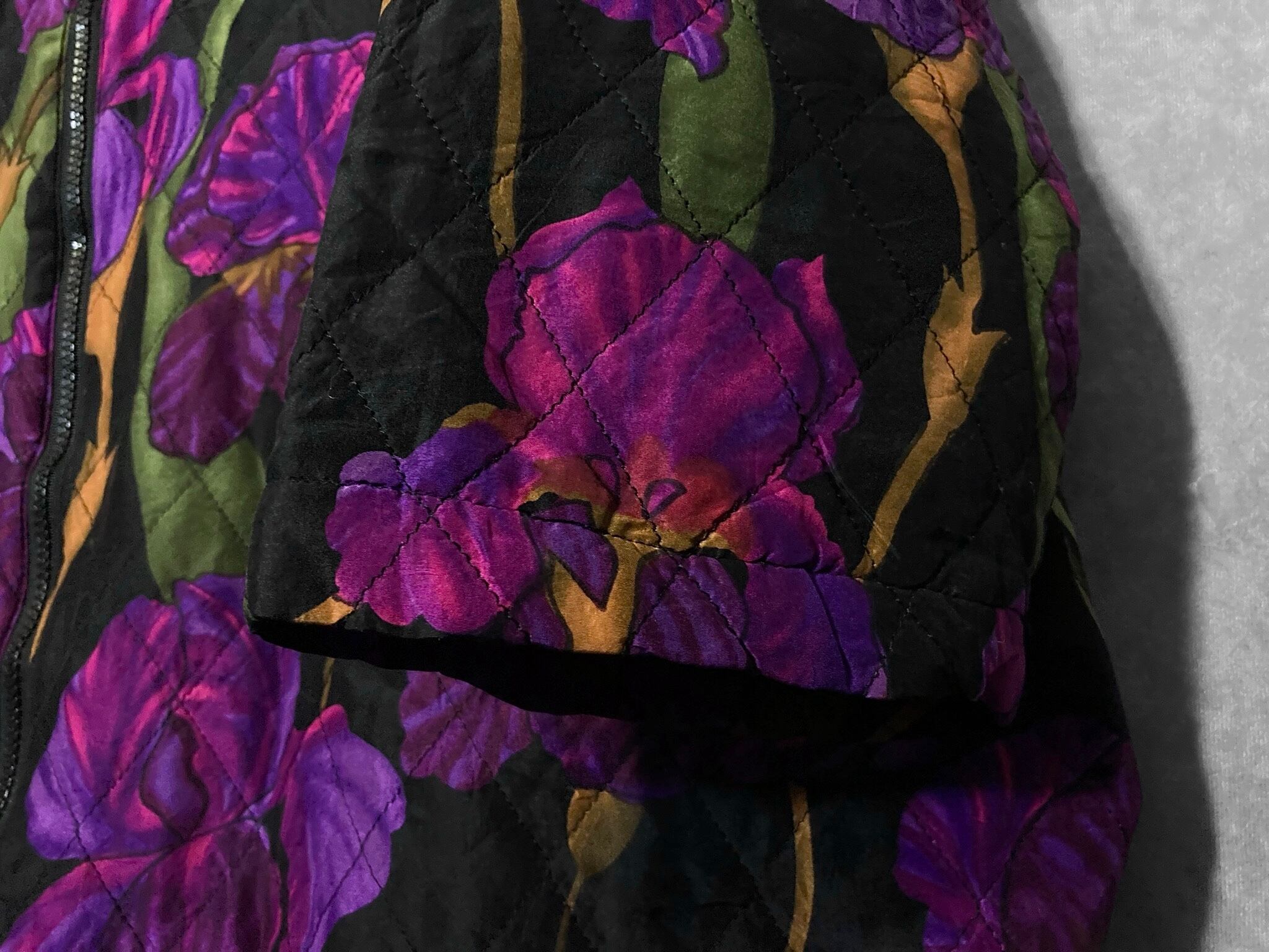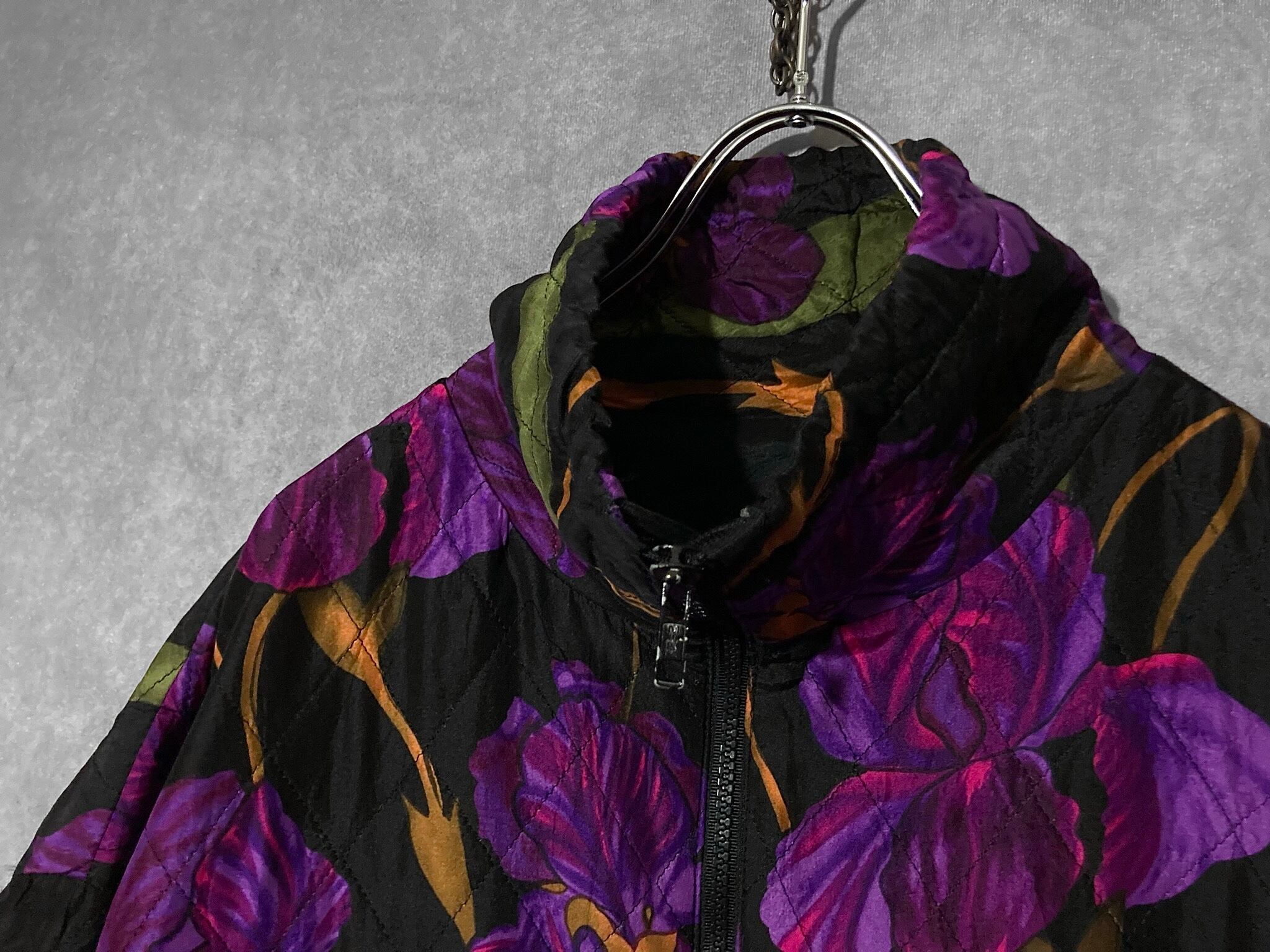 妖艶 XXXL Silk fabric Bewitching Floral all over pattern Quilting design Full-zip jacket